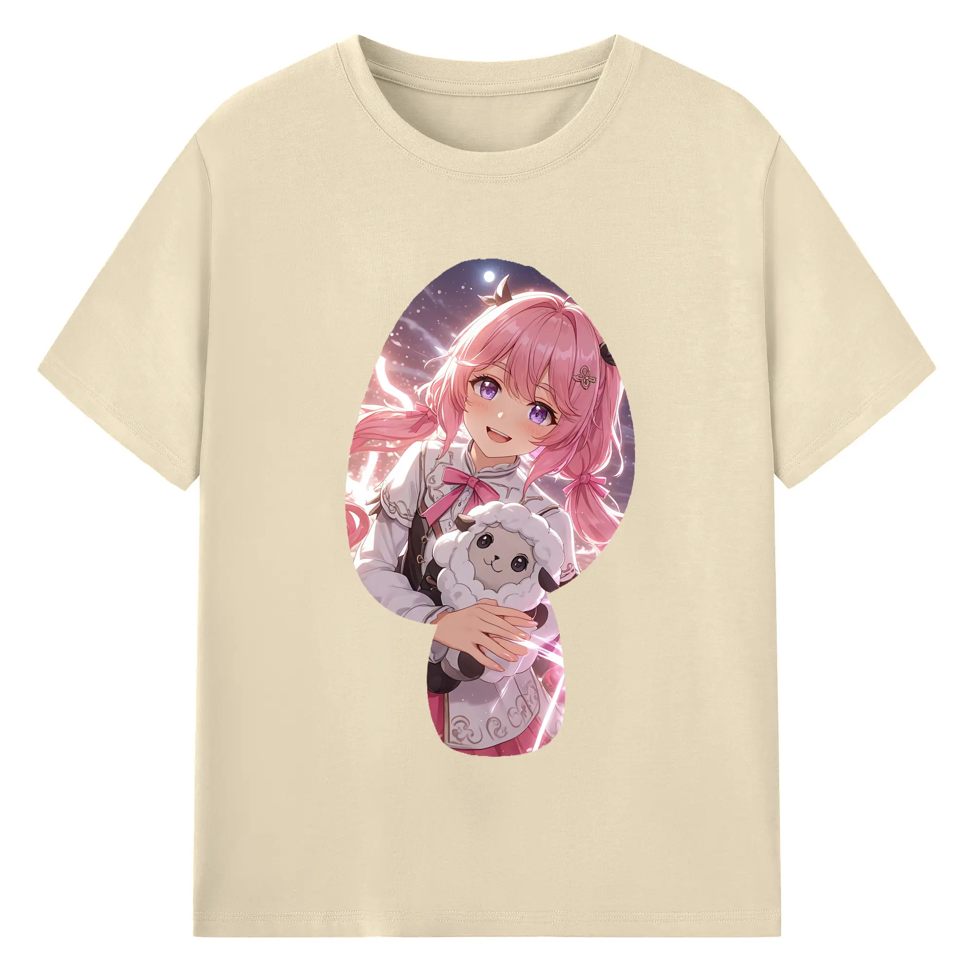 鳴潮 グッズ アンコ - 綿100% 半袖Tシャツ ・ バックプリント ・ 快適 通気性 ・ 日常使い 散歩 スポーツ用