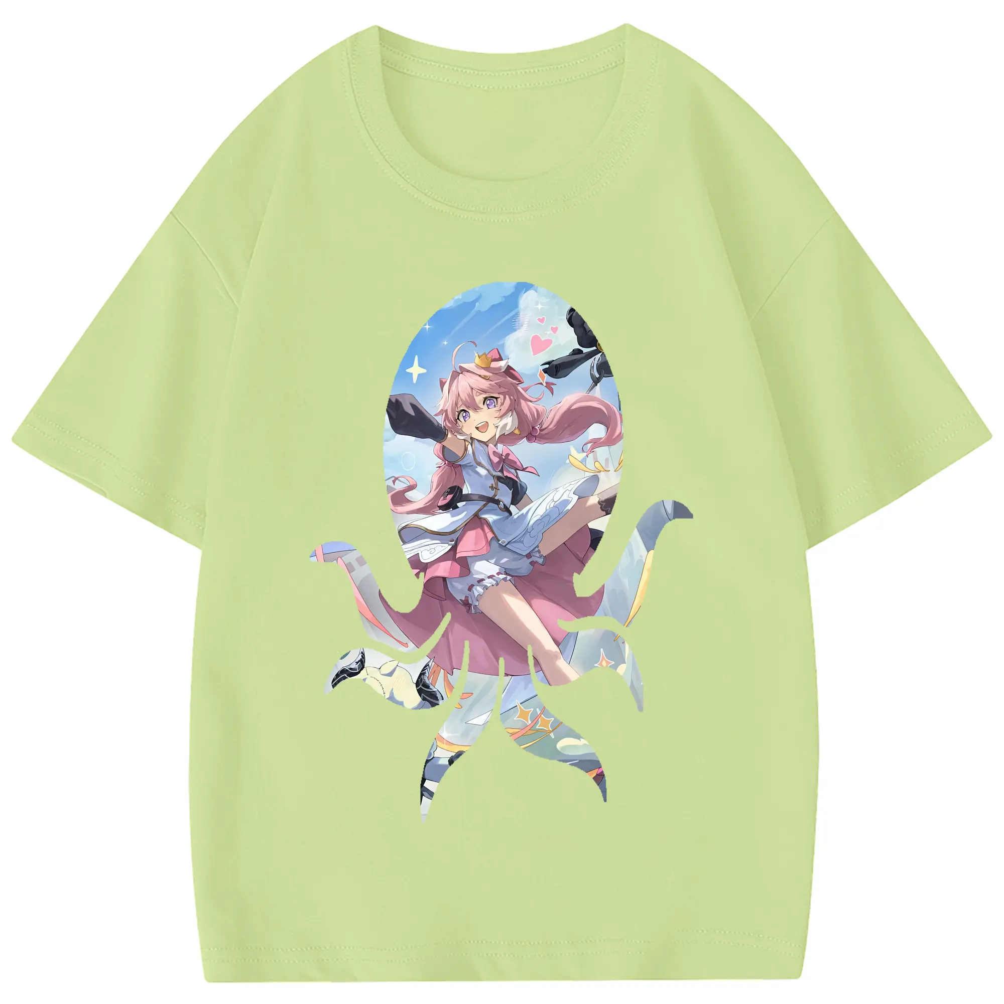 鳴潮 グッズ アンコ - 綿100% 半袖Tシャツ ・ フロントプリント ・ 快適 通気性 ・ 日常使い 散歩 スポーツ用