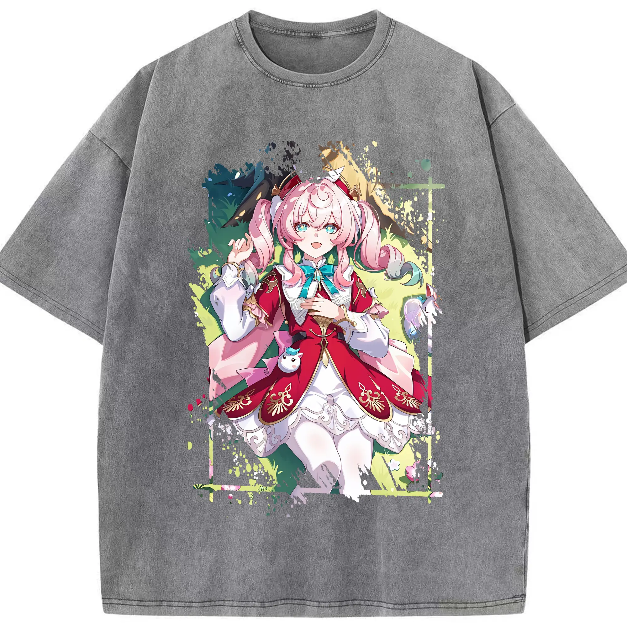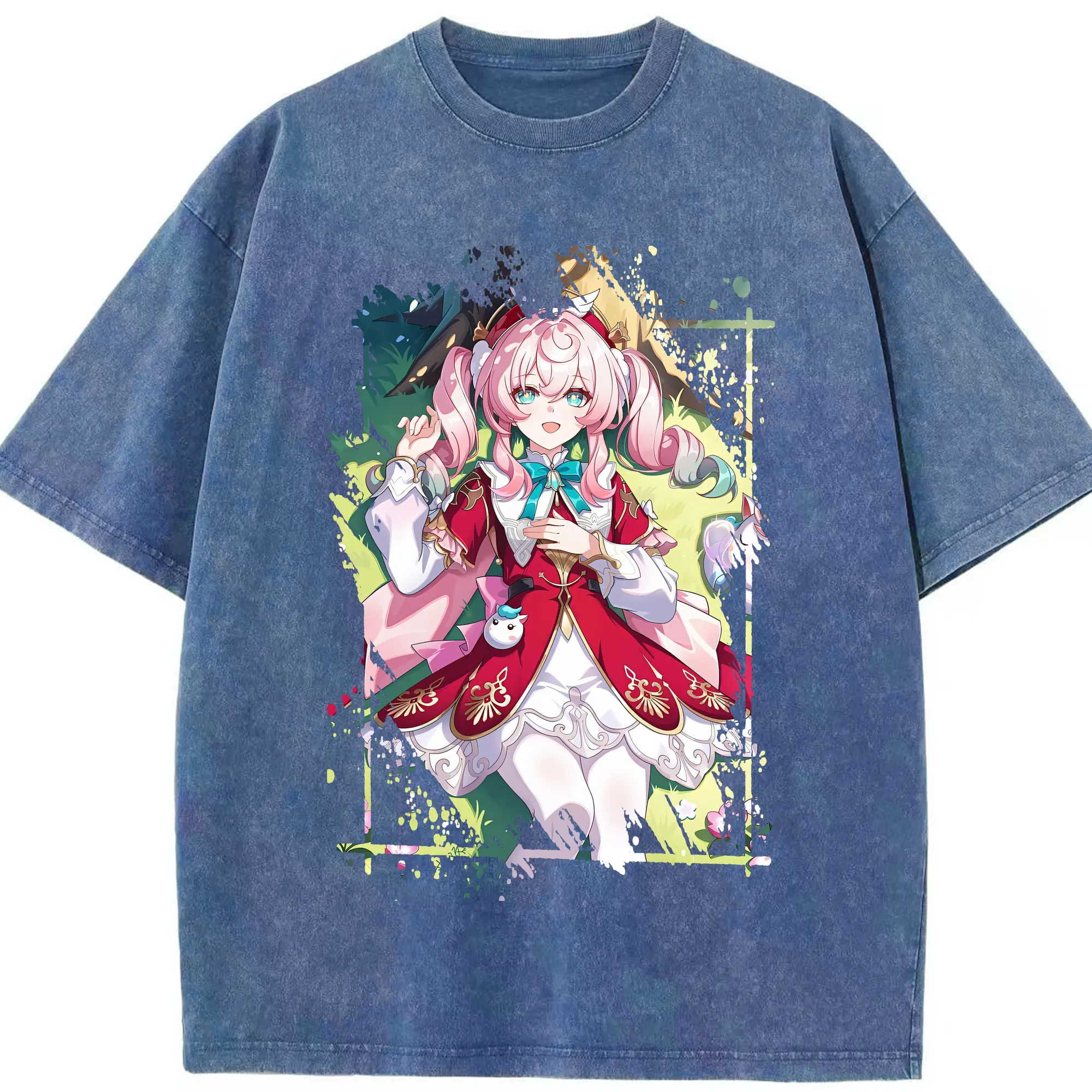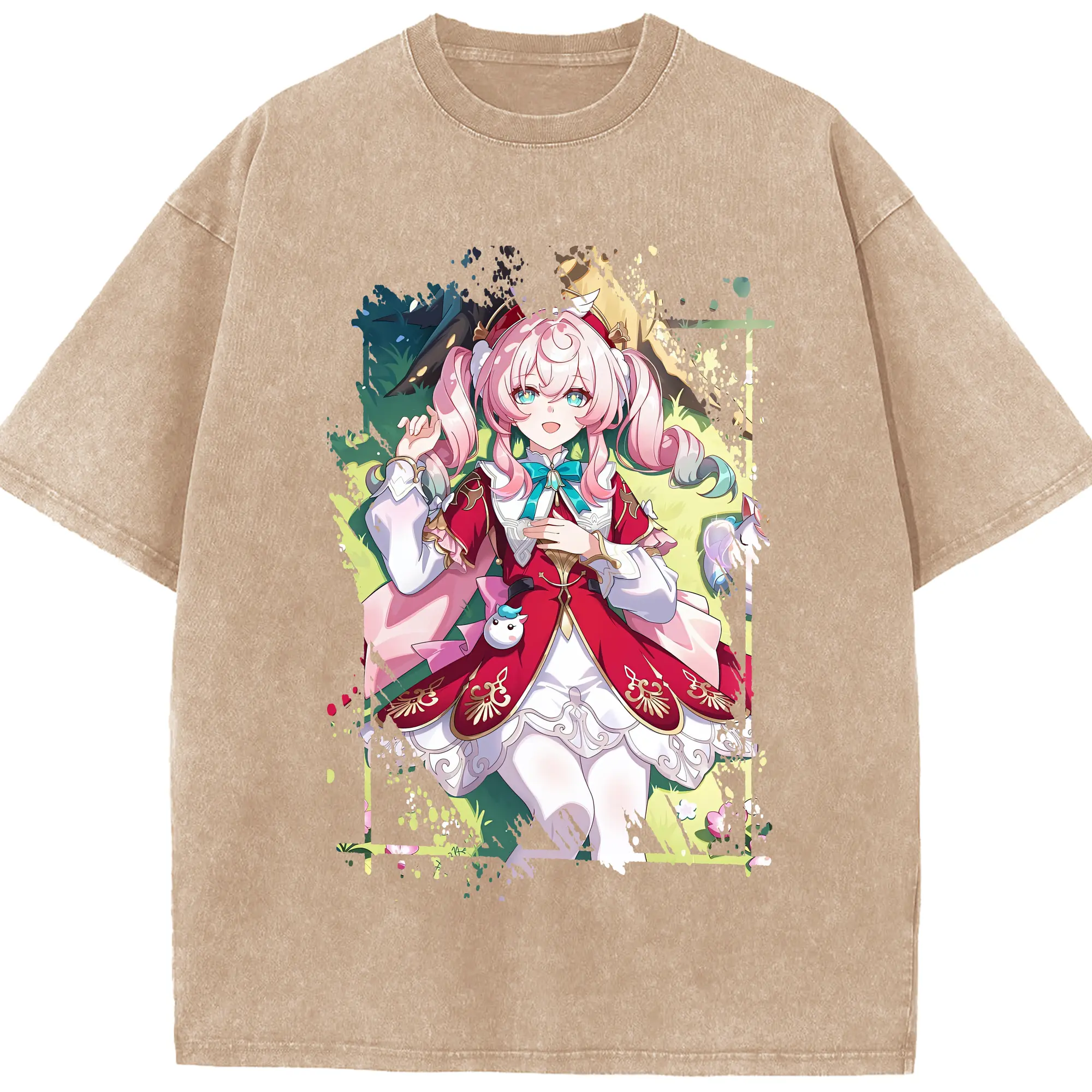鳴潮 グッズ アンコ - 綿100% ヴィンテージ風 半袖Tシャツ ・ 背面プリント ・ 柔らか肌触り ・ 通気性 快適 ・ スポーツ カジュアル 外出用