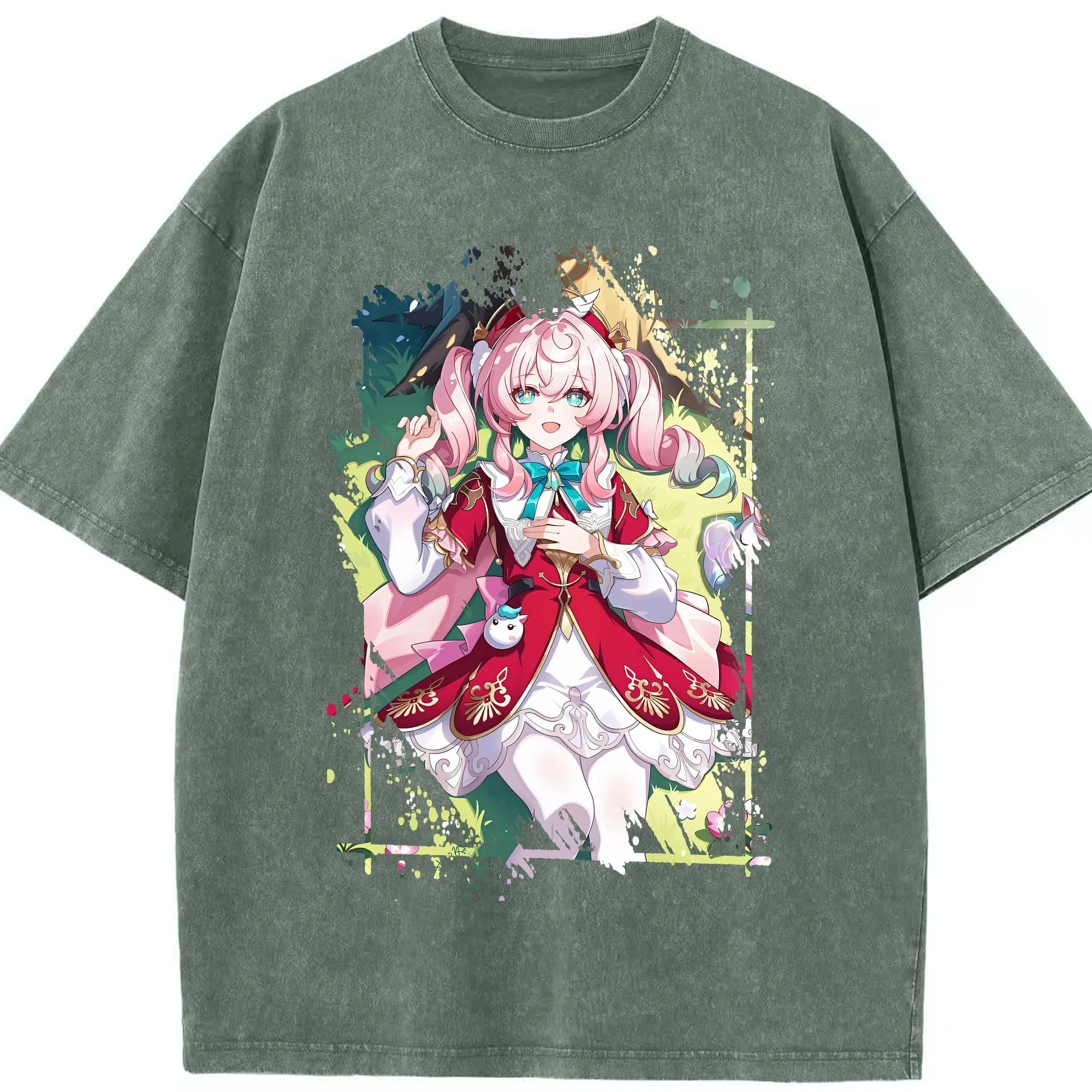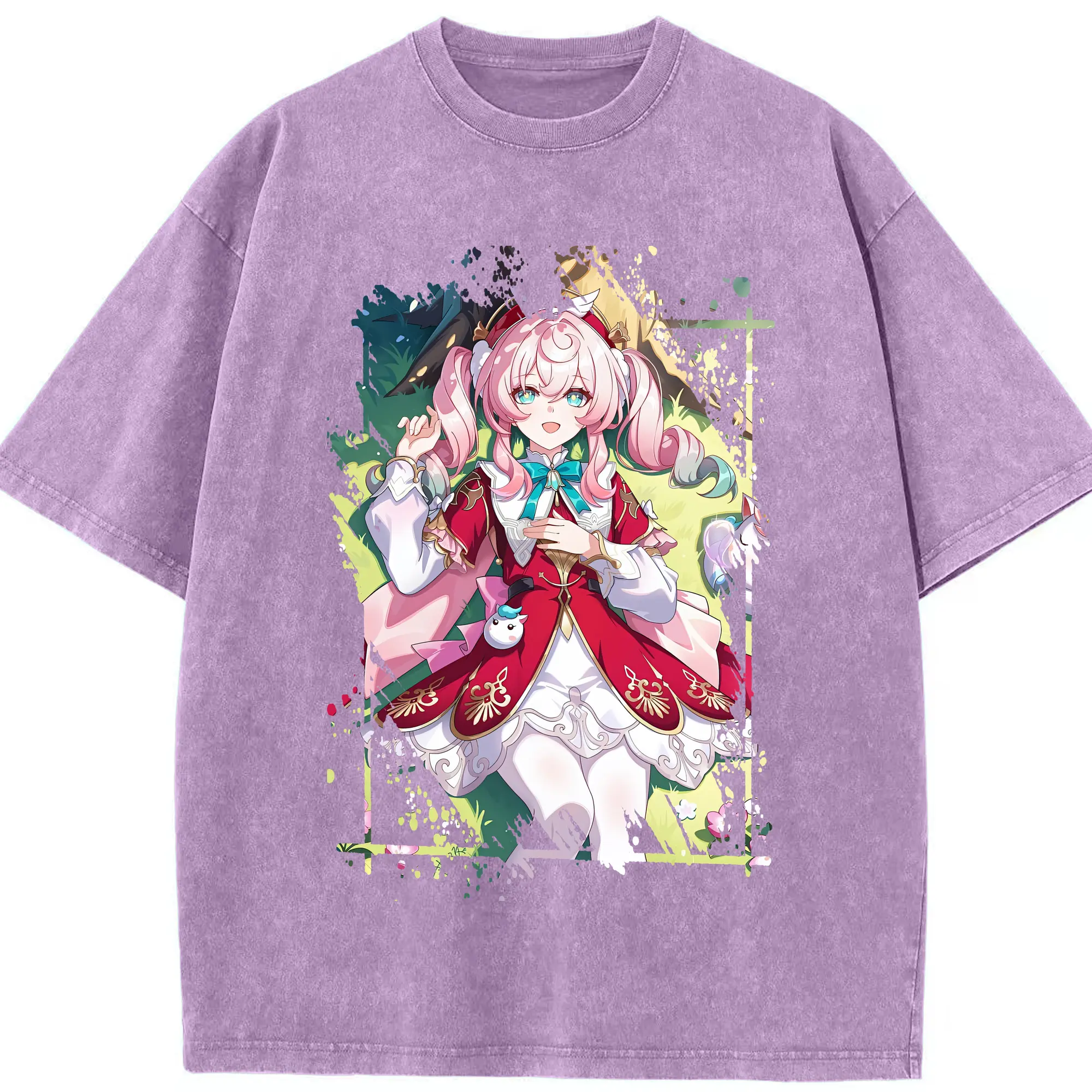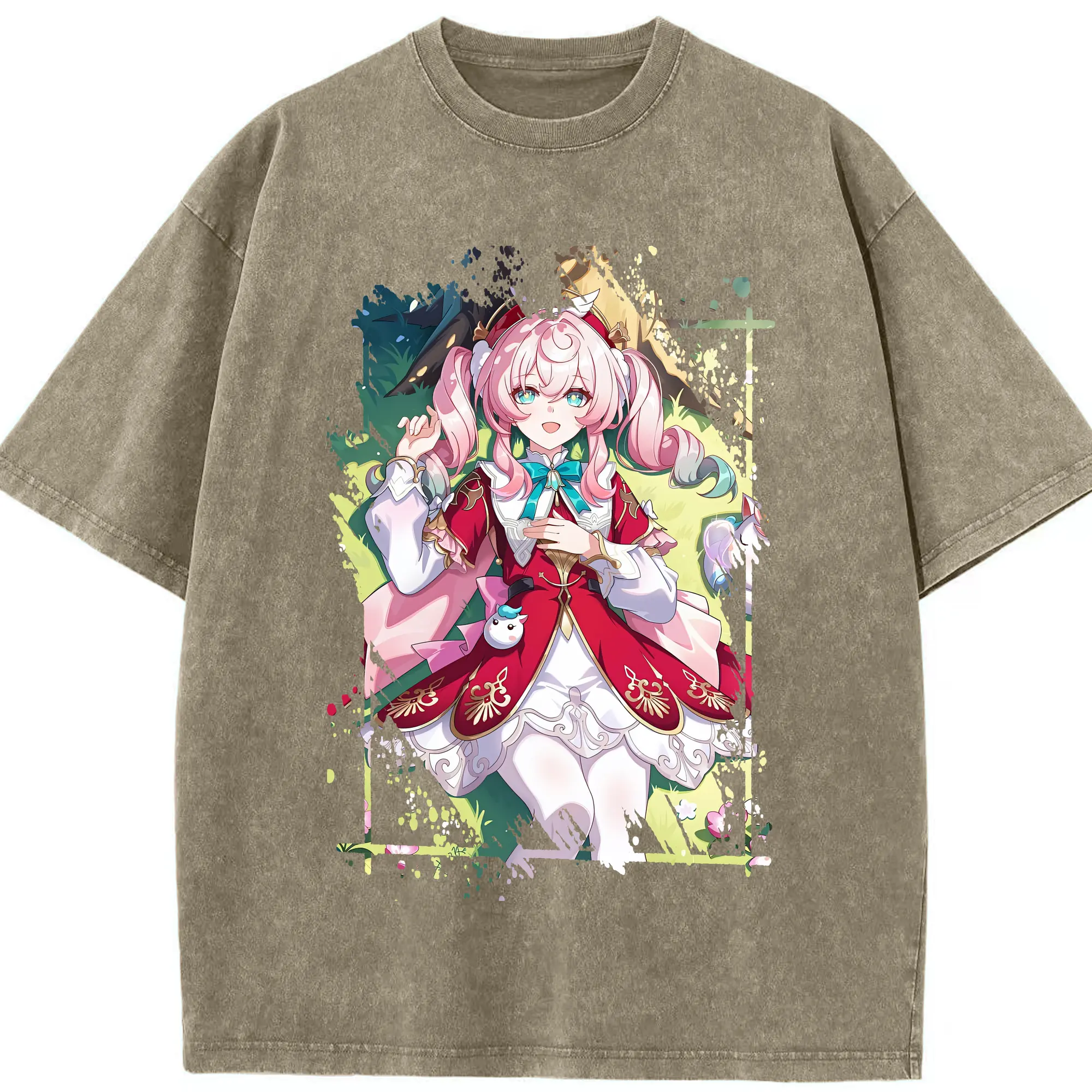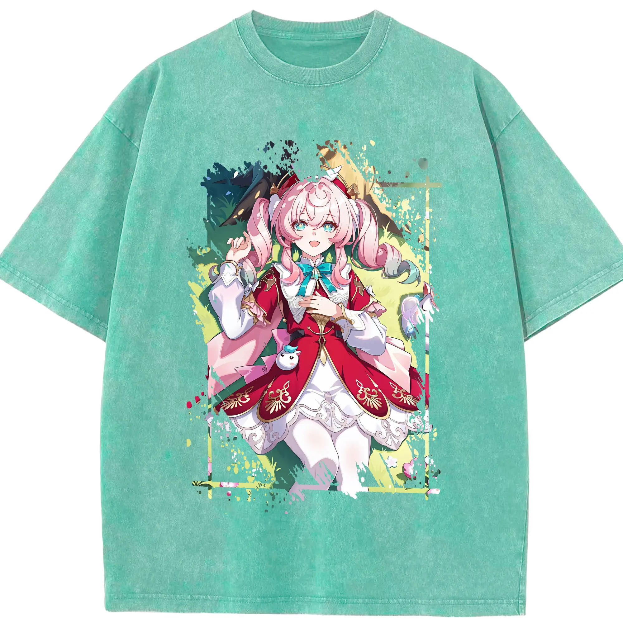 鳴潮 グッズ アンコ - 綿100% ヴィンテージ風 半袖Tシャツ ・ 背面プリント ・ 柔らか肌触り ・ 通気性 快適 ・ スポーツ カジュアル 外出用