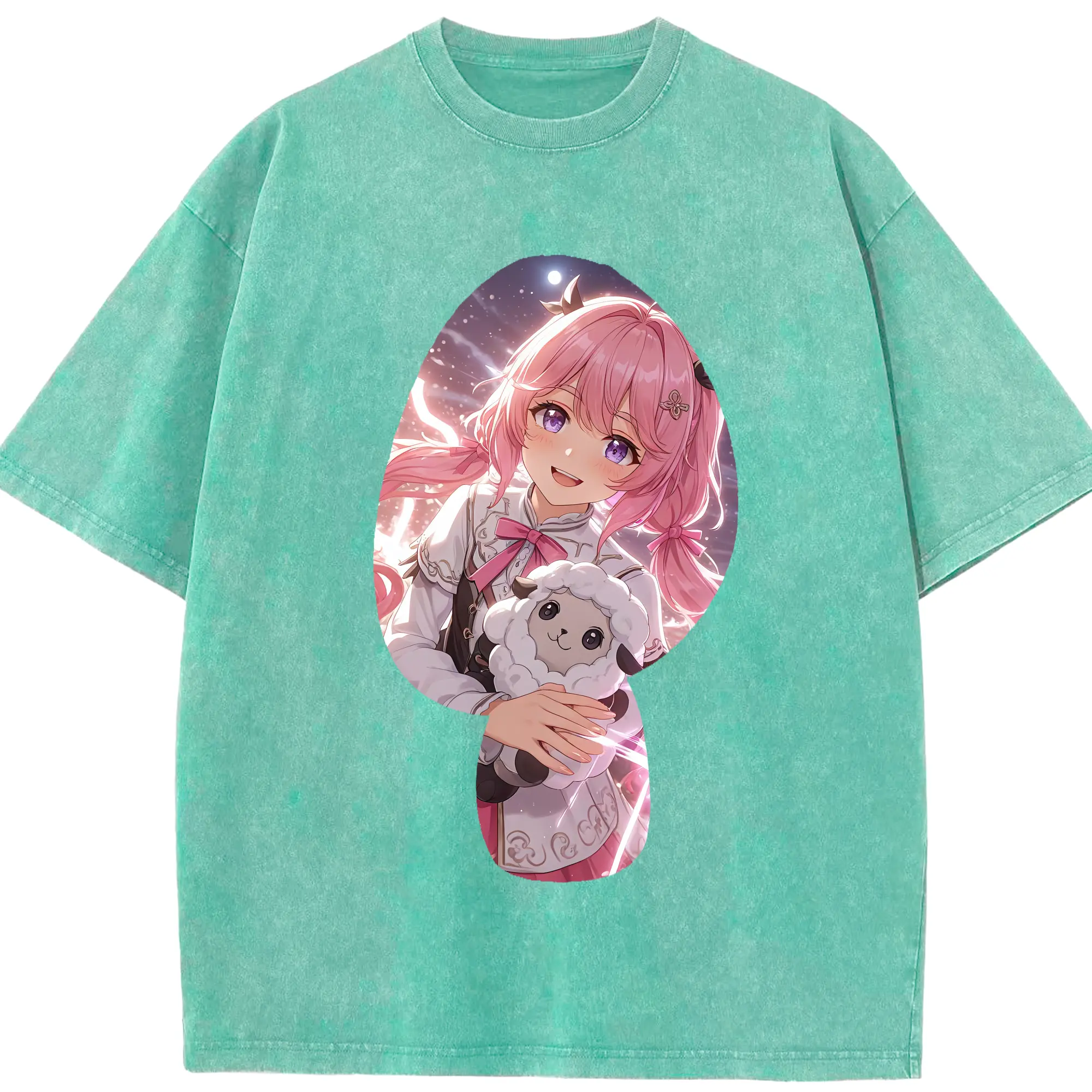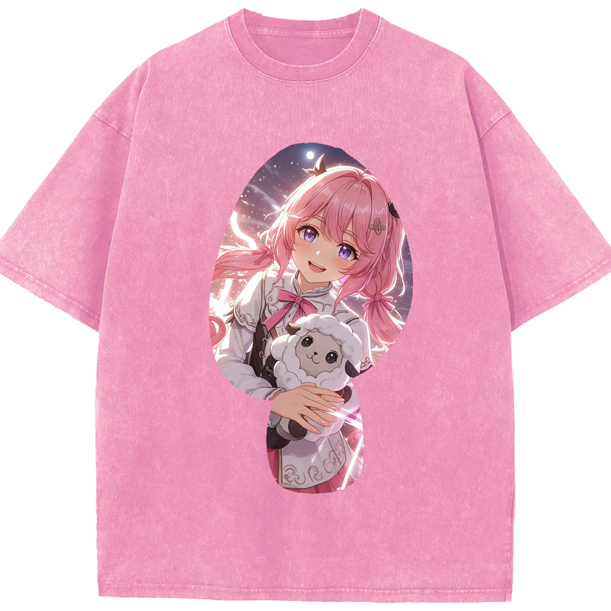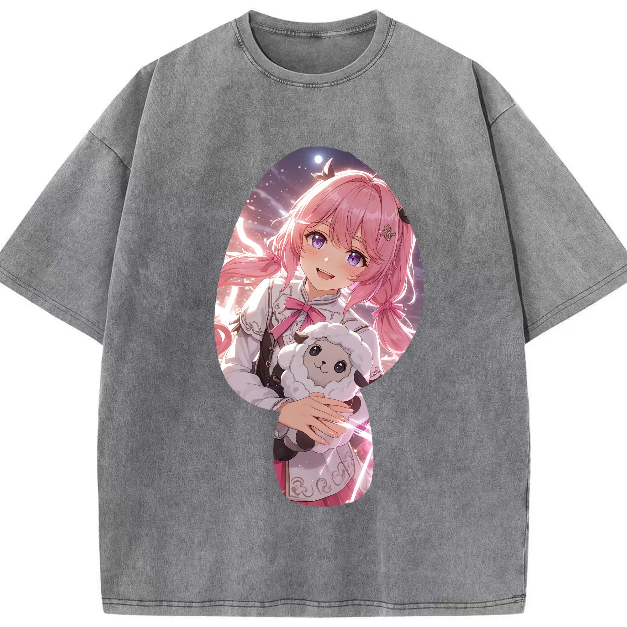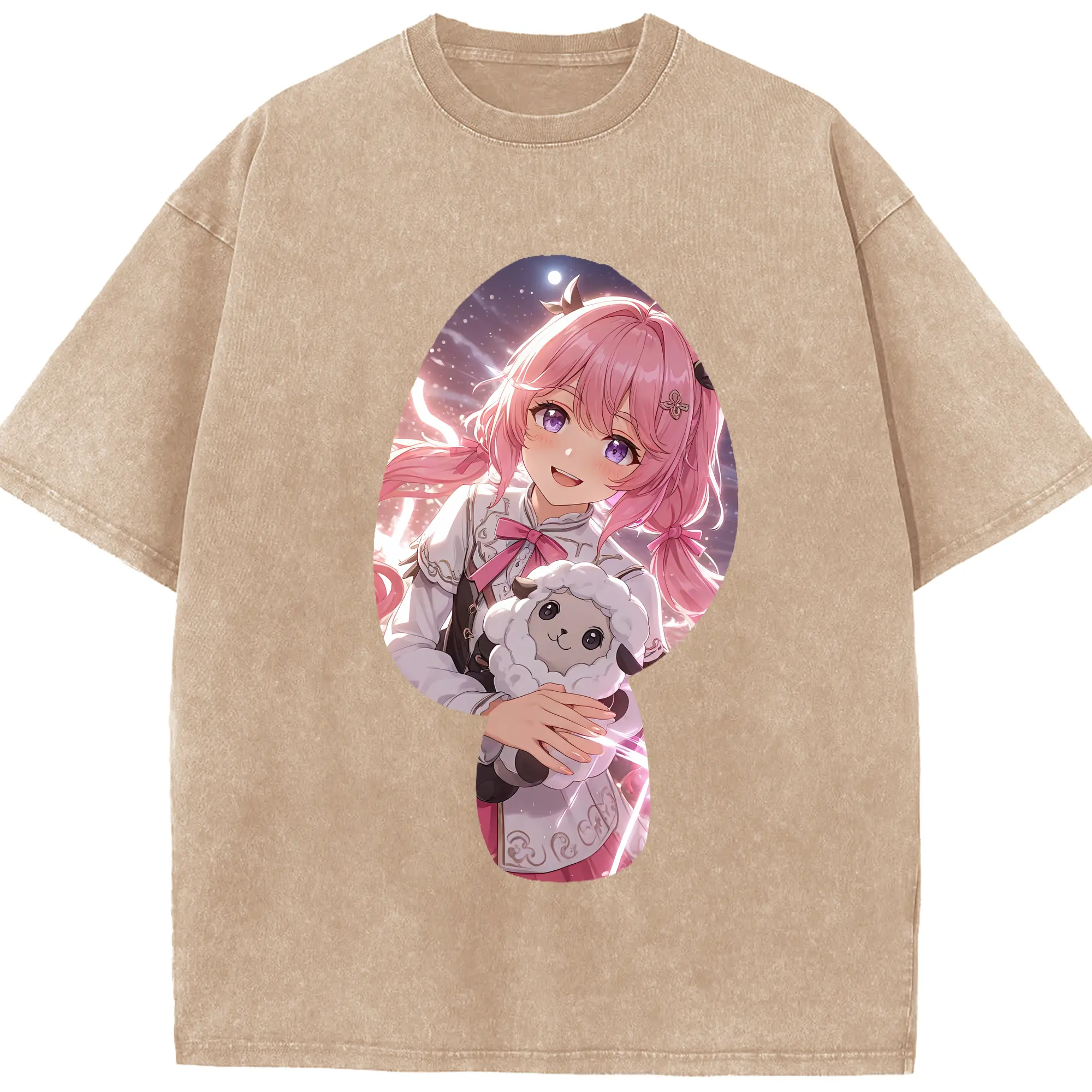 鳴潮 グッズ アンコ - 綿100% ヴィンテージ風 半袖Tシャツ ・ 背面プリント ・ 柔らか肌触り ・ 通気性 快適 ・ スポーツ カジュアル 外出用