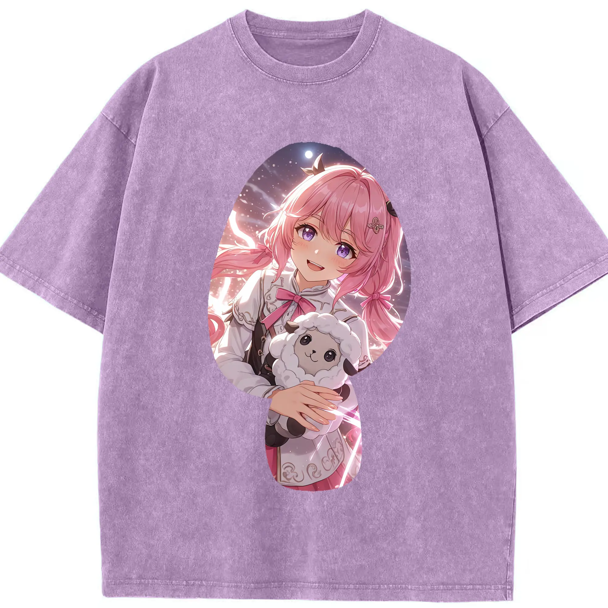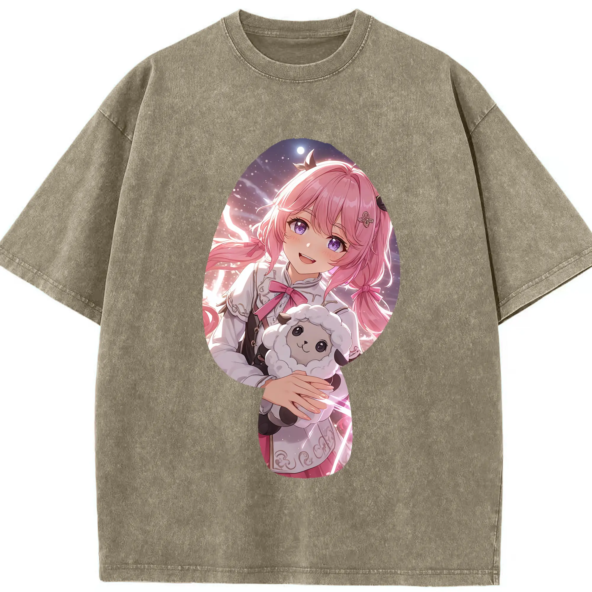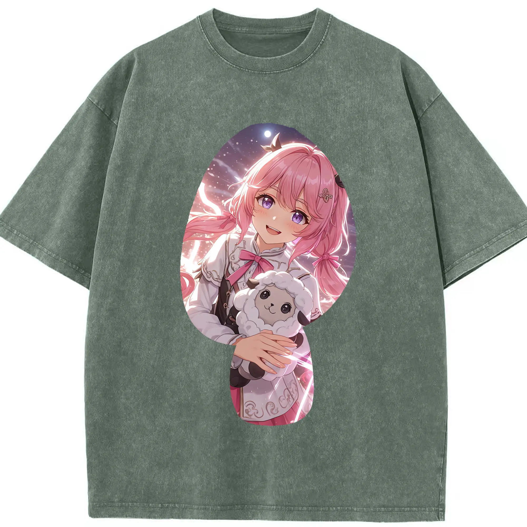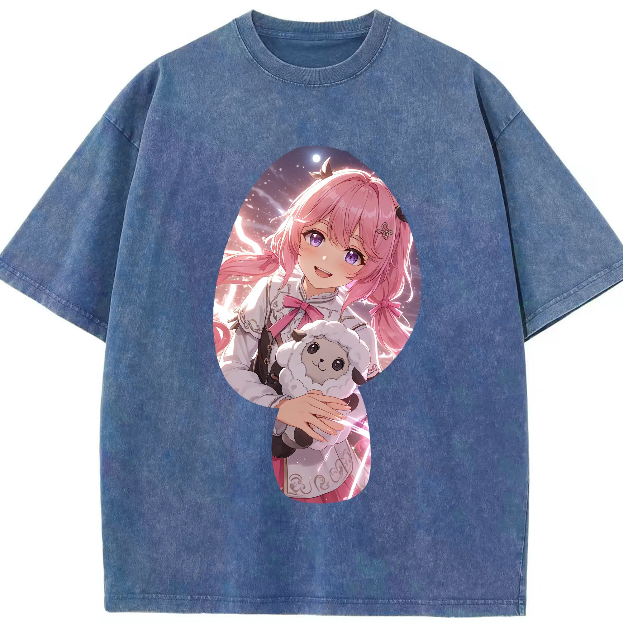 鳴潮 グッズ アンコ - 綿100% ヴィンテージ風 半袖Tシャツ ・ 背面プリント ・ 柔らか肌触り ・ 通気性 快適 ・ スポーツ カジュアル 外出用
