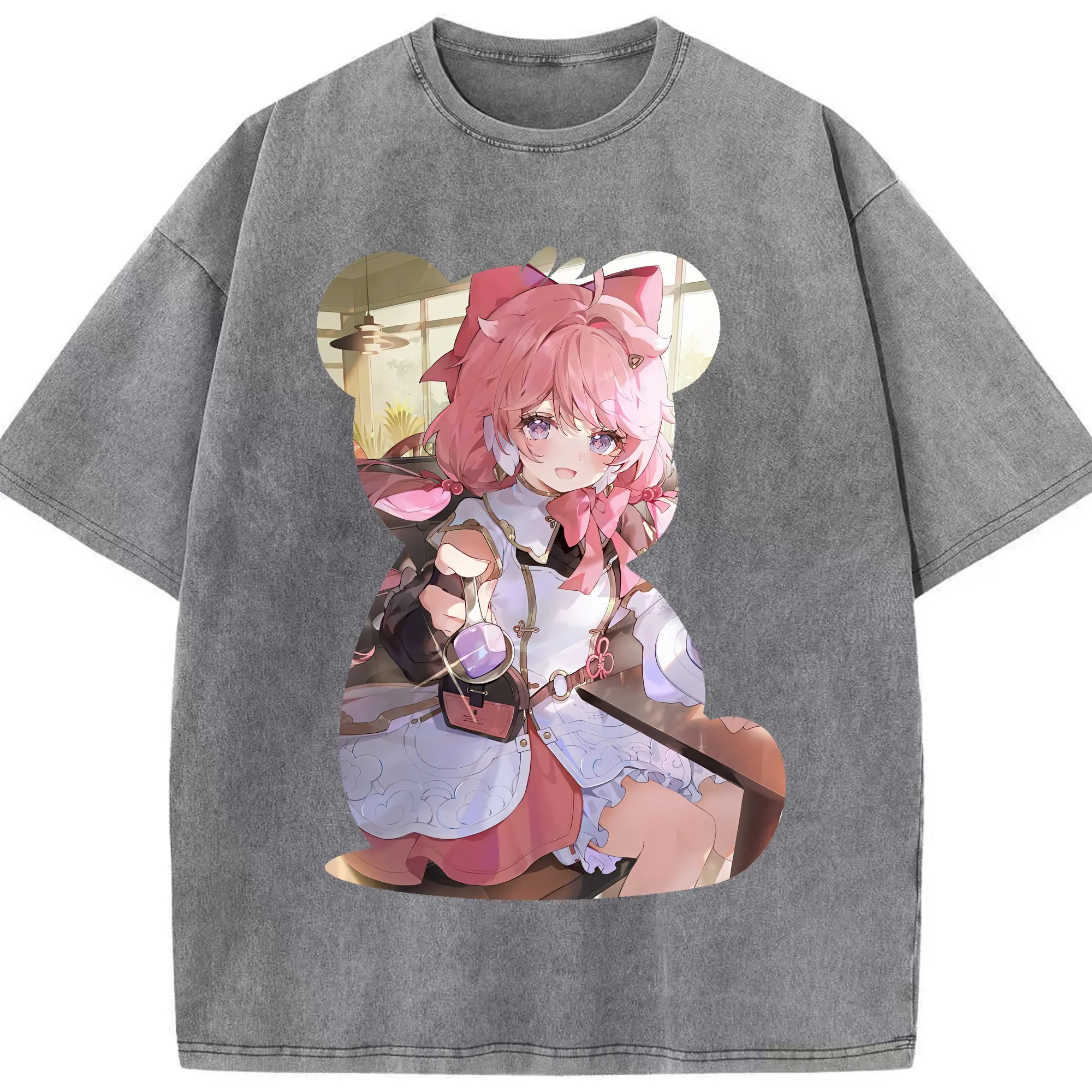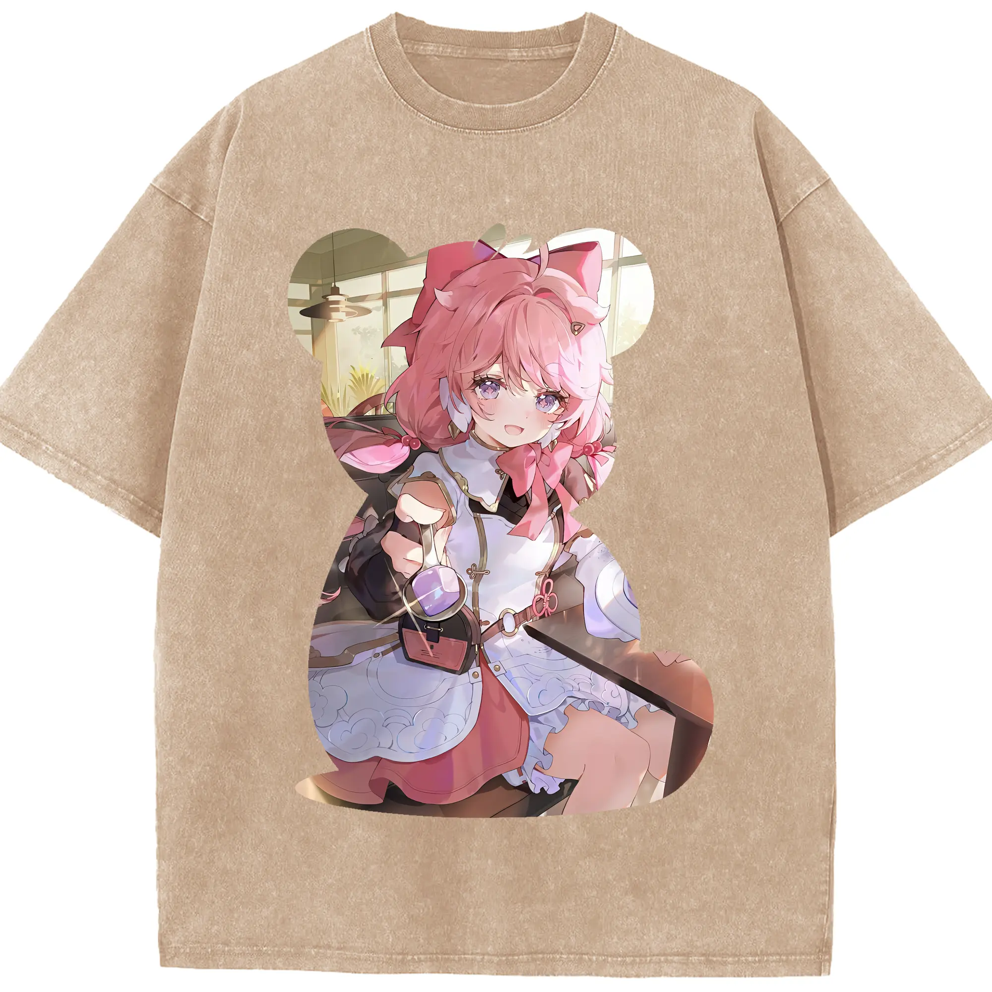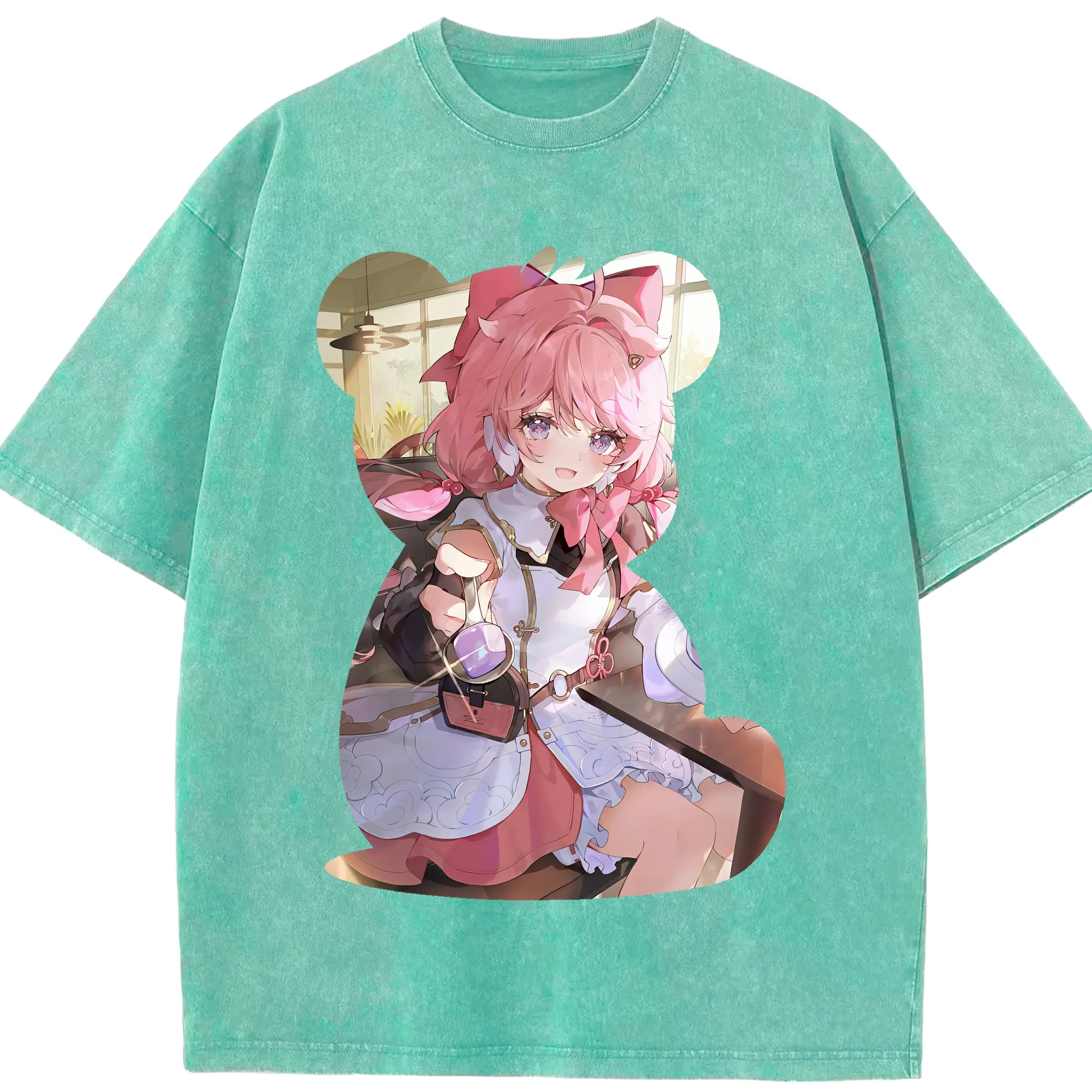 鳴潮 グッズ アンコ - 綿100% ヴィンテージ風 半袖Tシャツ ・ 背面プリント ・ 柔らか肌触り ・ 通気性 快適 ・ スポーツ カジュアル 外出用