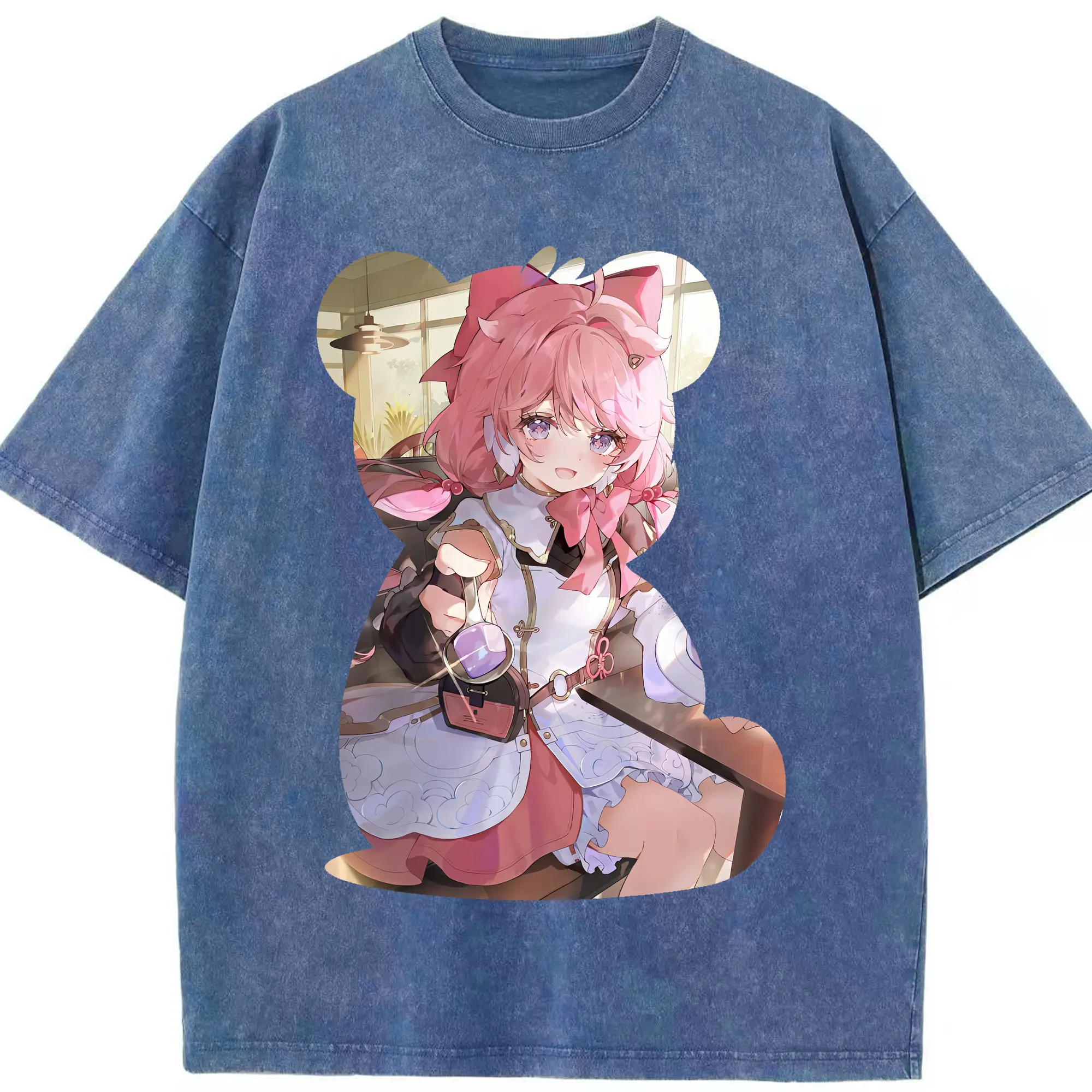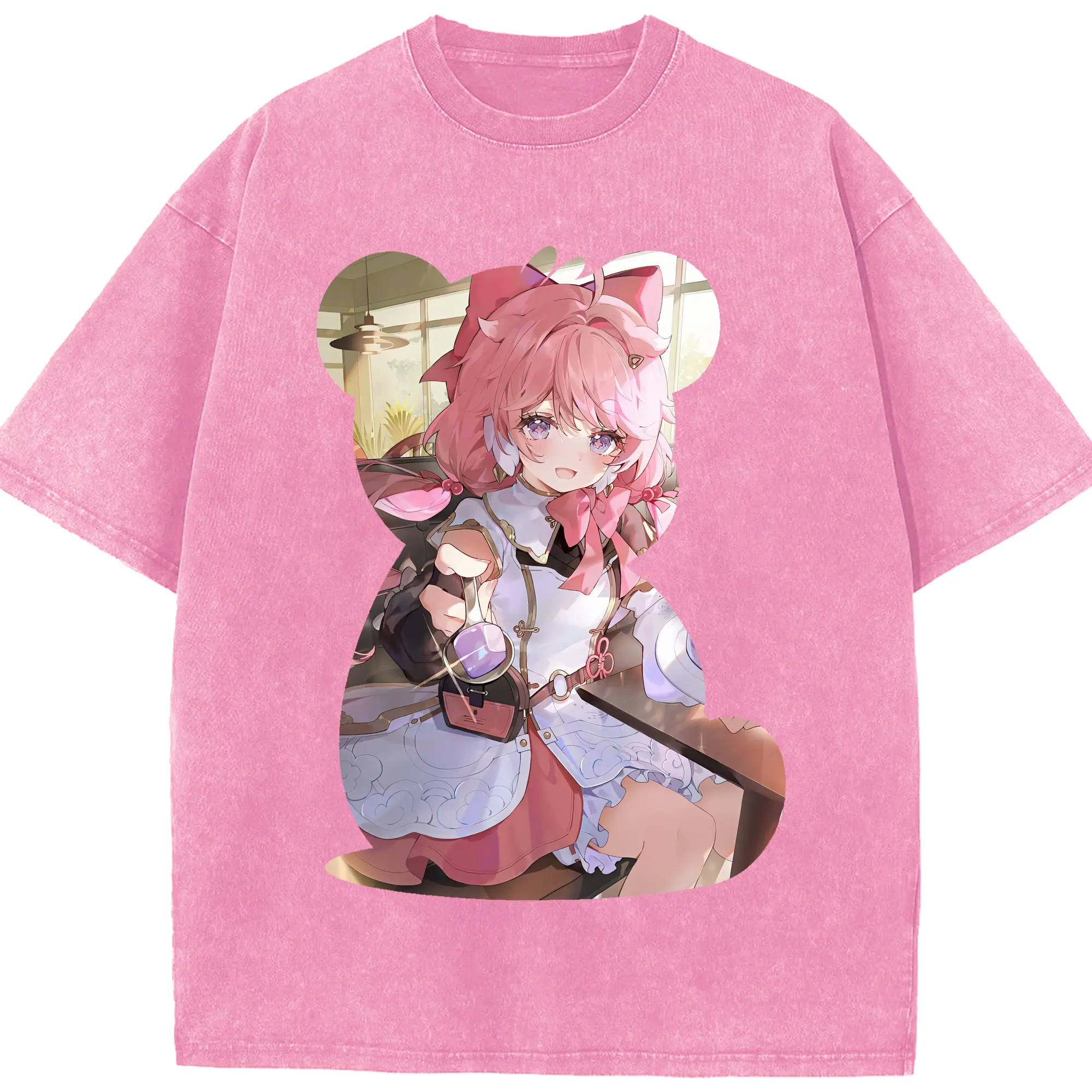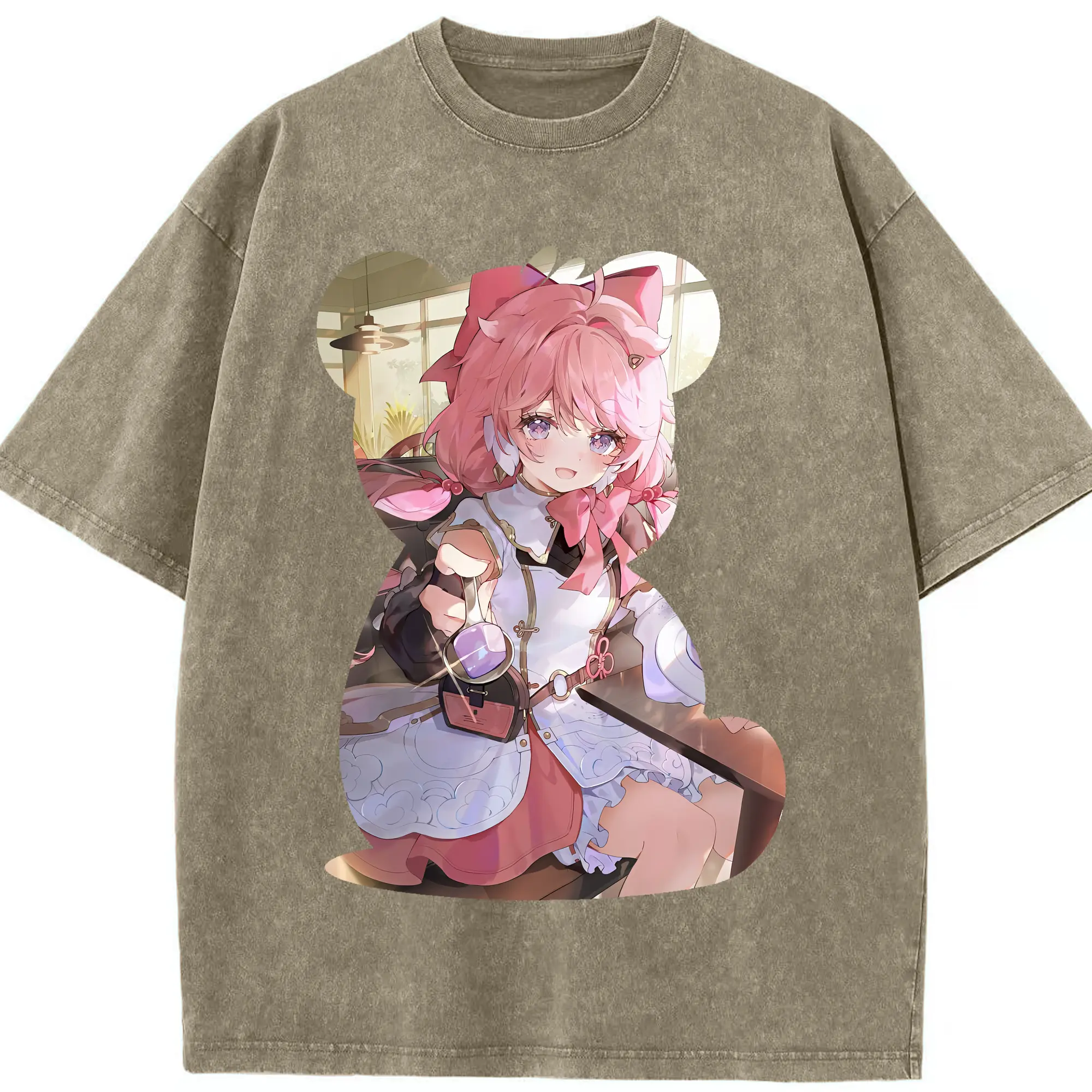 鳴潮 グッズ アンコ - 綿100% ヴィンテージ風 半袖Tシャツ ・ 背面プリント ・ 柔らか肌触り ・ 通気性 快適 ・ スポーツ カジュアル 外出用