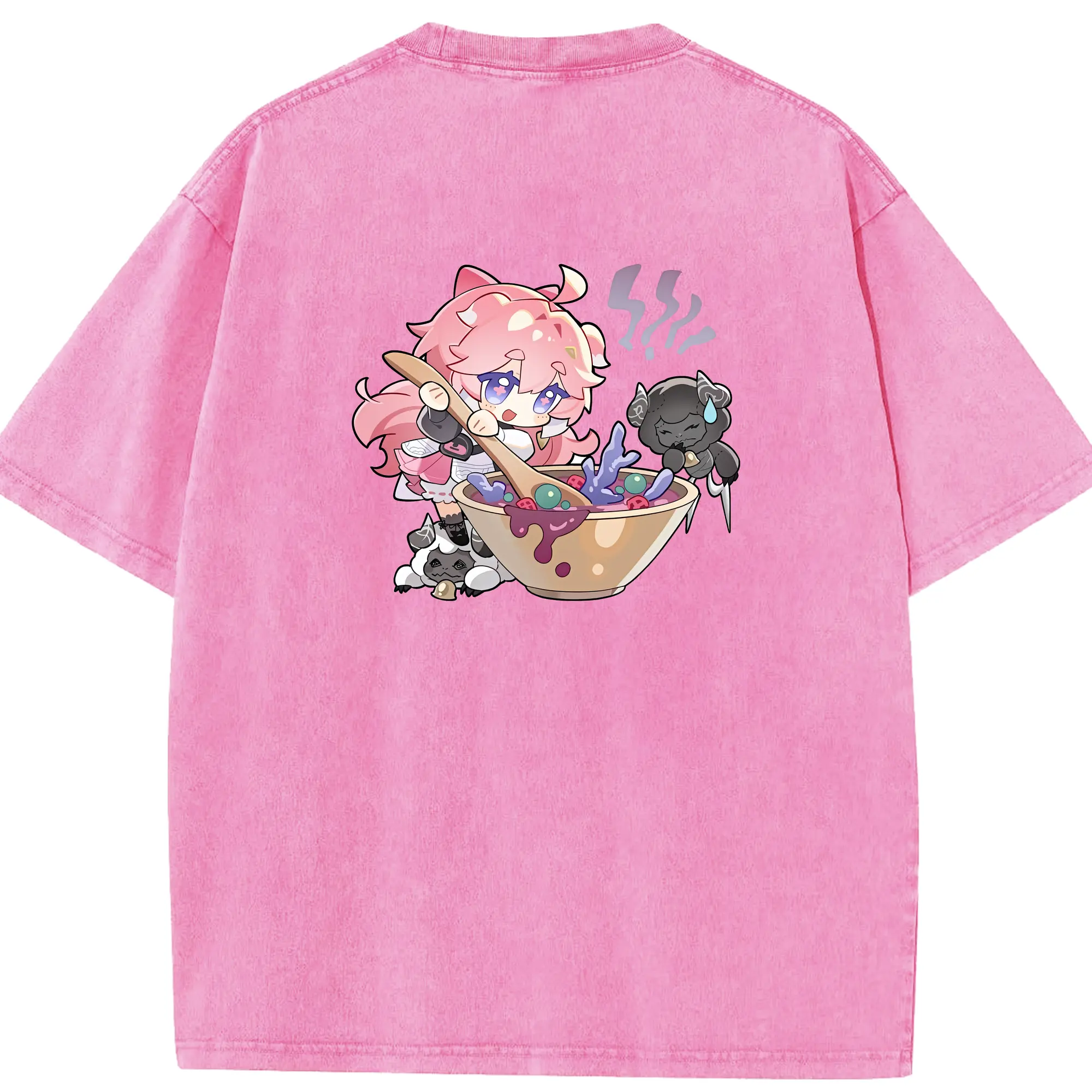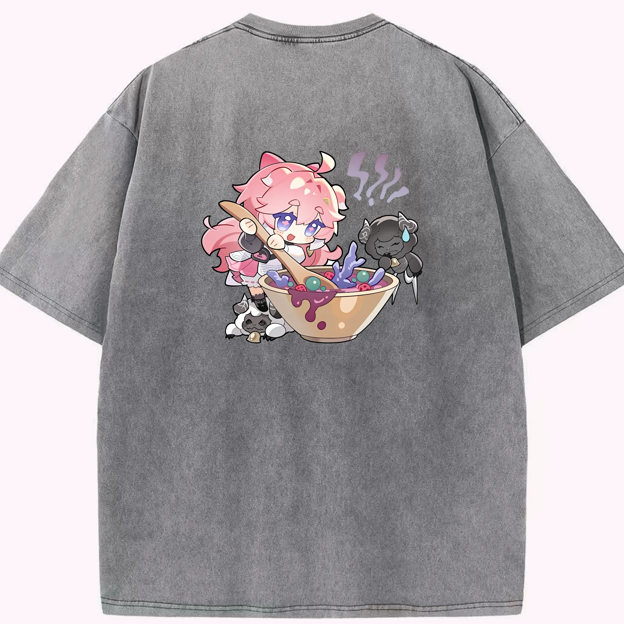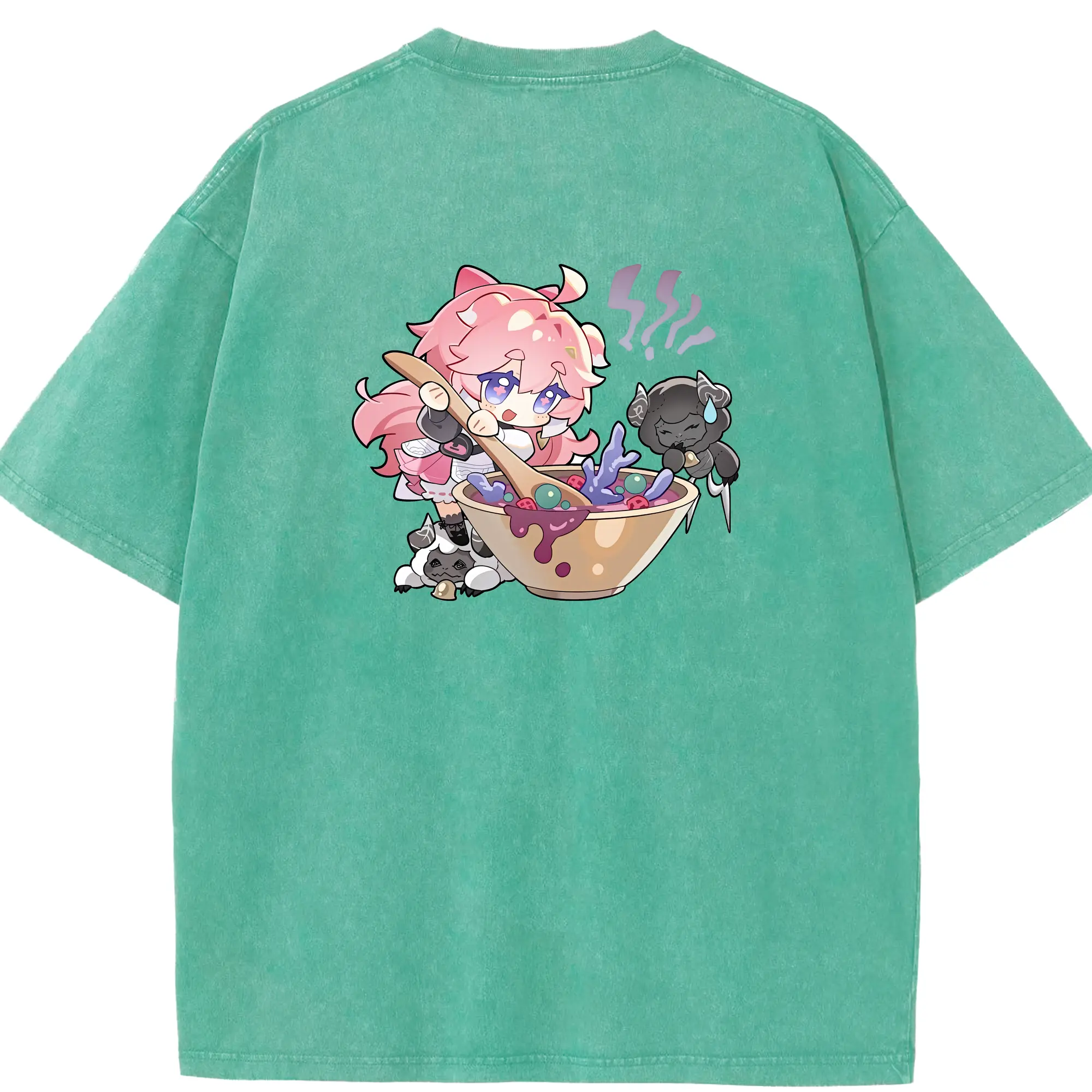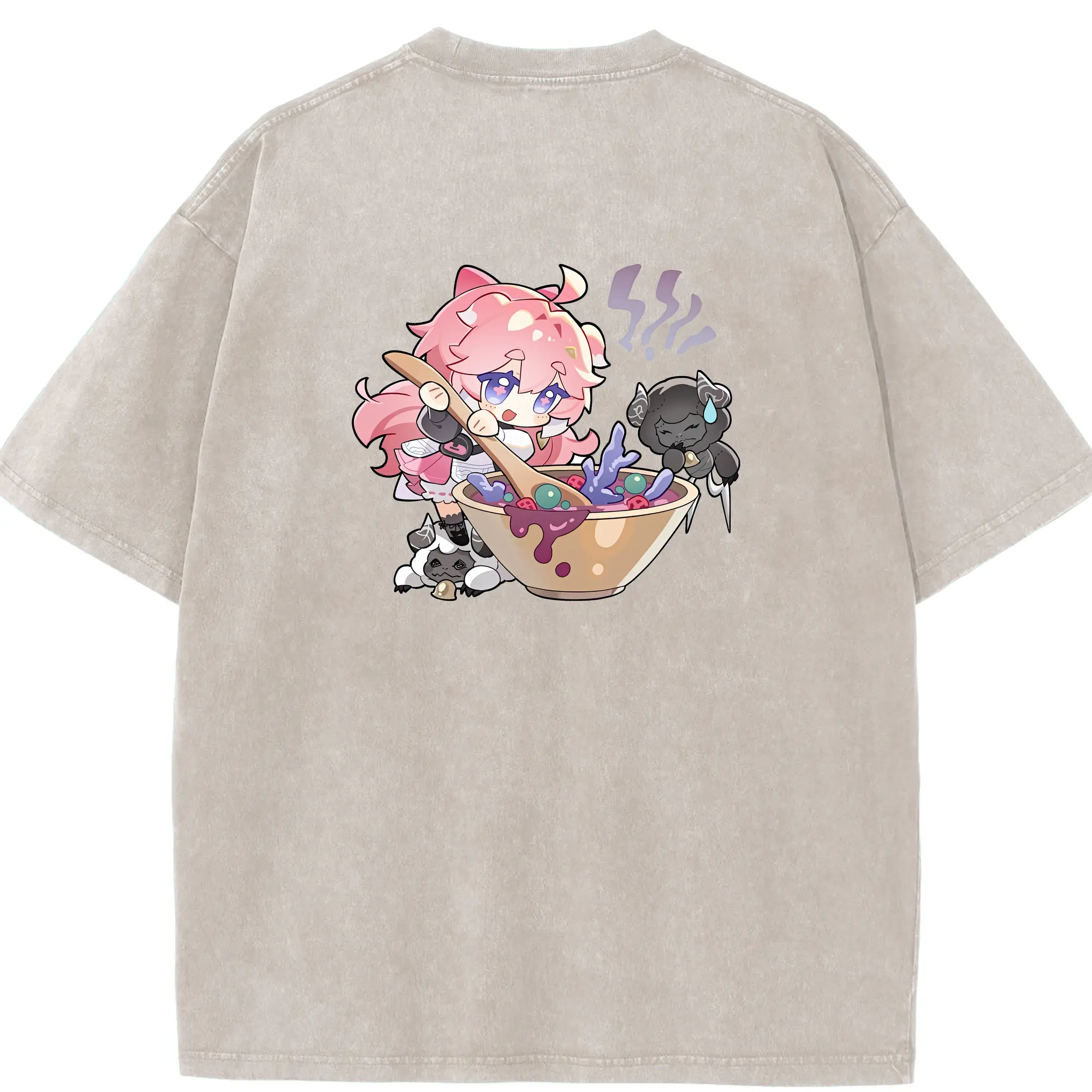 鳴潮 グッズ アンコ - 綿100% ヴィンテージ風 半袖Tシャツ ・ フロントプリント ・ 柔らか肌触り ・ 通気性 快適 ・ スポーツ カジュアル 外出用