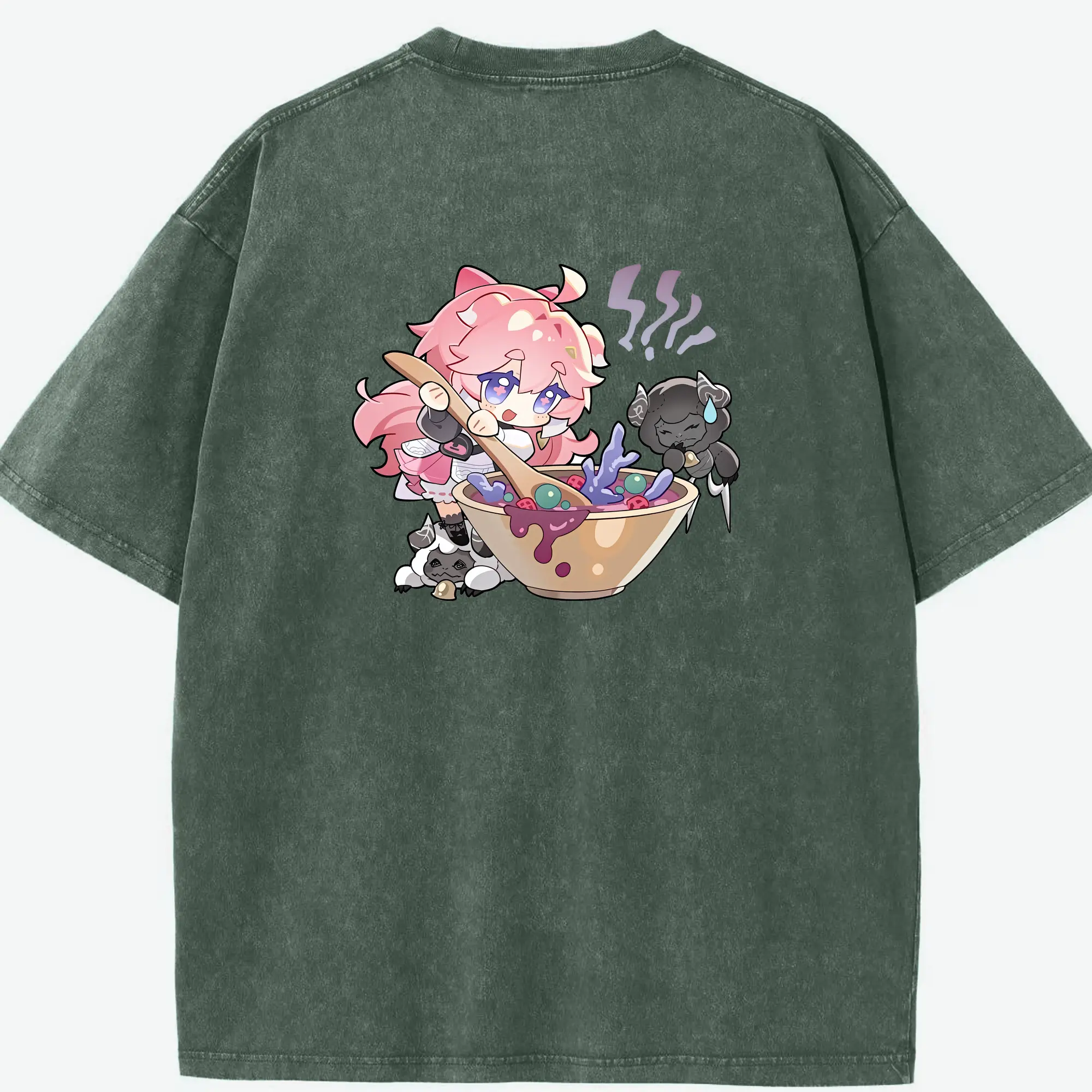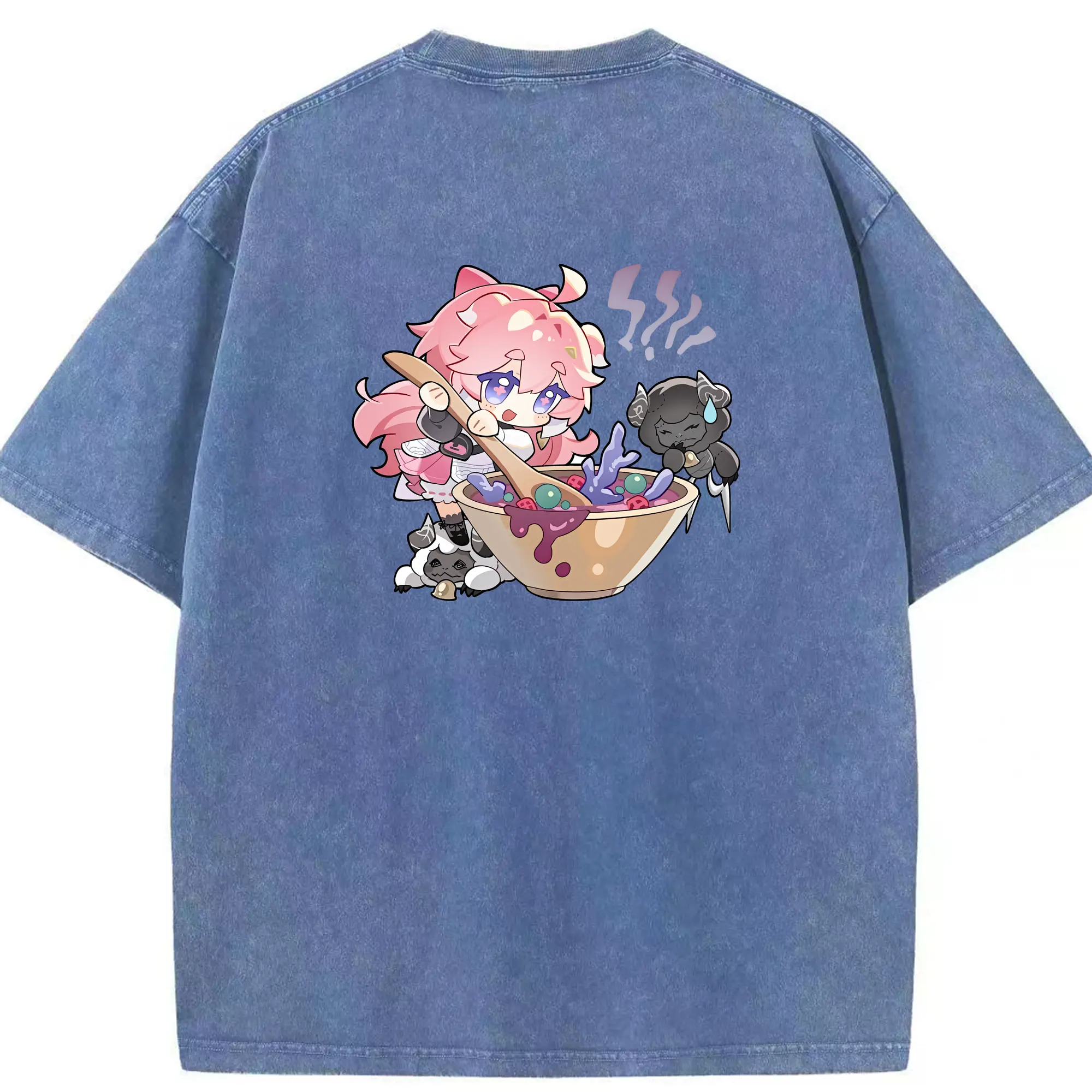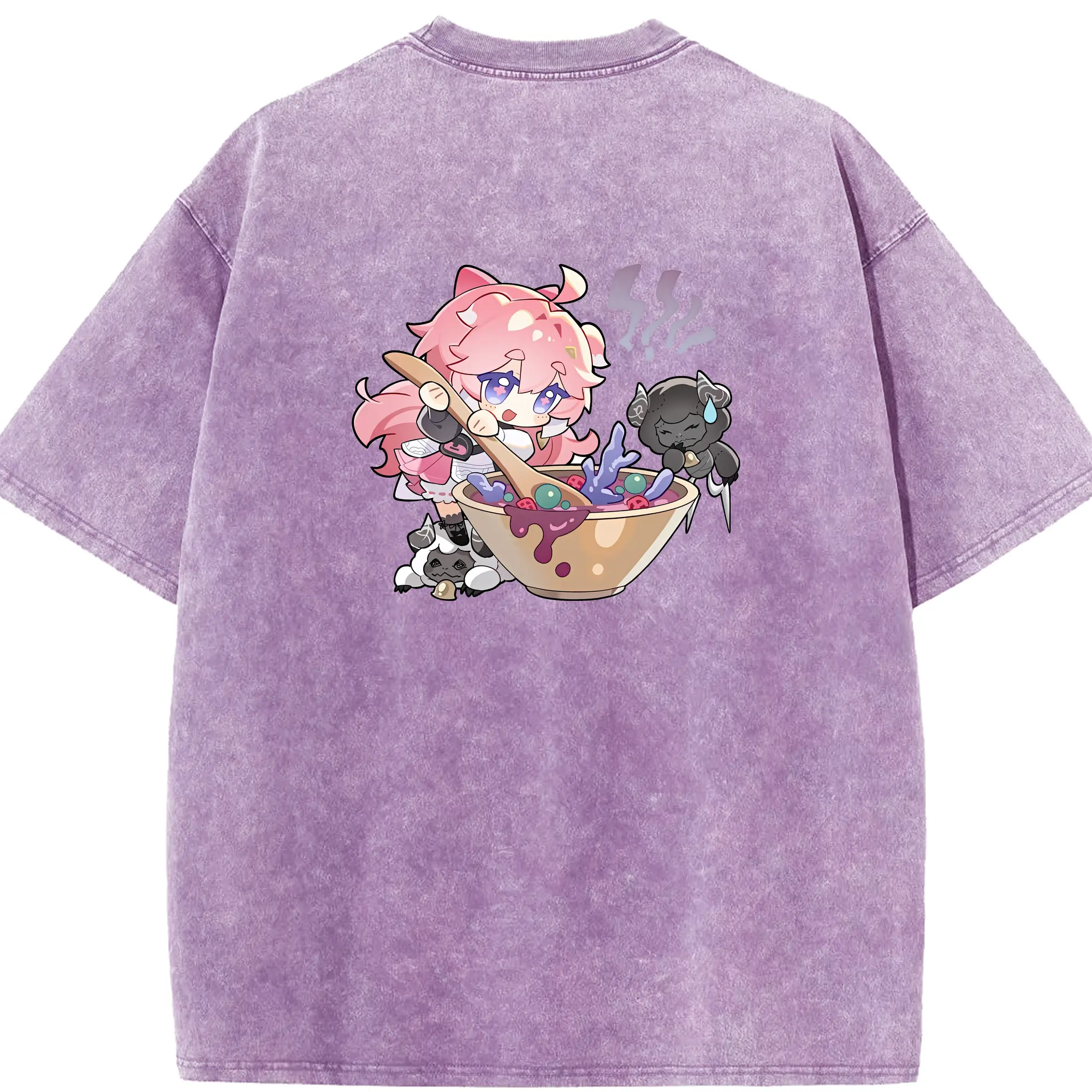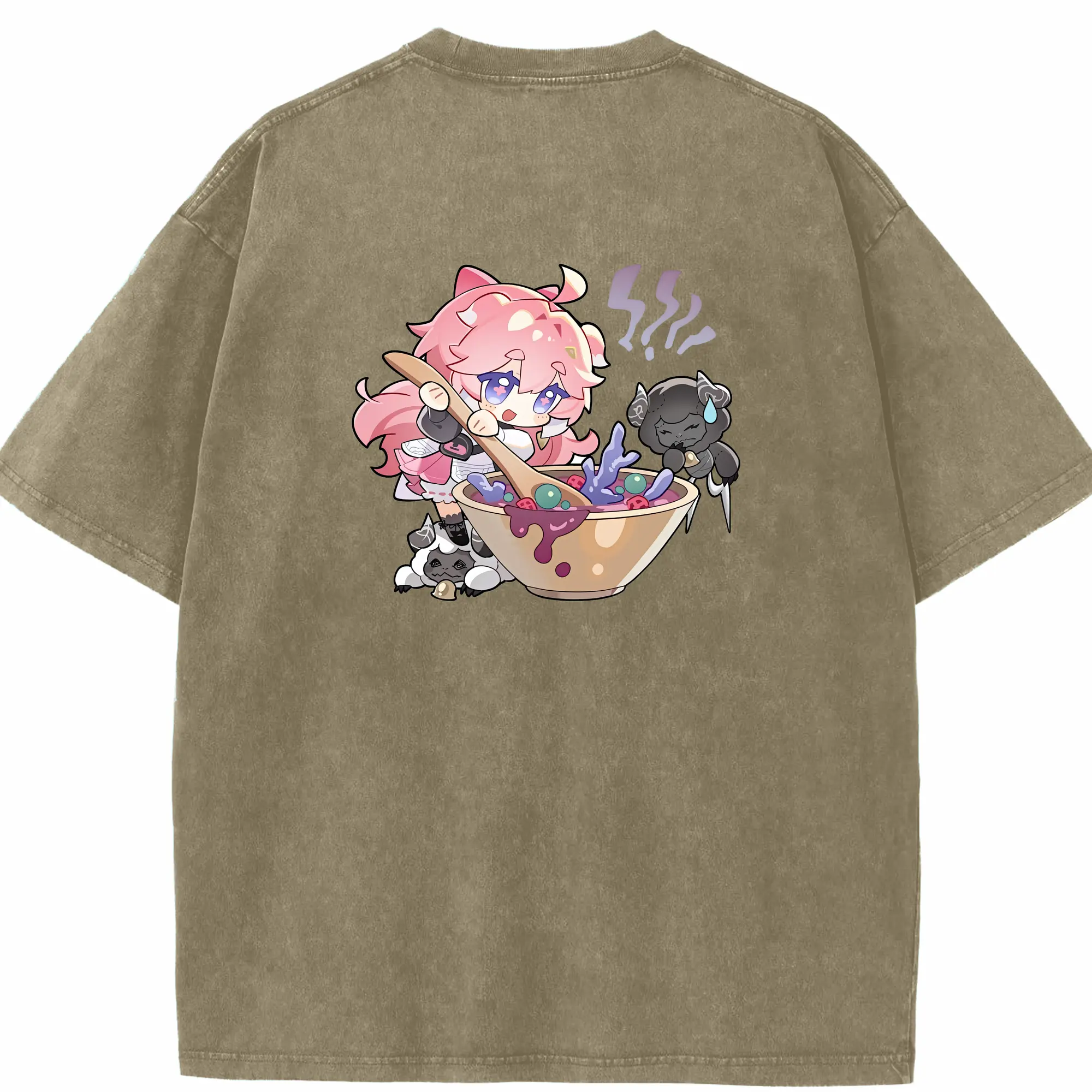 鳴潮 グッズ アンコ - 綿100% ヴィンテージ風 半袖Tシャツ ・ フロントプリント ・ 柔らか肌触り ・ 通気性 快適 ・ スポーツ カジュアル 外出用