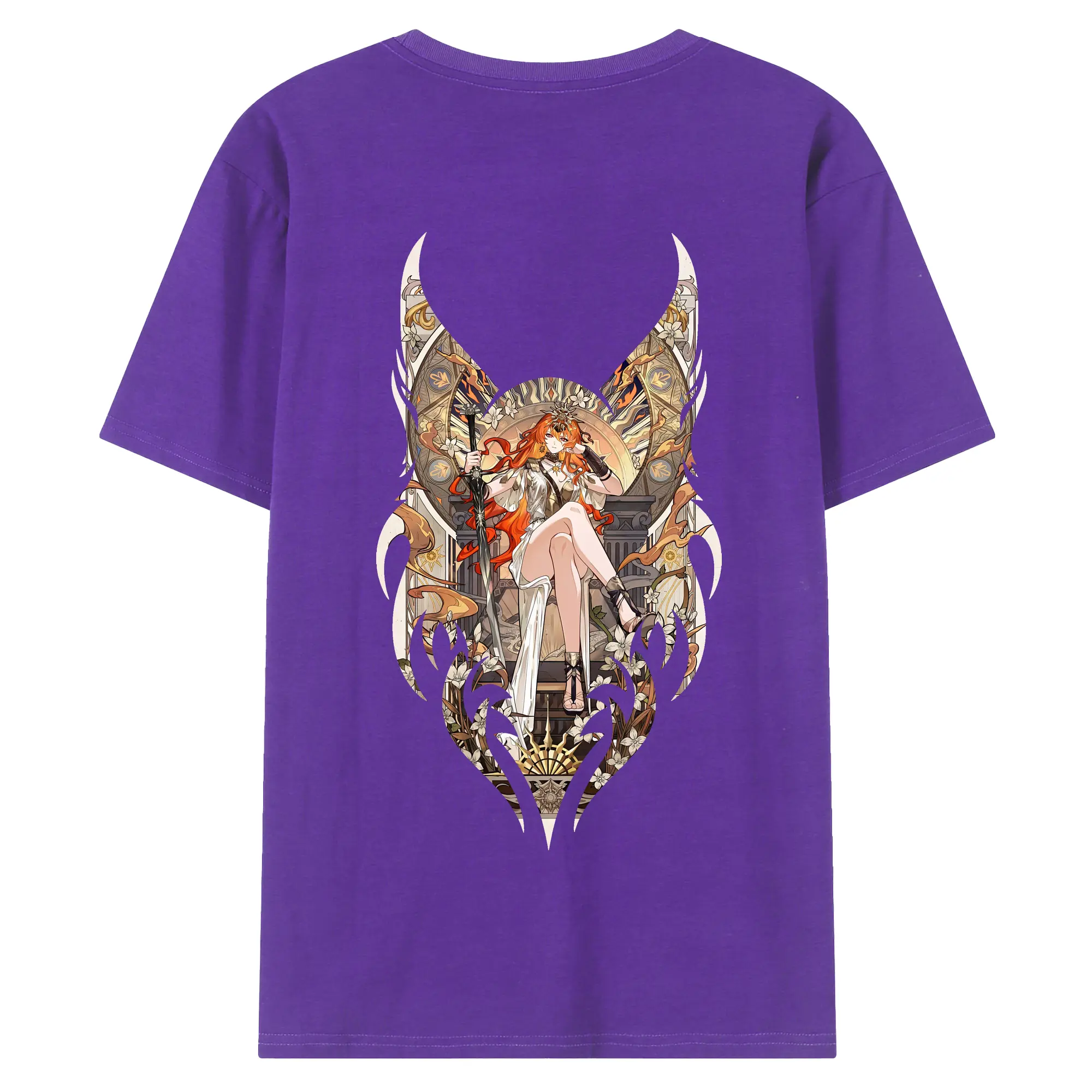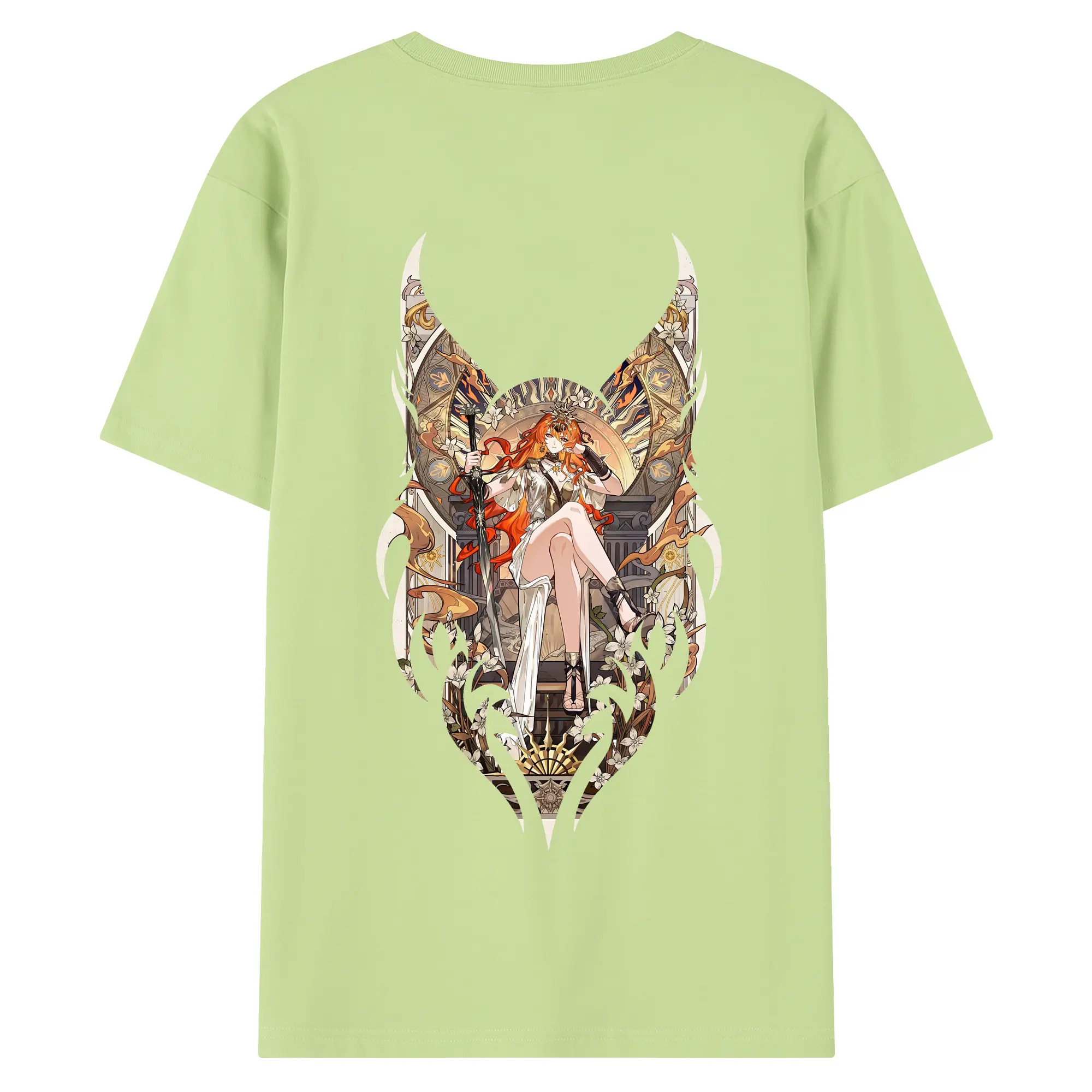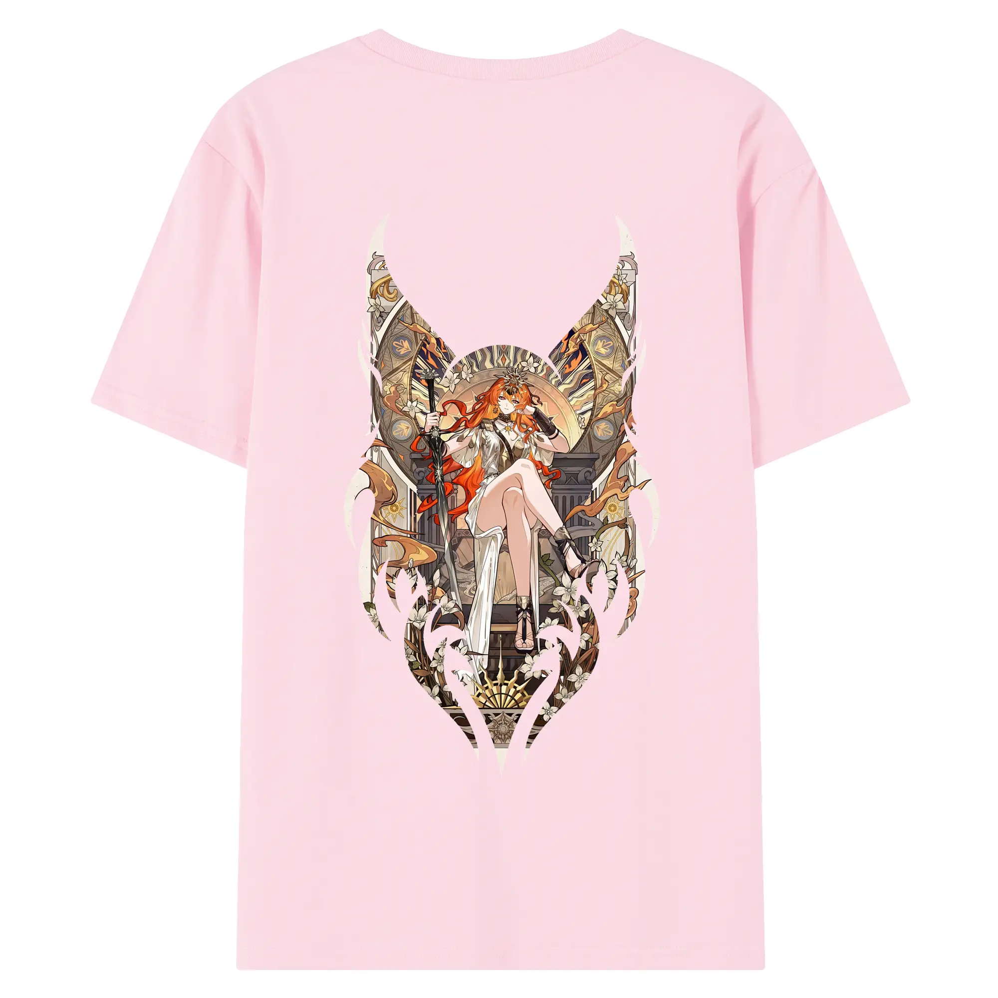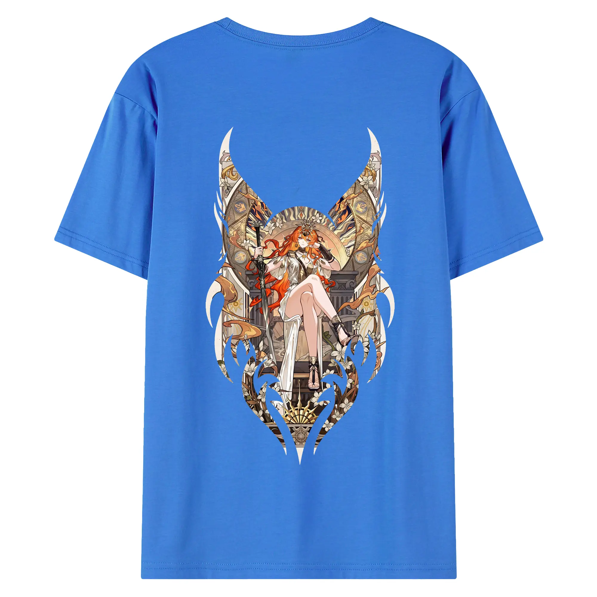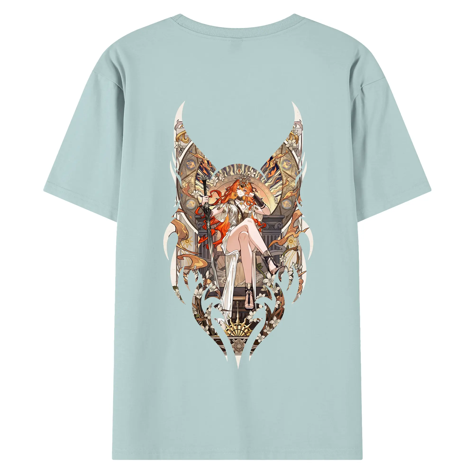 鳴潮 グッズ オーガスタ - 綿100% 半袖Tシャツ ・ フロントプリント ・ 快適 通気性 ・ 日常使い 散歩 スポーツ用