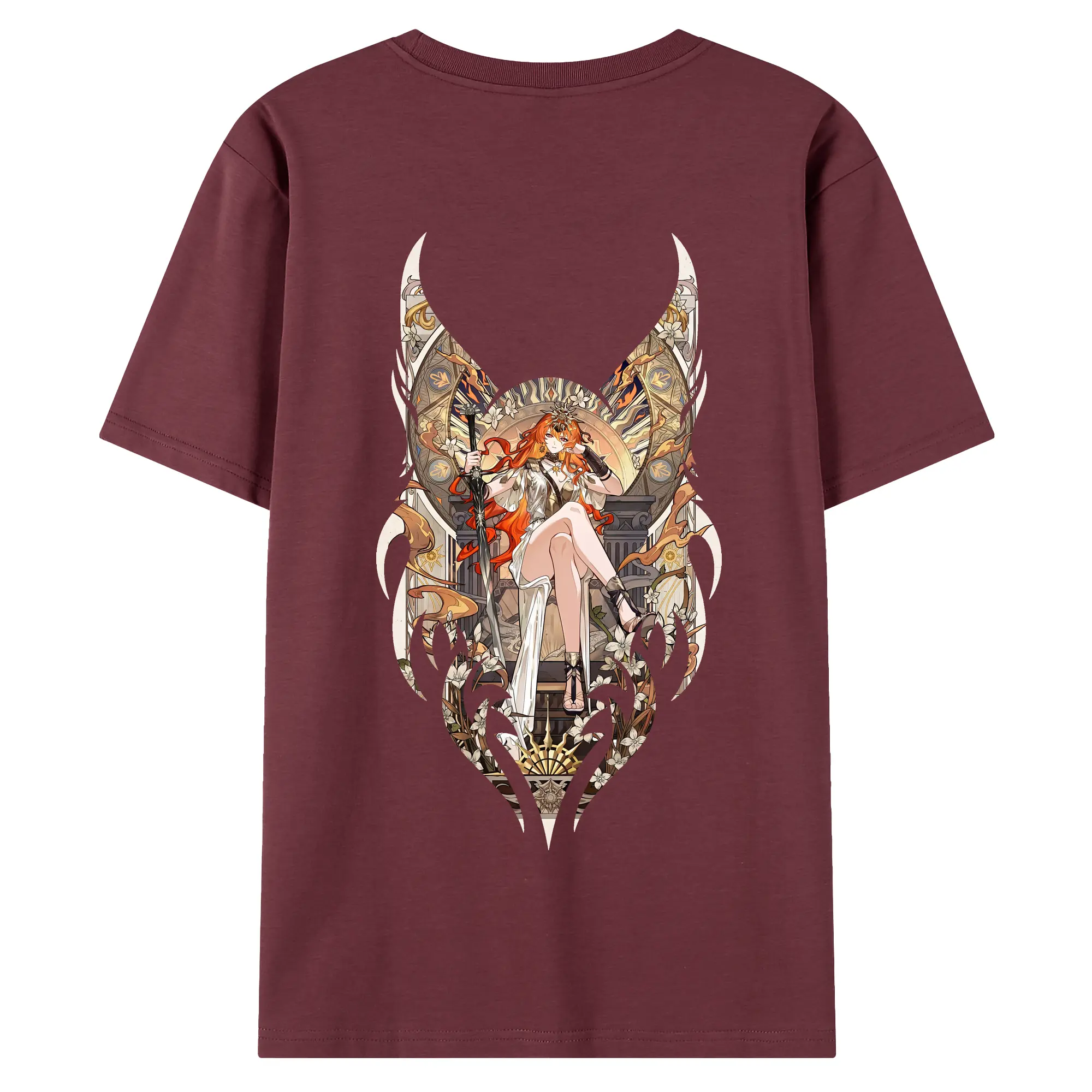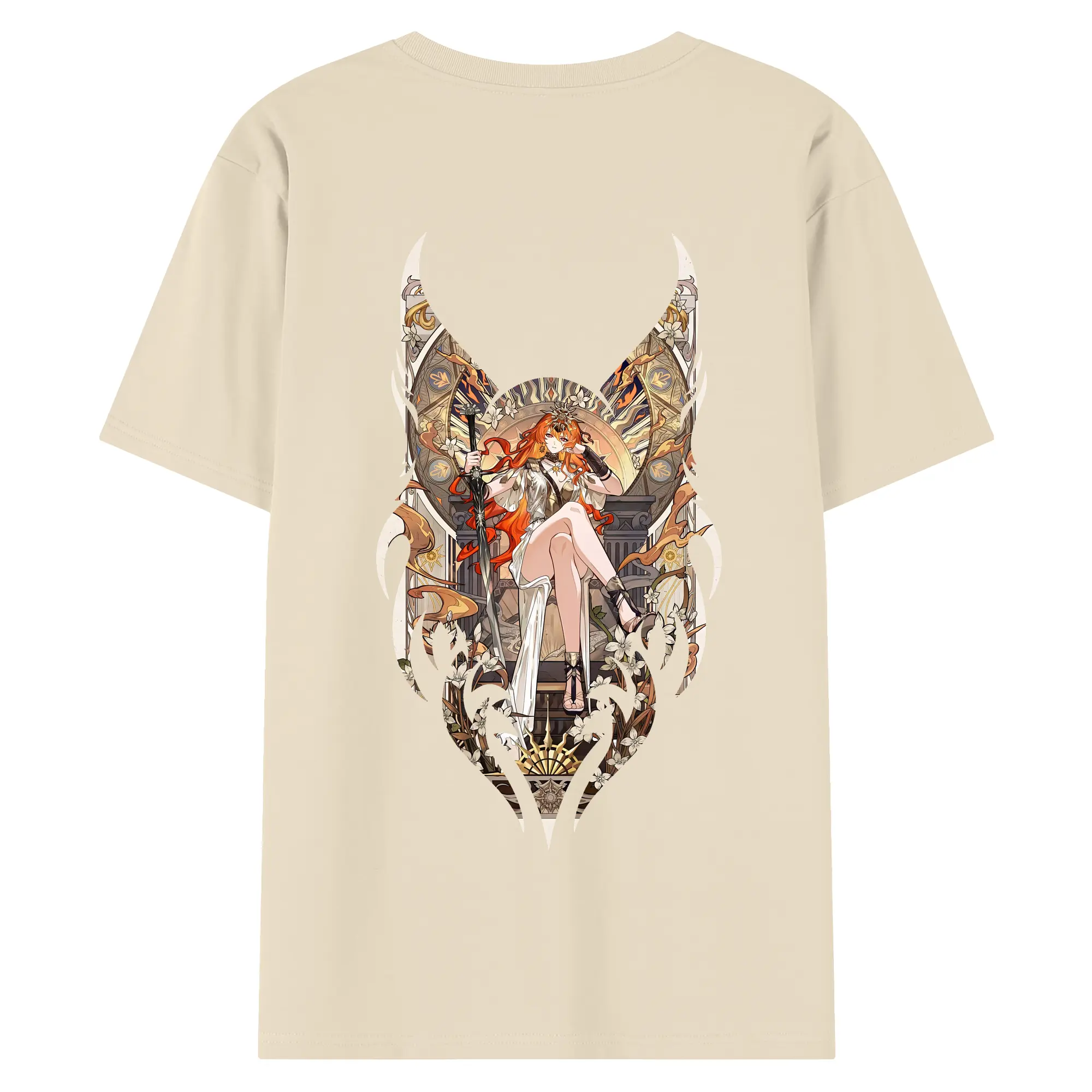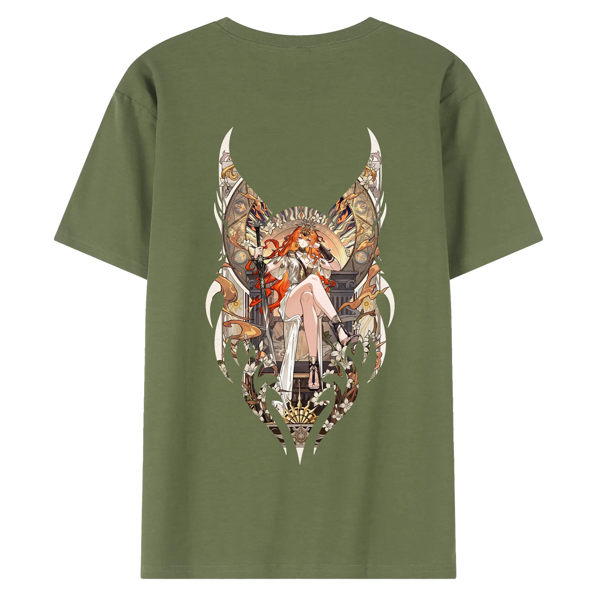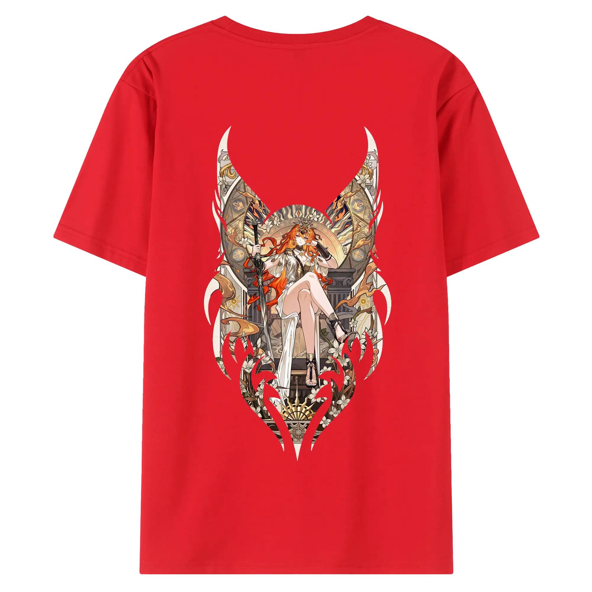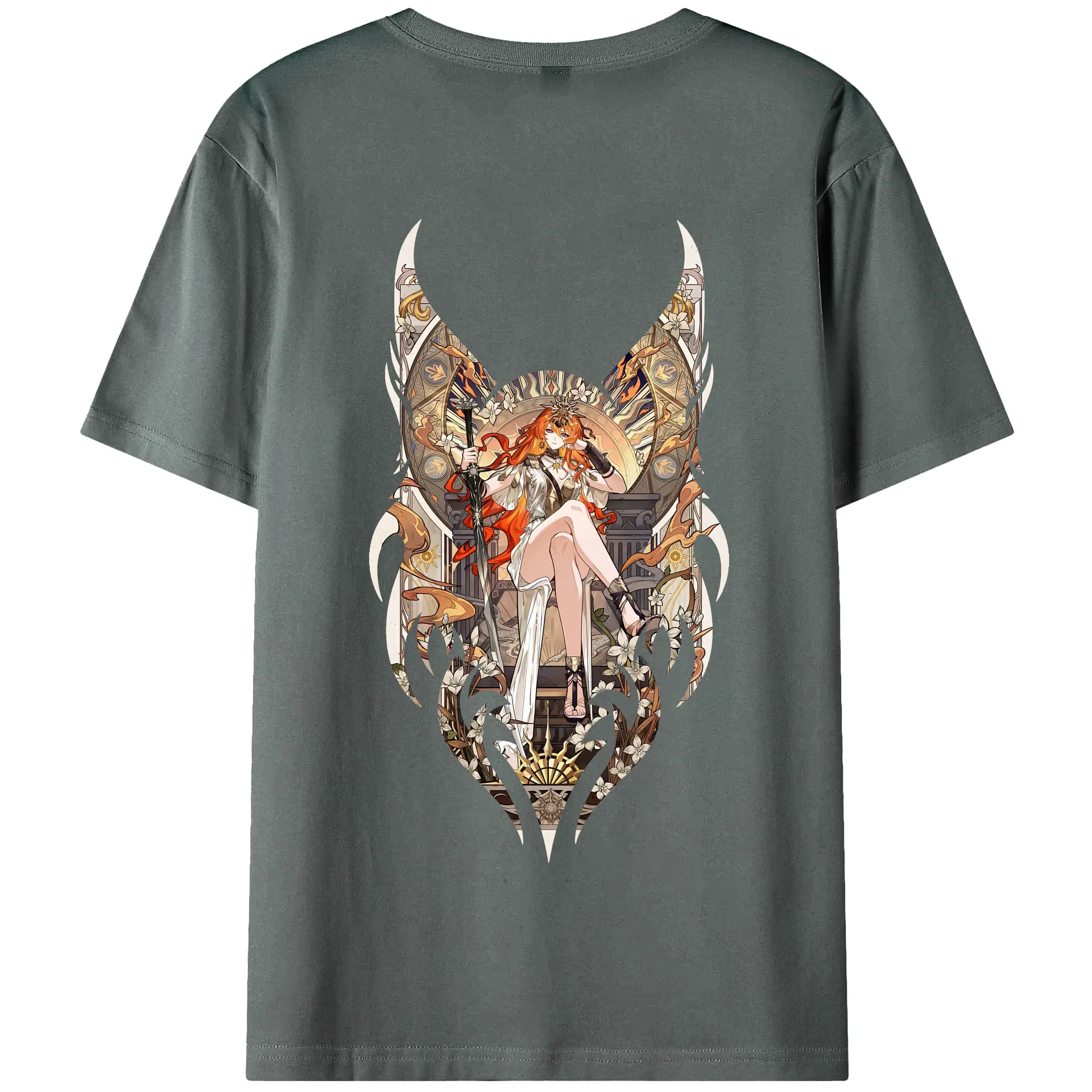 鳴潮 グッズ オーガスタ - 綿100% 半袖Tシャツ ・ フロントプリント ・ 快適 通気性 ・ 日常使い 散歩 スポーツ用