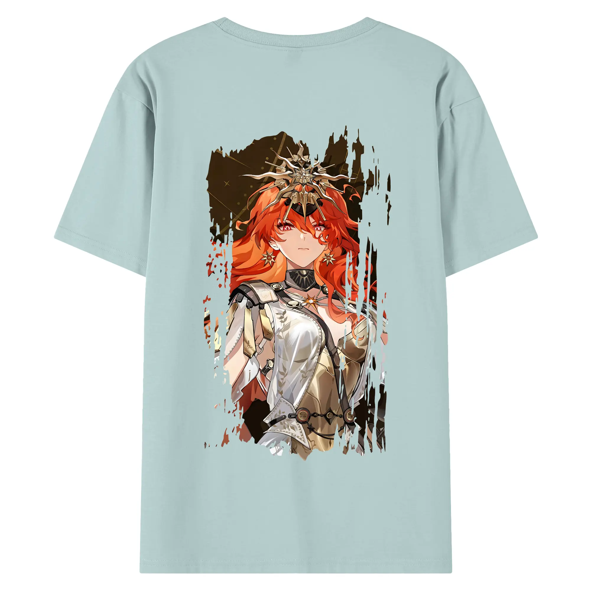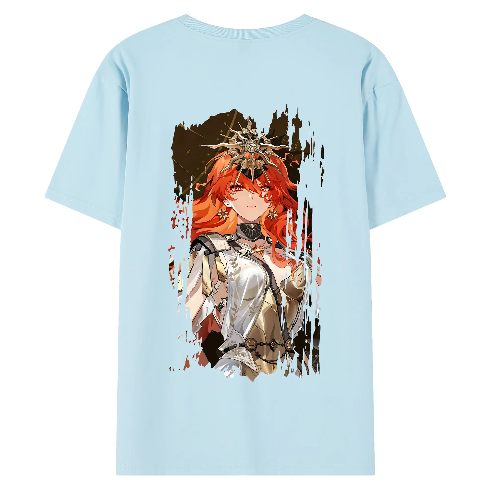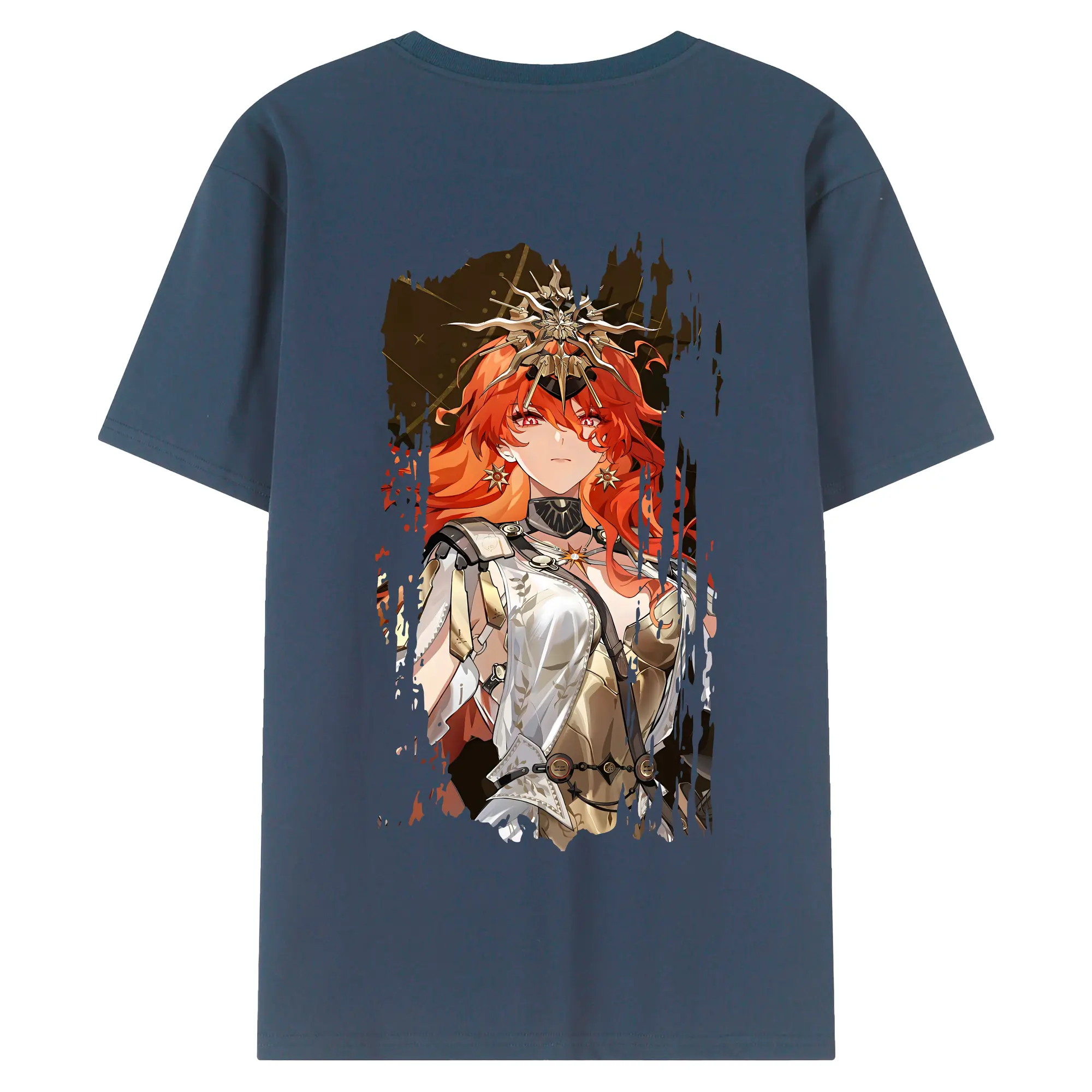 鳴潮 グッズ オーガスタ - 綿100% 半袖Tシャツ ・ フロントプリント ・ 快適 通気性 ・ 日常使い 散歩 スポーツ用