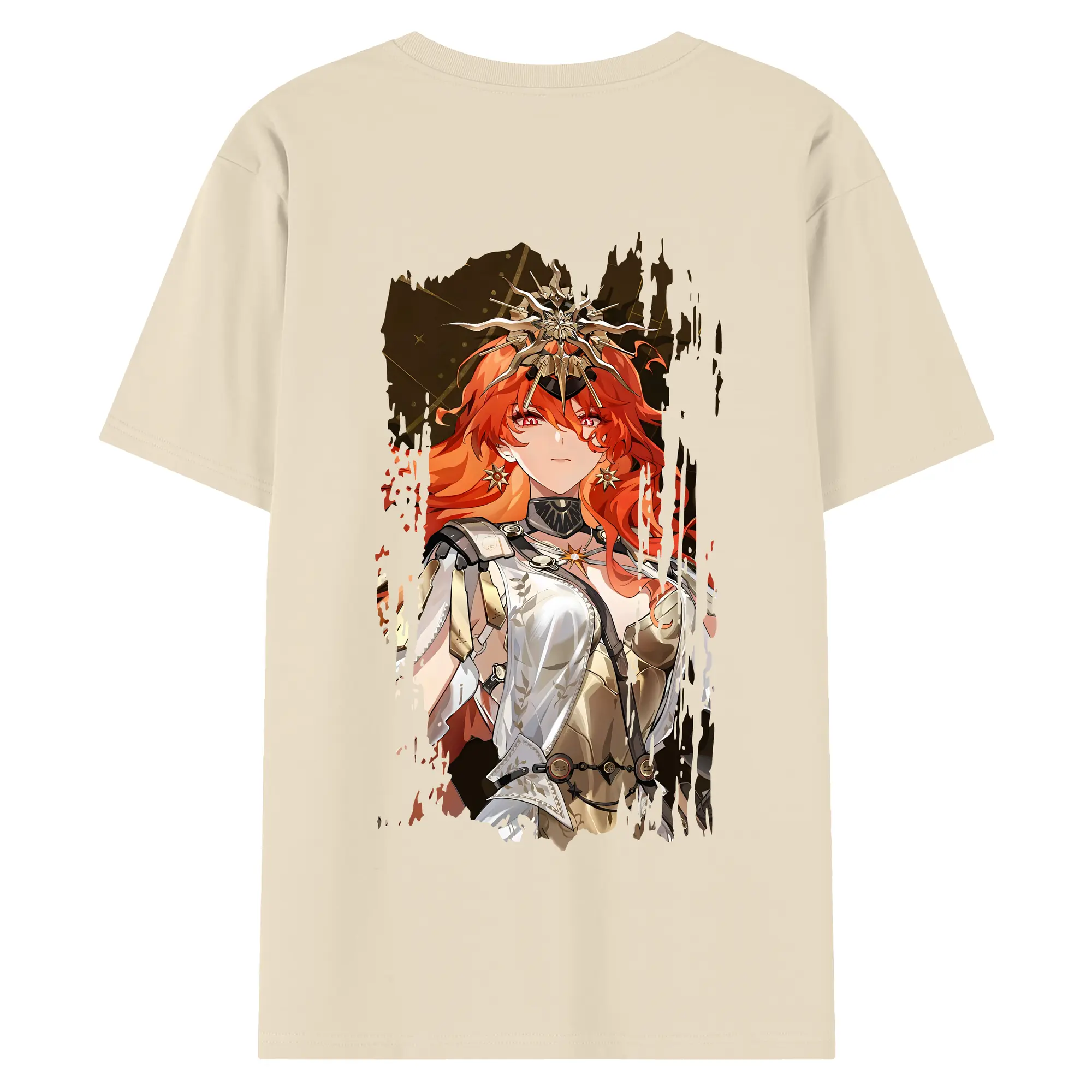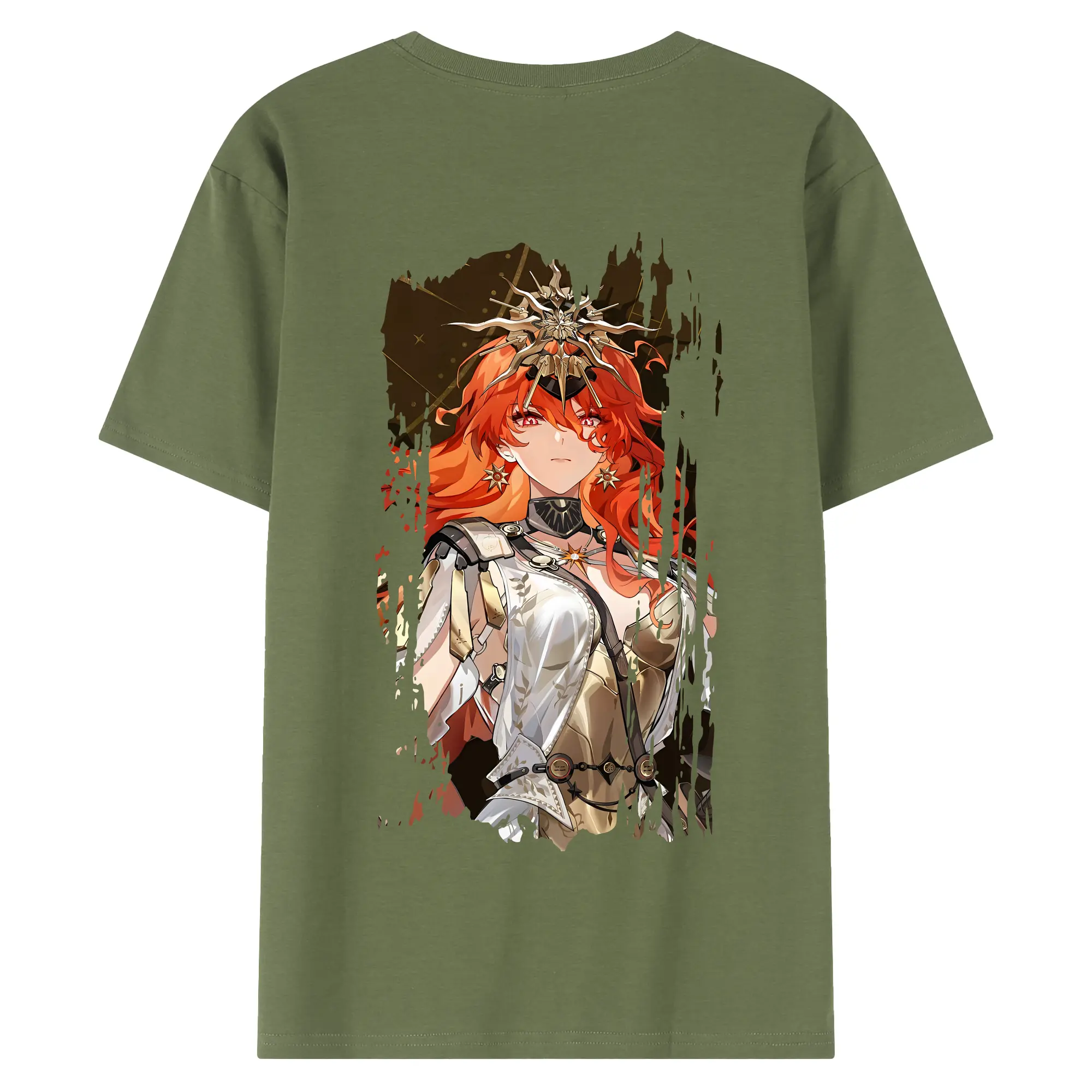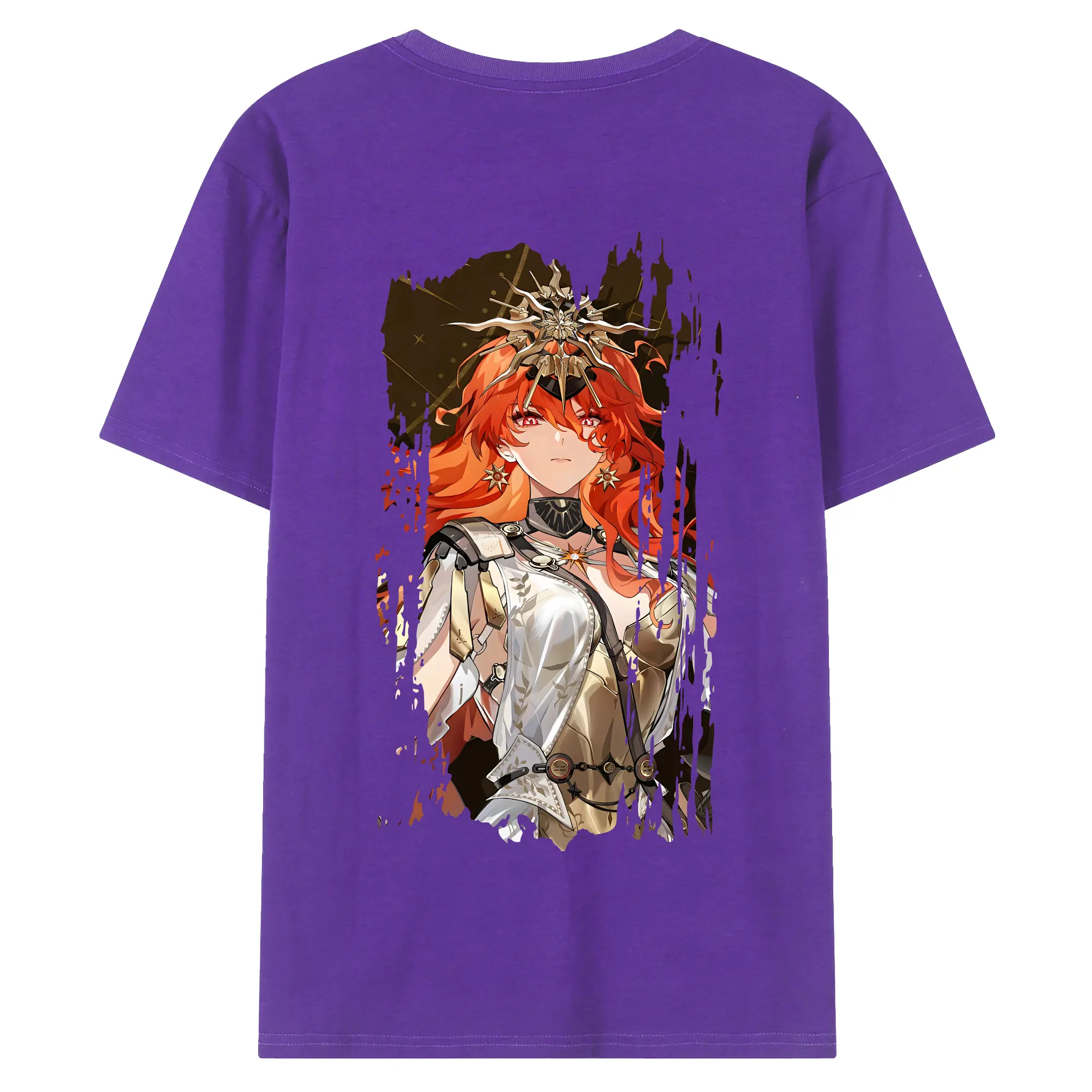 鳴潮 グッズ オーガスタ - 綿100% 半袖Tシャツ ・ フロントプリント ・ 快適 通気性 ・ 日常使い 散歩 スポーツ用