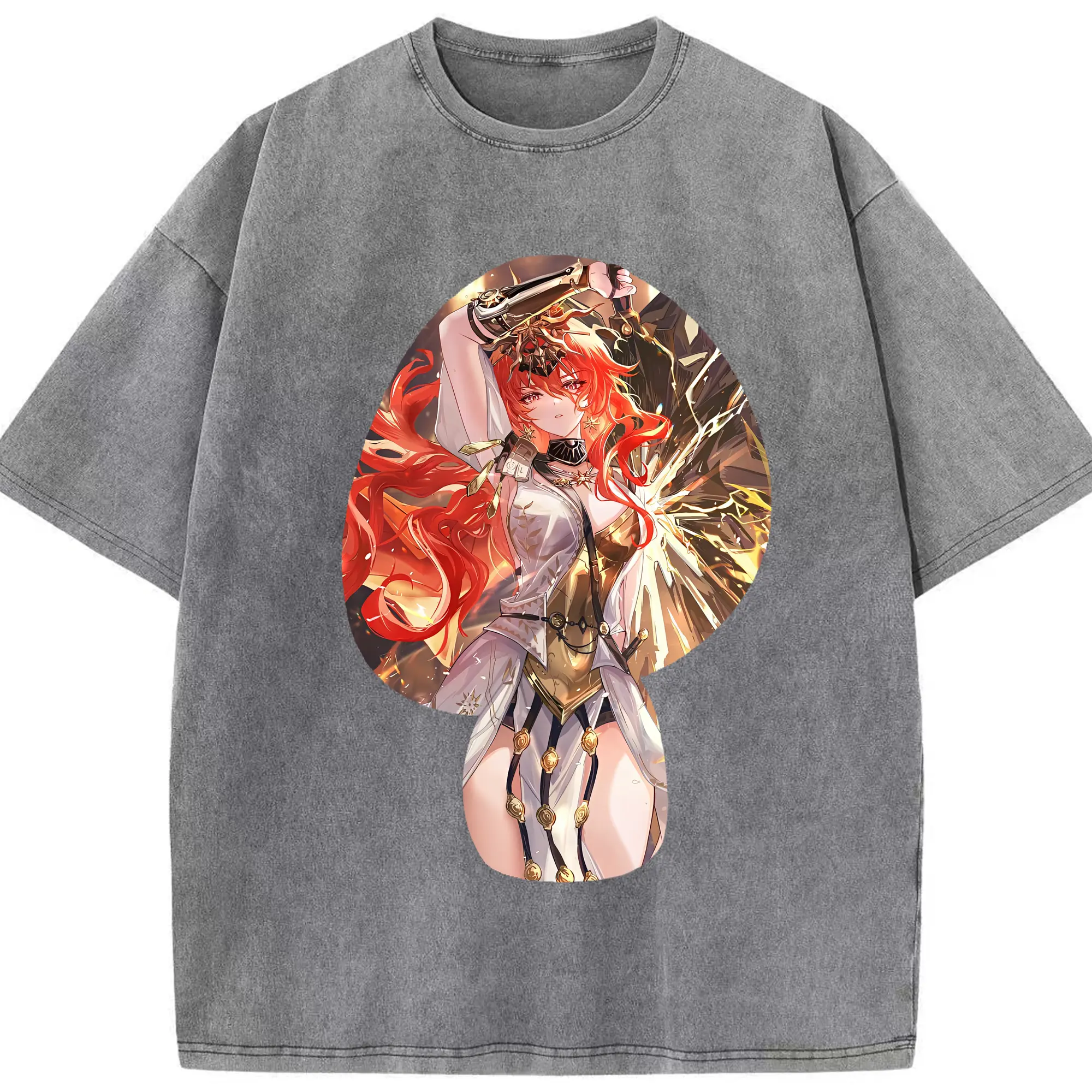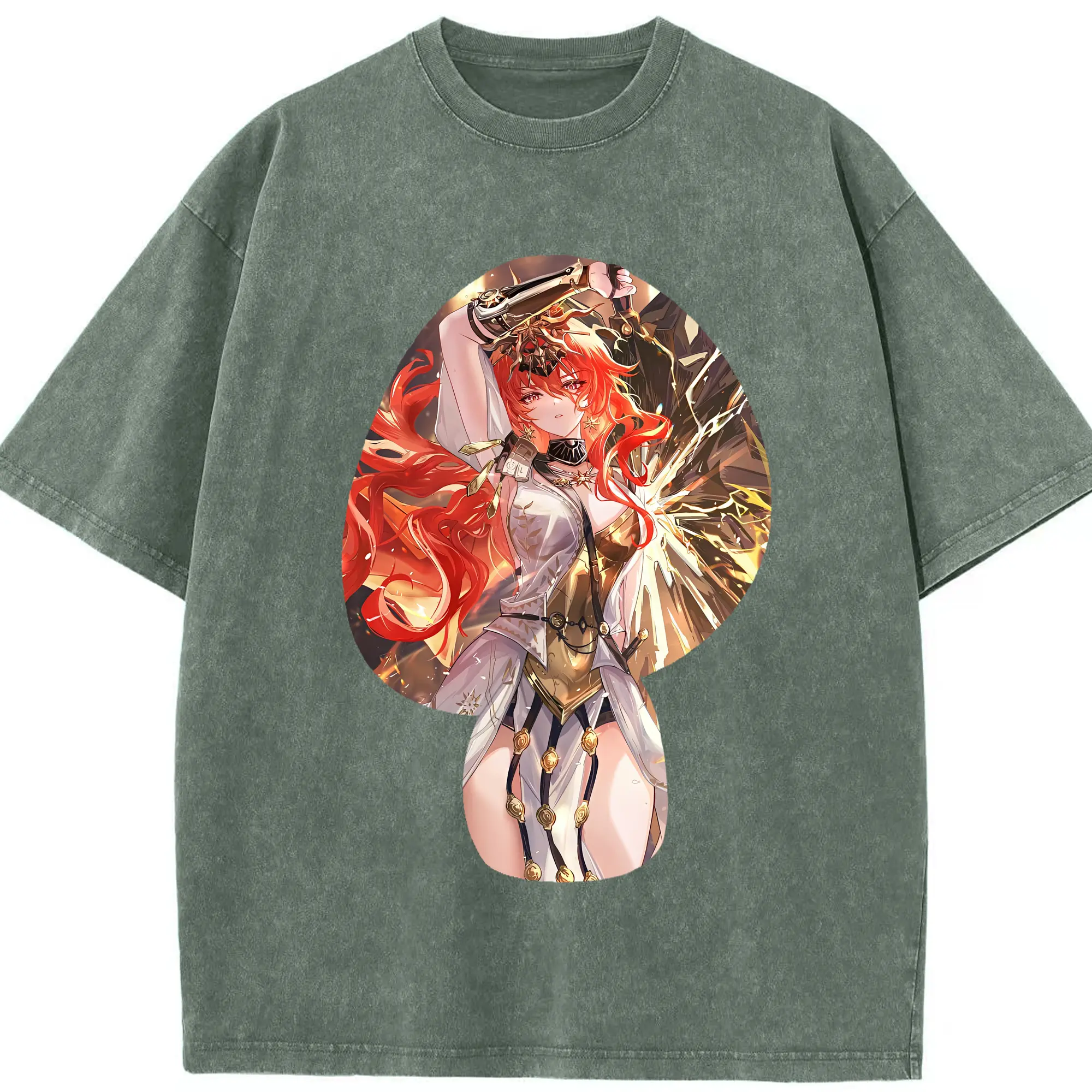 アズールレーン グッズ,イラストリアス - 綿100% ヴィンテージ風 半袖Tシャツ ・ フロントプリント ・ 柔らか肌触り ・ 通気性 快適 ・ スポーツ カジュアル 外出用