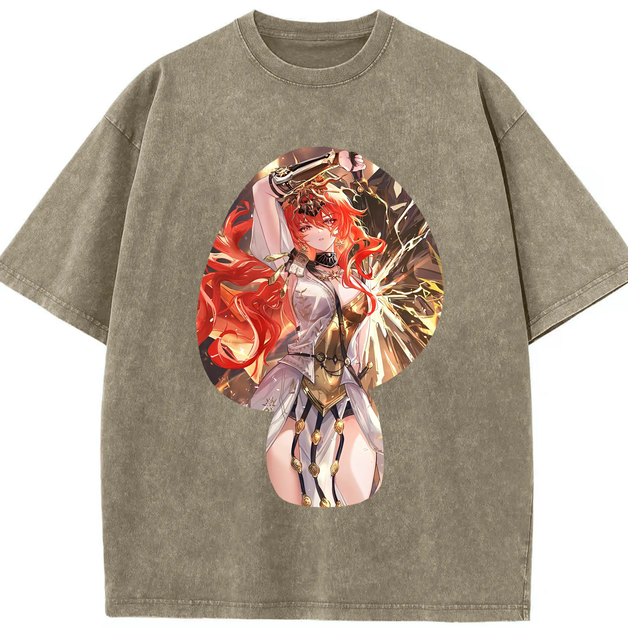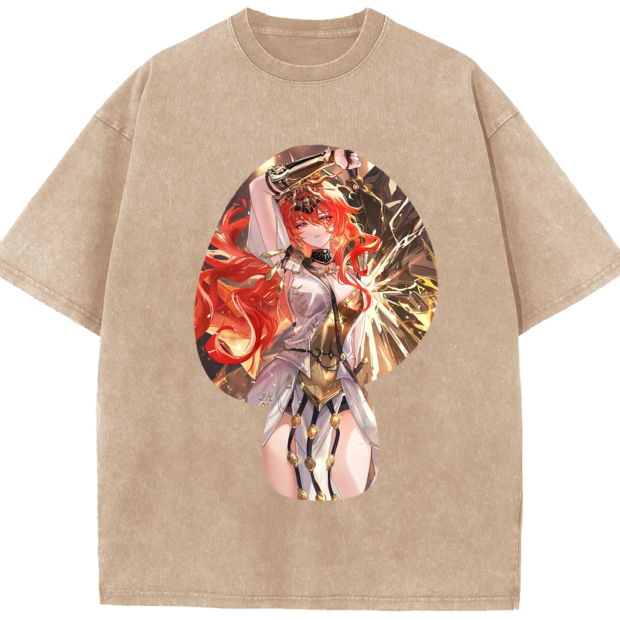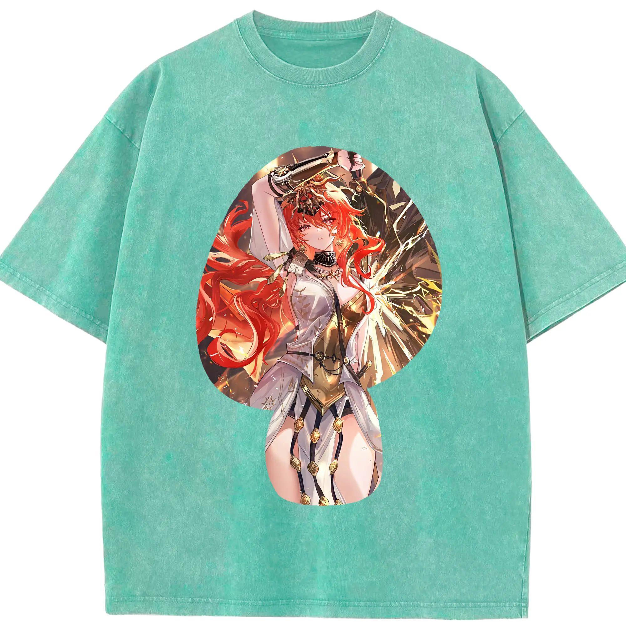 原 神 グッズ フリンズ - 綿100% ヴィンテージ風 半袖Tシャツ ・ フロントプリント ・ 柔らか肌触り ・ 通気性 快適 ・ スポーツ カジュアル 外出用
