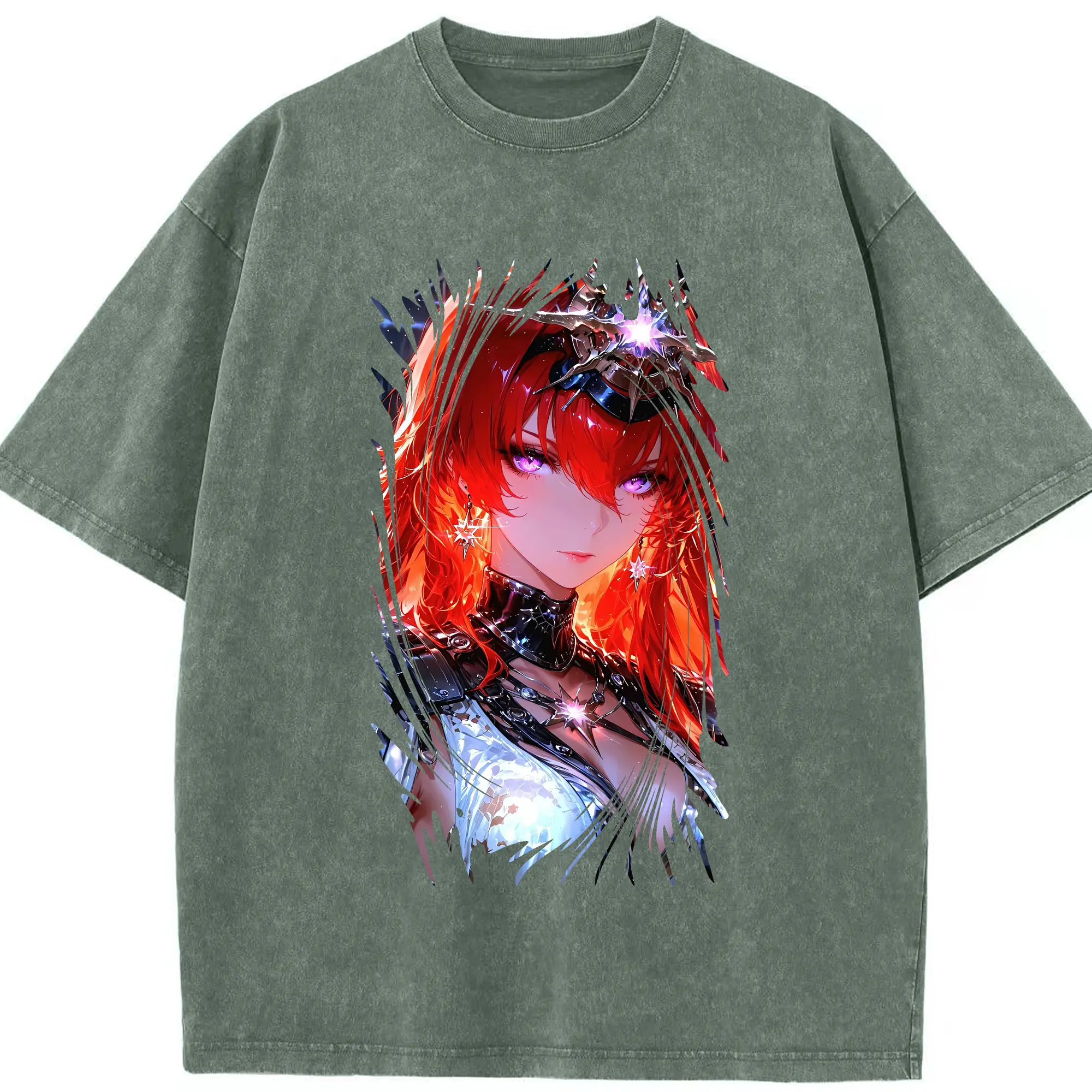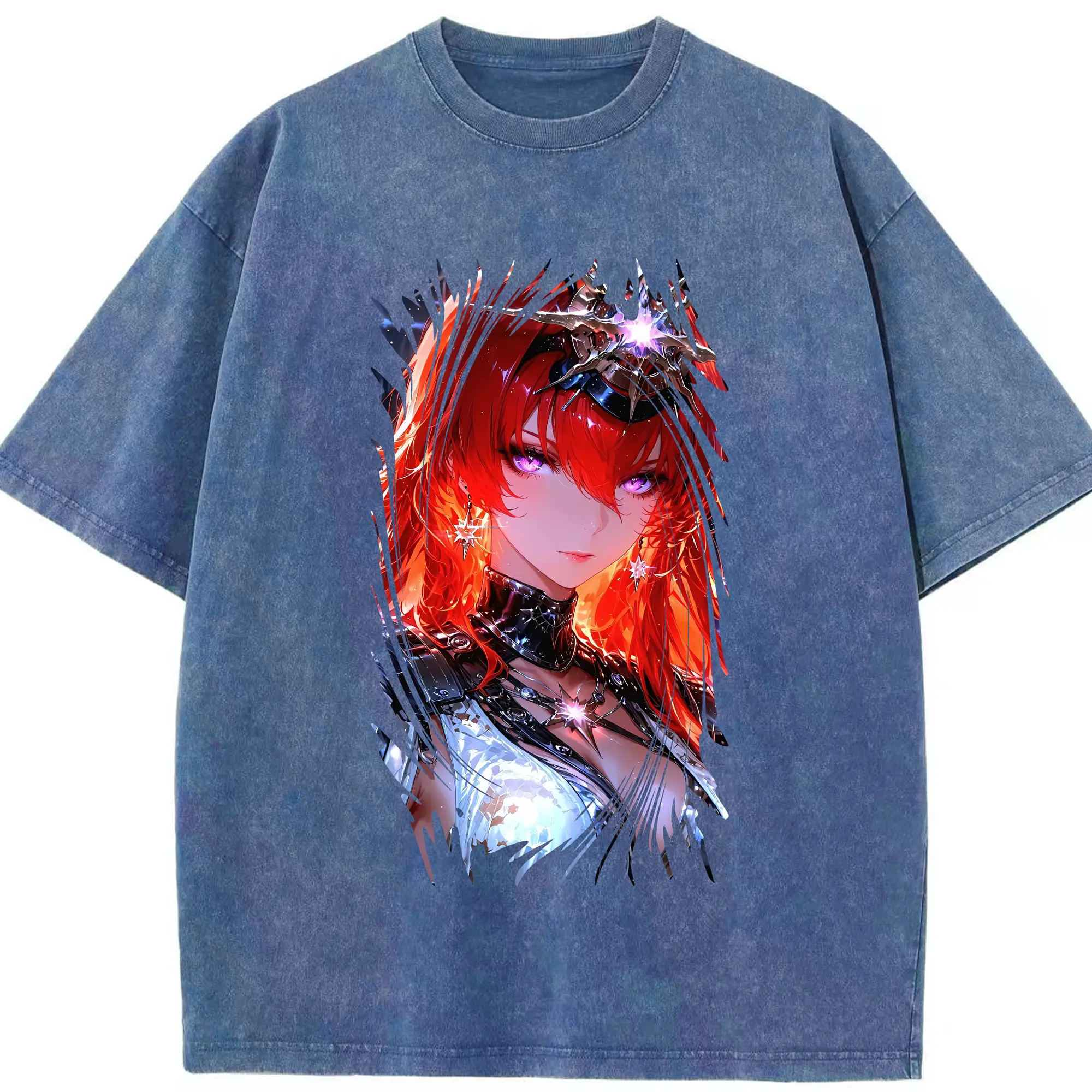鳴潮 グッズ オーガスタ - 綿100% ヴィンテージ風 半袖Tシャツ ・ 背面プリント ・ 柔らか肌触り ・ 通気性 快適 ・ スポーツ カジュアル 外出用
