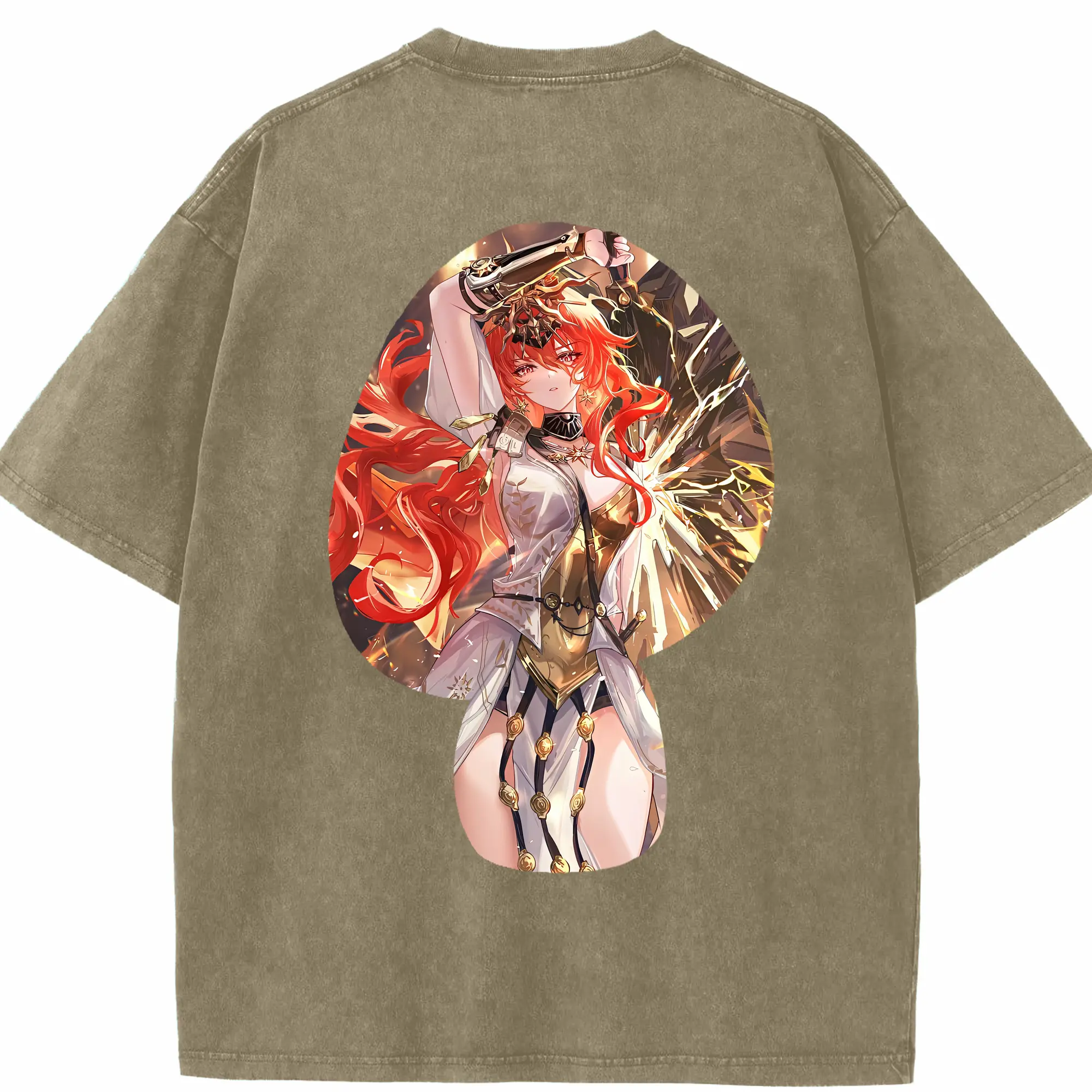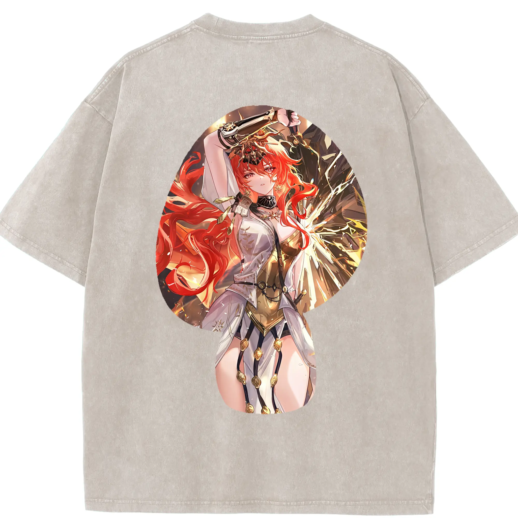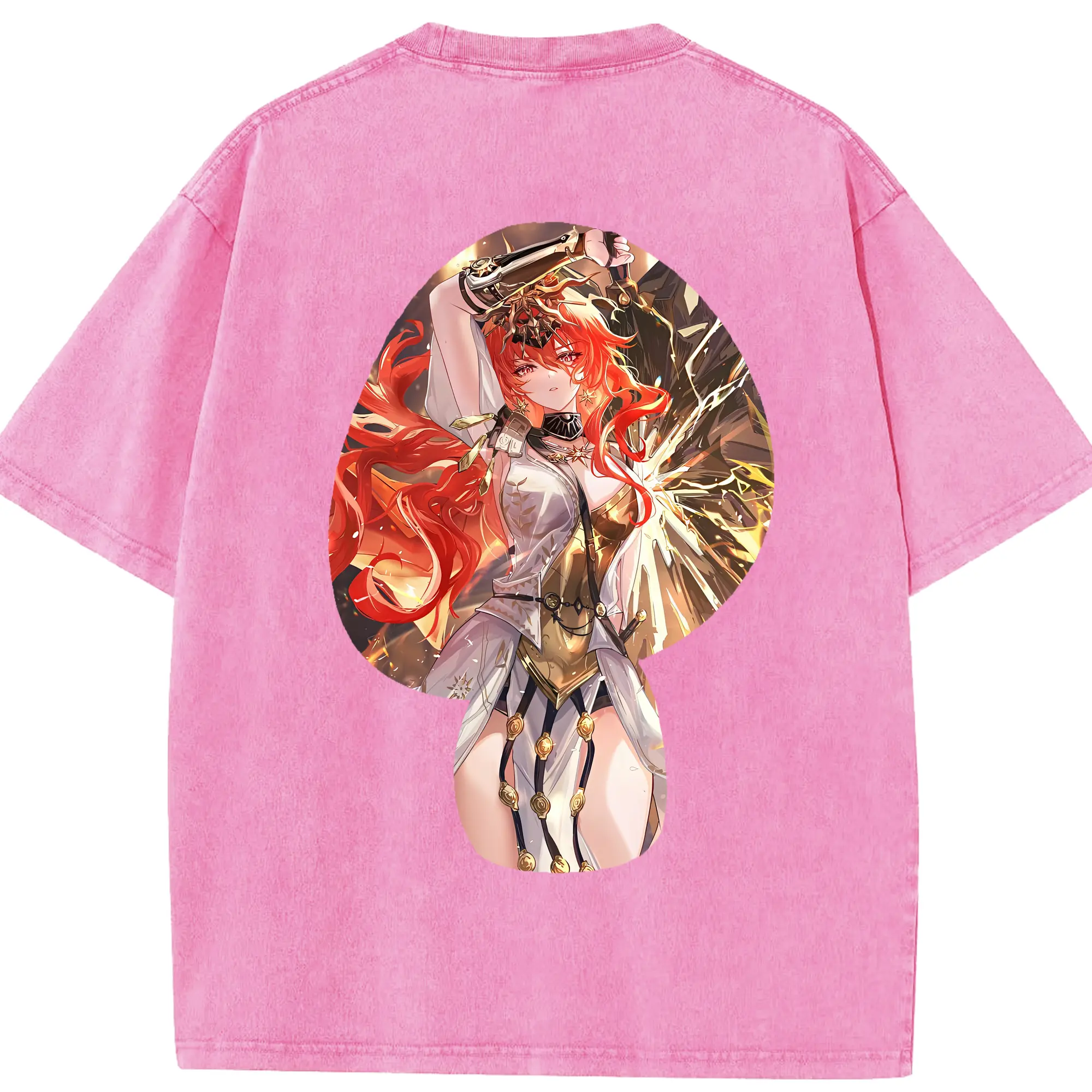 鳴潮 グッズ オーガスタ - 綿100% ヴィンテージ風 半袖Tシャツ ・ フロントプリント ・ 柔らか肌触り ・ 通気性 快適 ・ スポーツ カジュアル 外出用