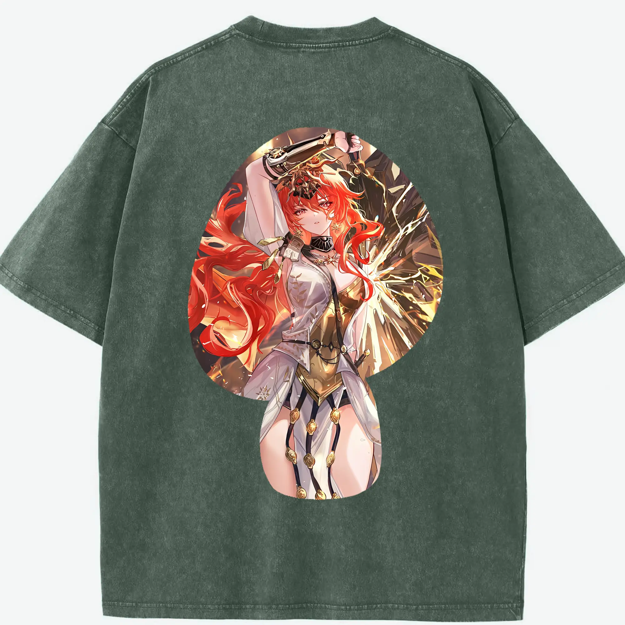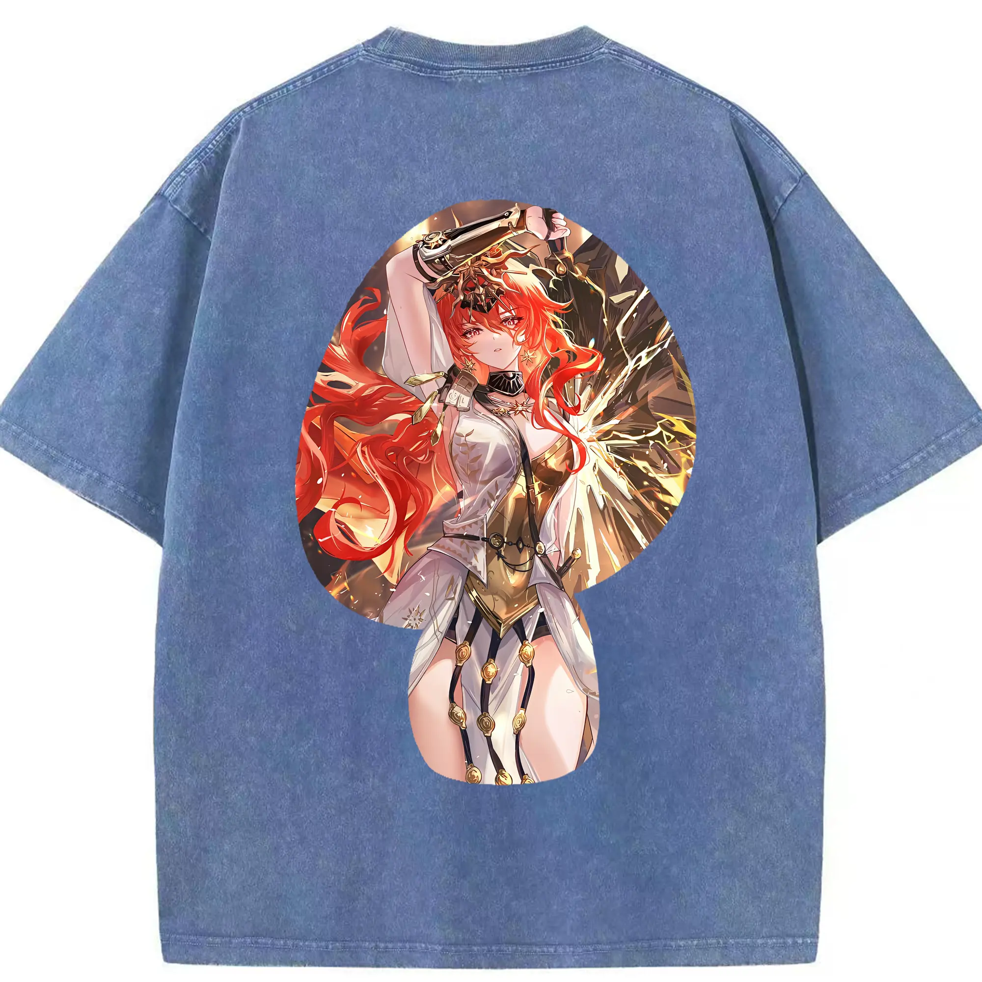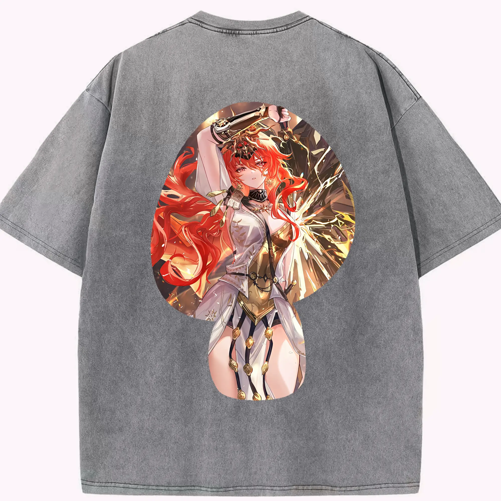 鳴潮 グッズ オーガスタ - 綿100% ヴィンテージ風 半袖Tシャツ ・ フロントプリント ・ 柔らか肌触り ・ 通気性 快適 ・ スポーツ カジュアル 外出用
