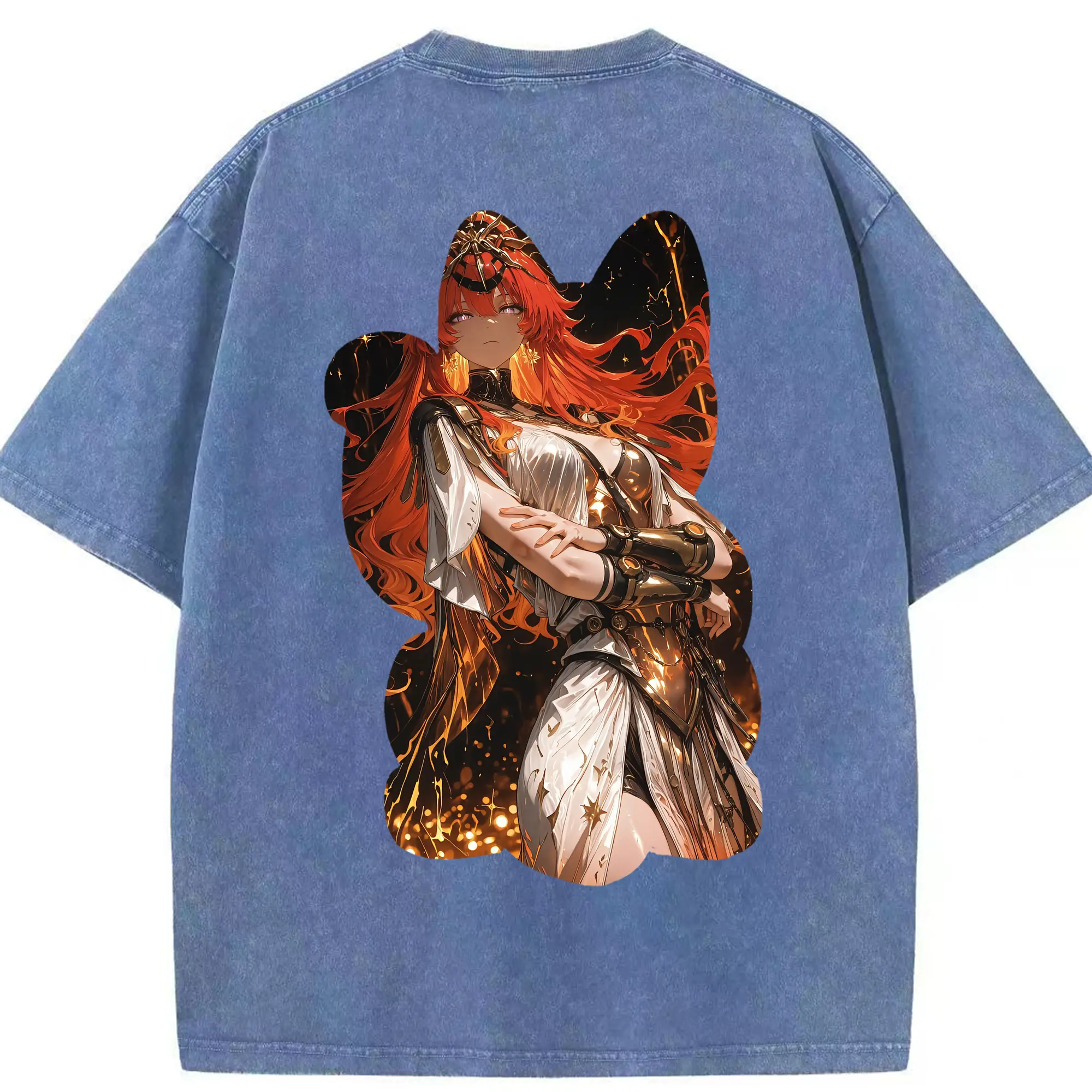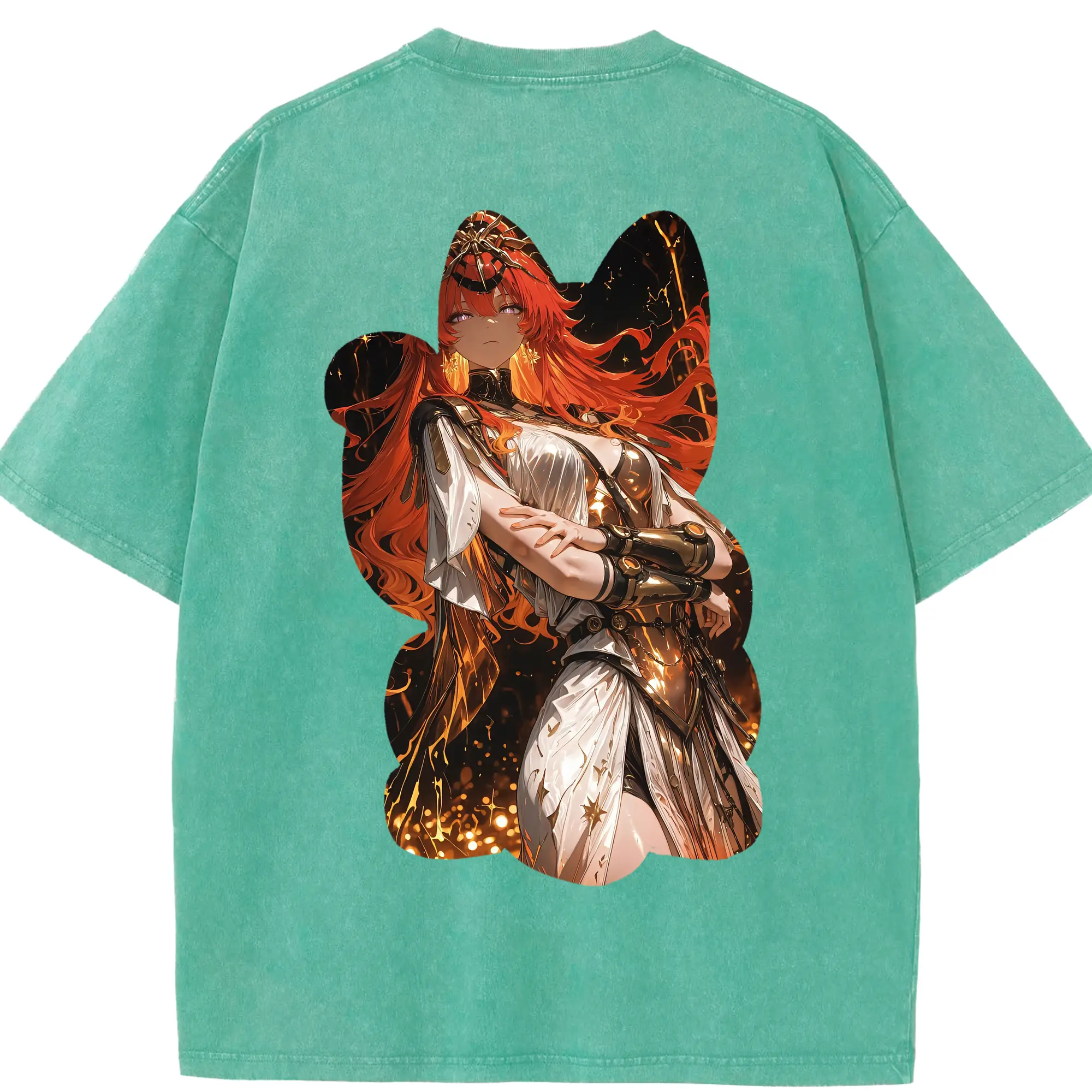 鳴潮 グッズ オーガスタ - 綿100% ヴィンテージ風 半袖Tシャツ ・ フロントプリント ・ 柔らか肌触り ・ 通気性 快適 ・ スポーツ カジュアル 外出用