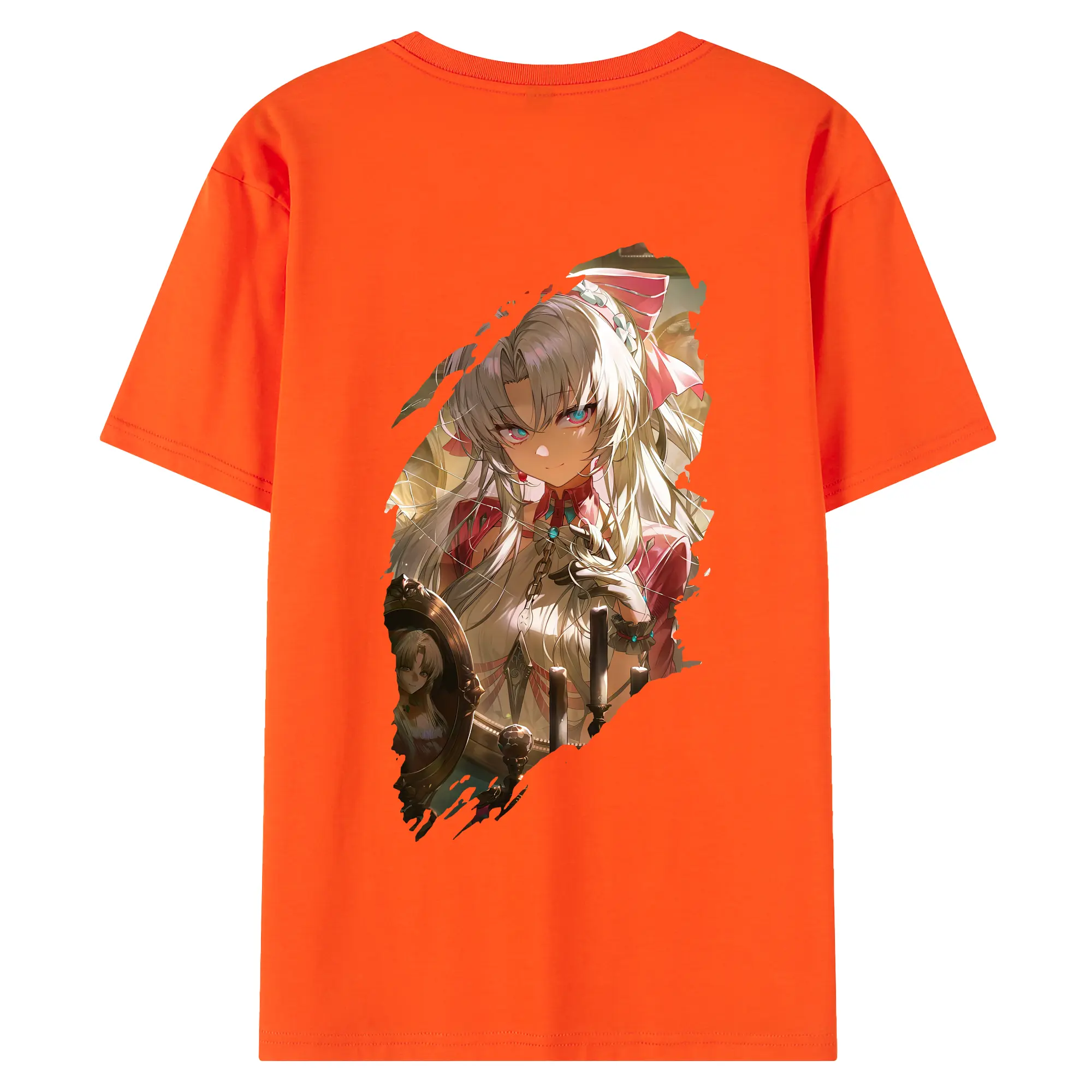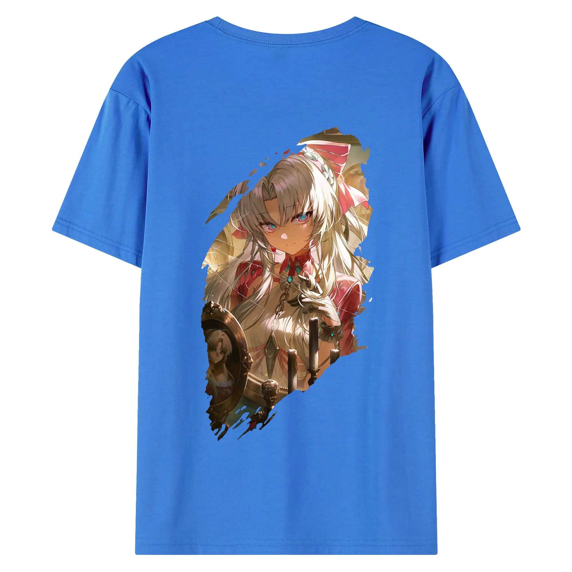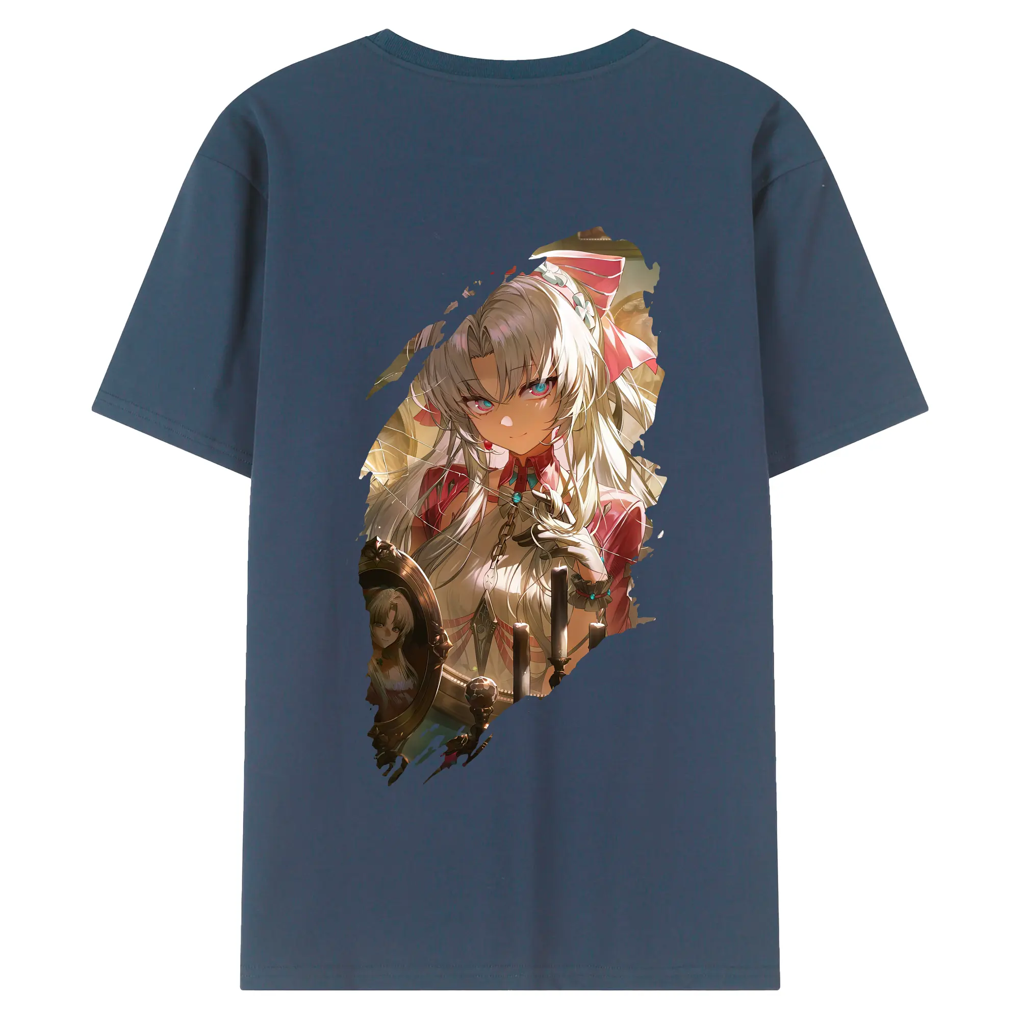 鳴潮 グッズ カルロッタ - 綿100% ヴィンテージ風 半袖Tシャツ ・ 背面プリント ・ 柔らか肌触り ・ 通気性 快適 ・ スポーツ カジュアル 外出用