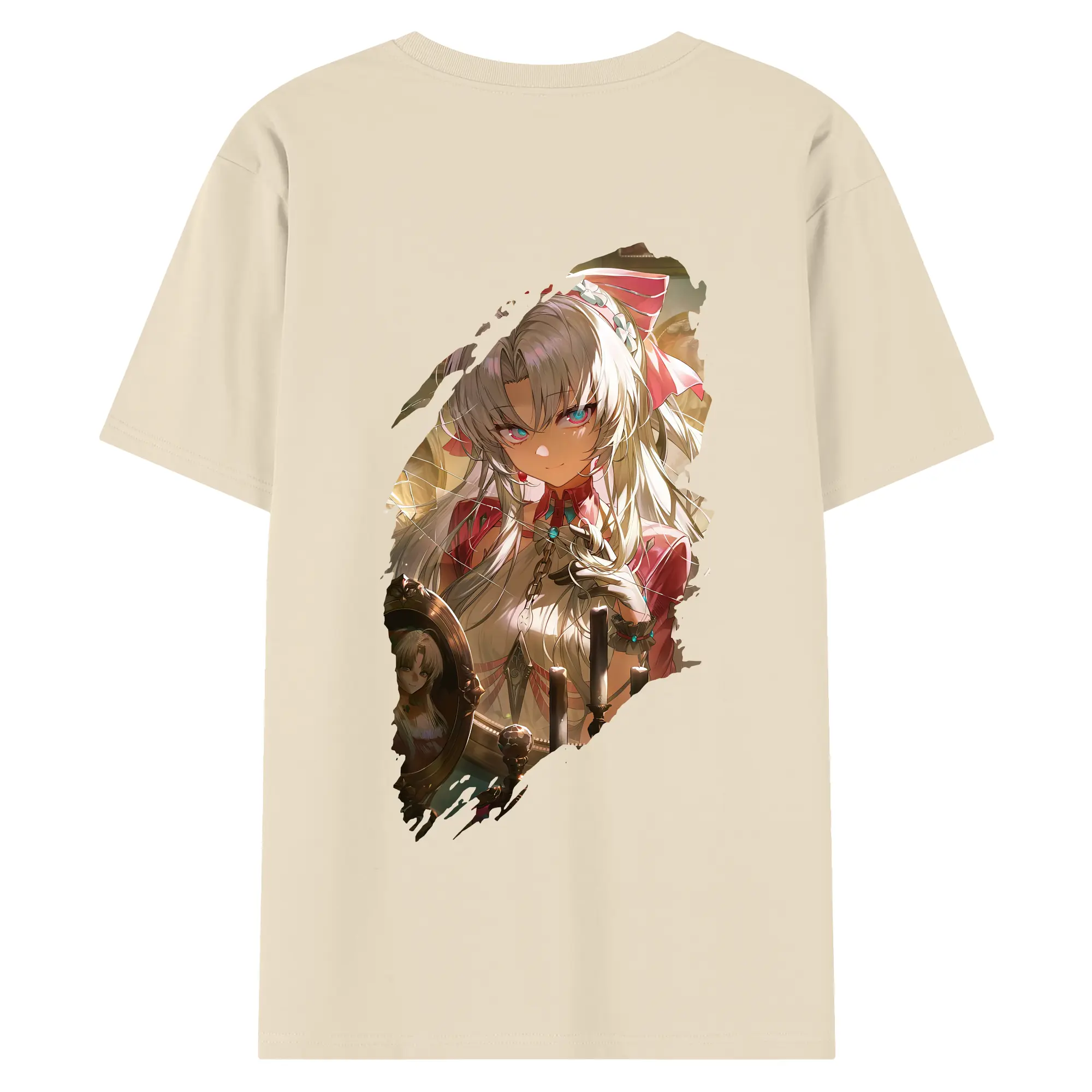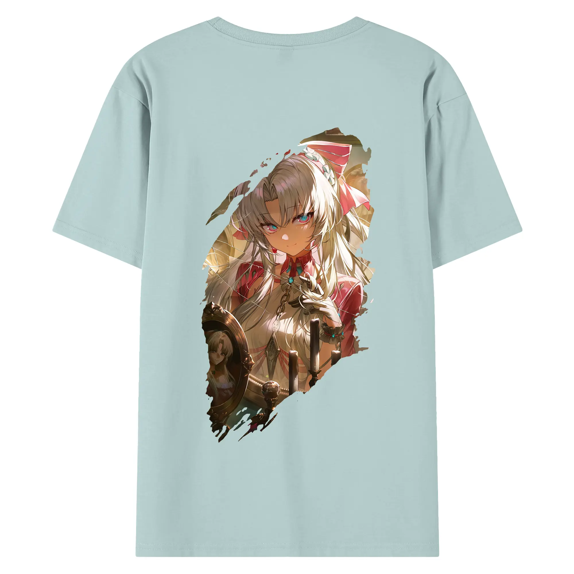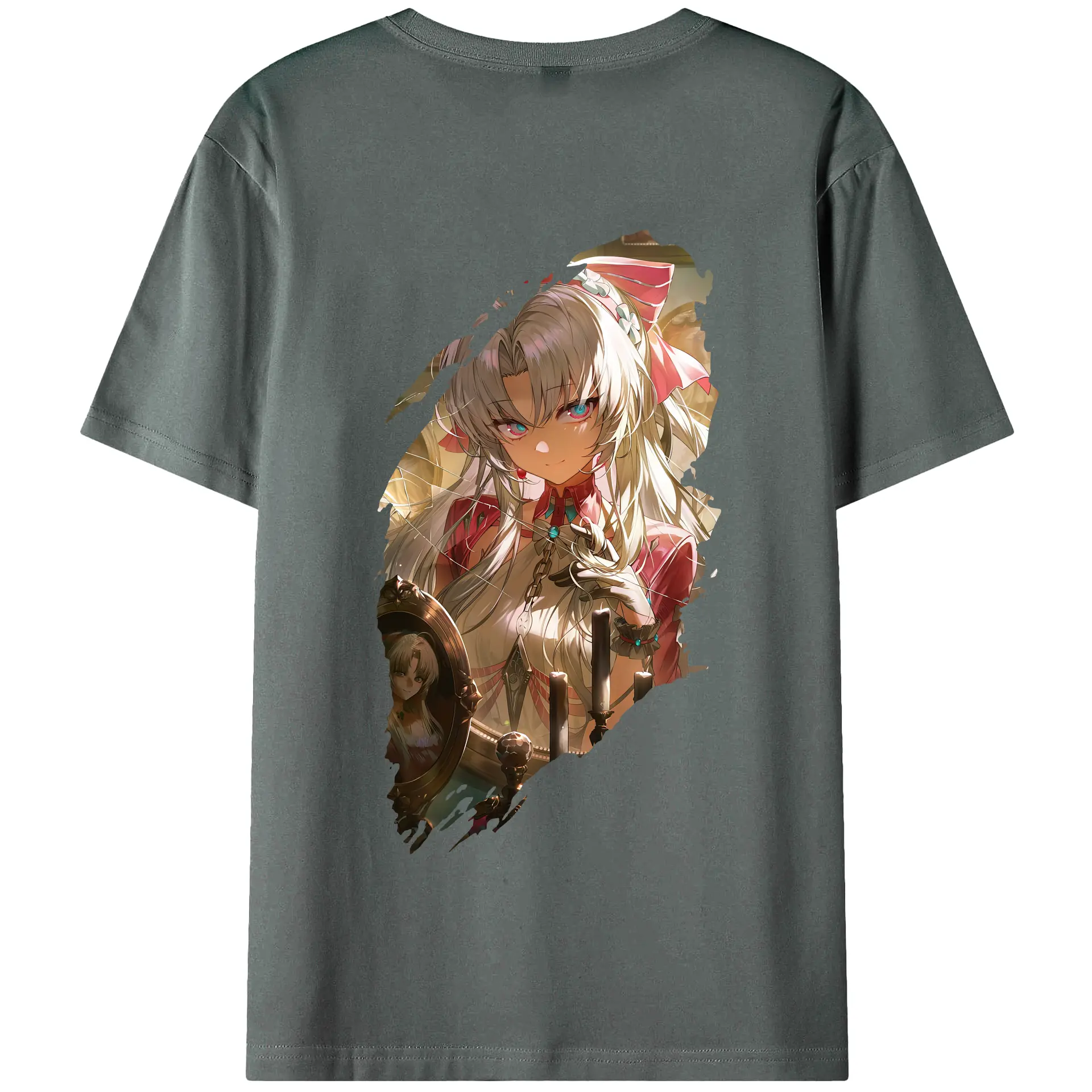 鳴潮 グッズ カルロッタ - 綿100% ヴィンテージ風 半袖Tシャツ ・ 背面プリント ・ 柔らか肌触り ・ 通気性 快適 ・ スポーツ カジュアル 外出用