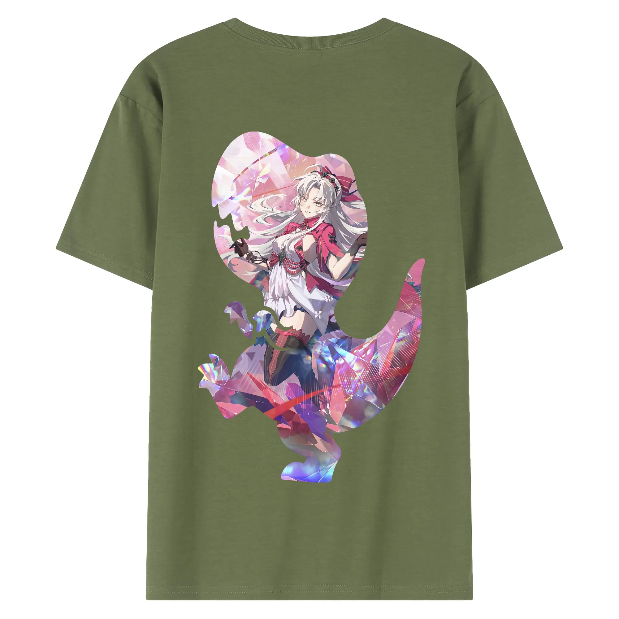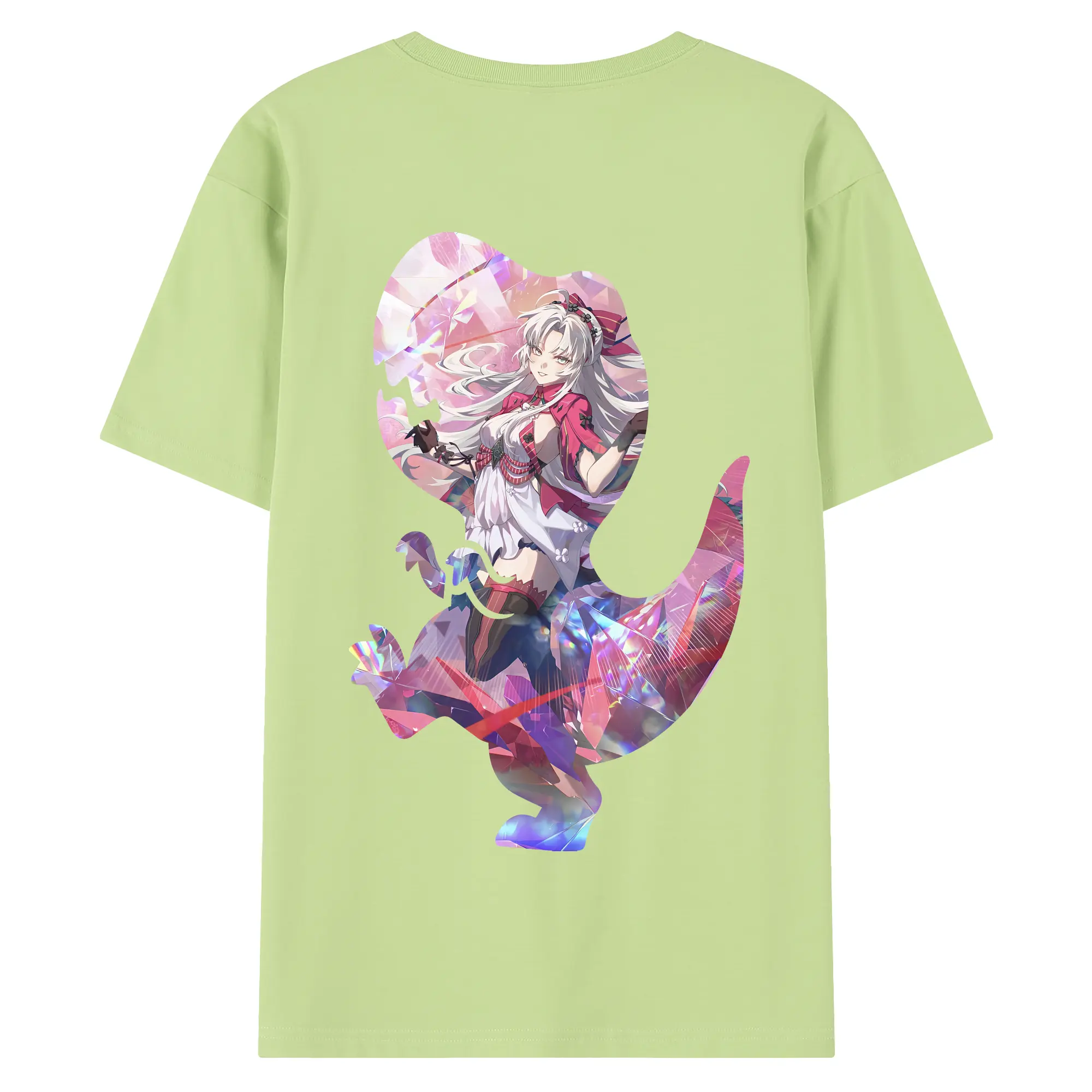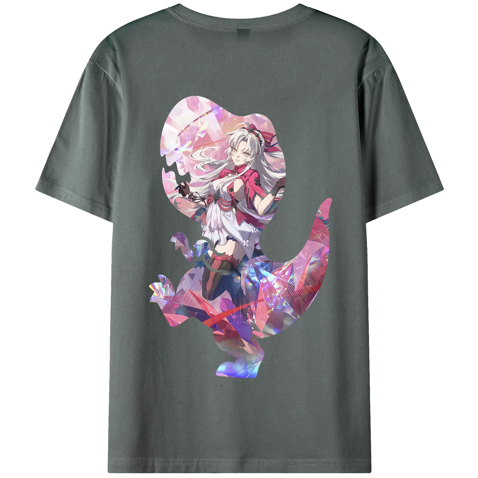 鳴潮 グッズ カルロッタ - 綿100% ヴィンテージ風 半袖Tシャツ ・ 背面プリント ・ 柔らか肌触り ・ 通気性 快適 ・ スポーツ カジュアル 外出用