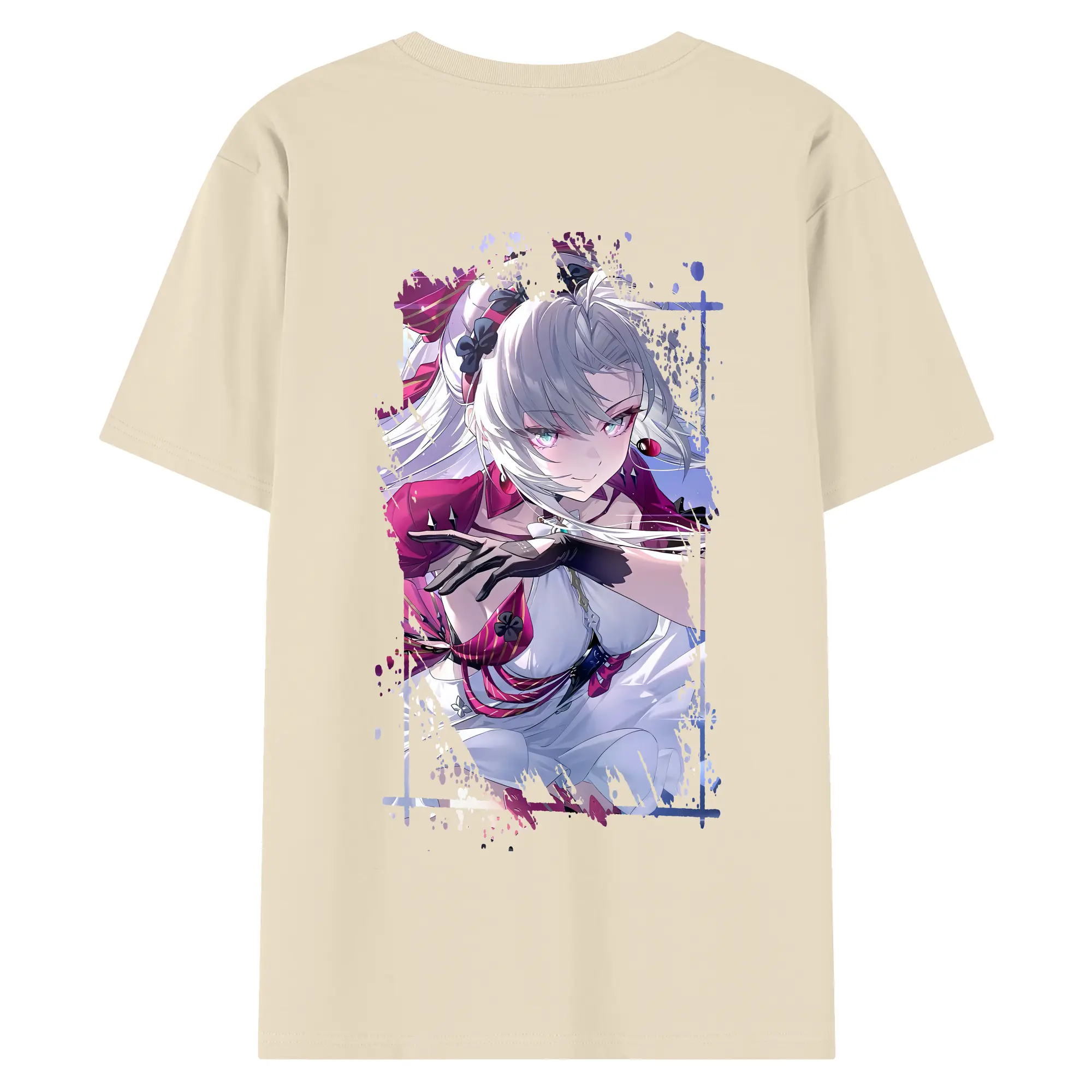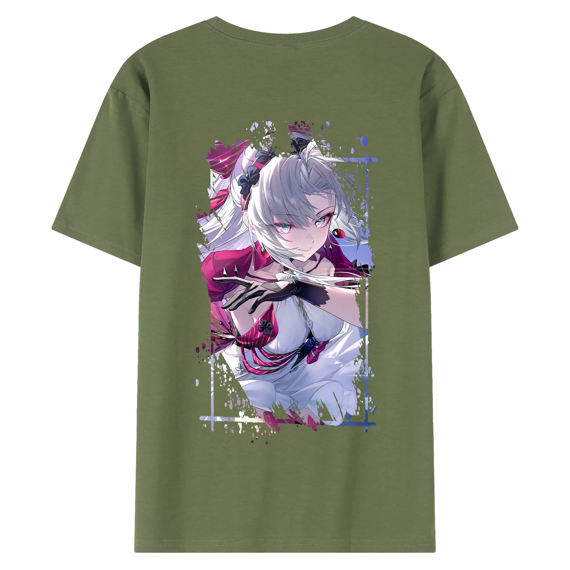 鳴潮 グッズ カルロッタ - 綿100% 半袖Tシャツ ・ フロントプリント ・ 快適 通気性 ・ 日常使い 散歩 スポーツ用