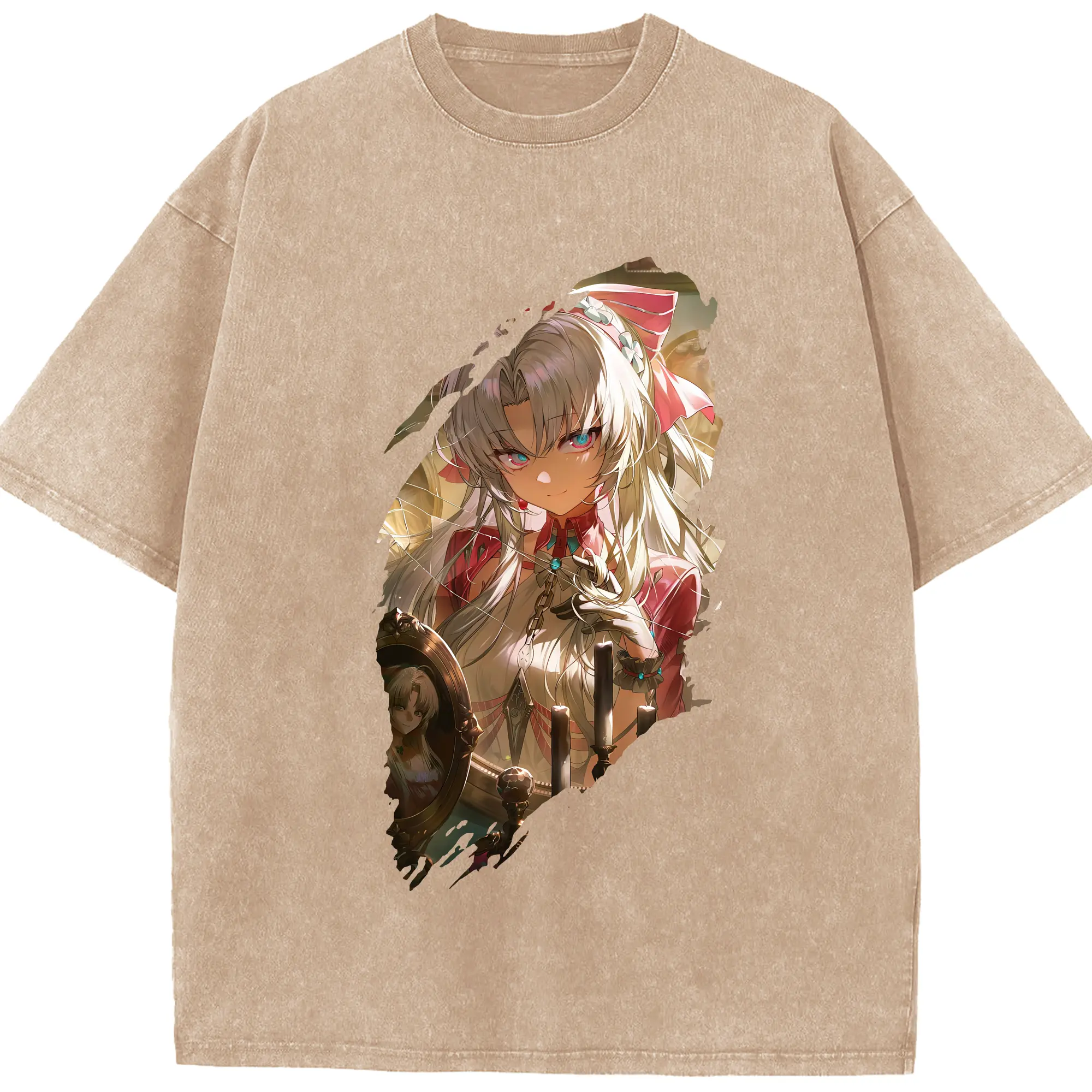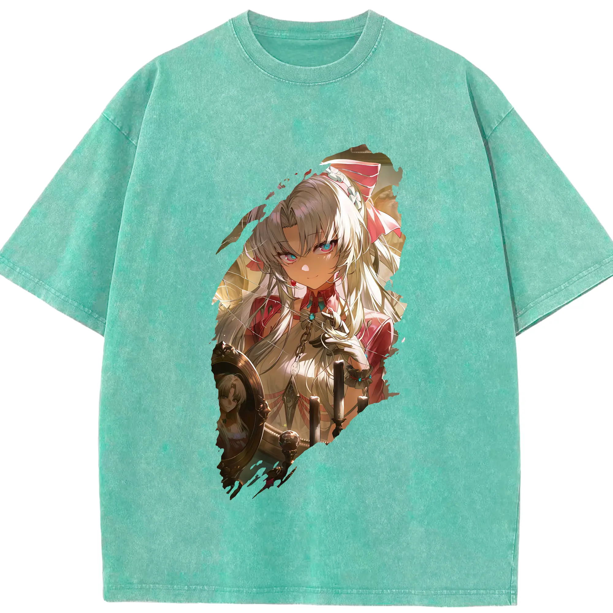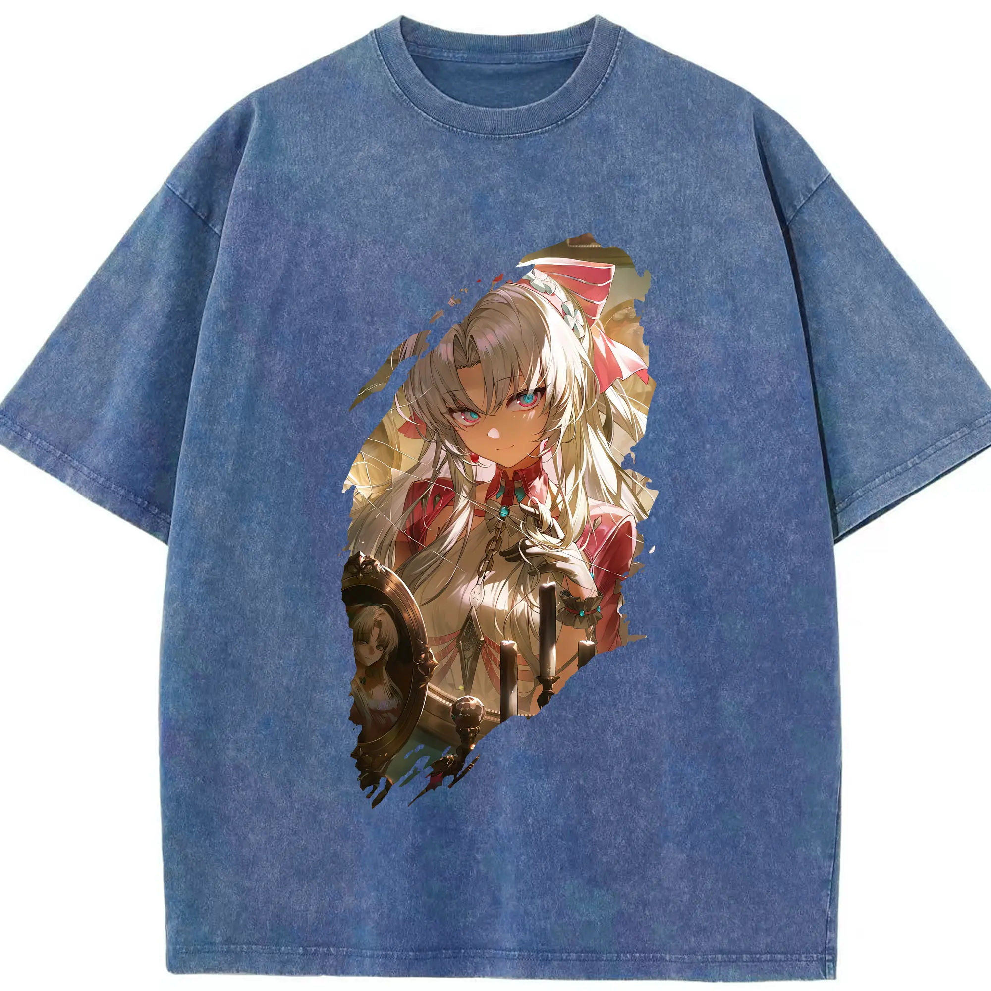 鳴潮 グッズ カルロッタ - 綿100% ヴィンテージ風 半袖Tシャツ ・ 背面プリント ・ 柔らか肌触り ・ 通気性 快適 ・ スポーツ カジュアル 外出用