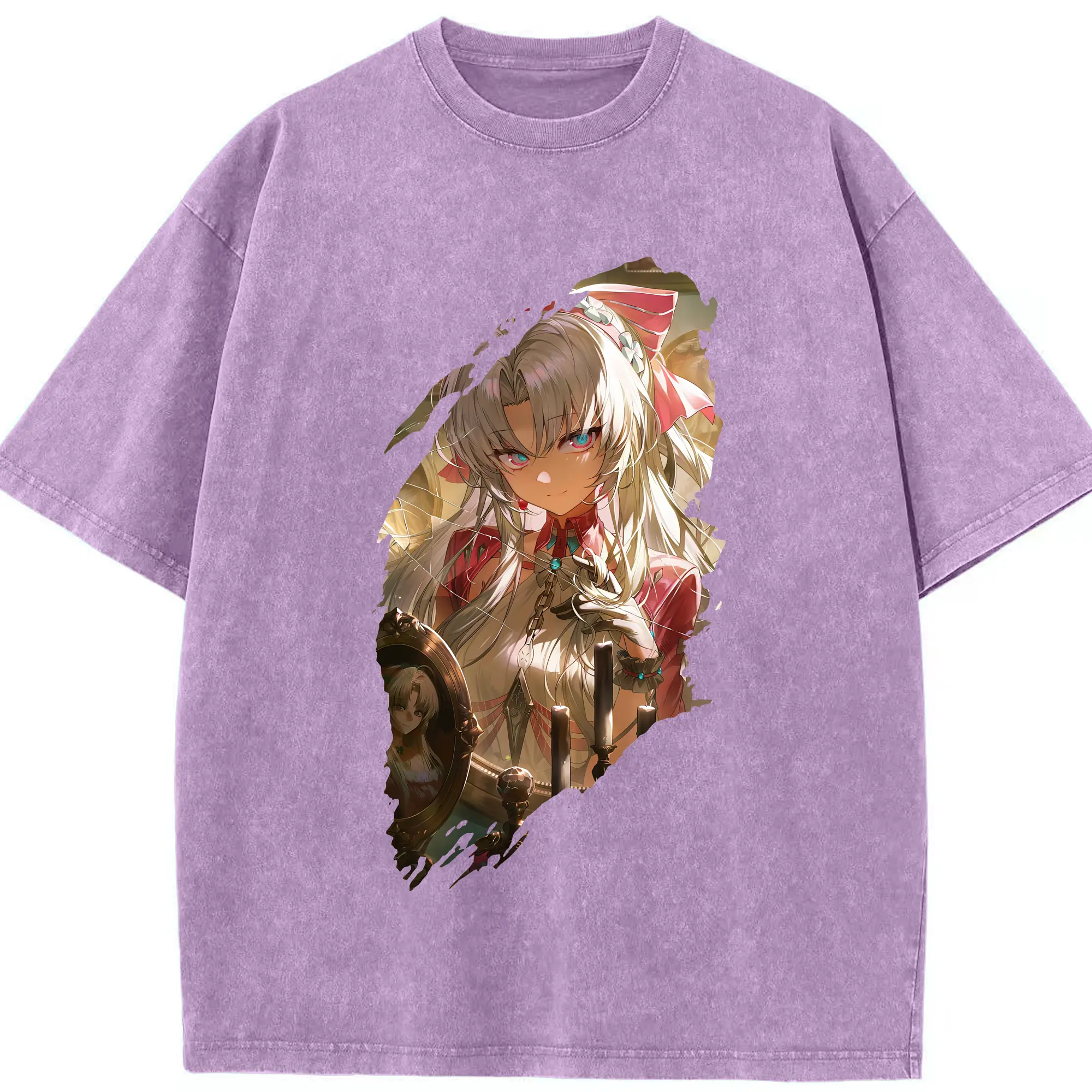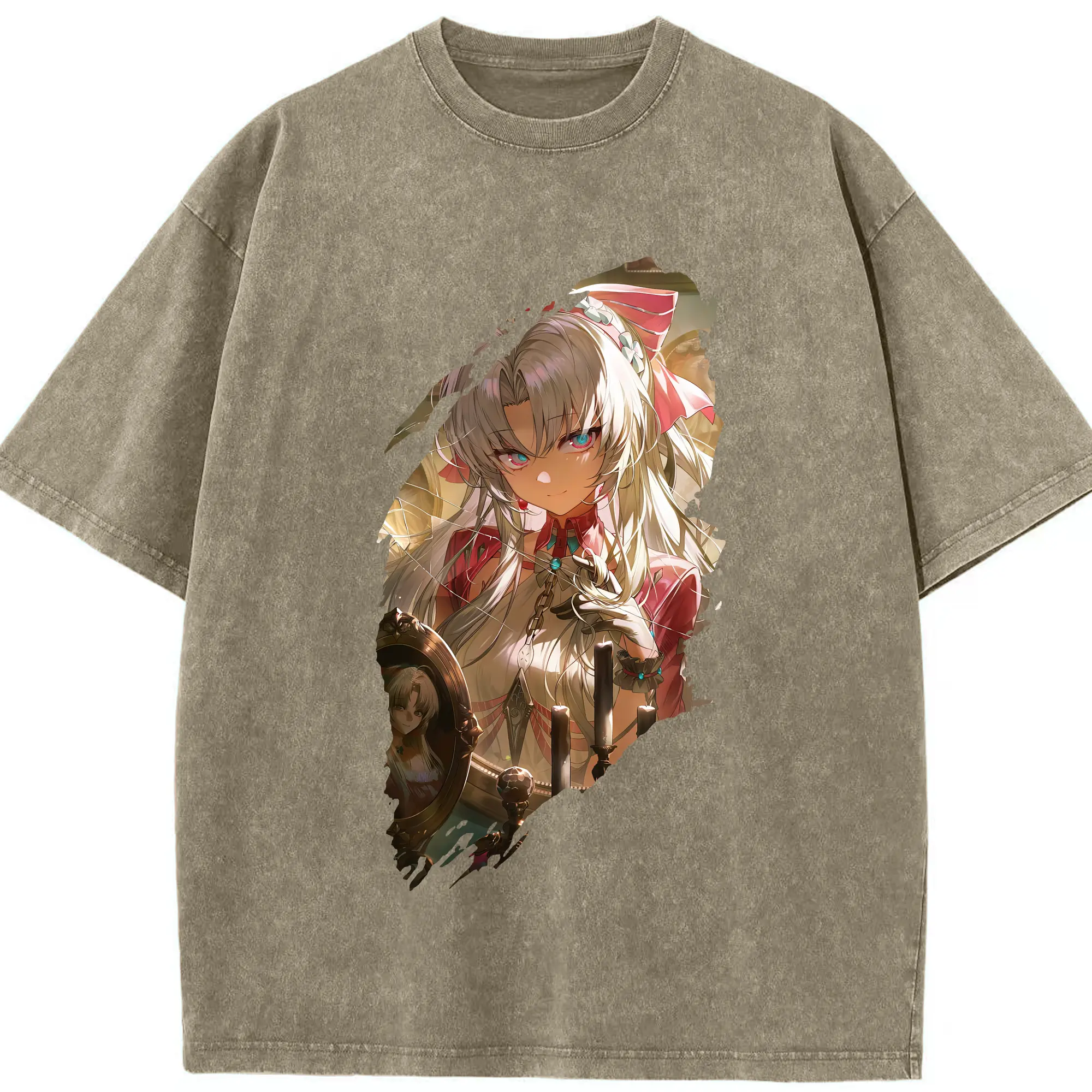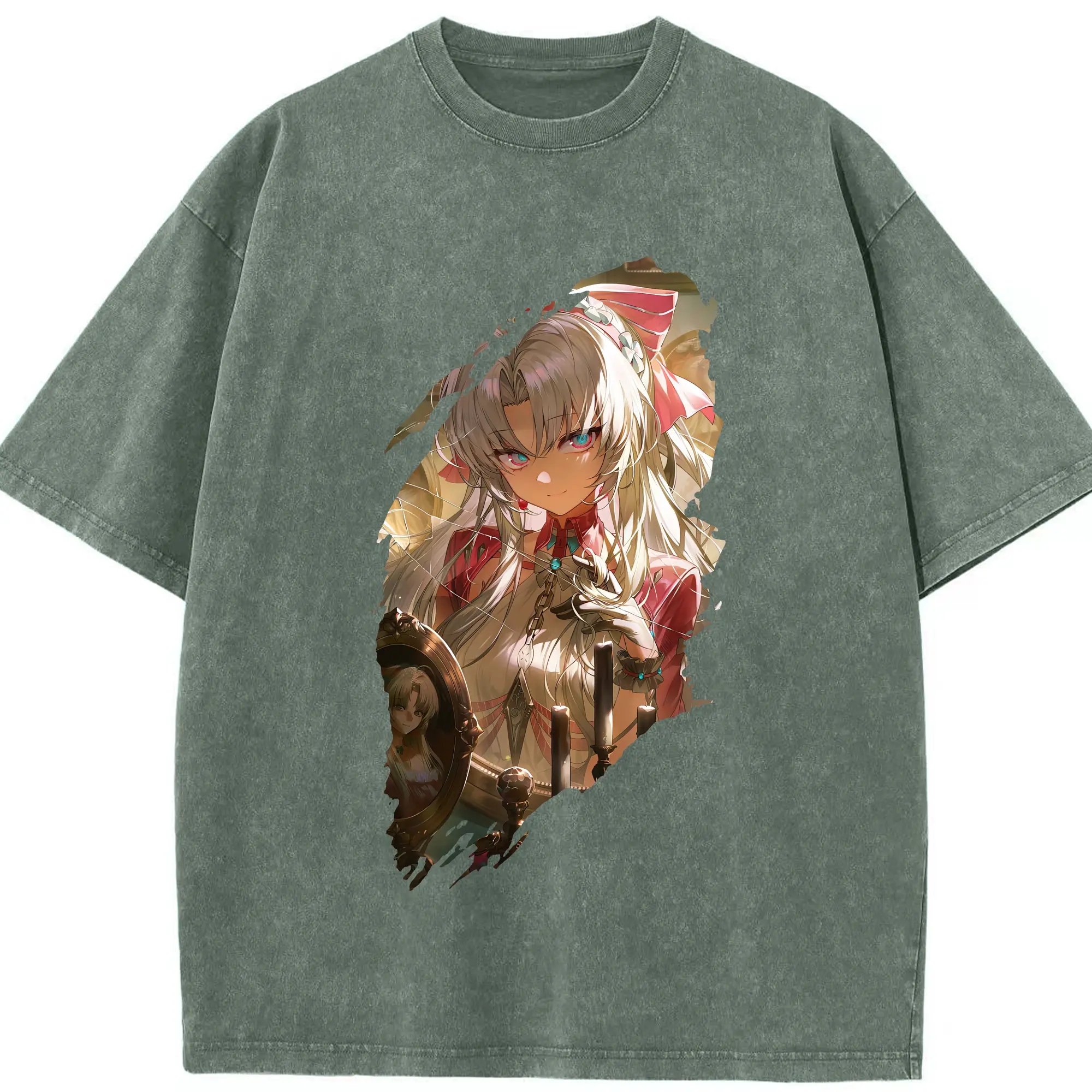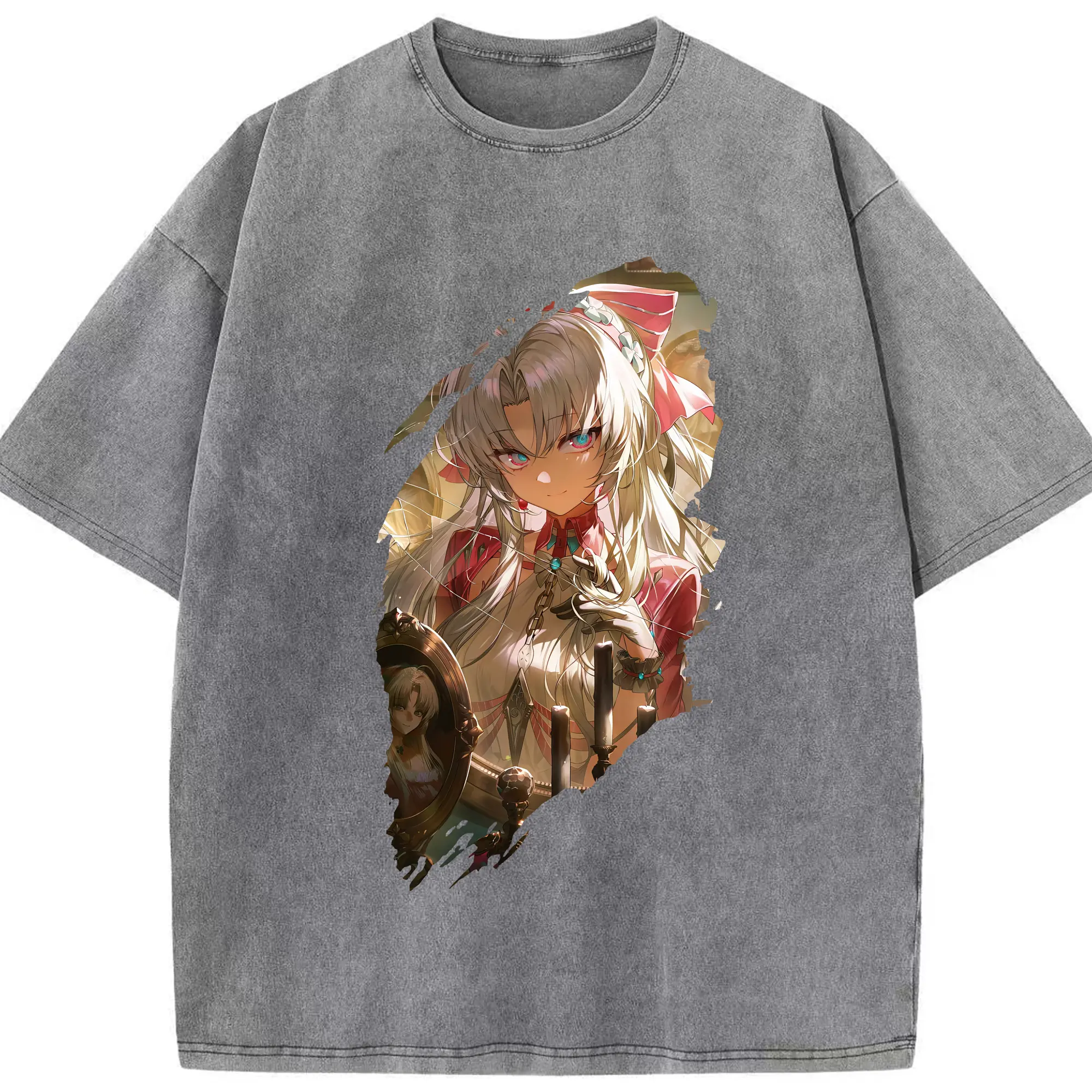 鳴潮 グッズ カルロッタ - 綿100% ヴィンテージ風 半袖Tシャツ ・ 背面プリント ・ 柔らか肌触り ・ 通気性 快適 ・ スポーツ カジュアル 外出用