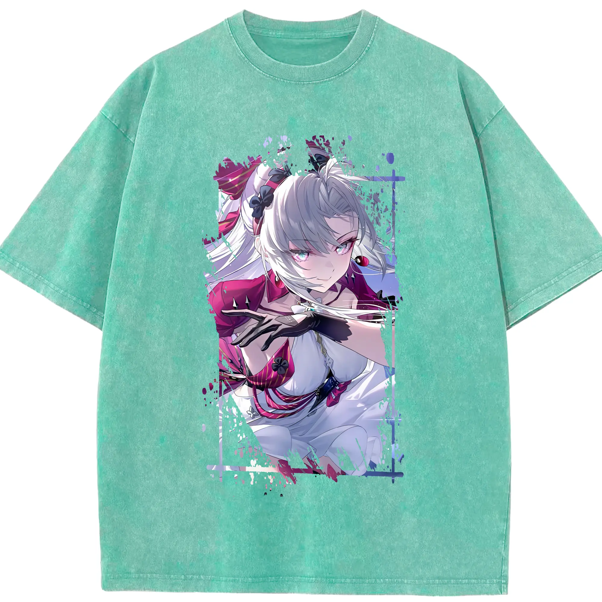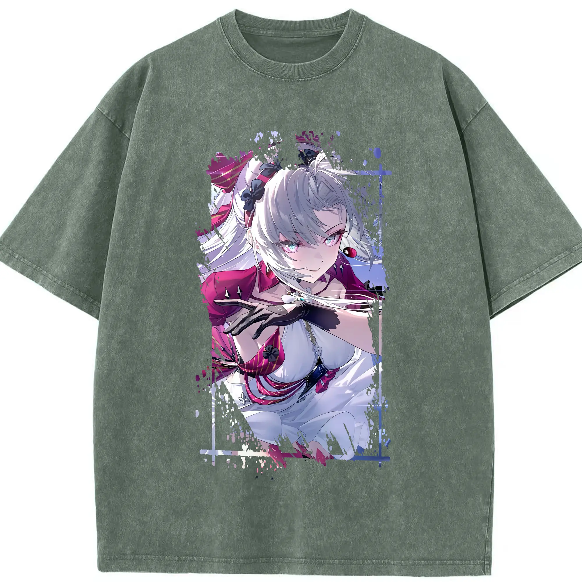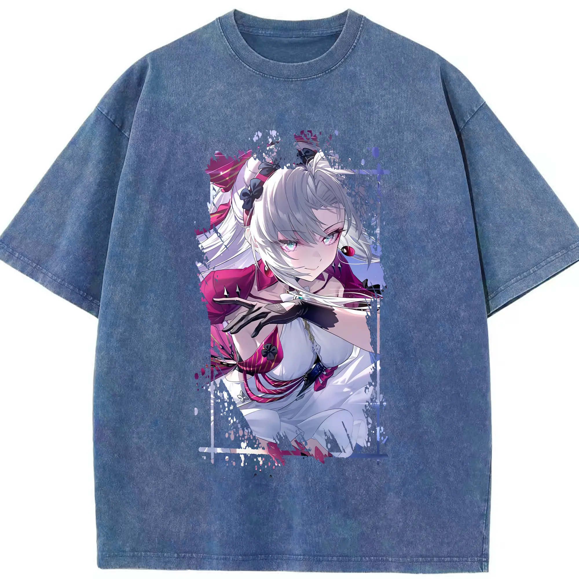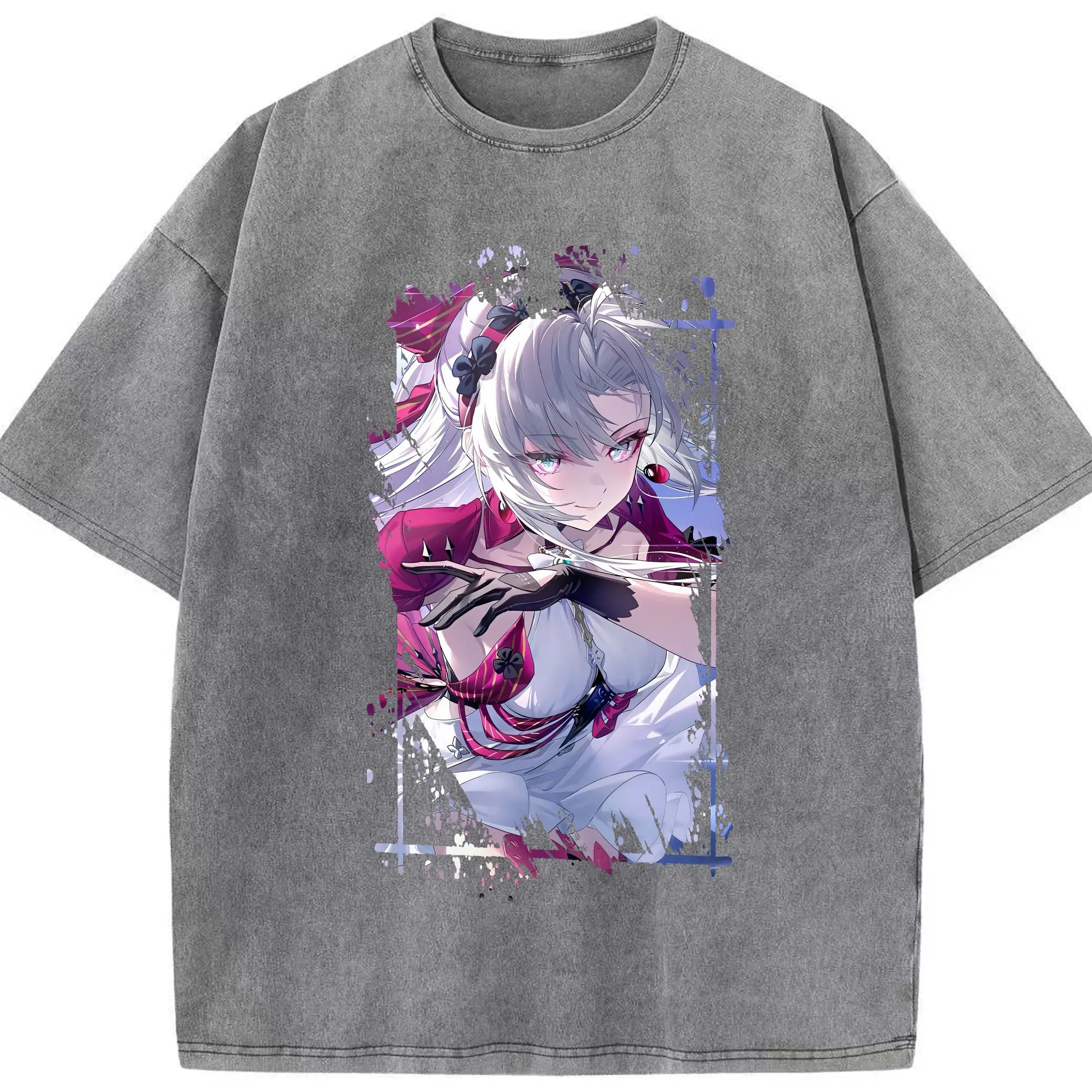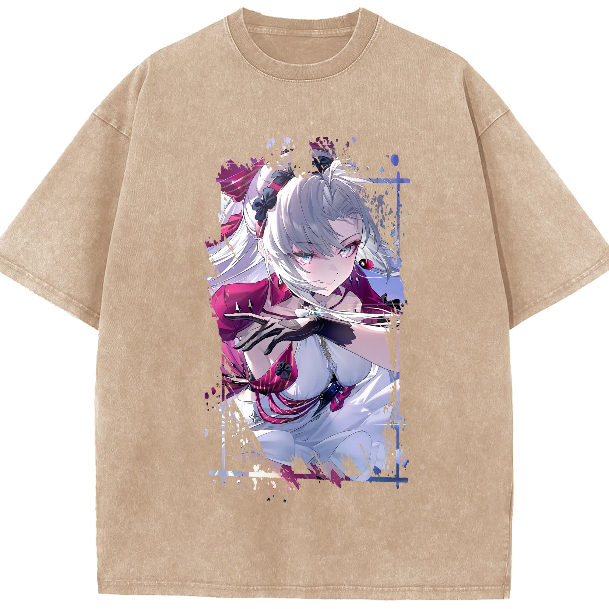 鳴潮 グッズ カルロッタ - 綿100% ヴィンテージ風 半袖Tシャツ ・ 背面プリント ・ 柔らか肌触り ・ 通気性 快適 ・ スポーツ カジュアル 外出用