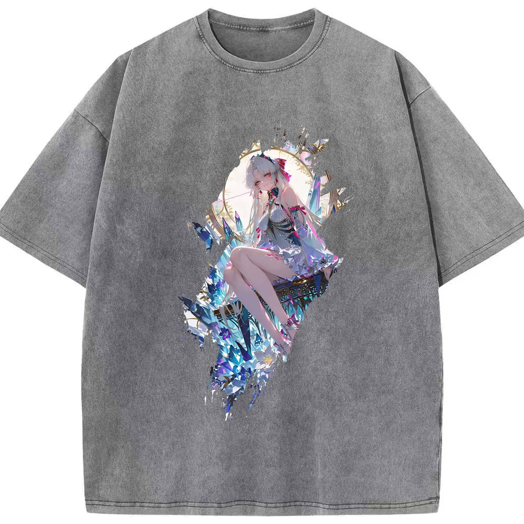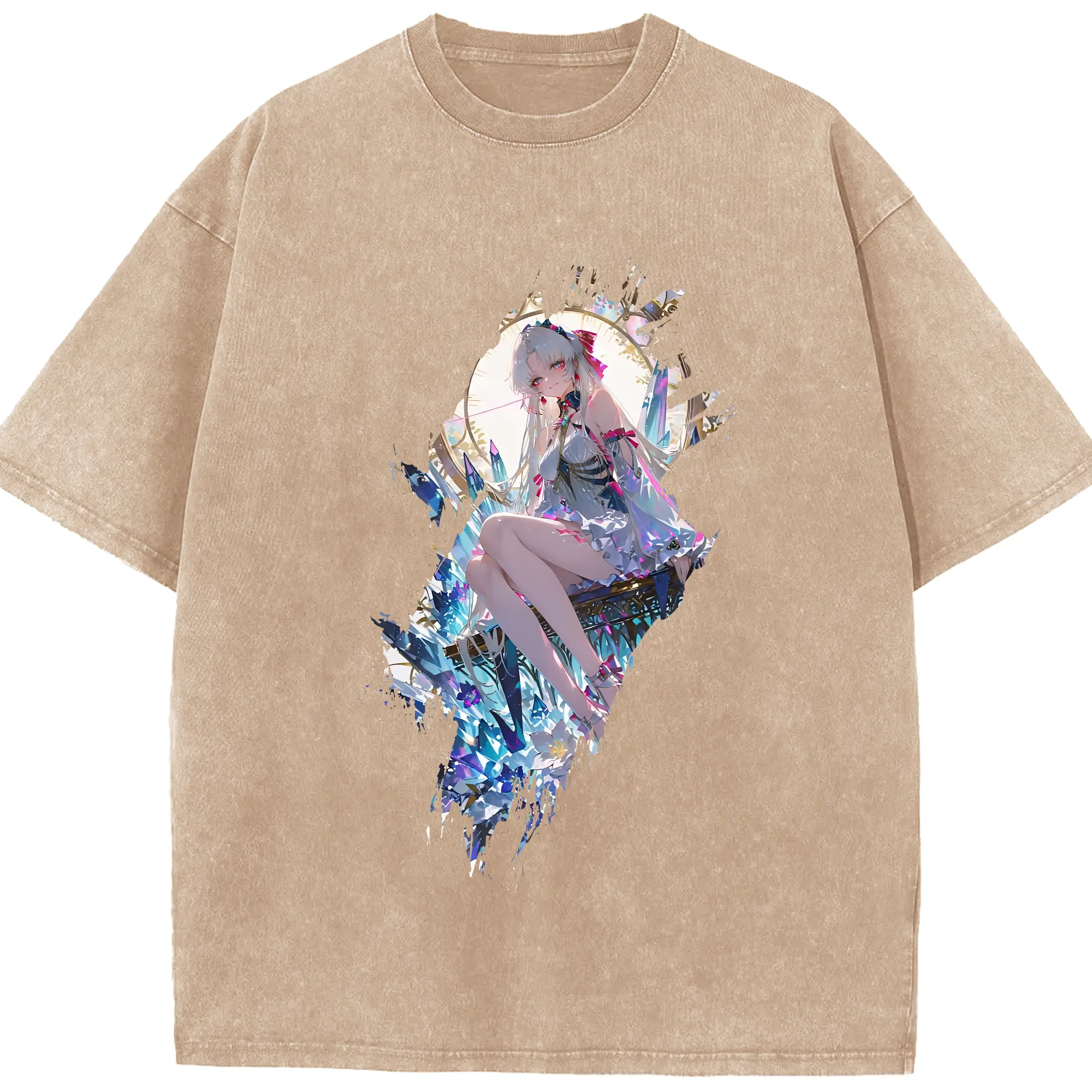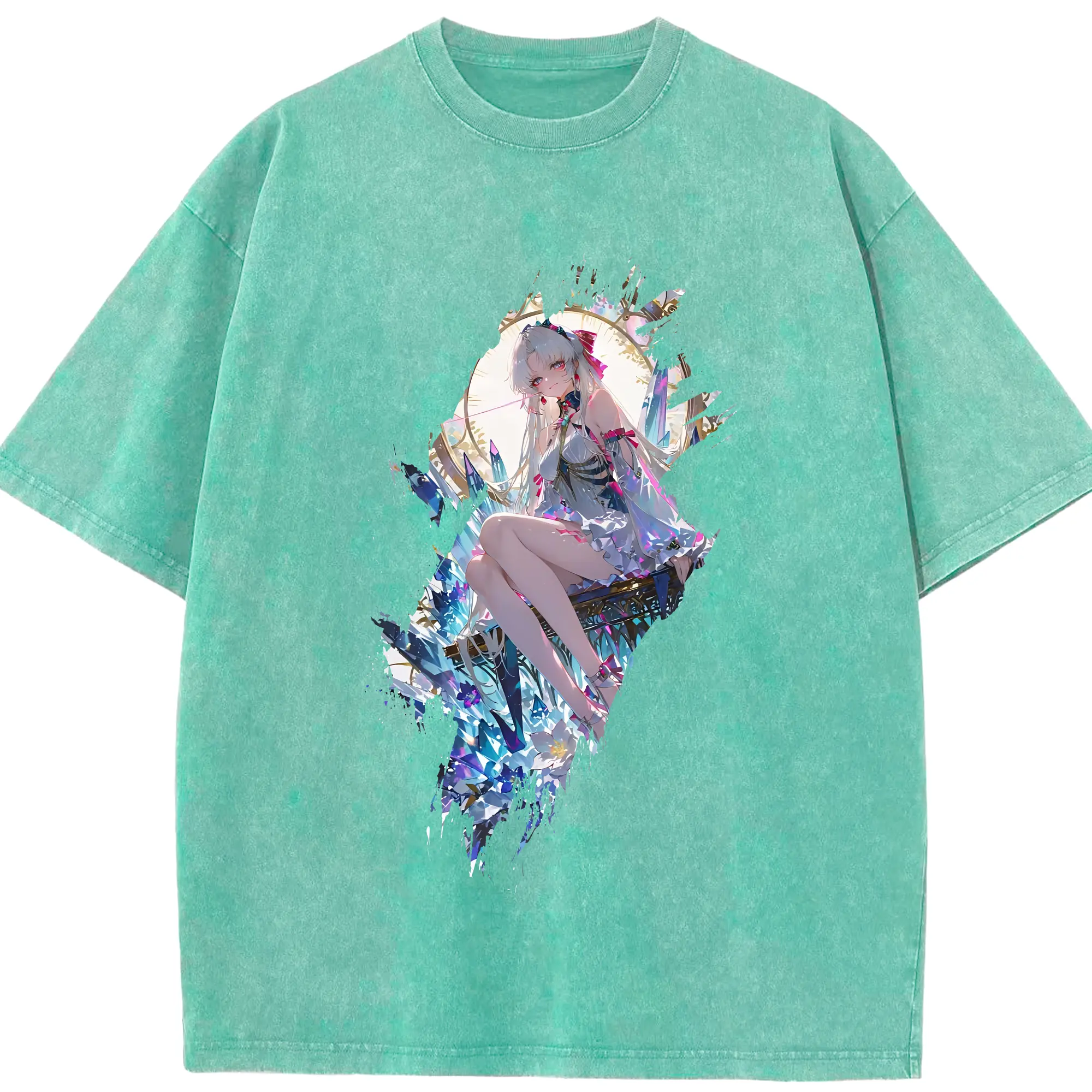鳴潮 グッズ カルロッタ - 綿100% ヴィンテージ風 半袖Tシャツ ・ 背面プリント ・ 柔らか肌触り ・ 通気性 快適 ・ スポーツ カジュアル 外出用