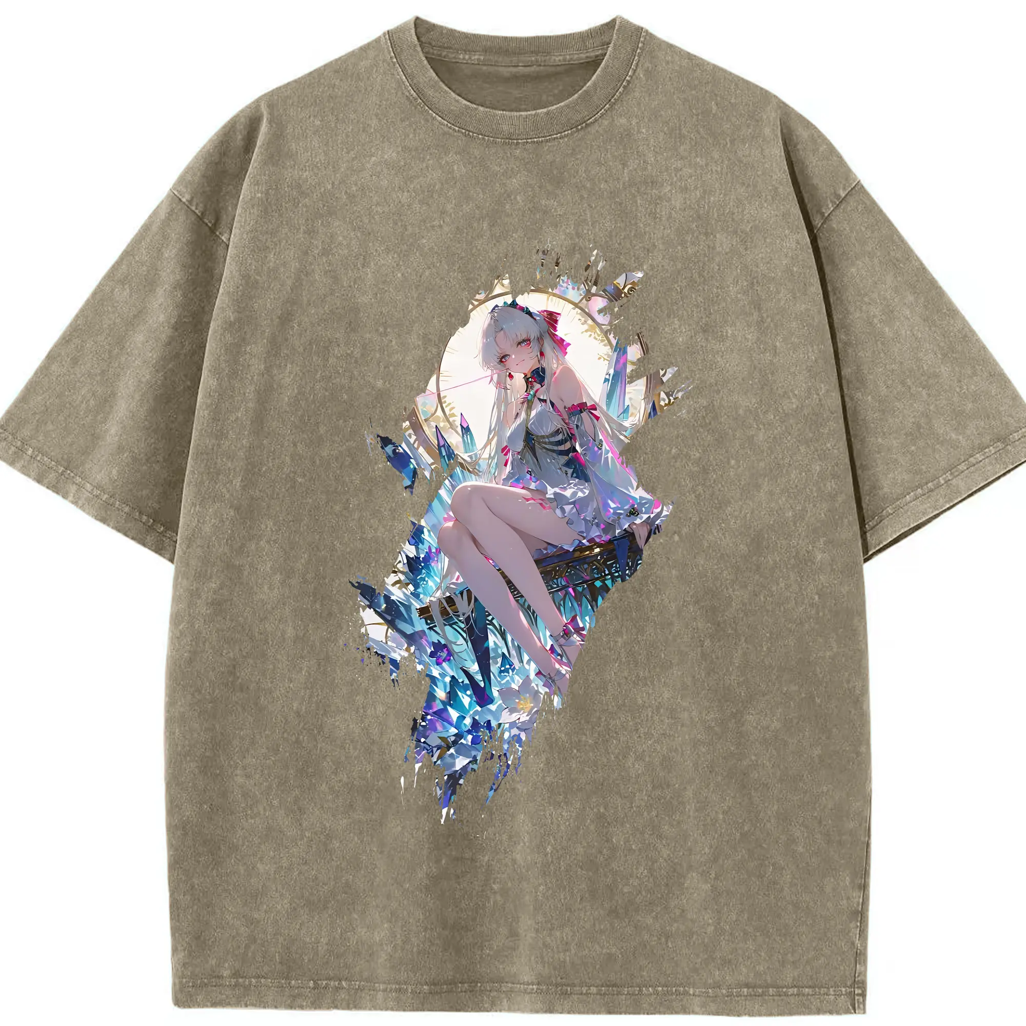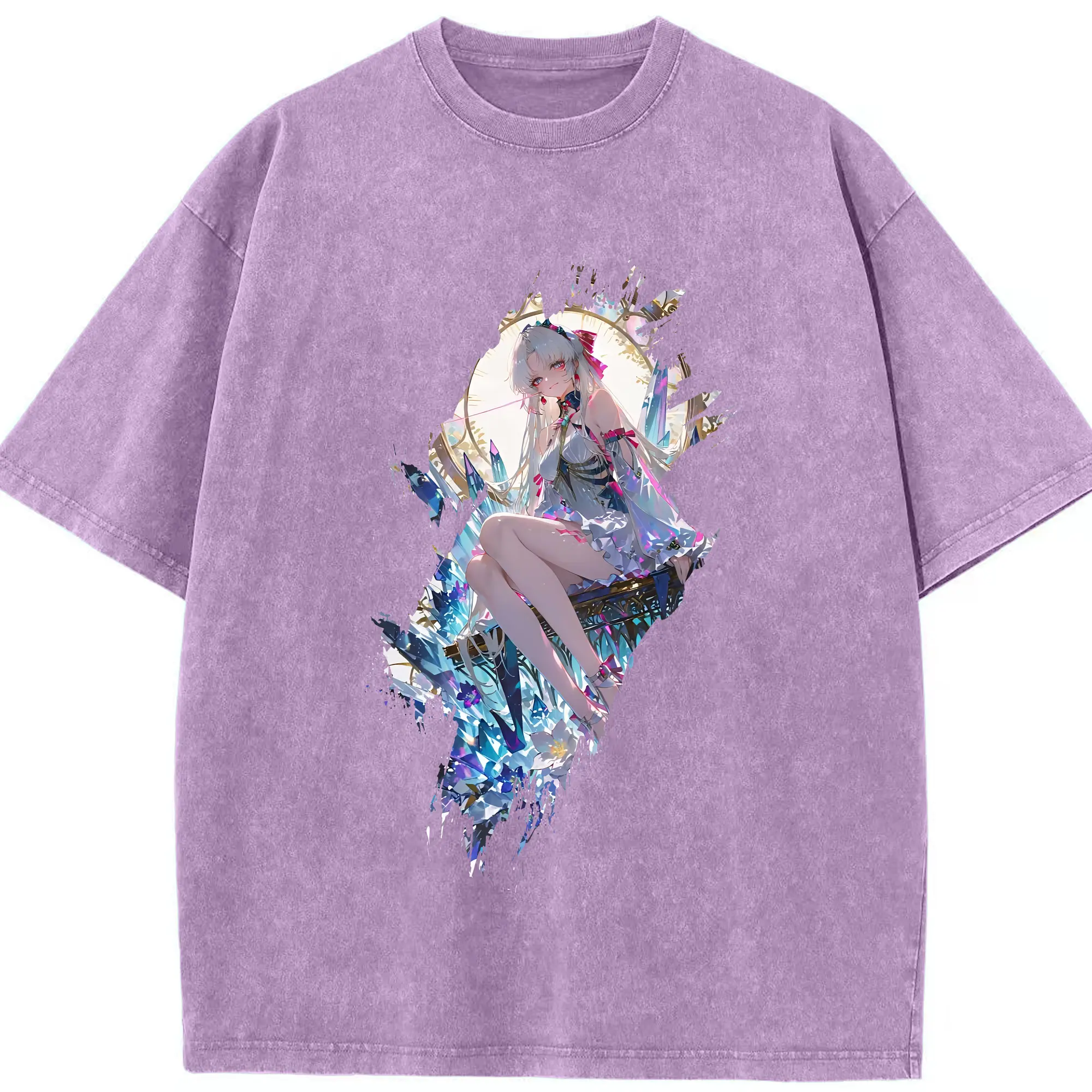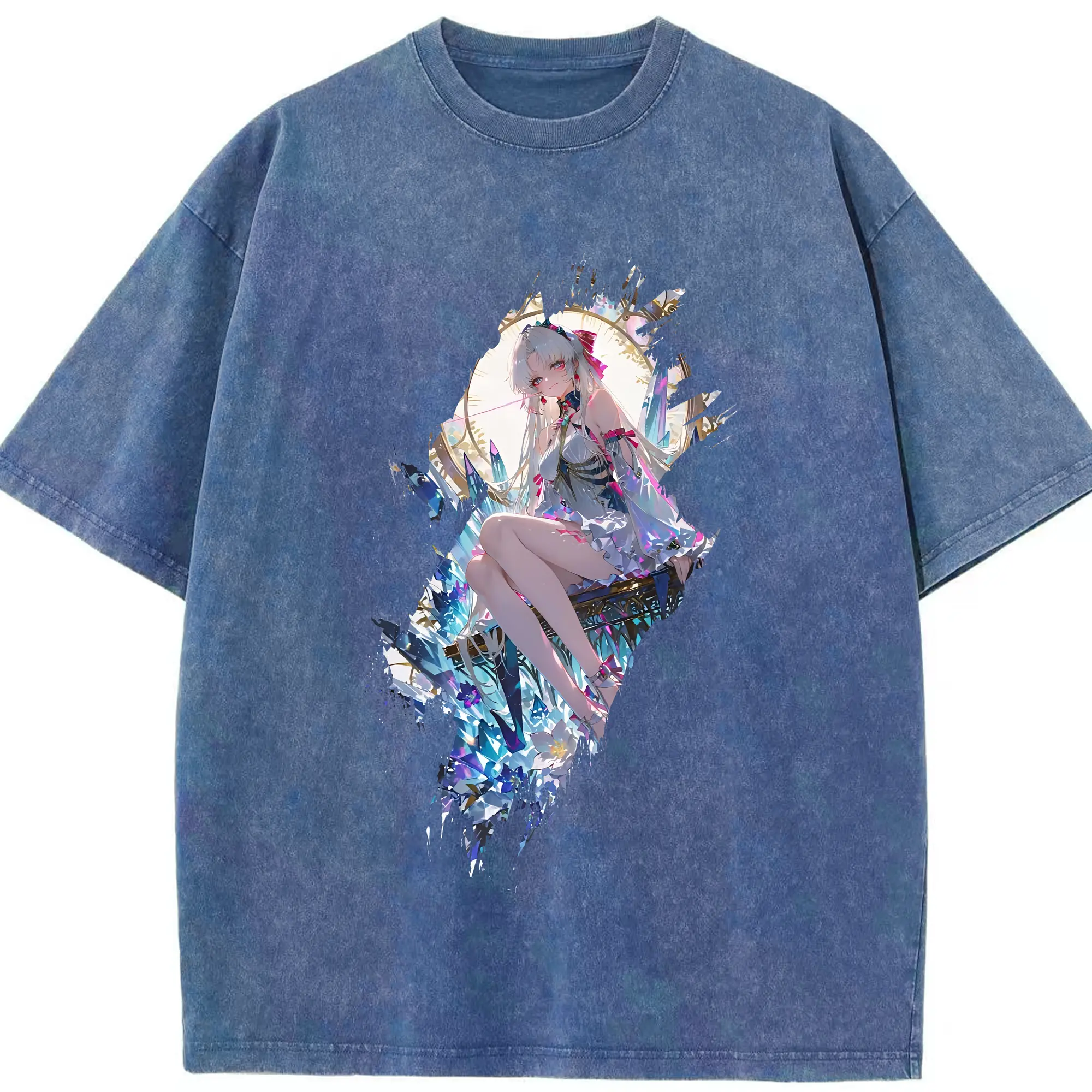 鳴潮 グッズ カルロッタ - 綿100% ヴィンテージ風 半袖Tシャツ ・ 背面プリント ・ 柔らか肌触り ・ 通気性 快適 ・ スポーツ カジュアル 外出用