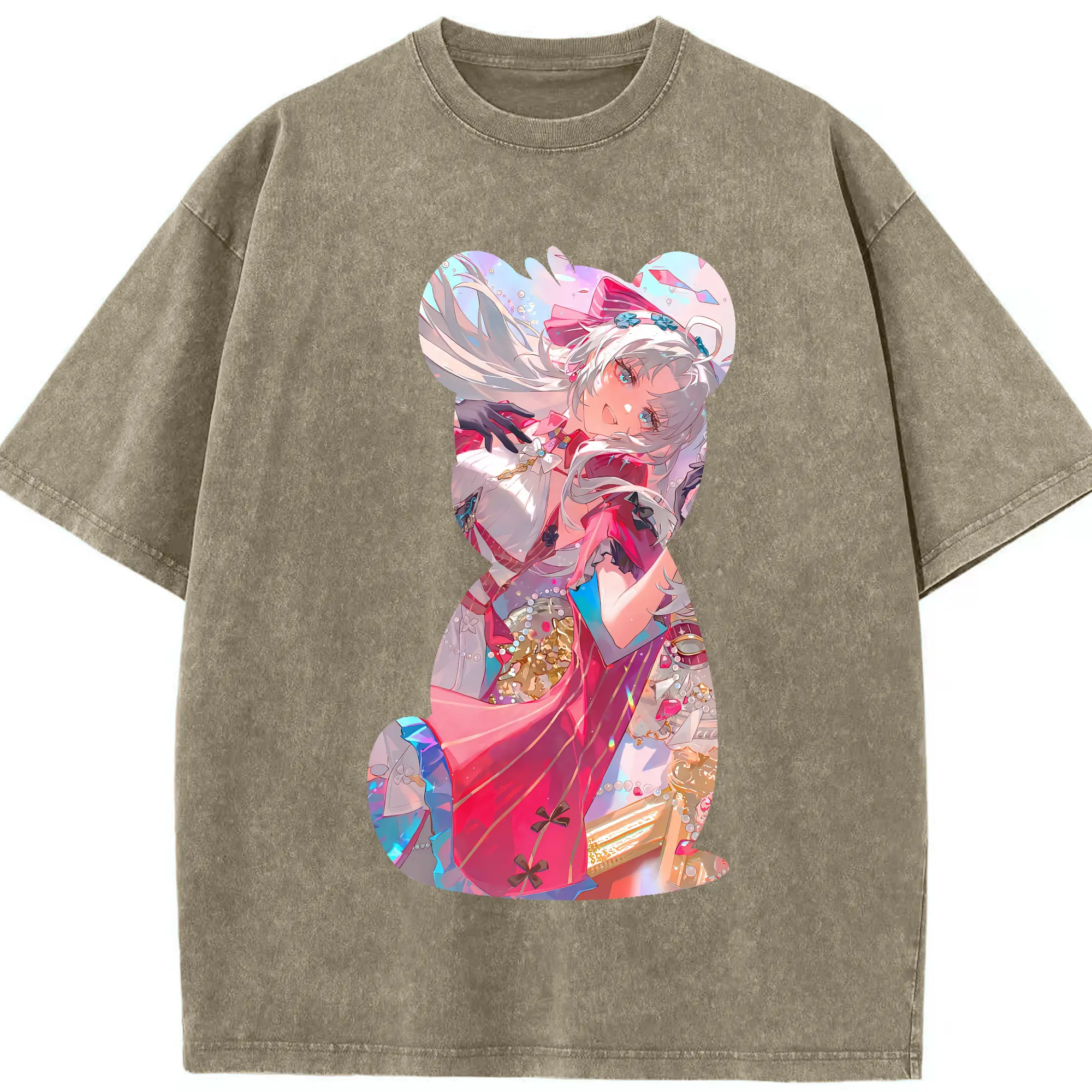 わんだふるぷりきゅあ グッズ 犬飼こむぎ - 綿100% ヴィンテージ風 半袖Tシャツ ・ フロントプリント ・ 柔らか肌触り ・ 通気性 快適 ・ スポーツ カジュアル 外出用