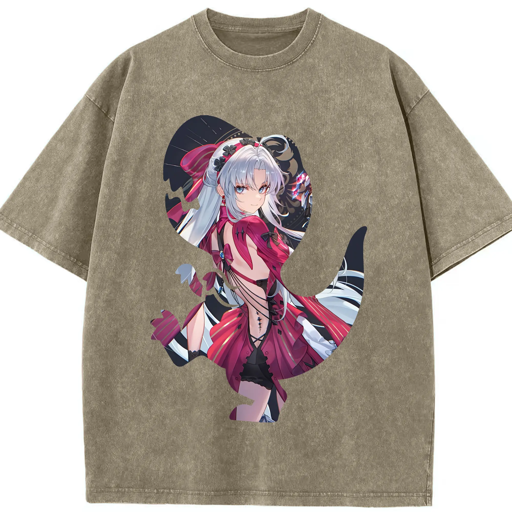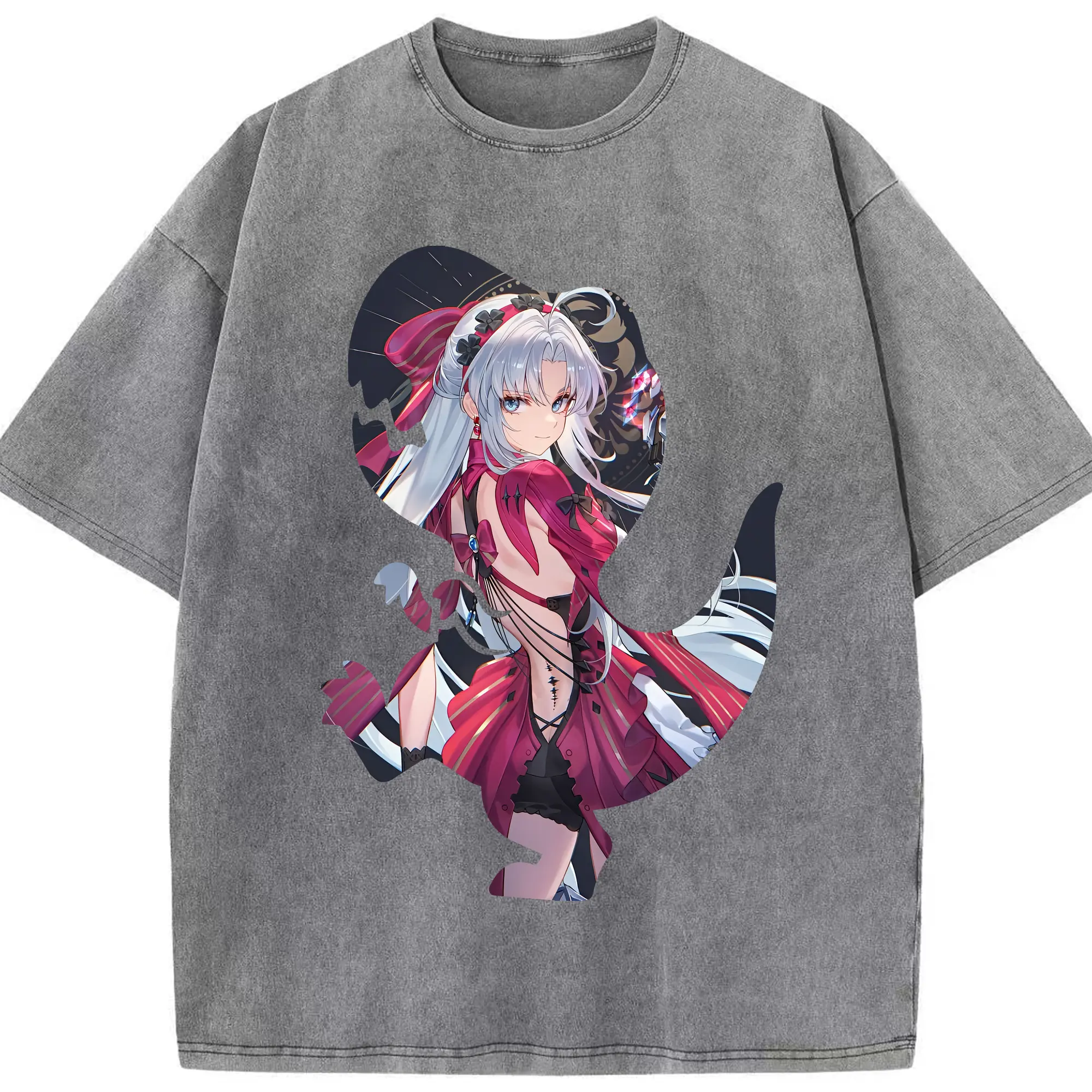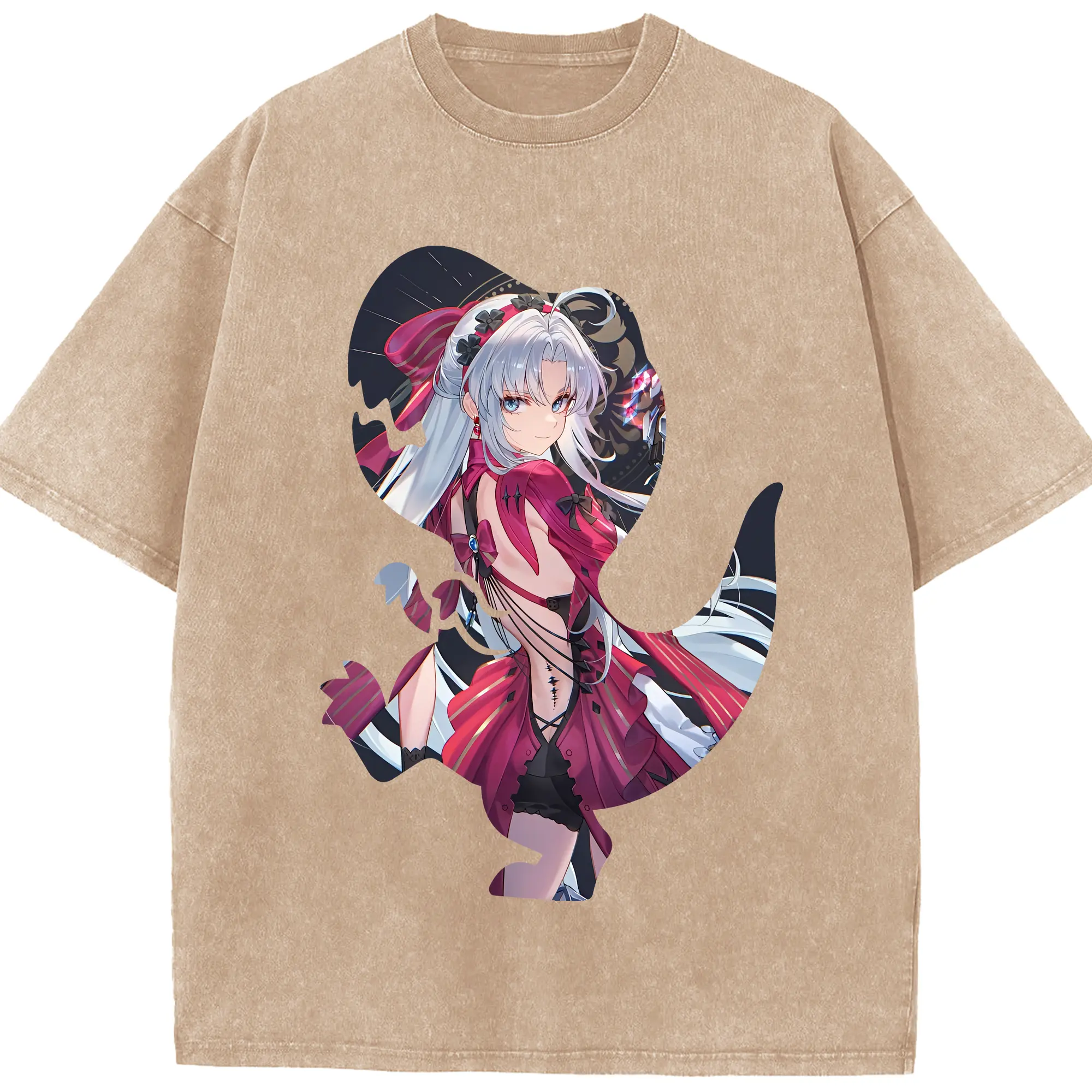 鳴潮 グッズ カルロッタ - 綿100% ヴィンテージ風 半袖Tシャツ ・ 背面プリント ・ 柔らか肌触り ・ 通気性 快適 ・ スポーツ カジュアル 外出用