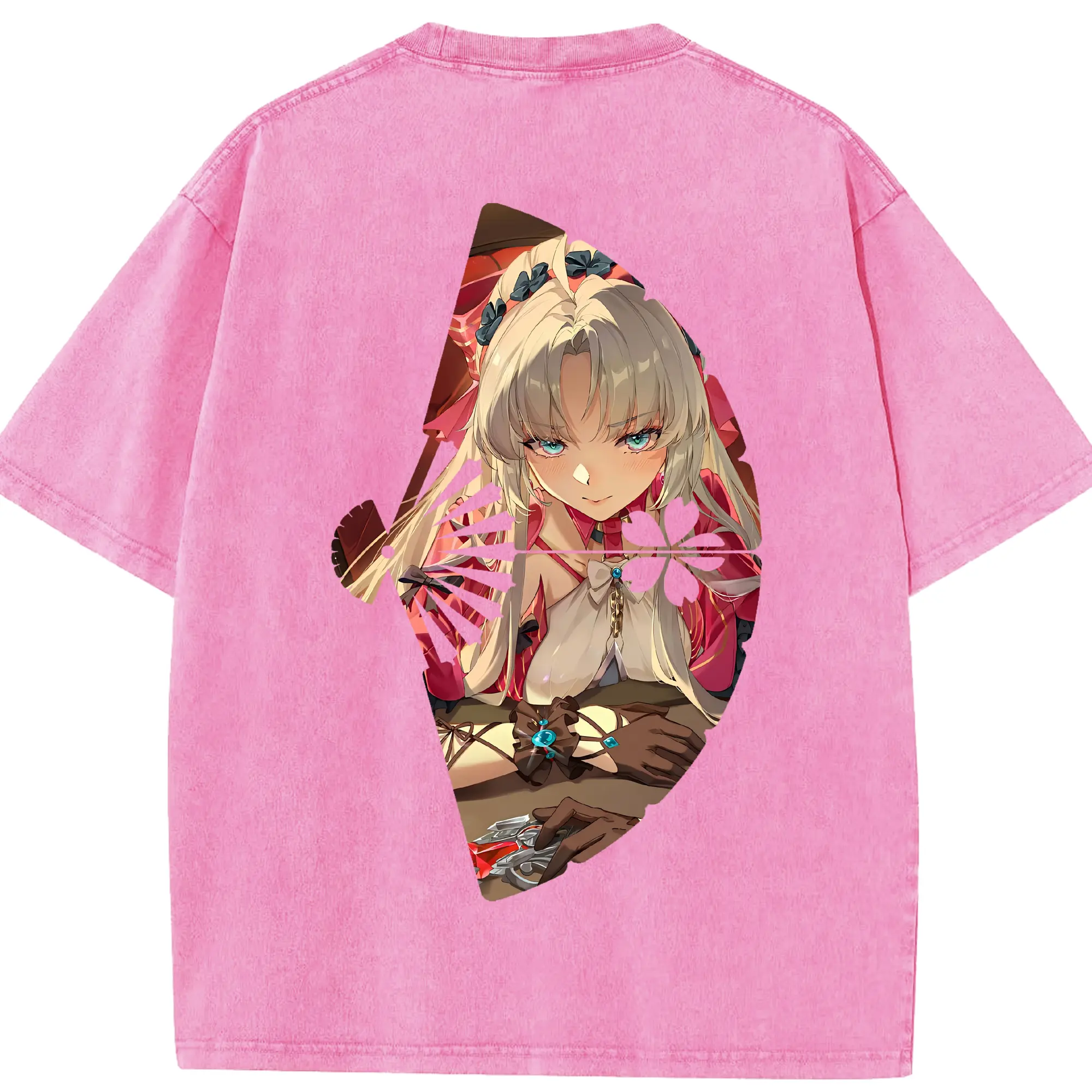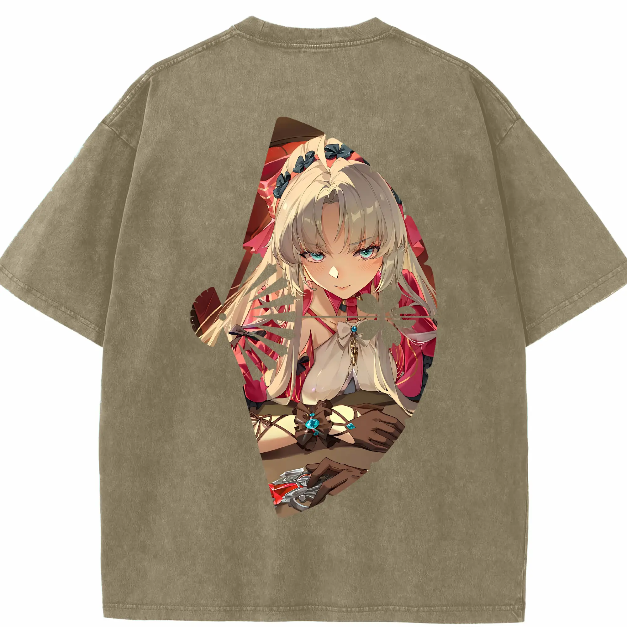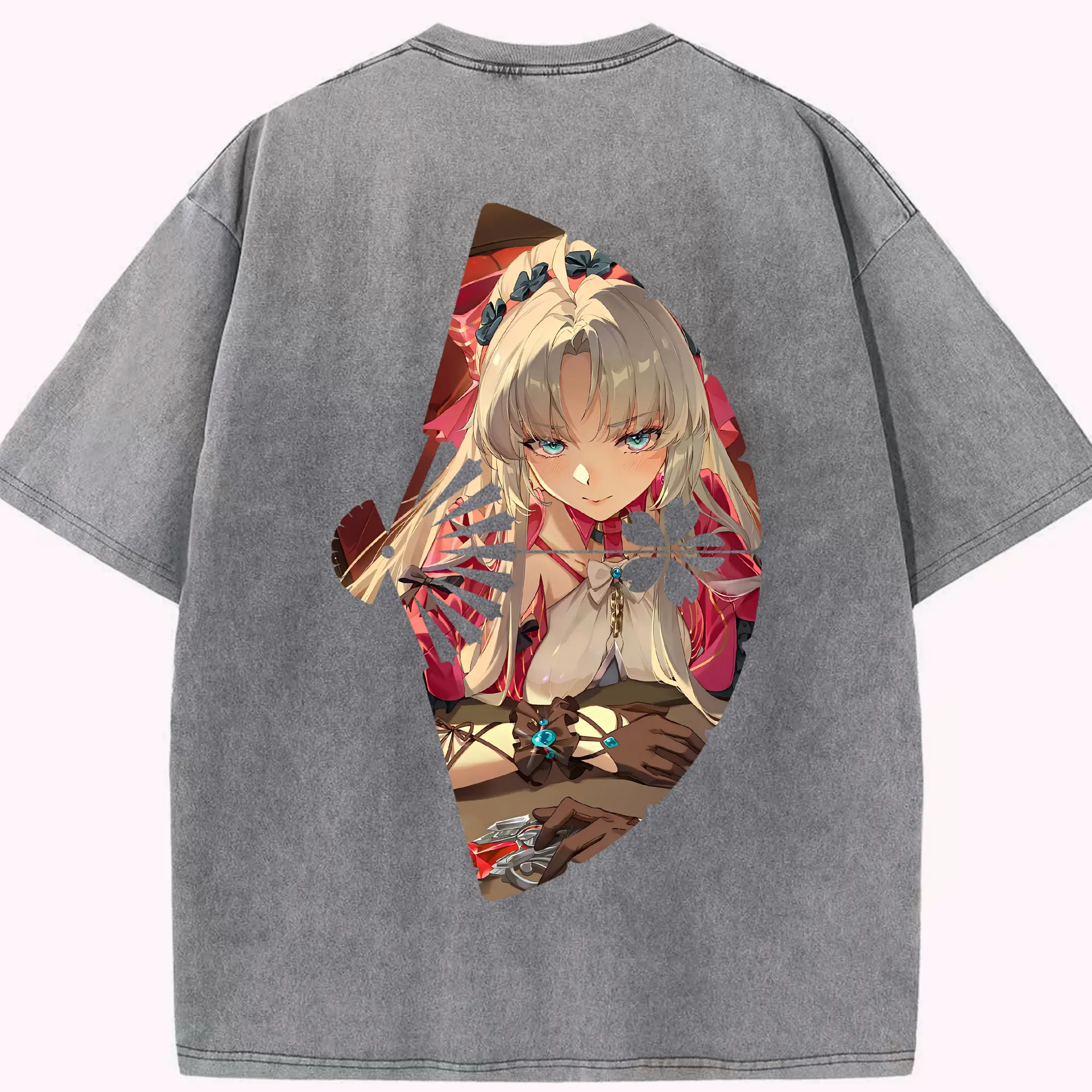 鳴潮 グッズ カルロッタ - 綿100% ヴィンテージ風 半袖Tシャツ ・ フロントプリント ・ 柔らか肌触り ・ 通気性 快適 ・ スポーツ カジュアル 外出用