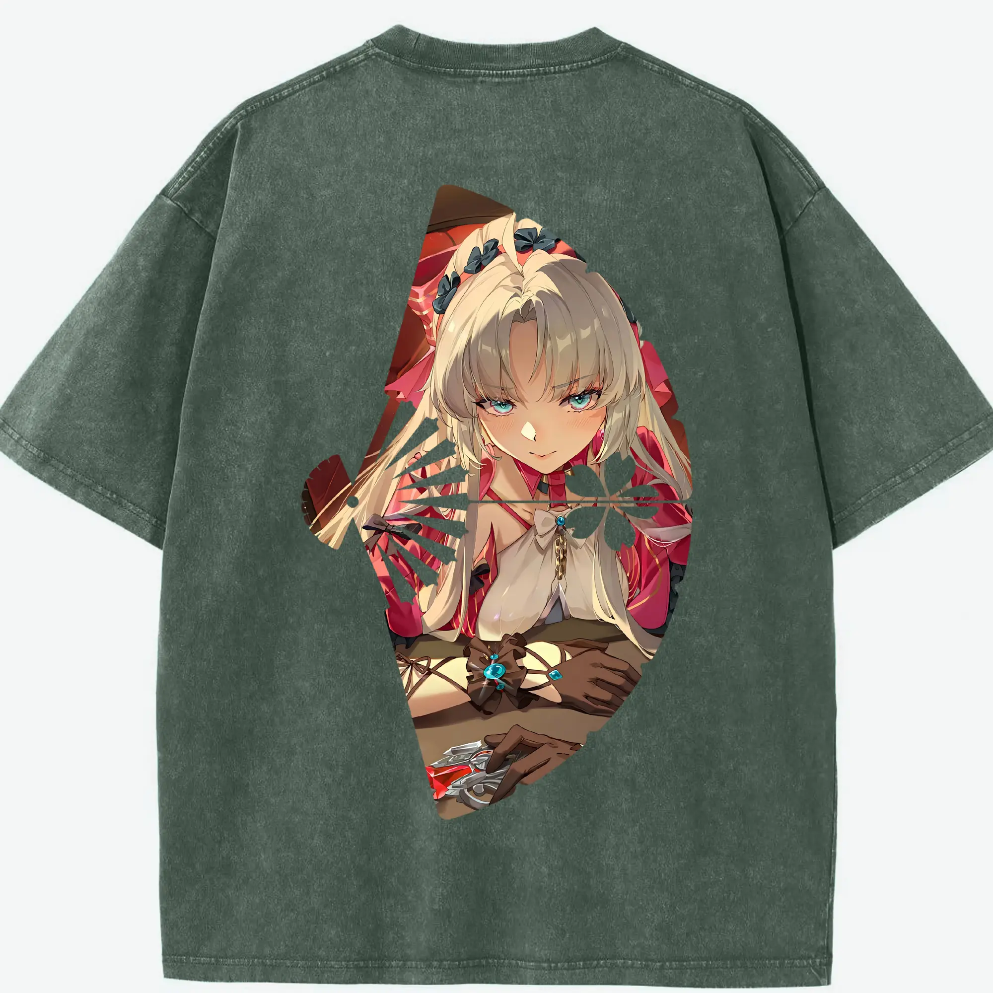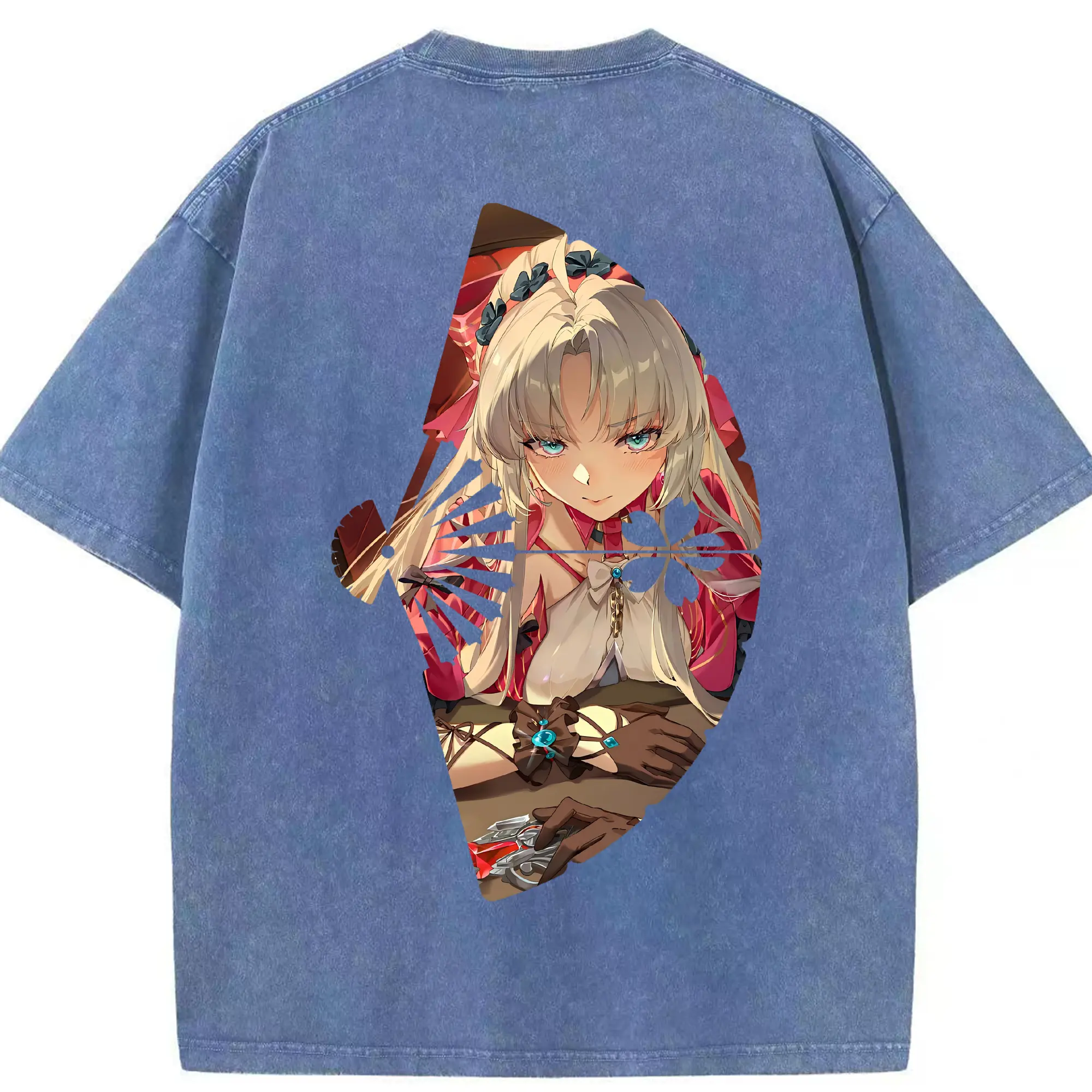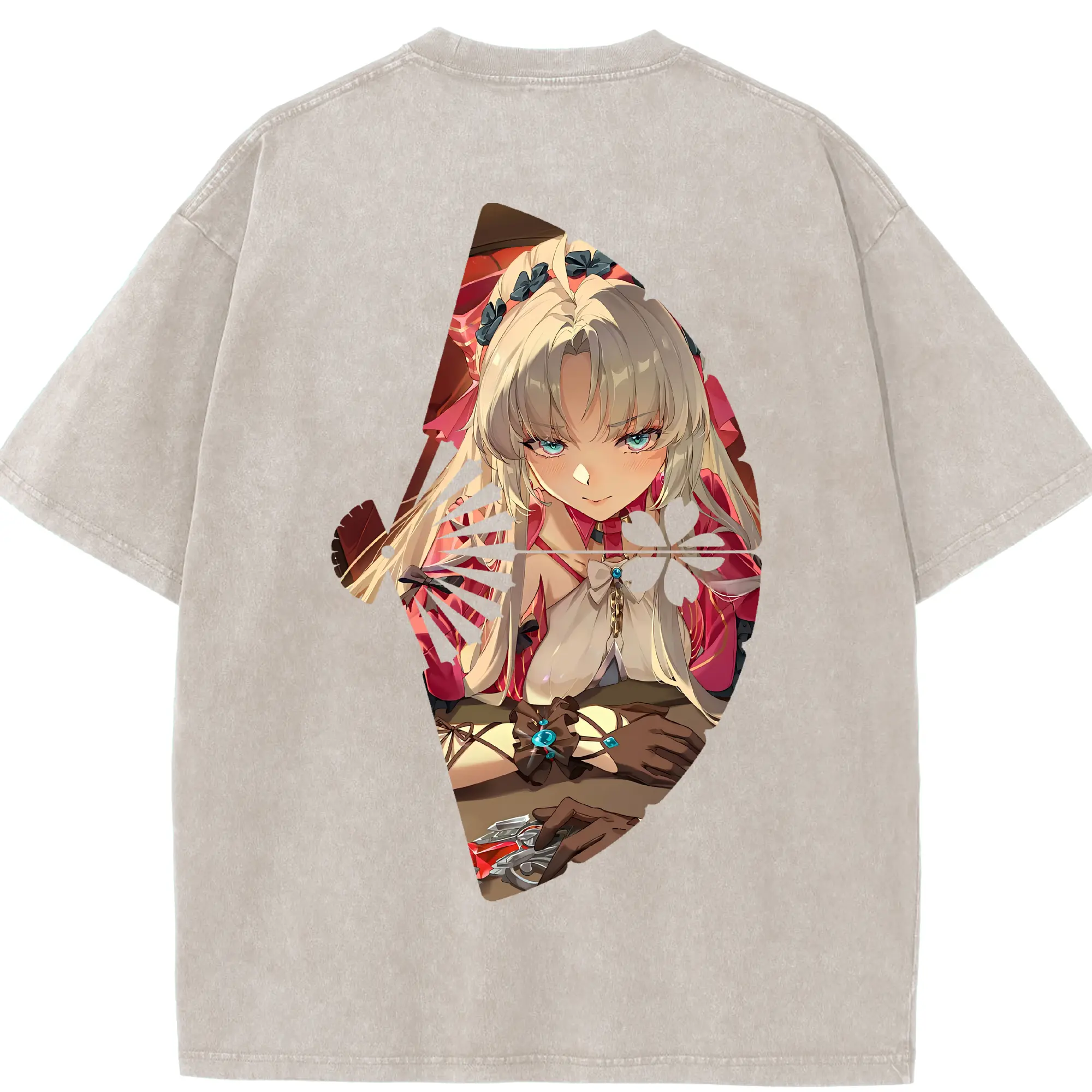 鳴潮 グッズ カルロッタ - 綿100% ヴィンテージ風 半袖Tシャツ ・ フロントプリント ・ 柔らか肌触り ・ 通気性 快適 ・ スポーツ カジュアル 外出用
