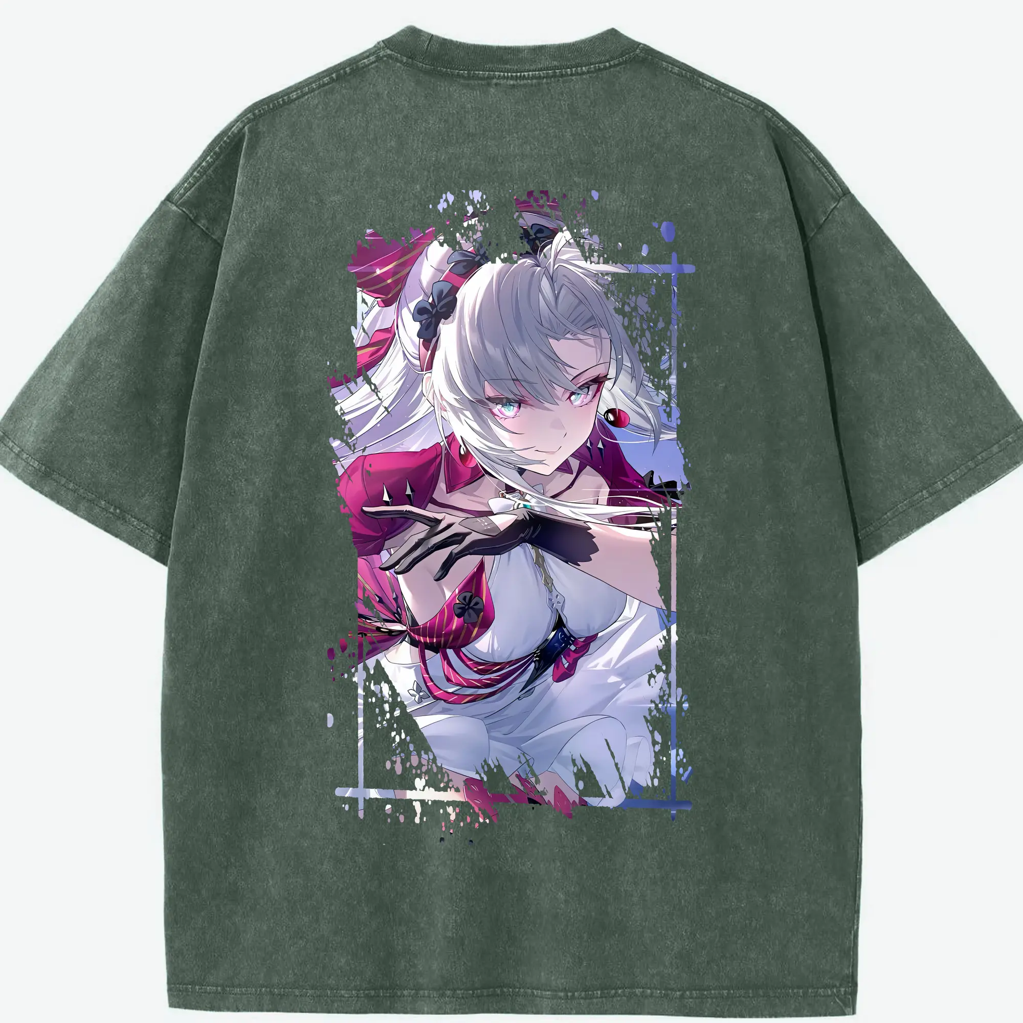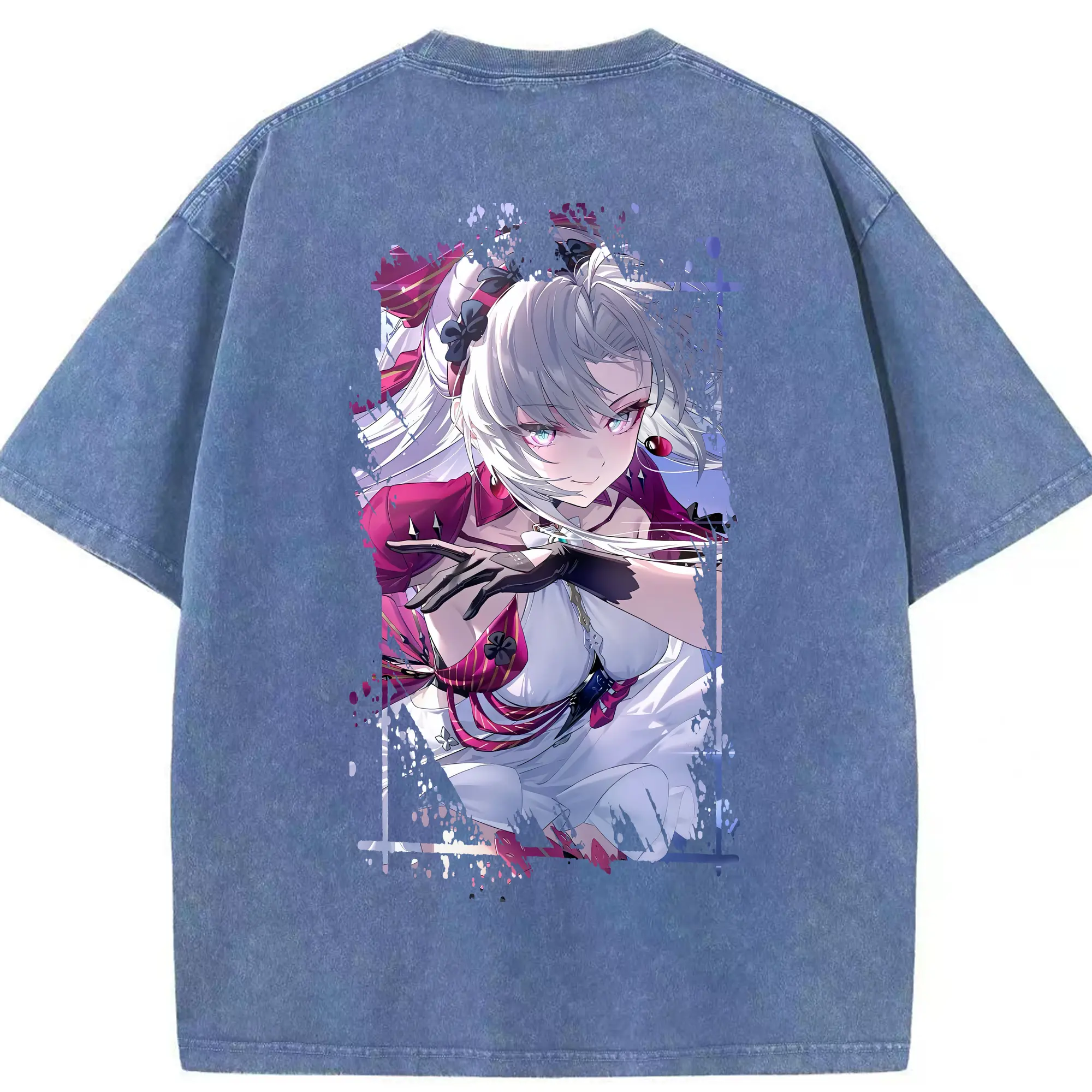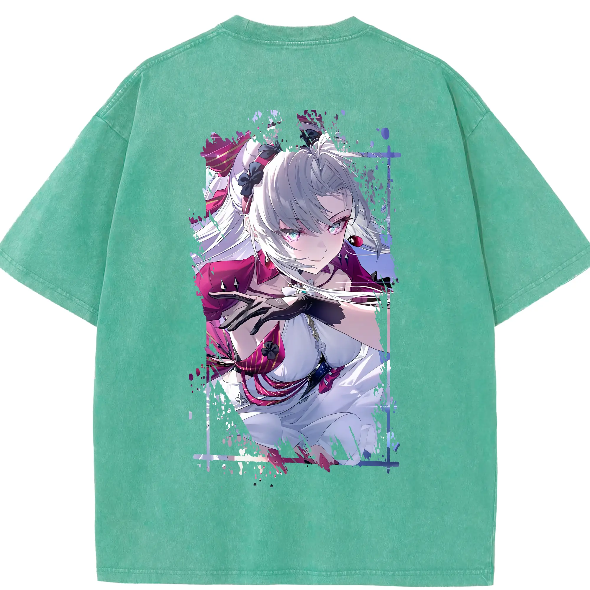 鳴潮 グッズ カルロッタ - 綿100% ヴィンテージ風 半袖Tシャツ ・ フロントプリント ・ 柔らか肌触り ・ 通気性 快適 ・ スポーツ カジュアル 外出用