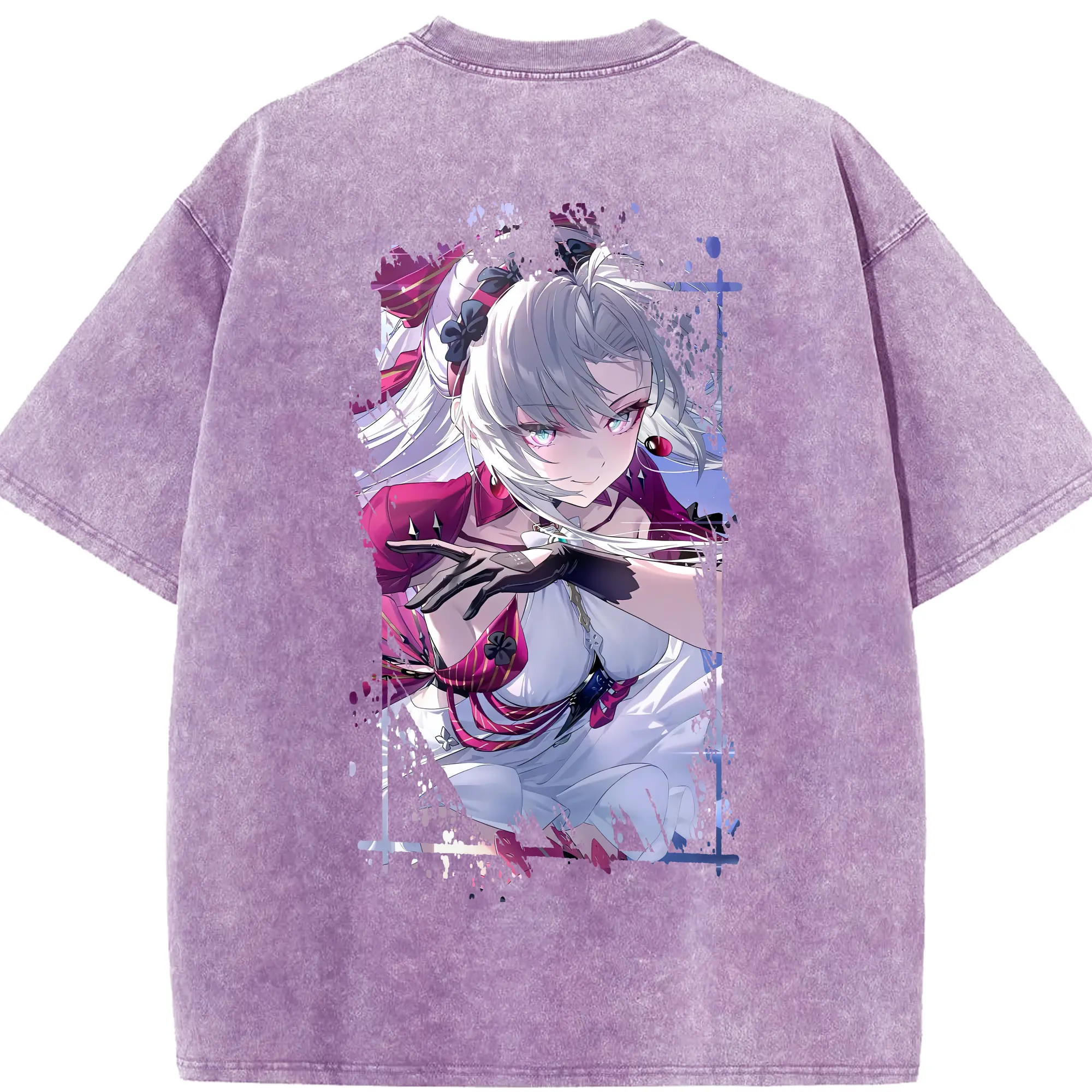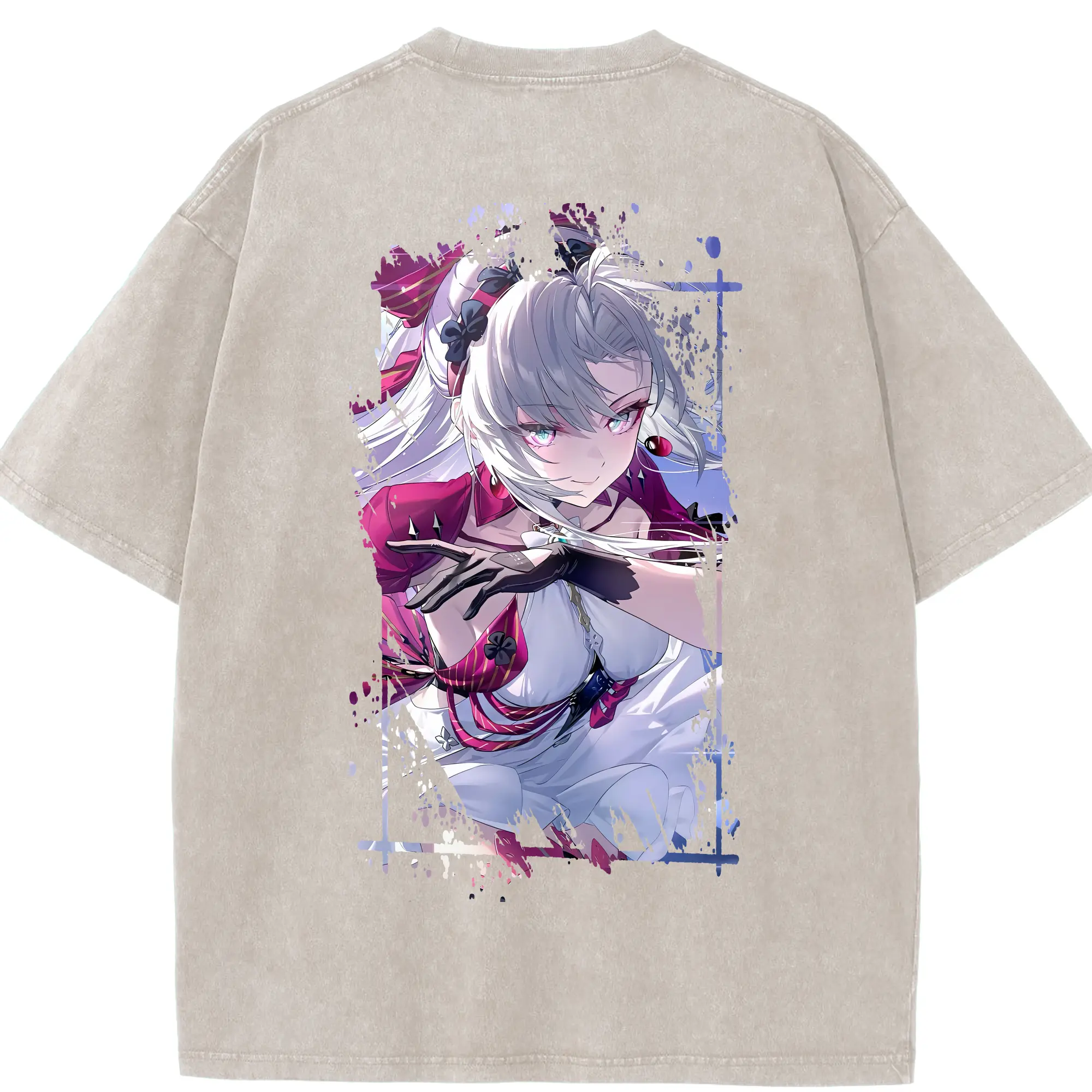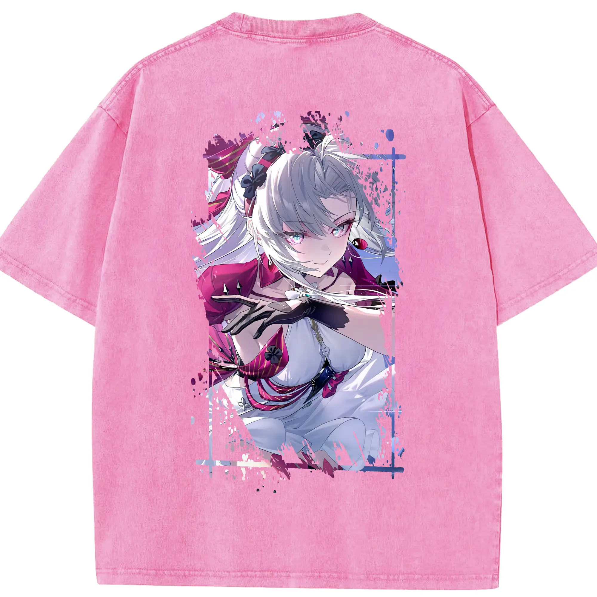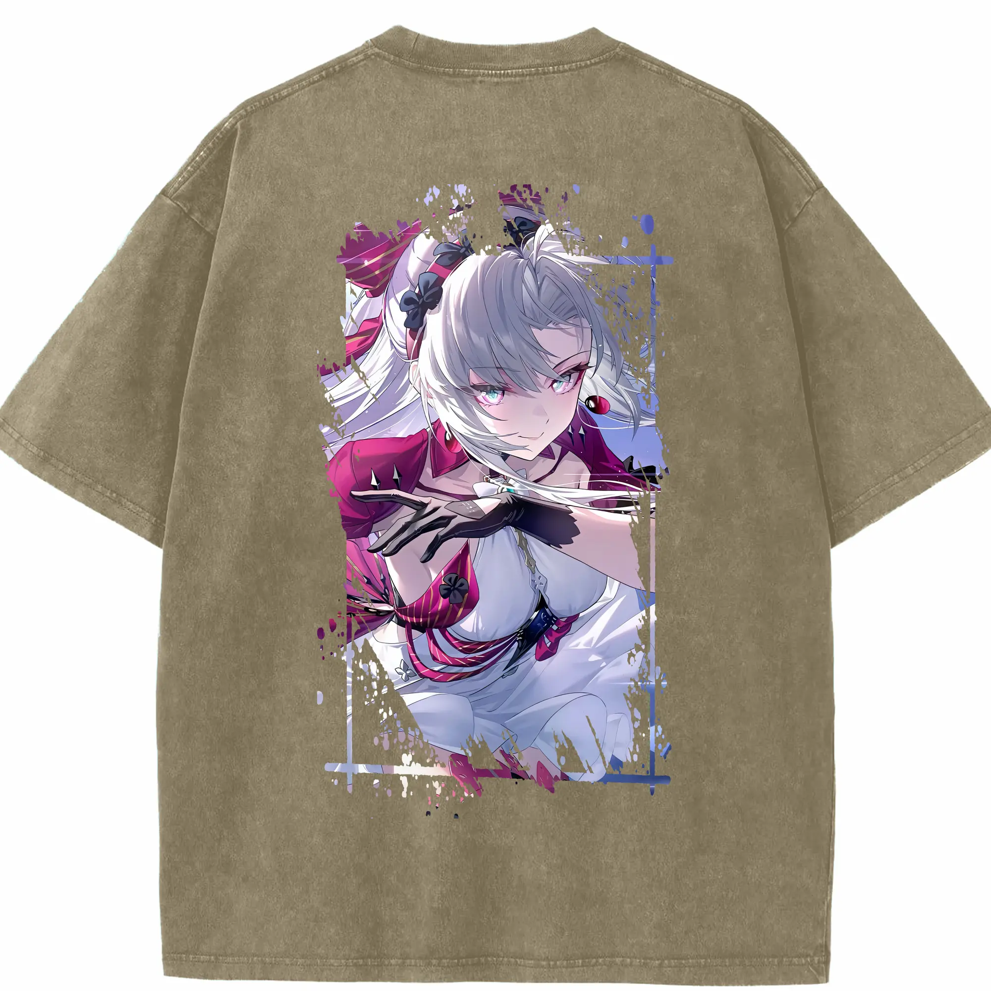 原 神 グッズ アイノ - 綿100% ヴィンテージ風 半袖Tシャツ ・ 背面プリント ・ 柔らか肌触り ・ 通気性 快適 ・ スポーツ カジュアル 外出用