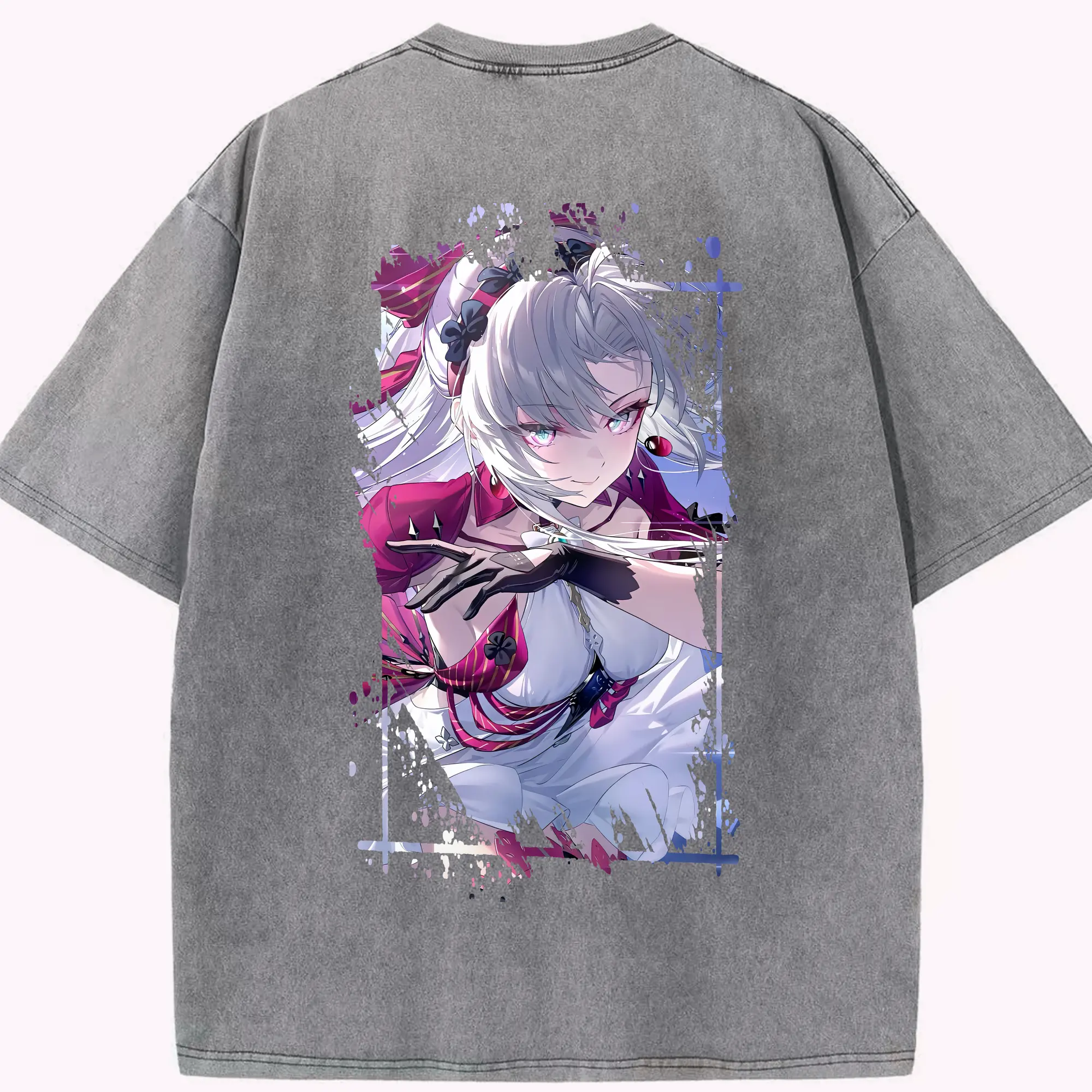 崩壊:スターレイル グッズ ゼーレ - 綿100% ヴィンテージ風 半袖Tシャツ ・ 背面プリント ・ 柔らか肌触り ・ 通気性 快適 ・ スポーツ カジュアル 外出用