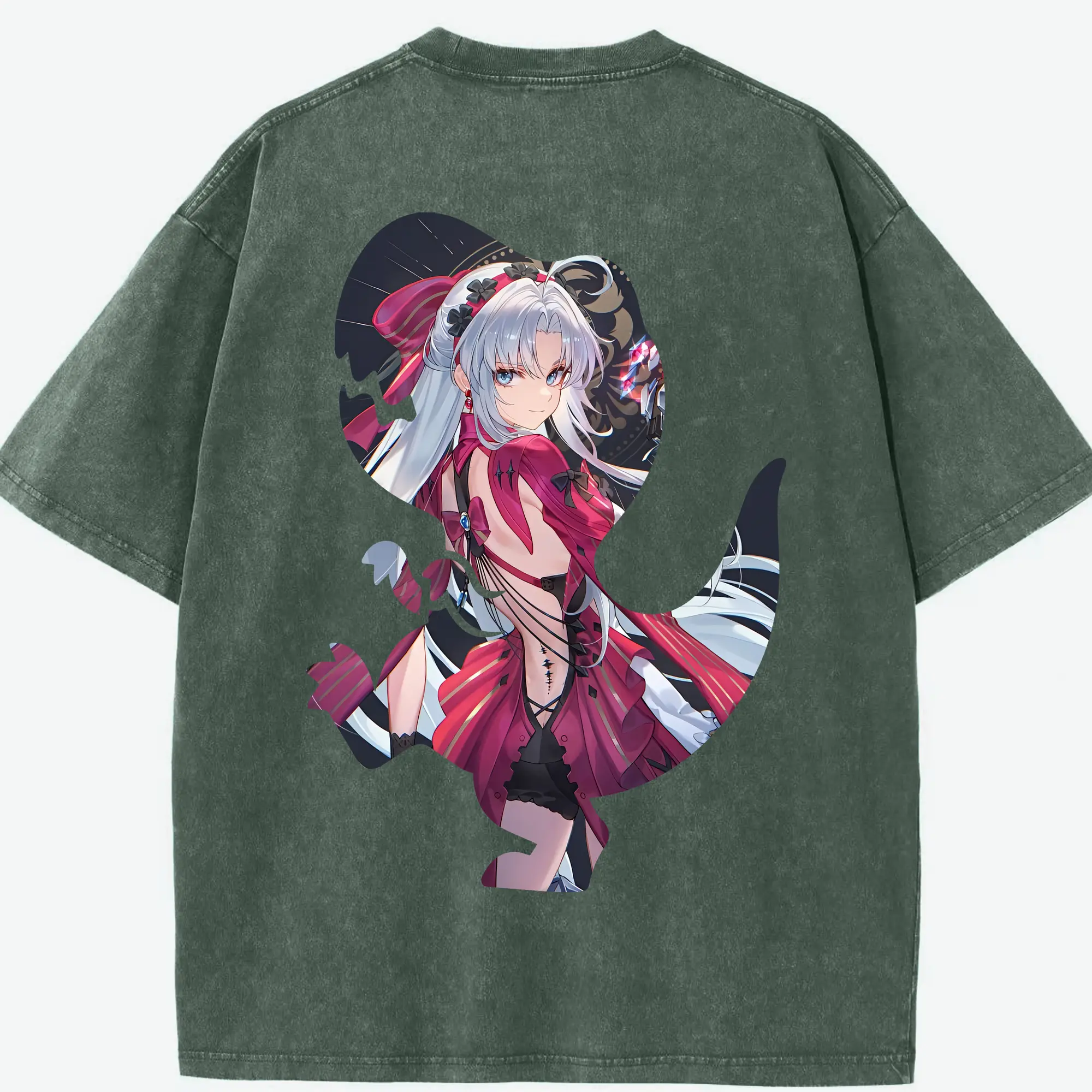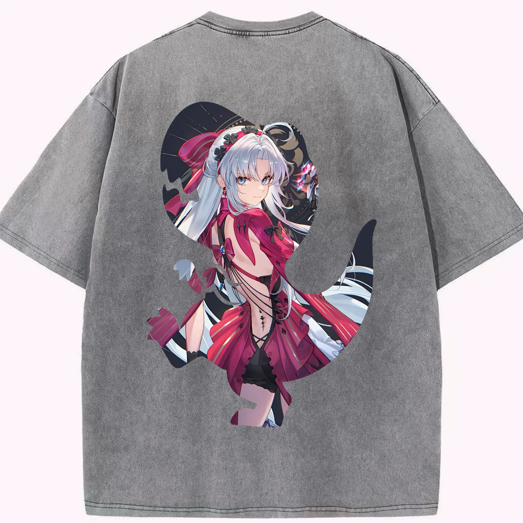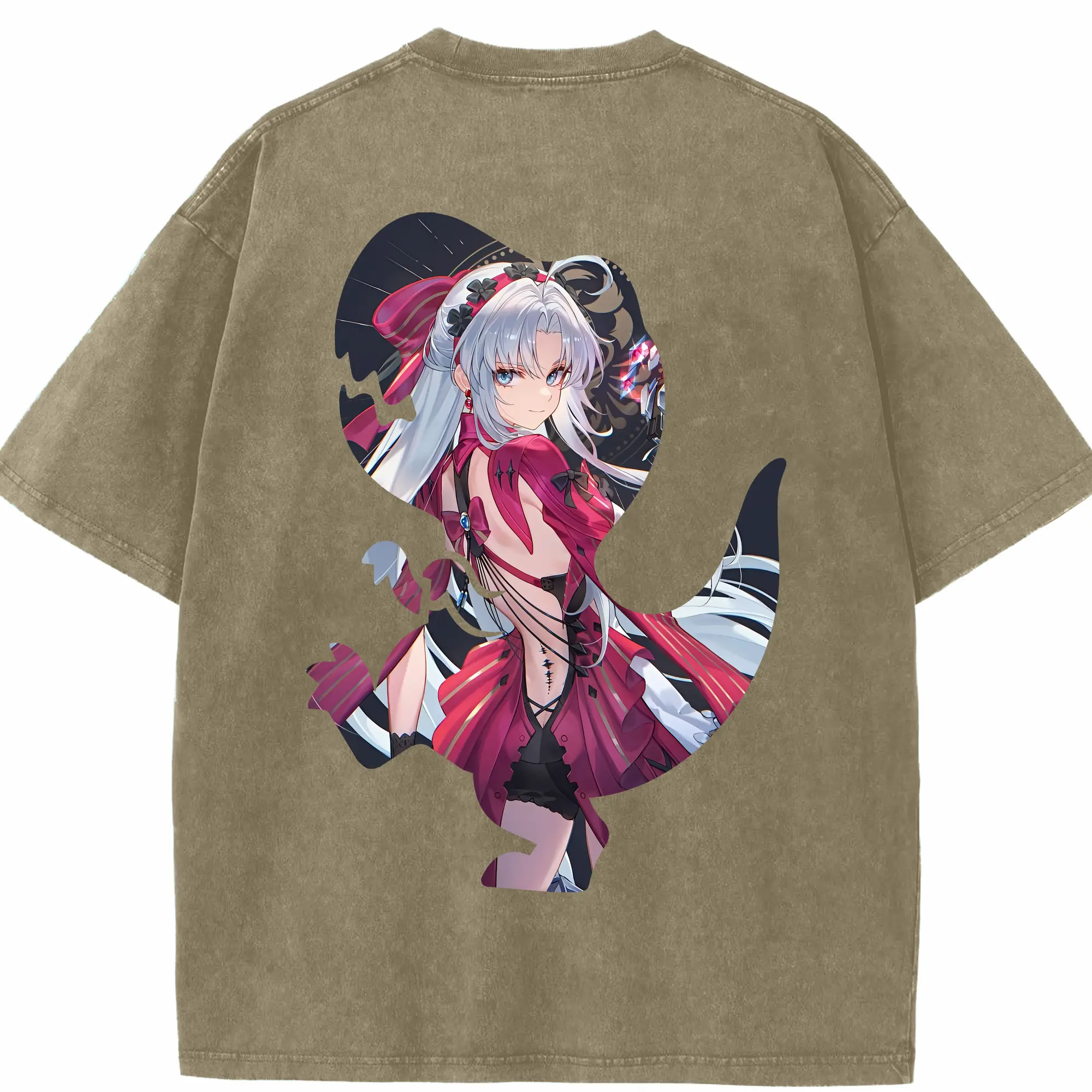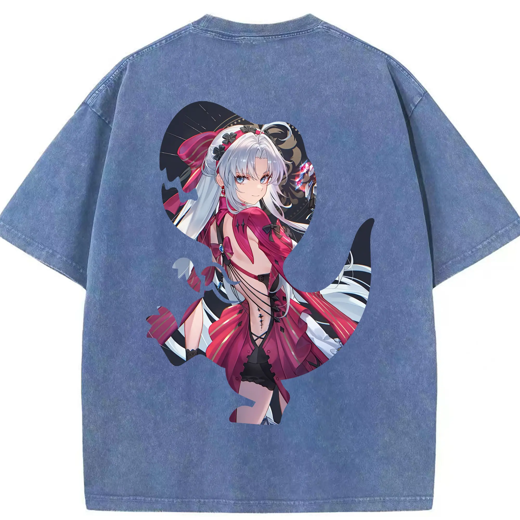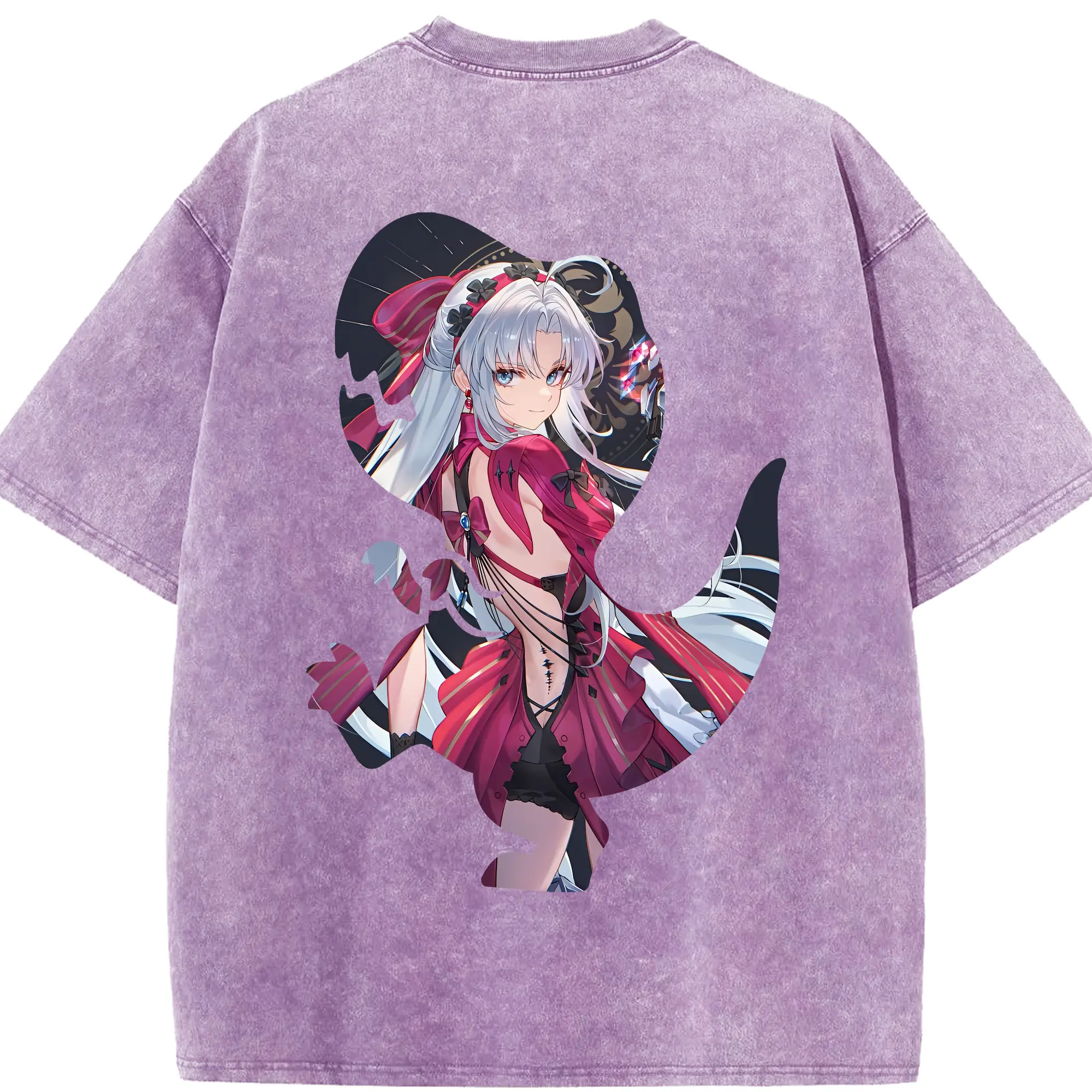 鳴潮 グッズ カルロッタ - 綿100% ヴィンテージ風 半袖Tシャツ ・ フロントプリント ・ 柔らか肌触り ・ 通気性 快適 ・ スポーツ カジュアル 外出用