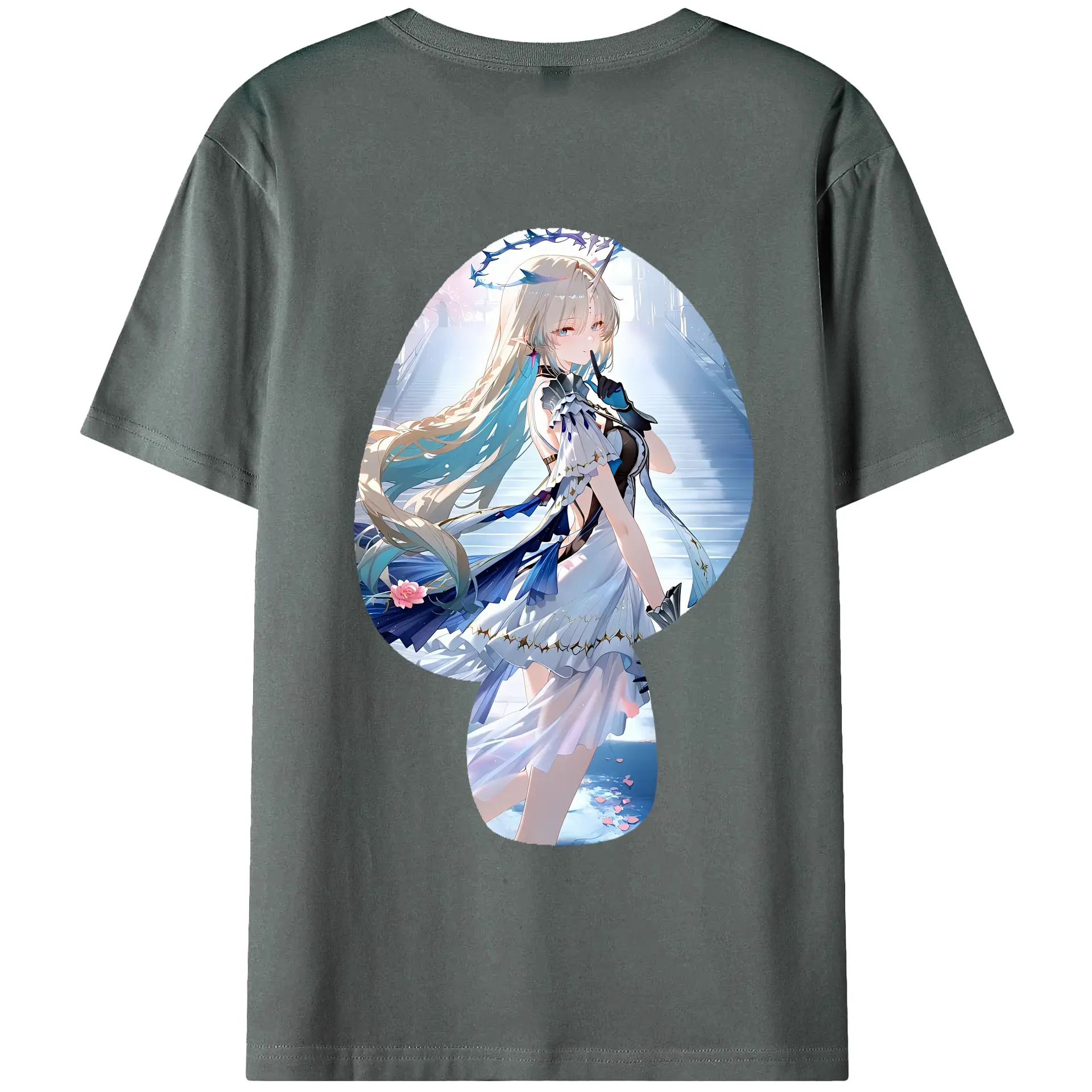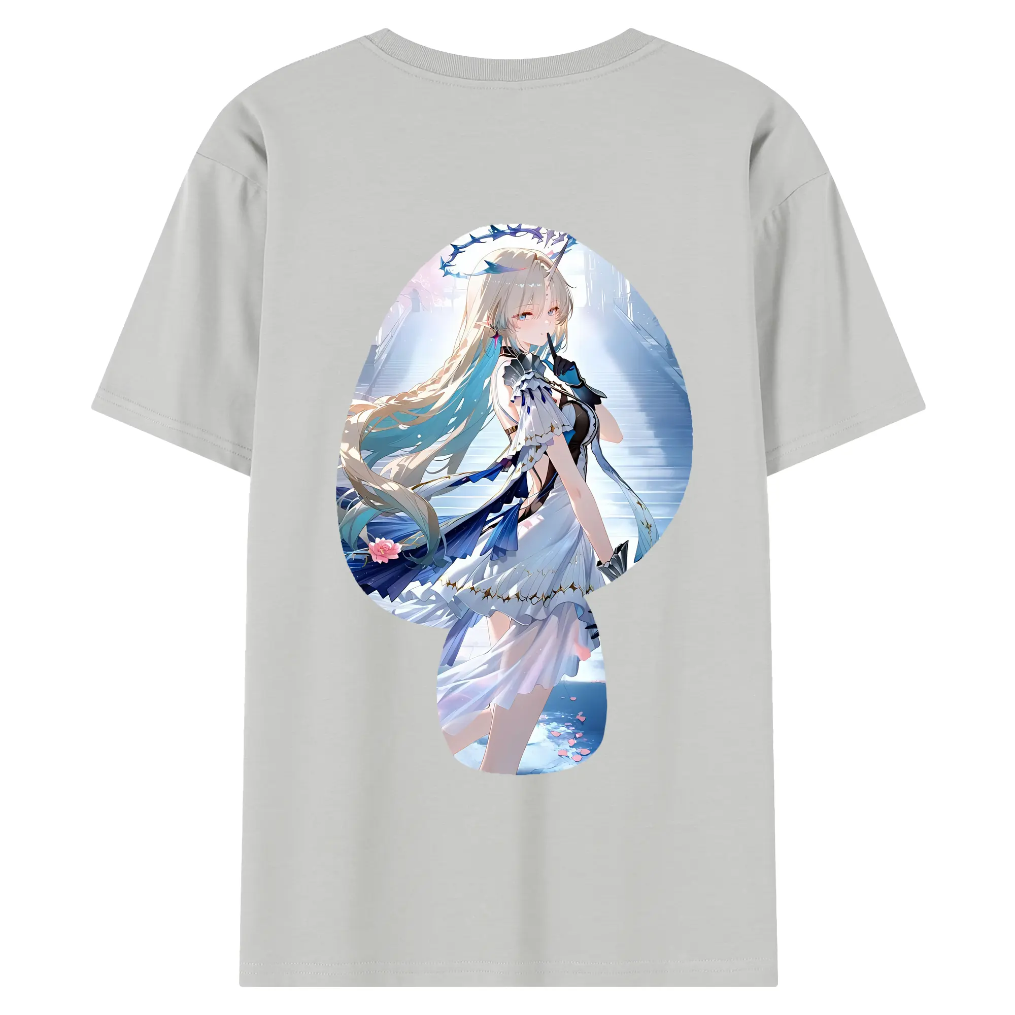 崩壊:スターレイル グッズ 銀狼 - 綿100% 半袖Tシャツ ・ バックプリント ・ 快適 通気性 ・ 日常使い 散歩 スポーツ用
