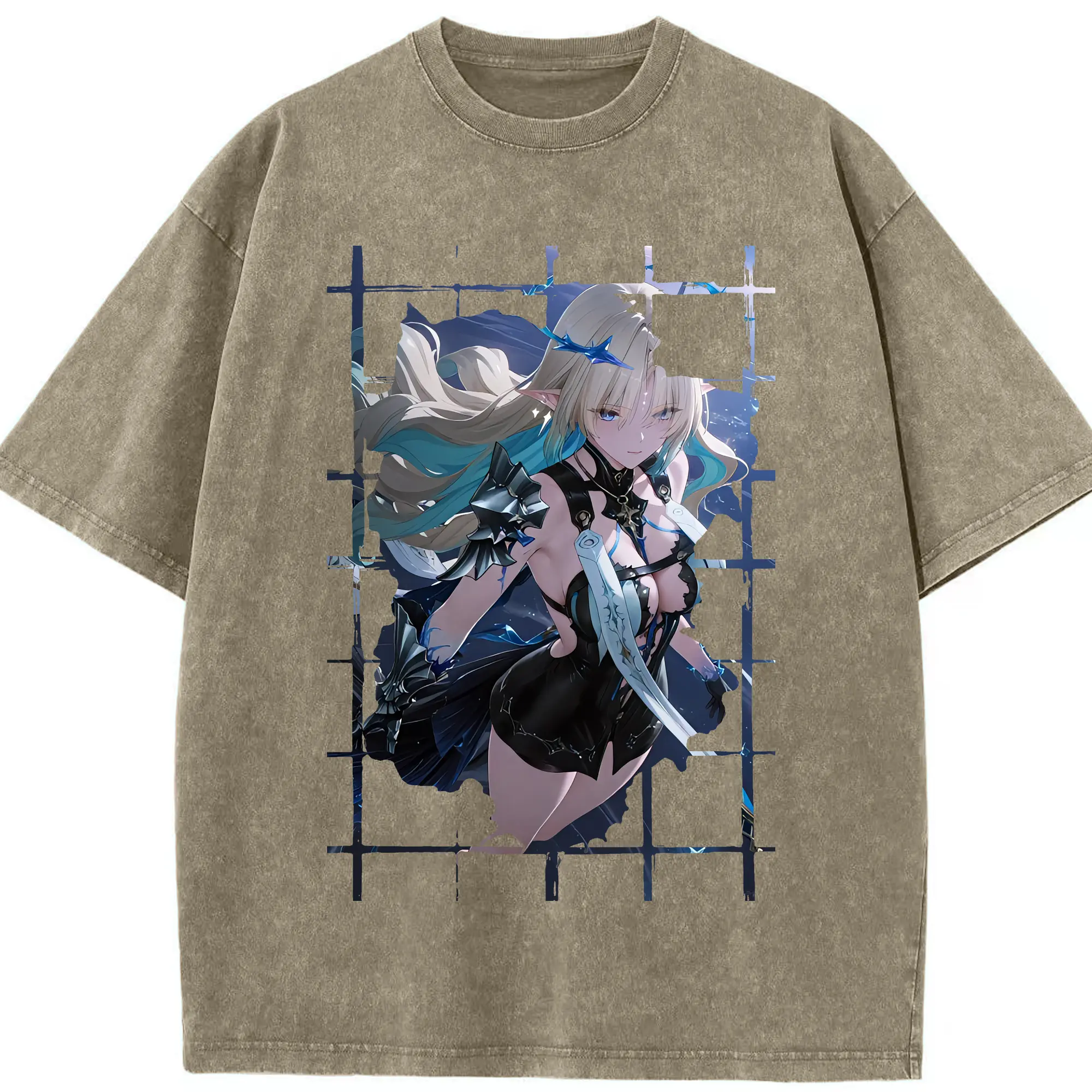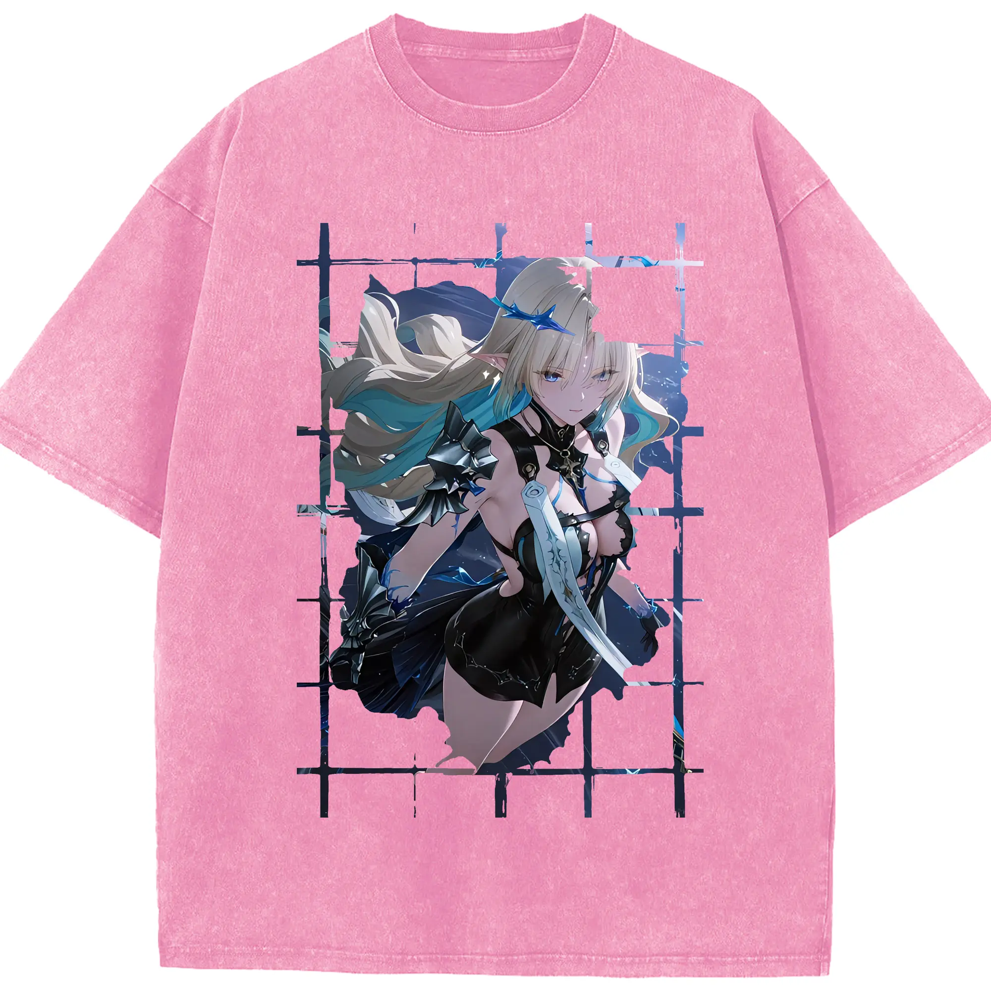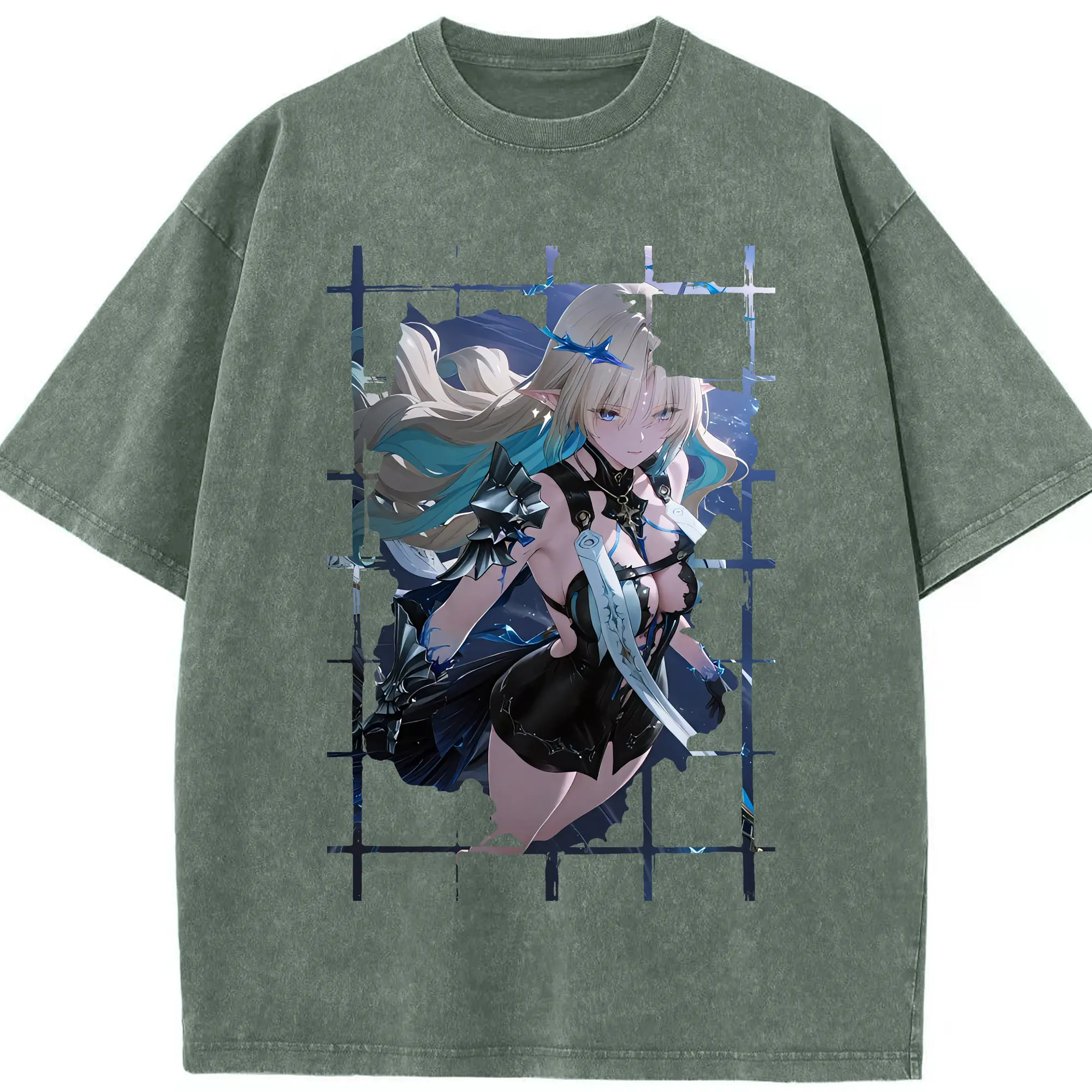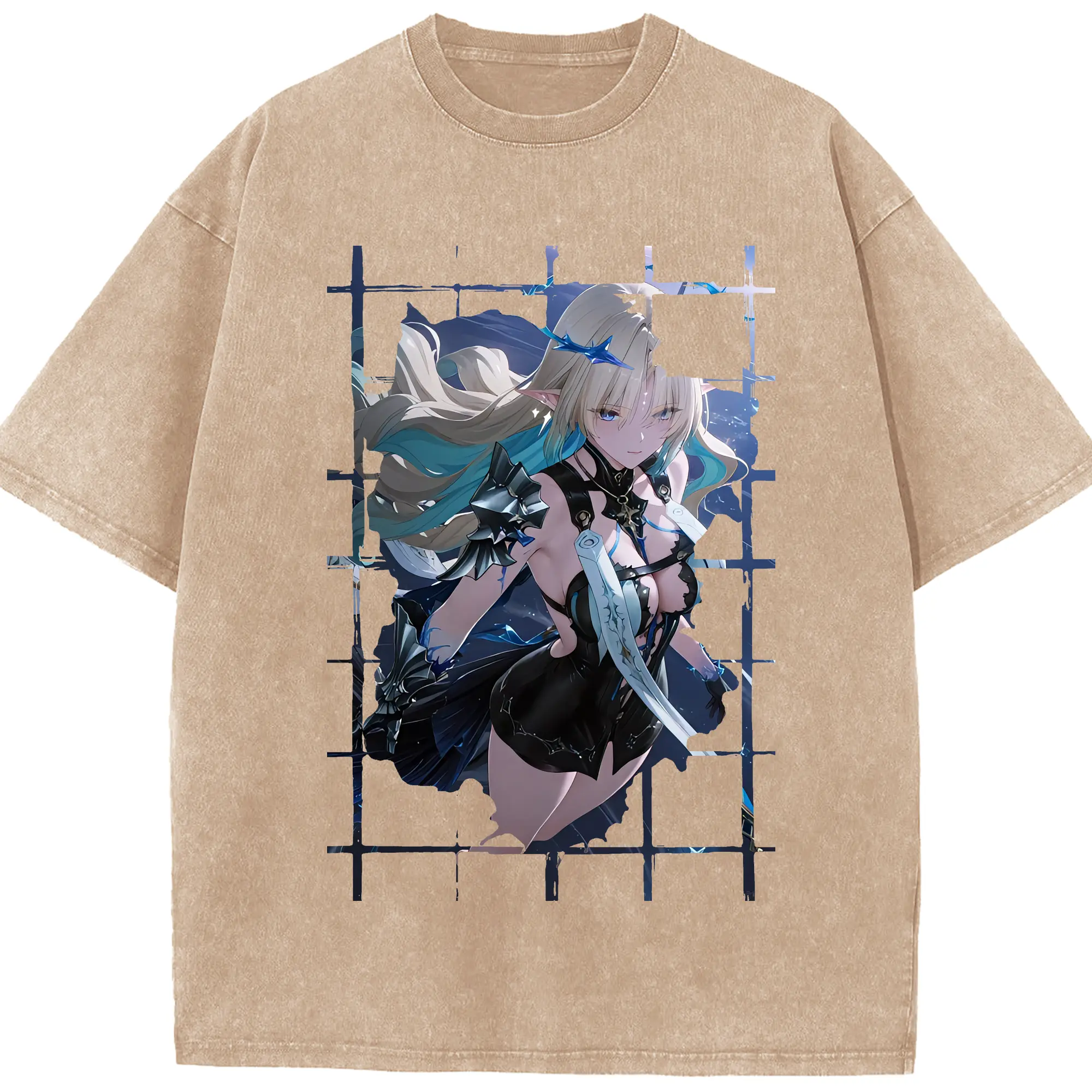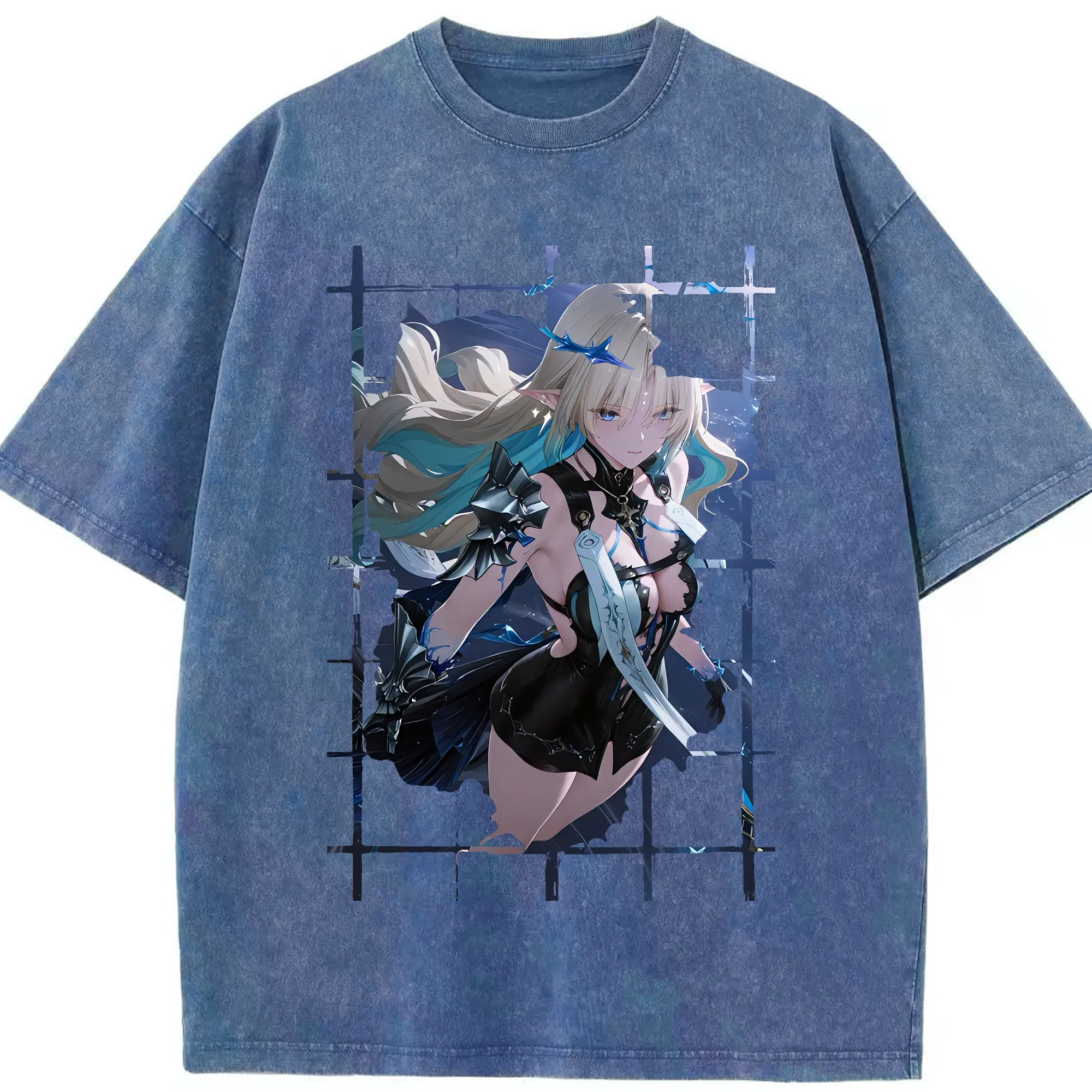鳴潮 グッズ カルテジア - 綿100% ヴィンテージ風 半袖Tシャツ ・ 背面プリント ・ 柔らか肌触り ・ 通気性 快適 ・ スポーツ カジュアル 外出用