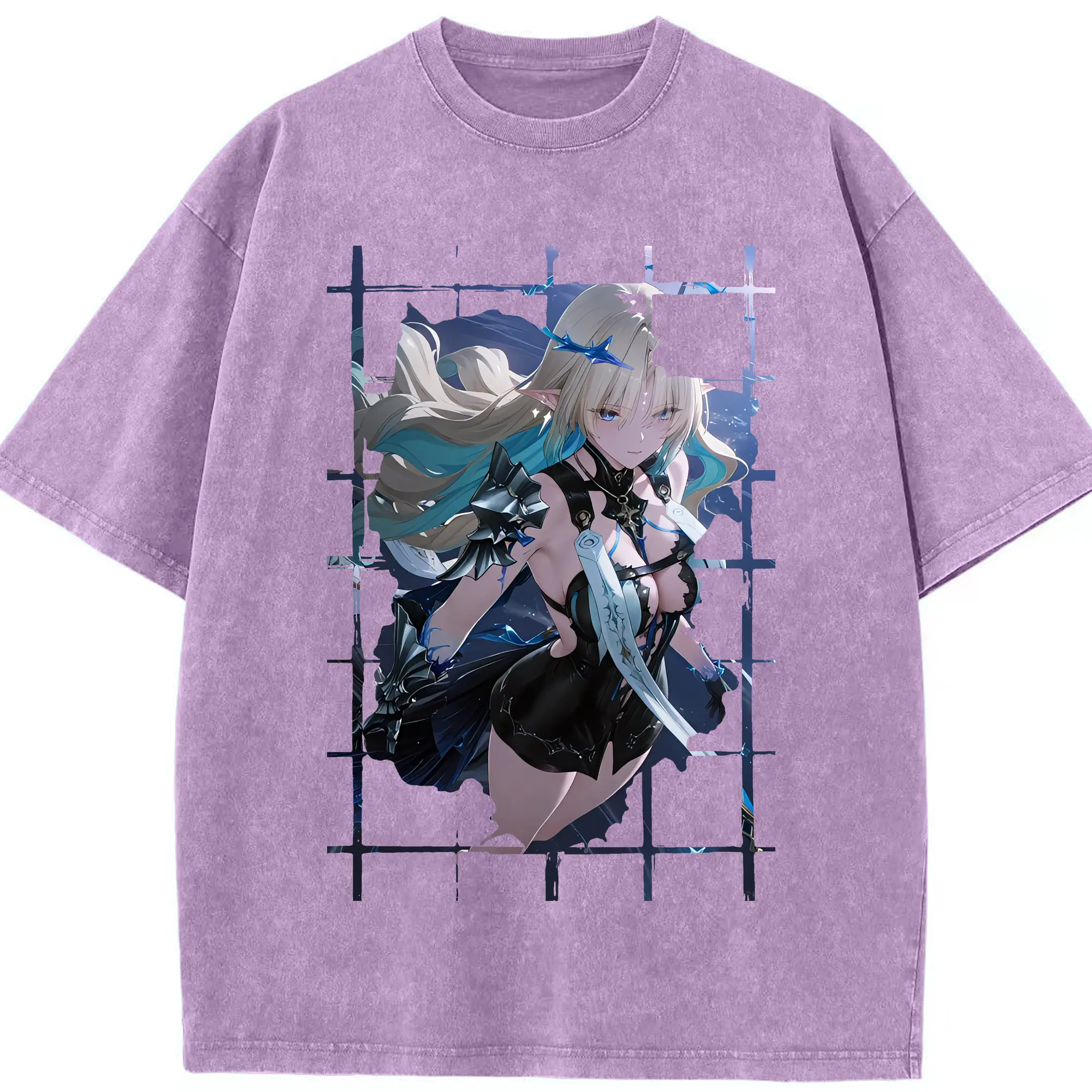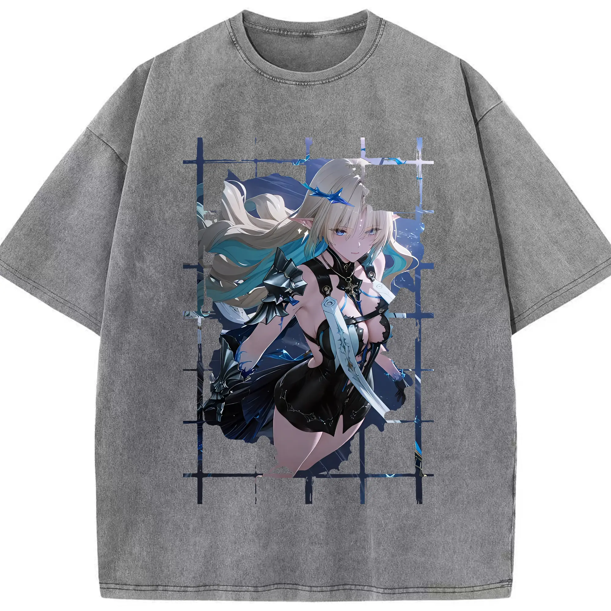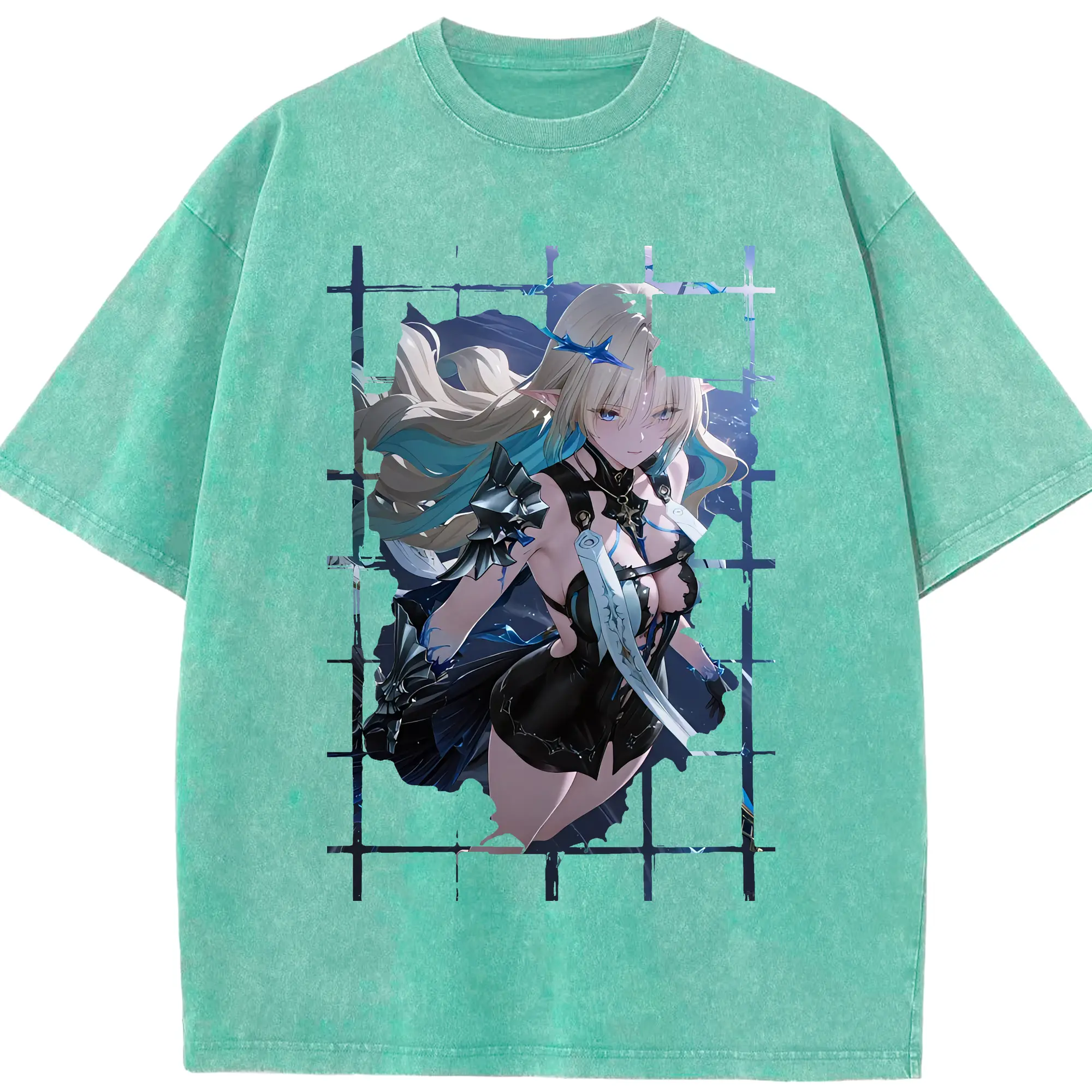 原 神 グッズ フリーナ - 綿100% ヴィンテージ風 半袖Tシャツ ・ フロントプリント ・ 柔らか肌触り ・ 通気性 快適 ・ スポーツ カジュアル 外出用