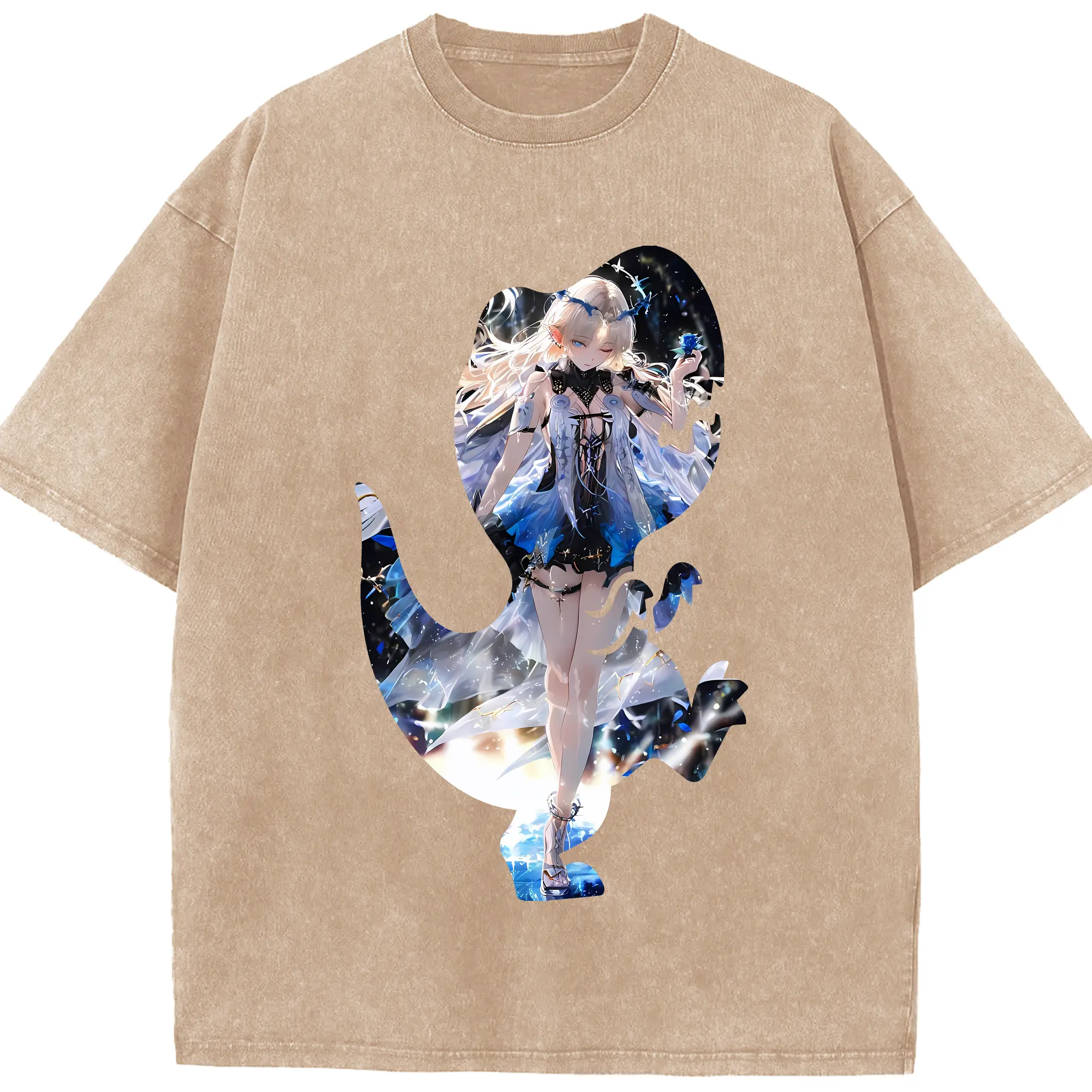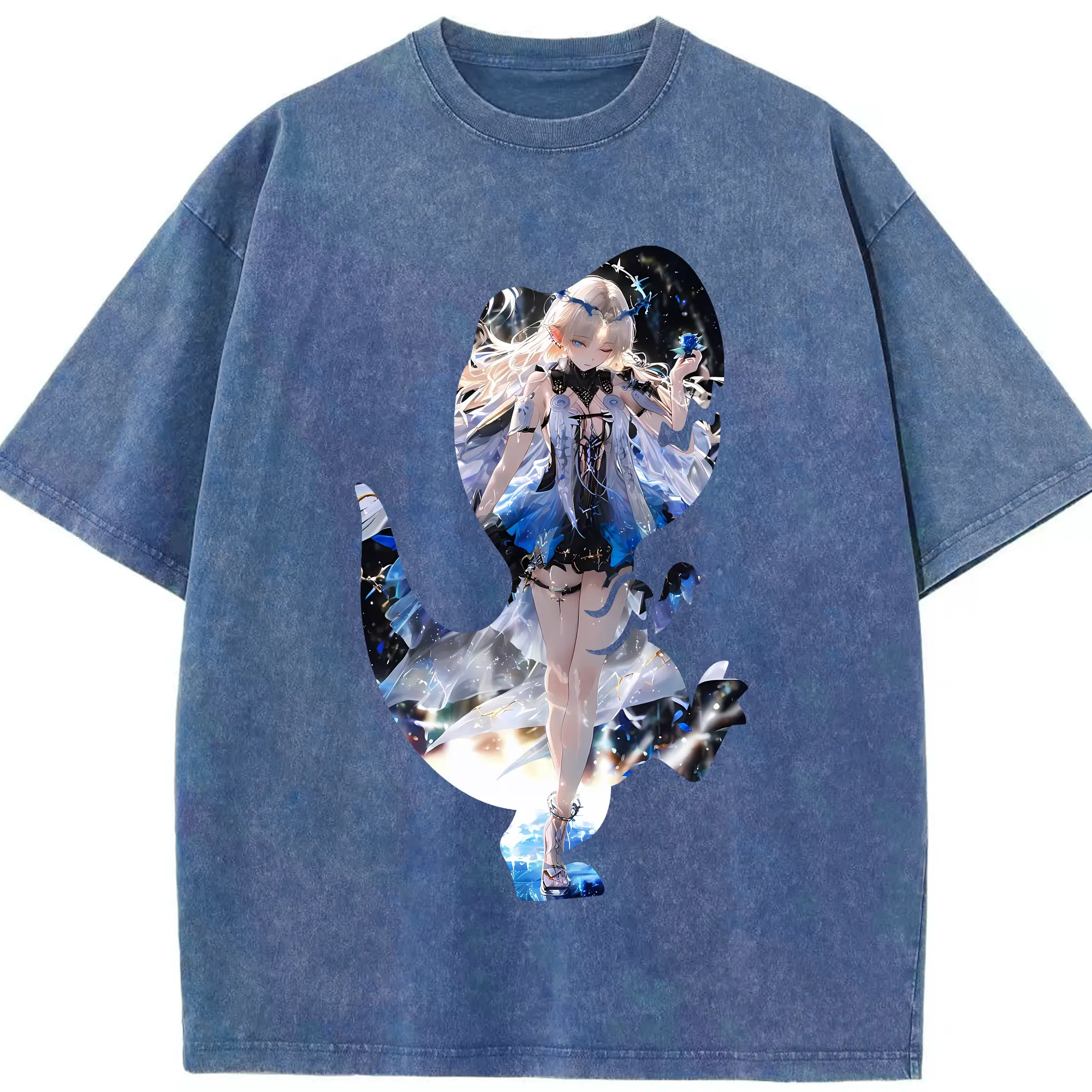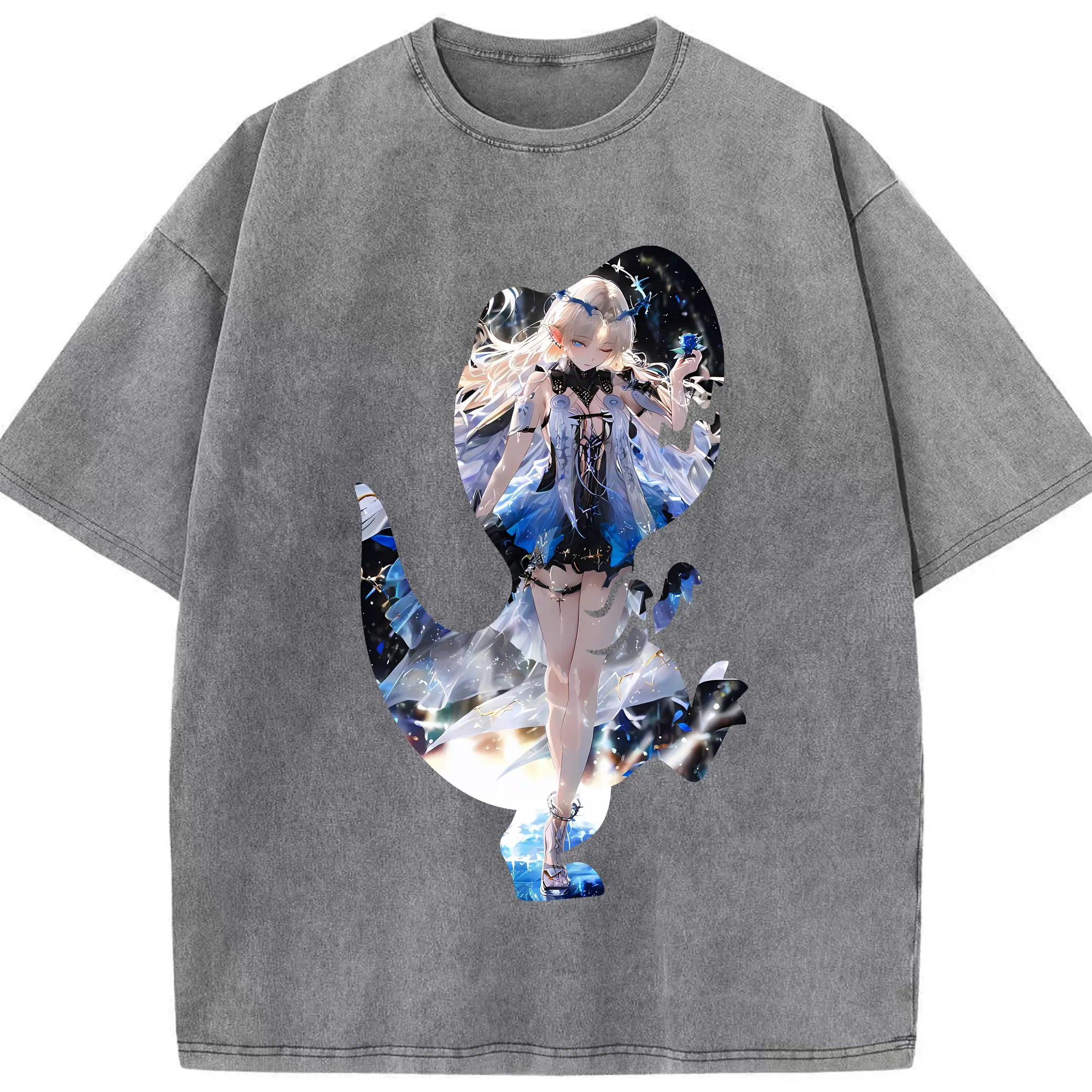 鳴潮 グッズ カルテジア - 綿100% ヴィンテージ風 半袖Tシャツ ・ 背面プリント ・ 柔らか肌触り ・ 通気性 快適 ・ スポーツ カジュアル 外出用