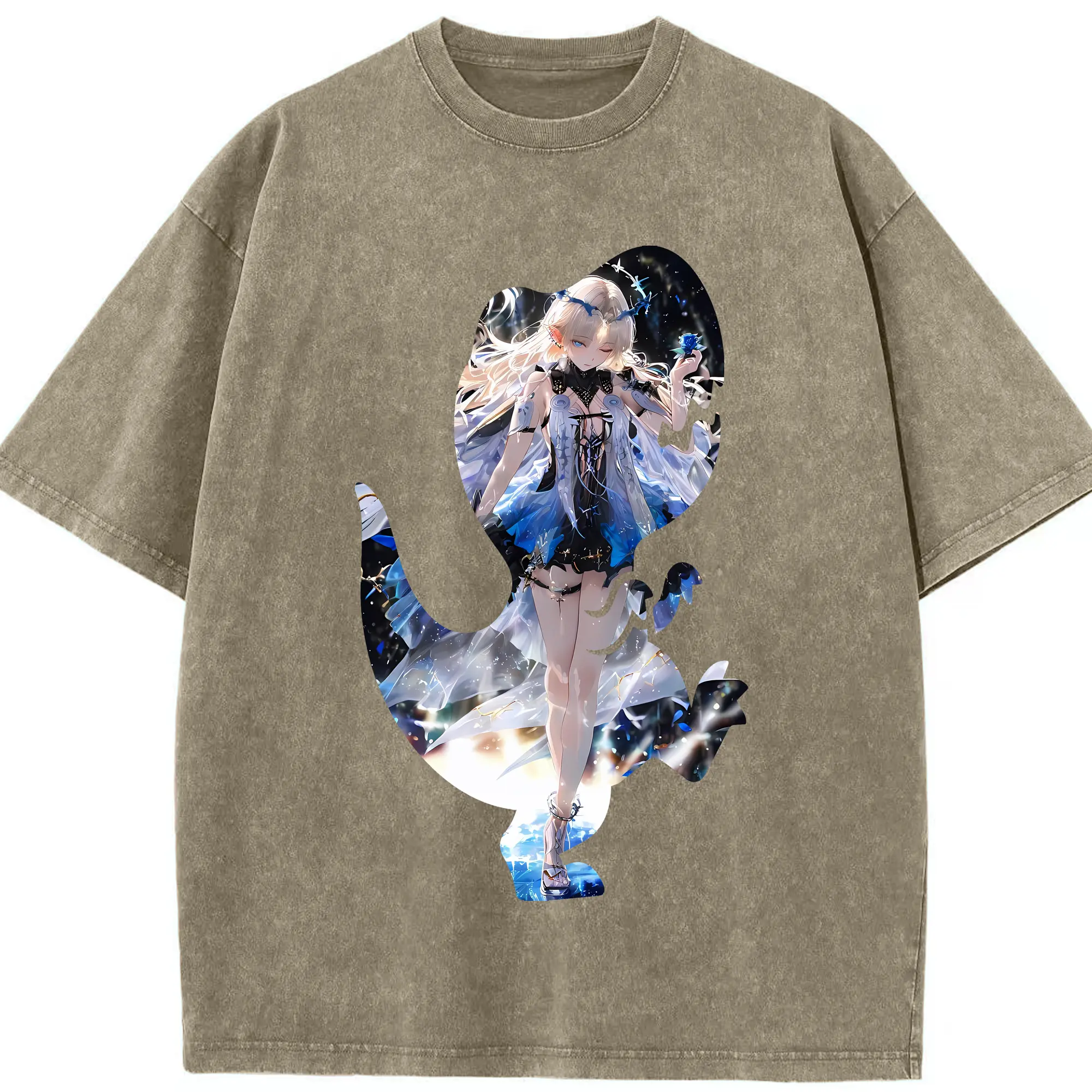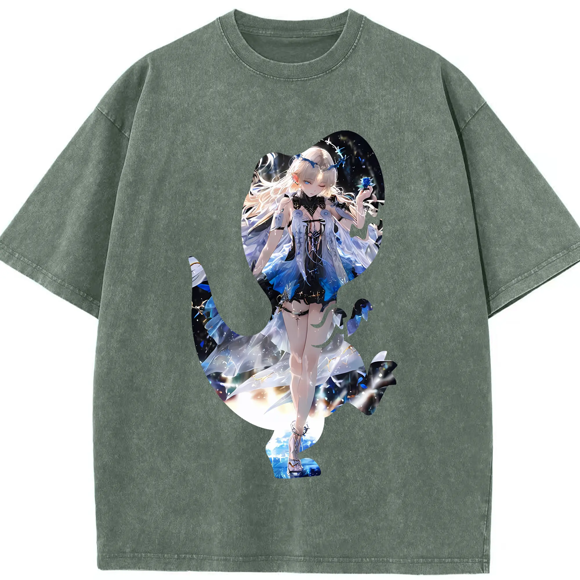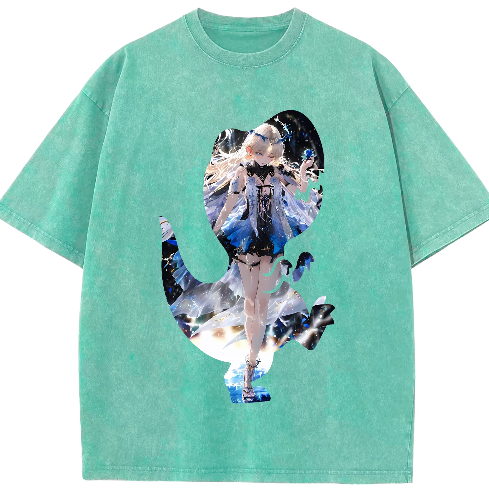 鳴潮 グッズ カルテジア - 綿100% ヴィンテージ風 半袖Tシャツ ・ 背面プリント ・ 柔らか肌触り ・ 通気性 快適 ・ スポーツ カジュアル 外出用