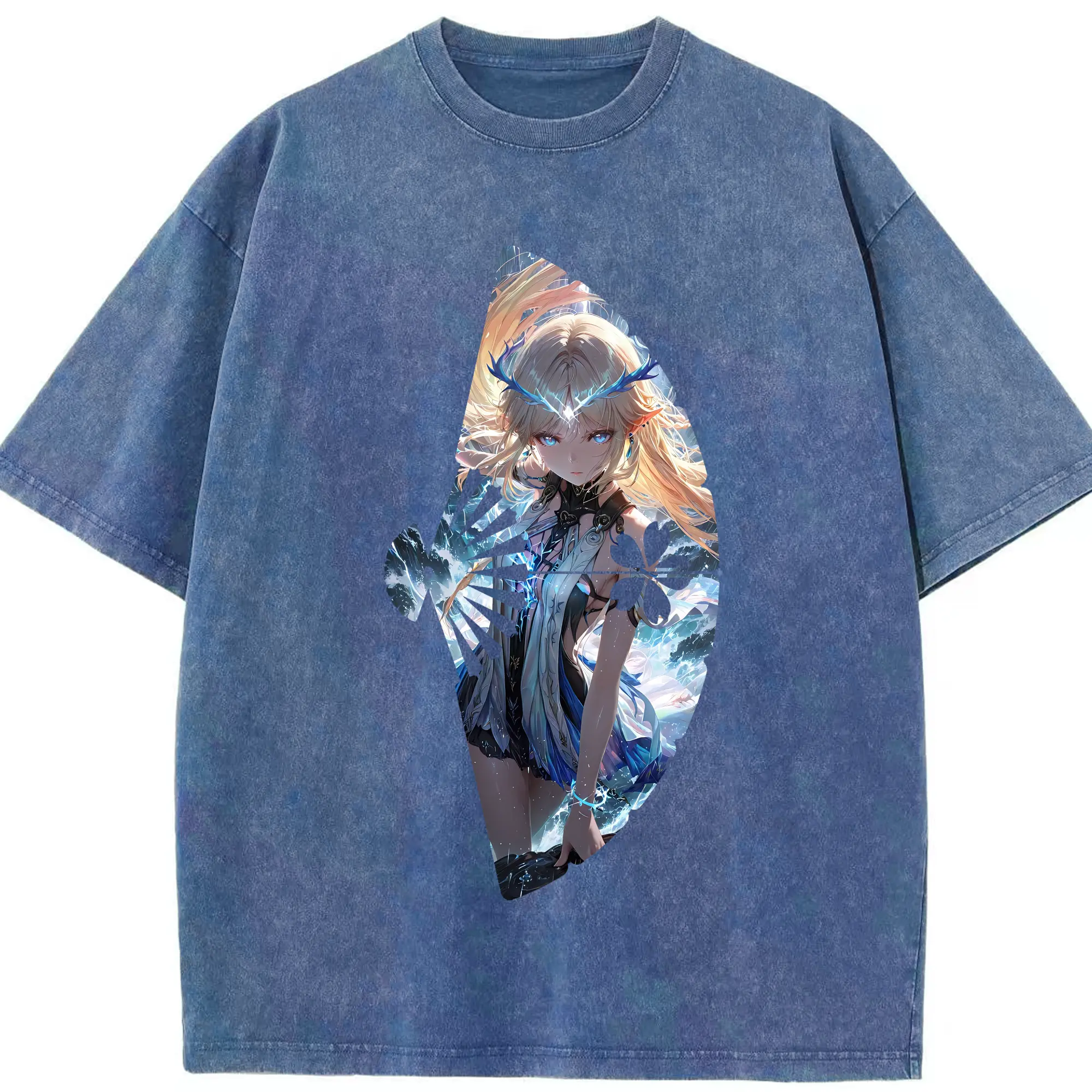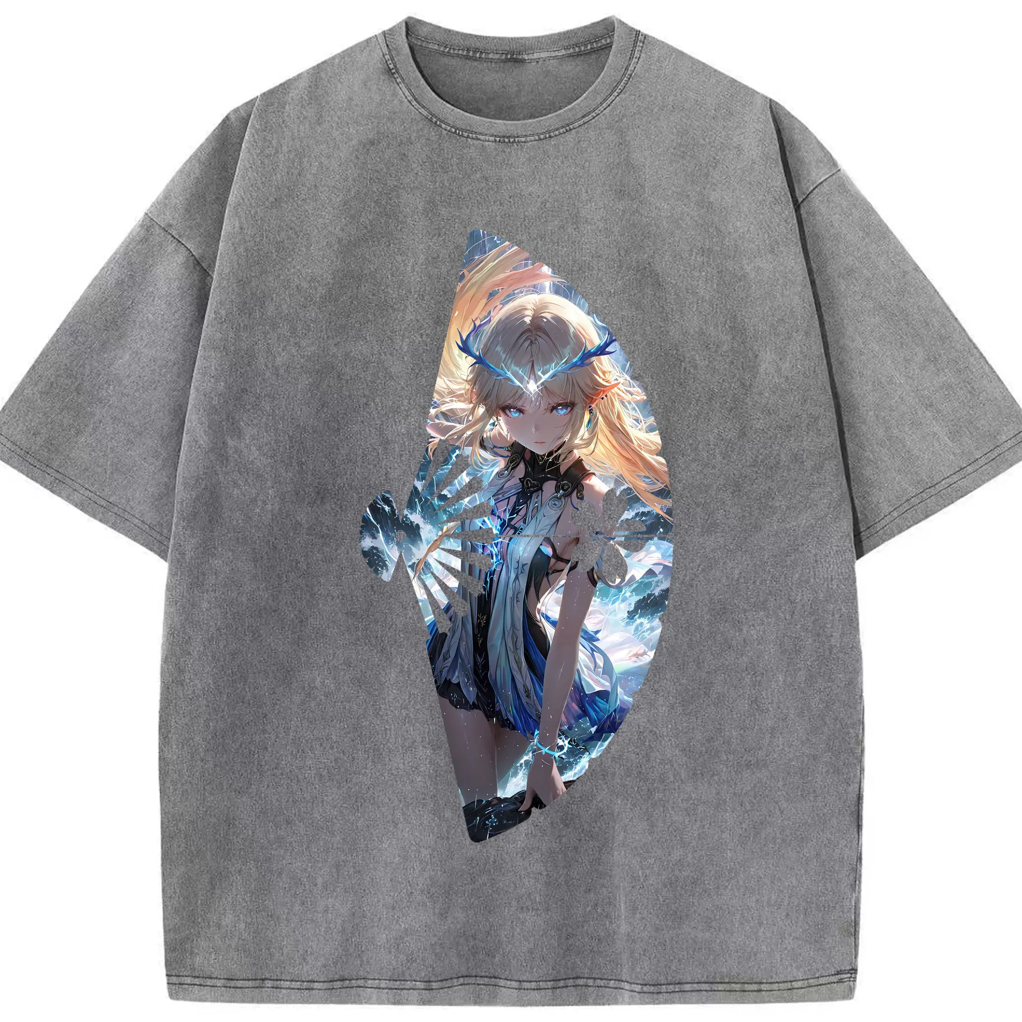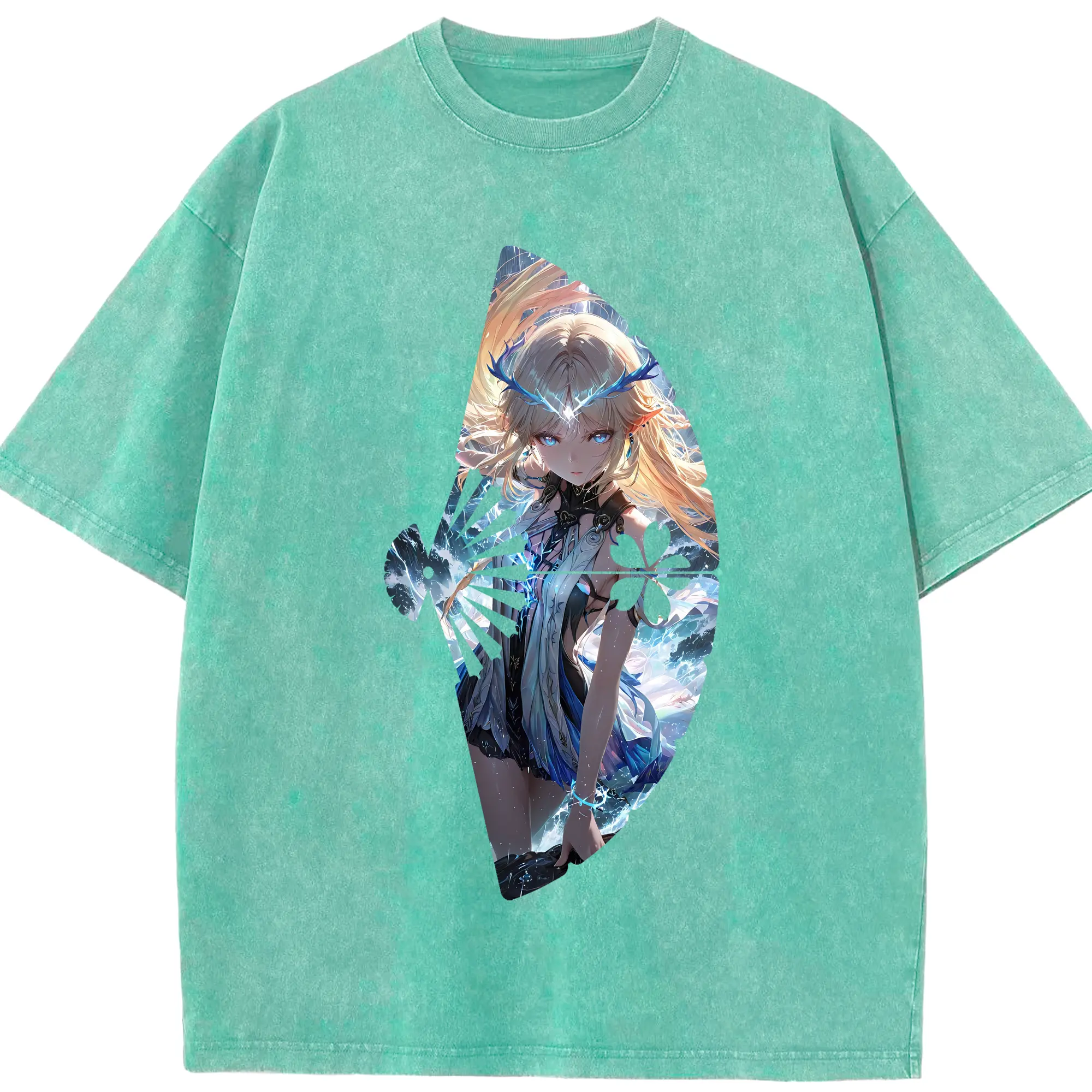 鳴潮 グッズ フィービー - 綿100% ヴィンテージ風 半袖Tシャツ ・ フロントプリント ・ 柔らか肌触り ・ 通気性 快適 ・ スポーツ カジュアル 外出用