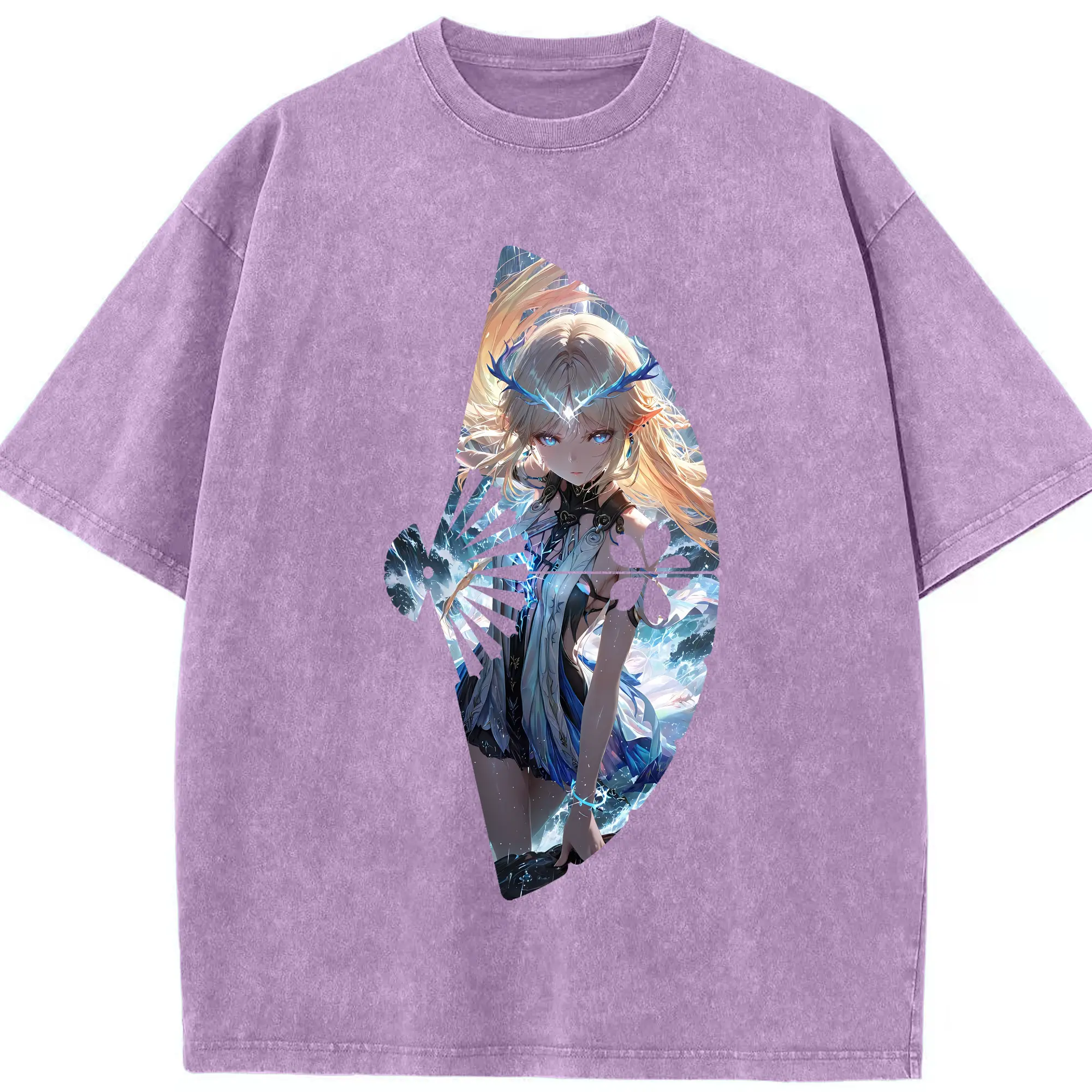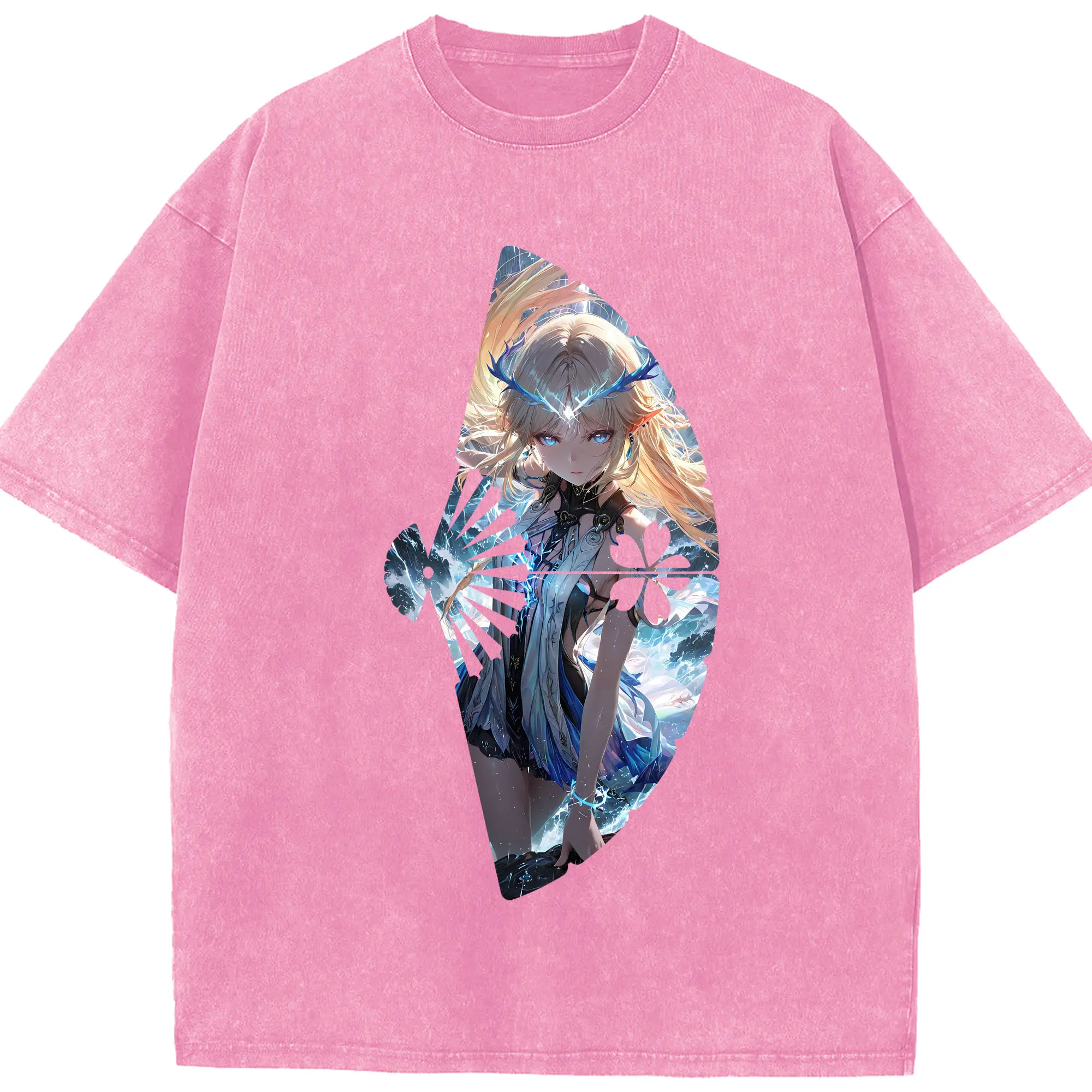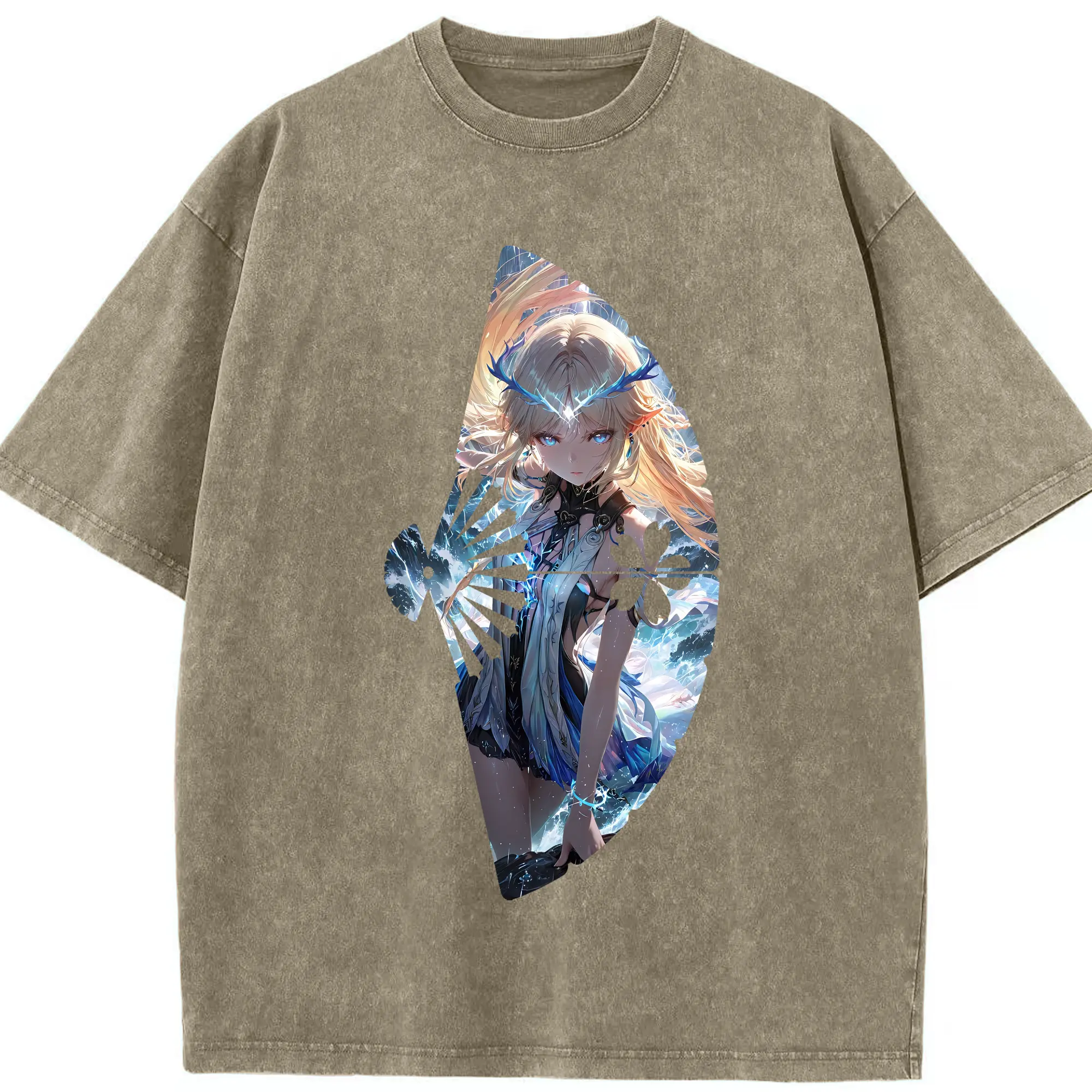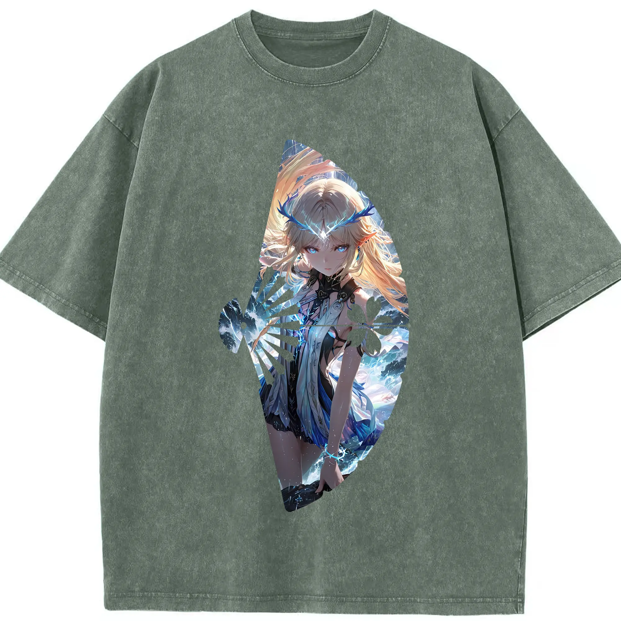鳴潮 グッズ フィービー - 綿100% ヴィンテージ風 半袖Tシャツ ・ フロントプリント ・ 柔らか肌触り ・ 通気性 快適 ・ スポーツ カジュアル 外出用