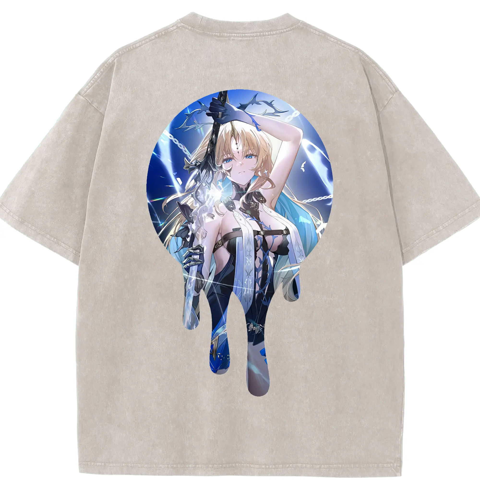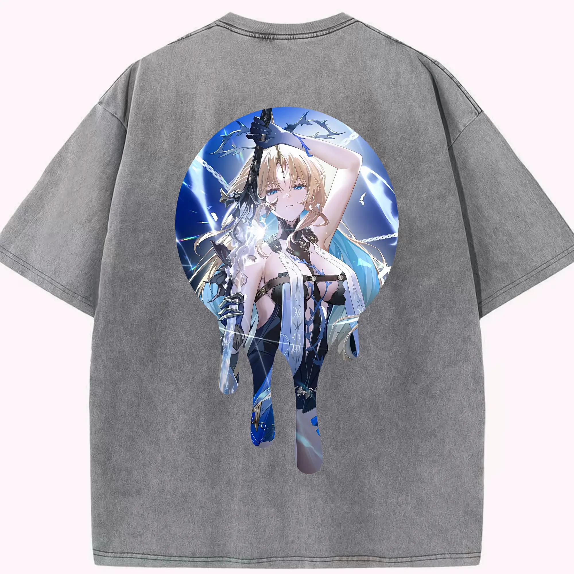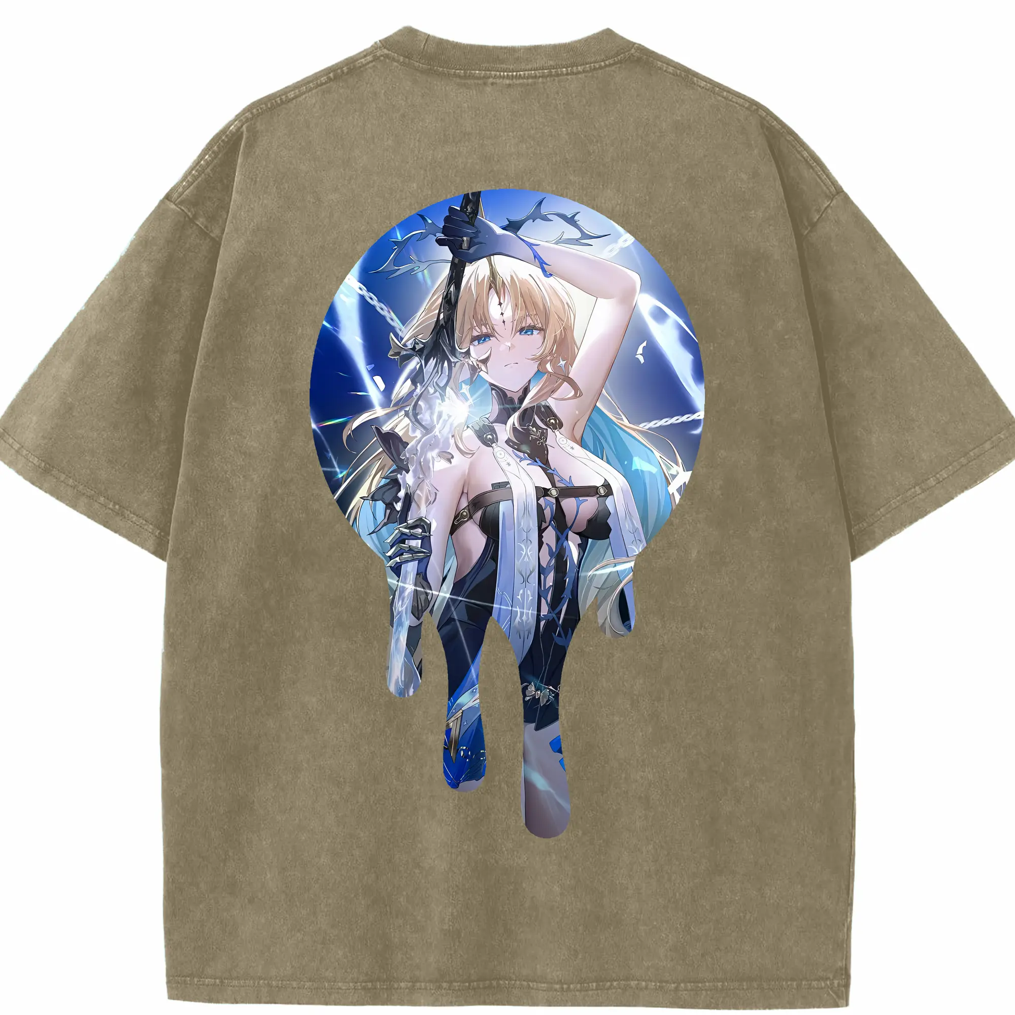 鳴潮 グッズ カルテジア - 綿100% ヴィンテージ風 半袖Tシャツ ・ フロントプリント ・ 柔らか肌触り ・ 通気性 快適 ・ スポーツ カジュアル 外出用