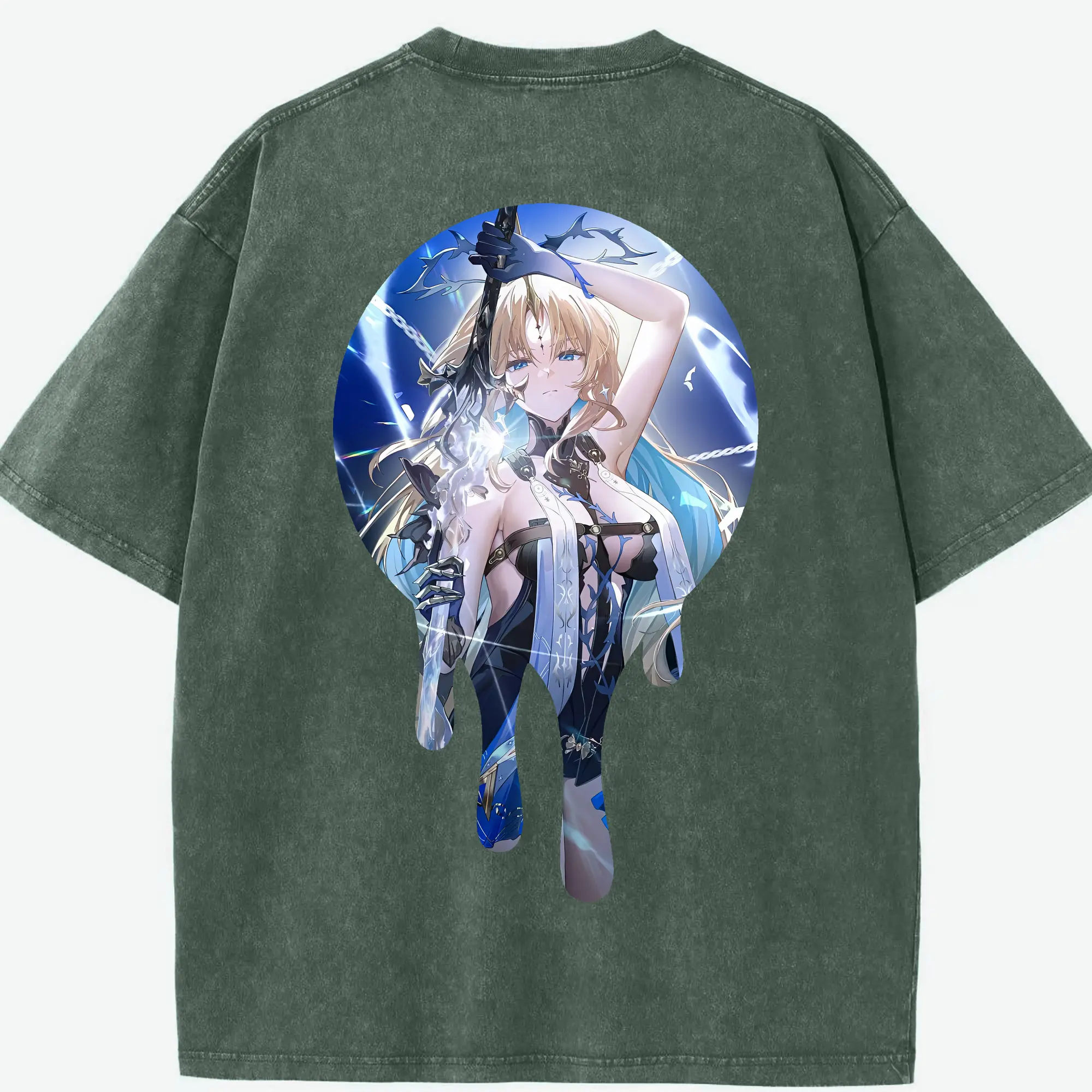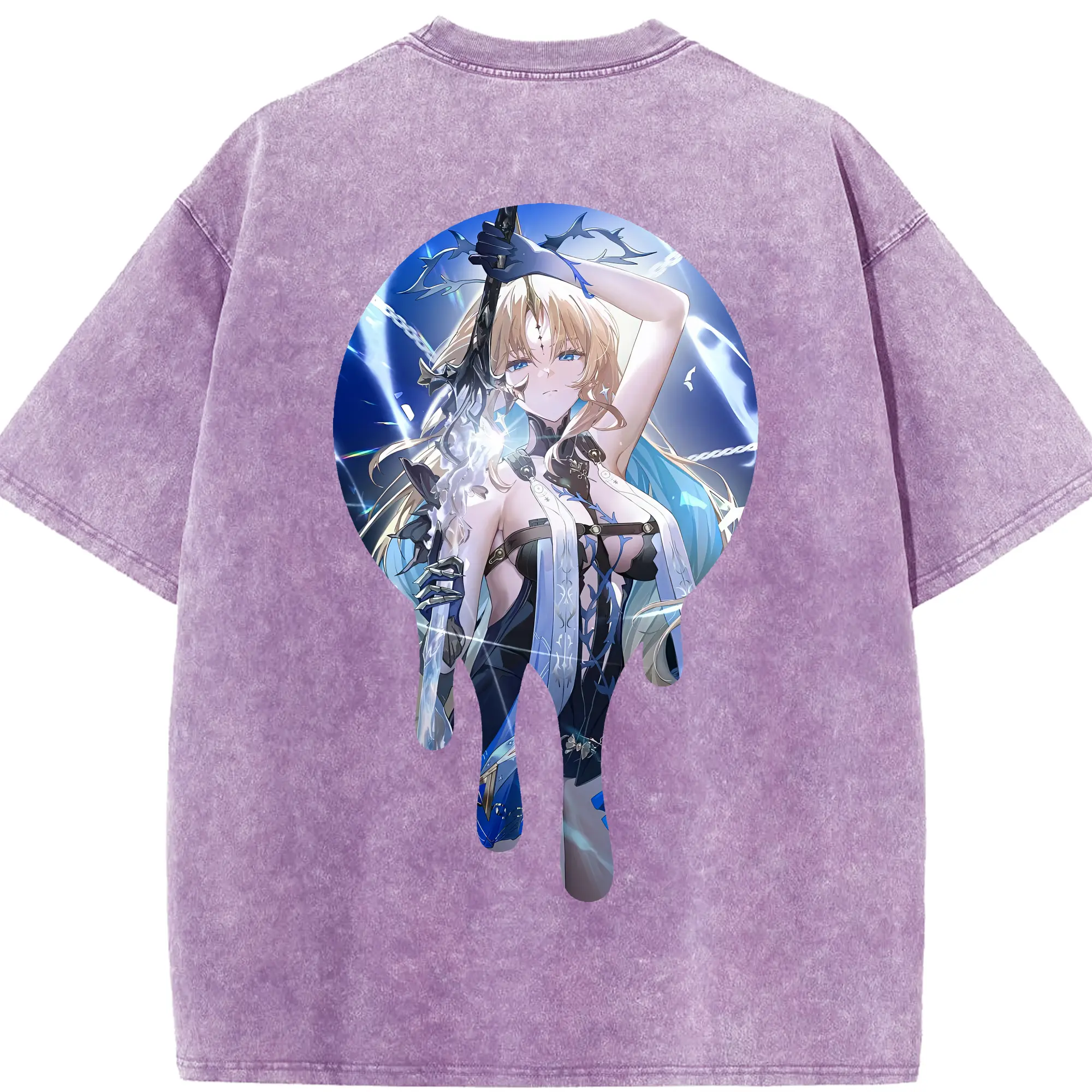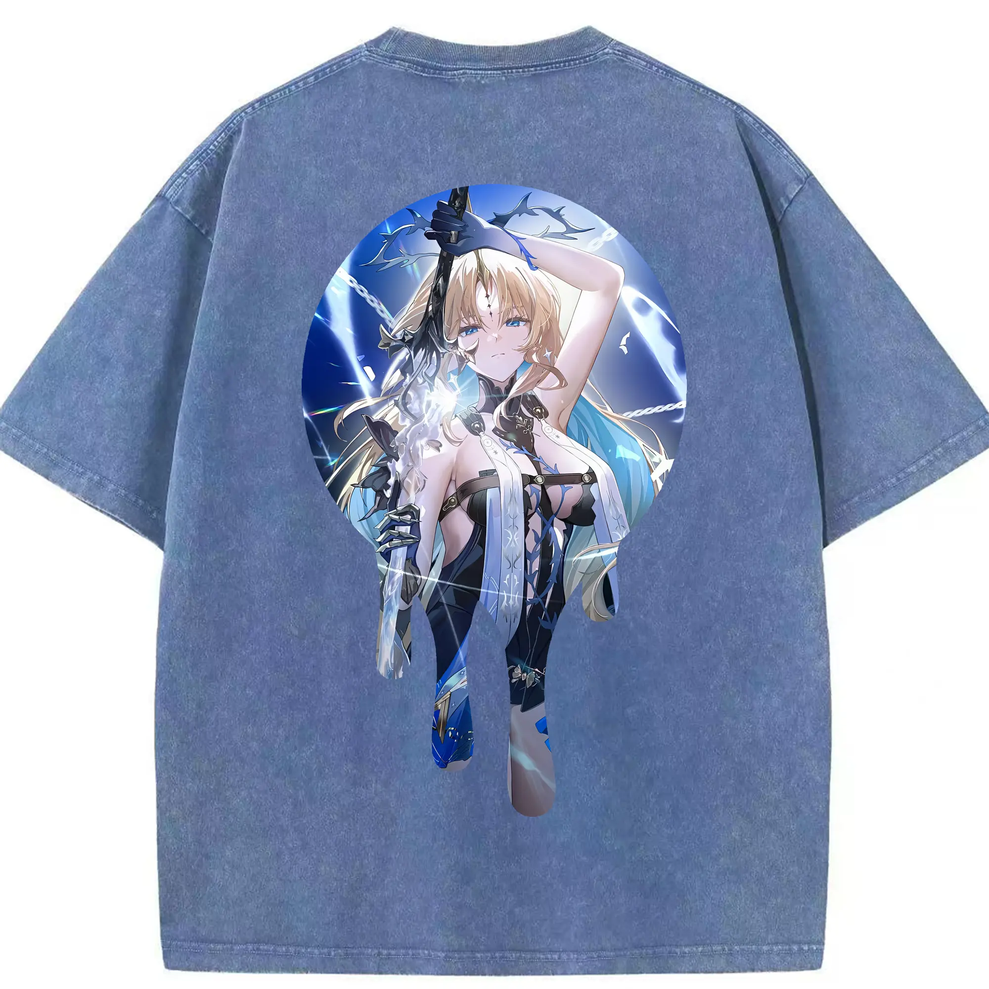 鳴潮 グッズ カルテジア - 綿100% ヴィンテージ風 半袖Tシャツ ・ フロントプリント ・ 柔らか肌触り ・ 通気性 快適 ・ スポーツ カジュアル 外出用