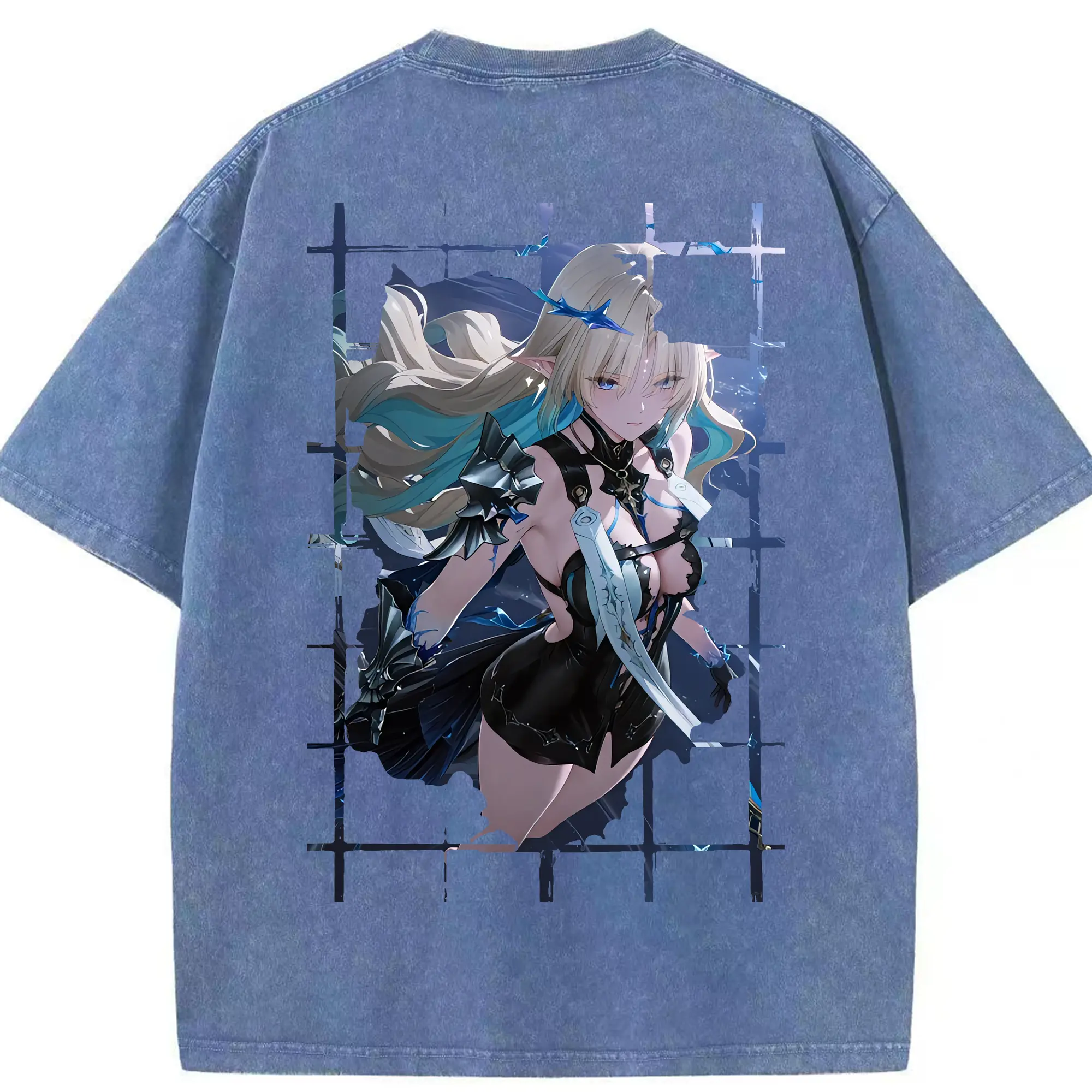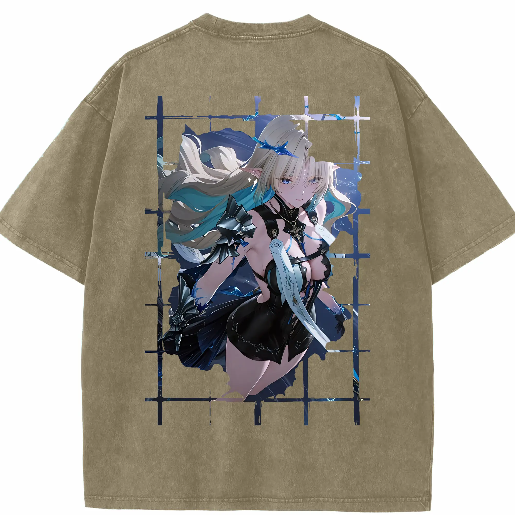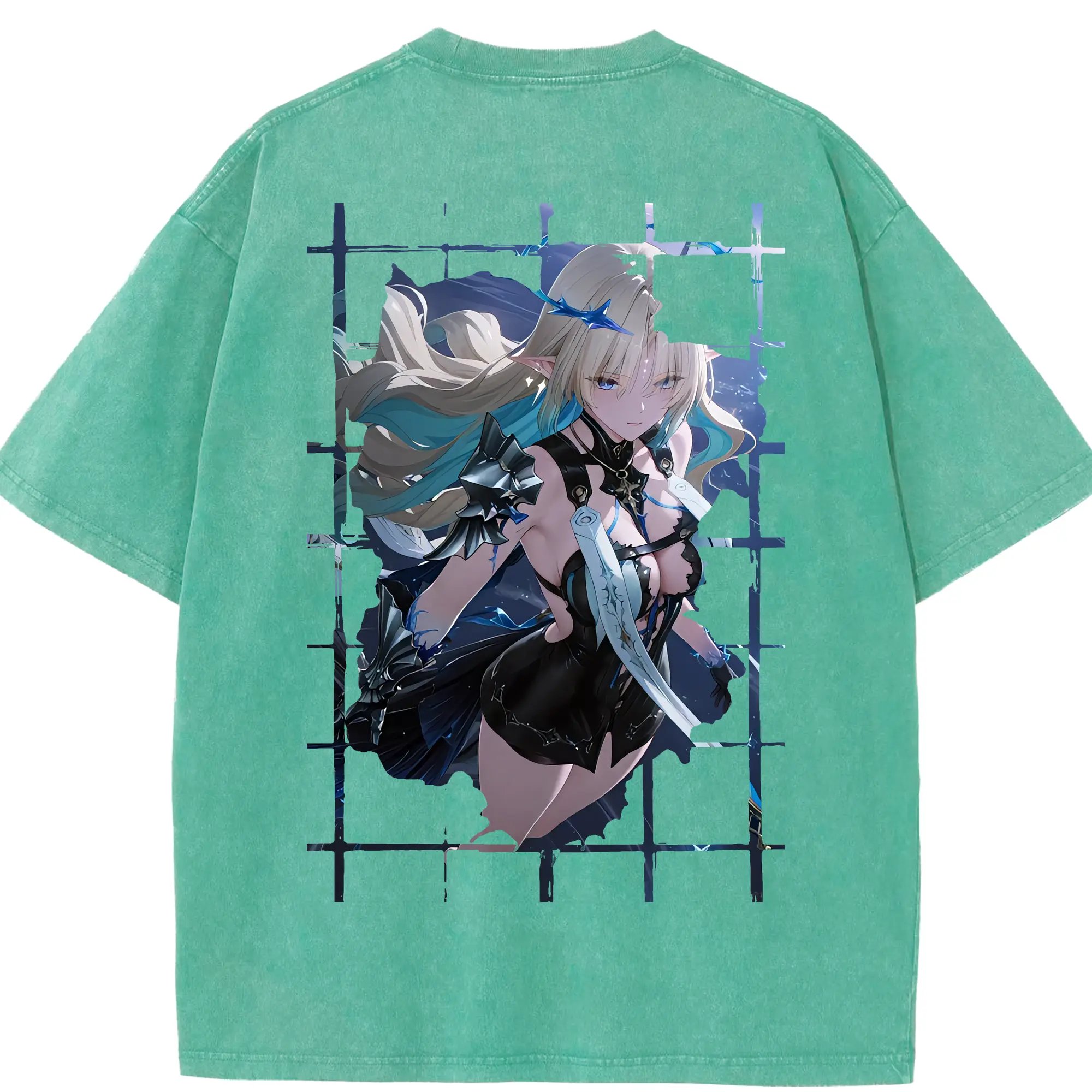鳴潮 グッズ カルテジア - 綿100% ヴィンテージ風 半袖Tシャツ ・ フロントプリント ・ 柔らか肌触り ・ 通気性 快適 ・ スポーツ カジュアル 外出用