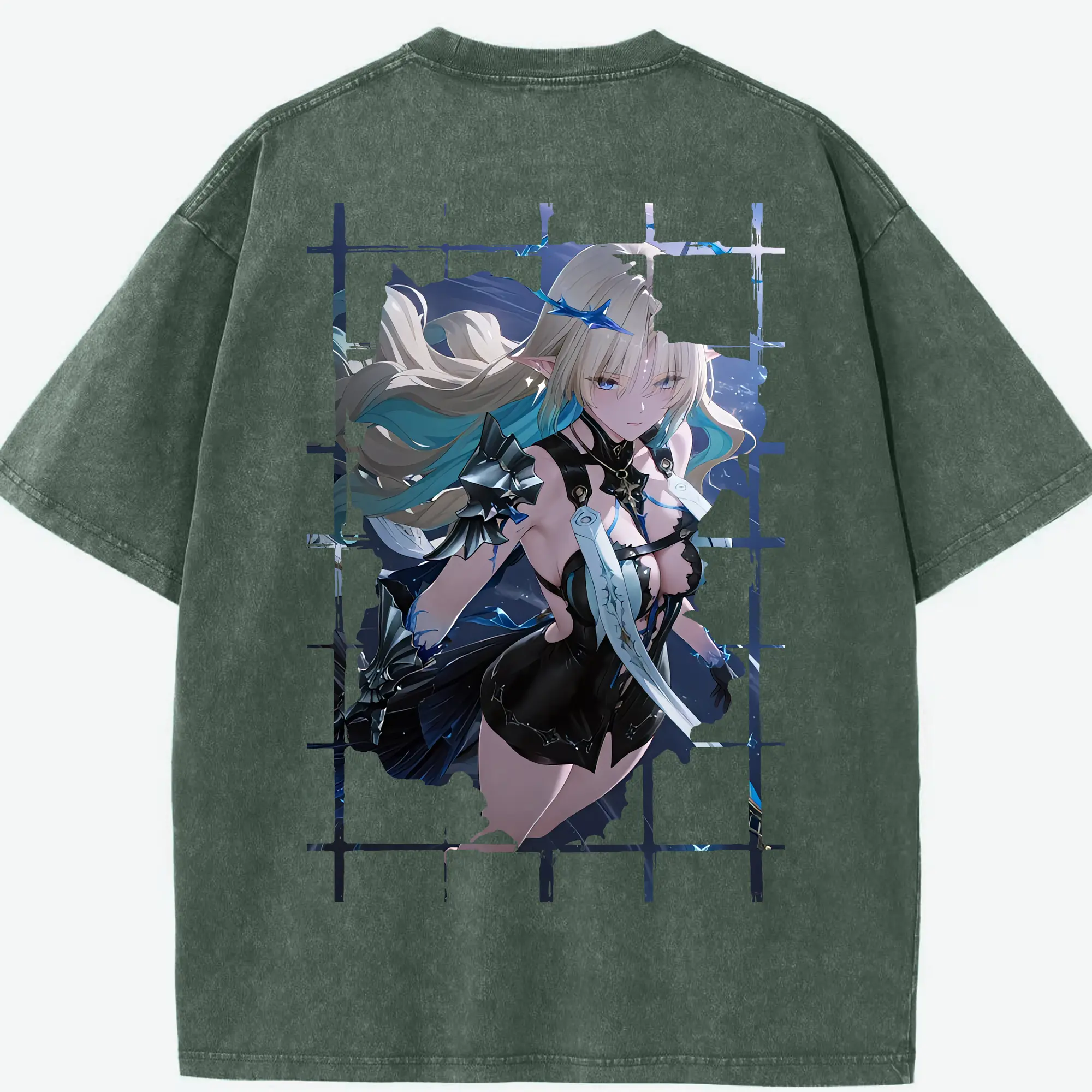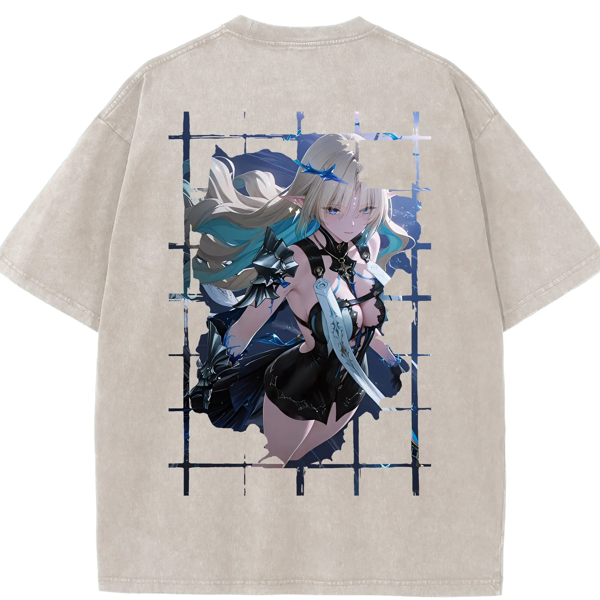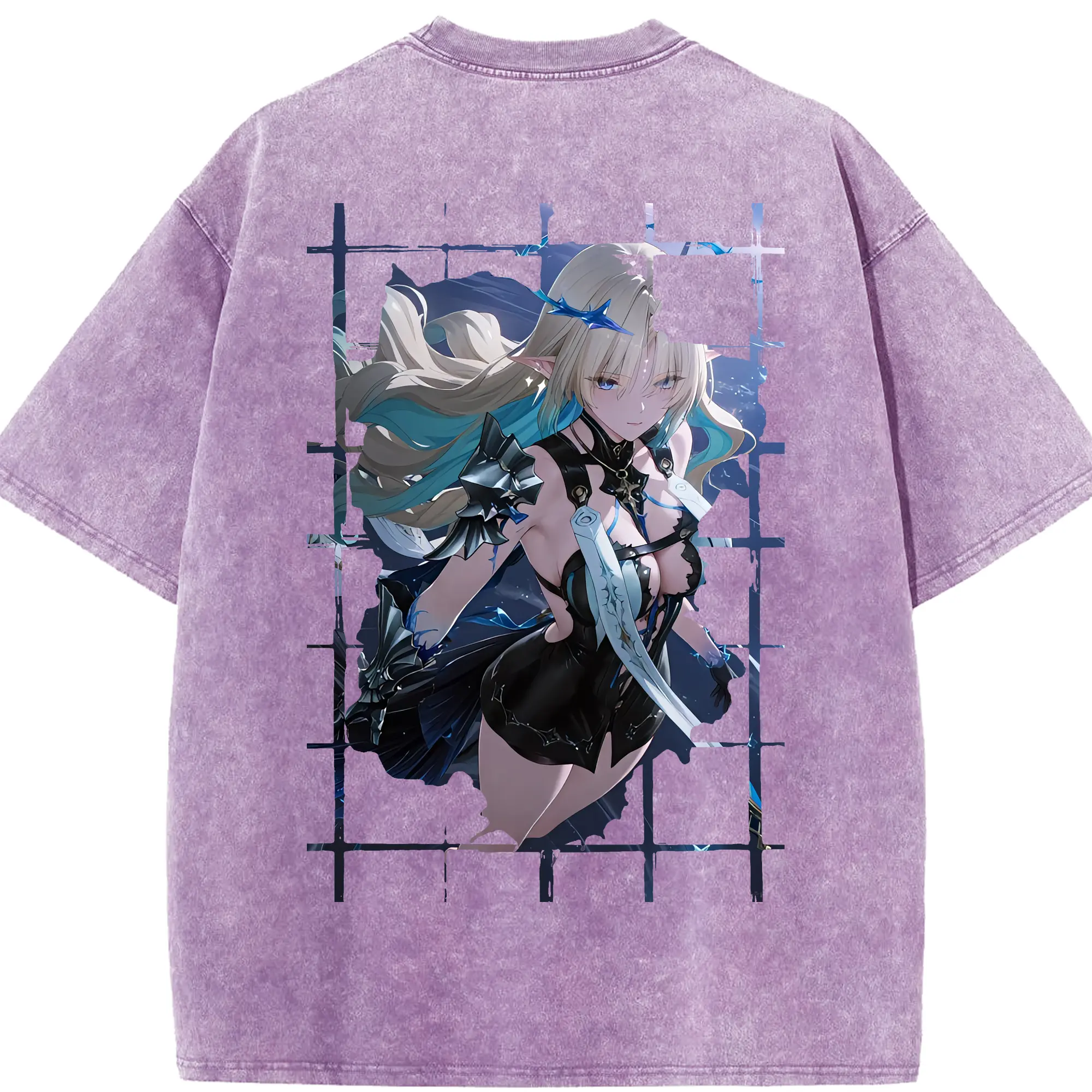 鳴潮 グッズ カルテジア - 綿100% ヴィンテージ風 半袖Tシャツ ・ フロントプリント ・ 柔らか肌触り ・ 通気性 快適 ・ スポーツ カジュアル 外出用