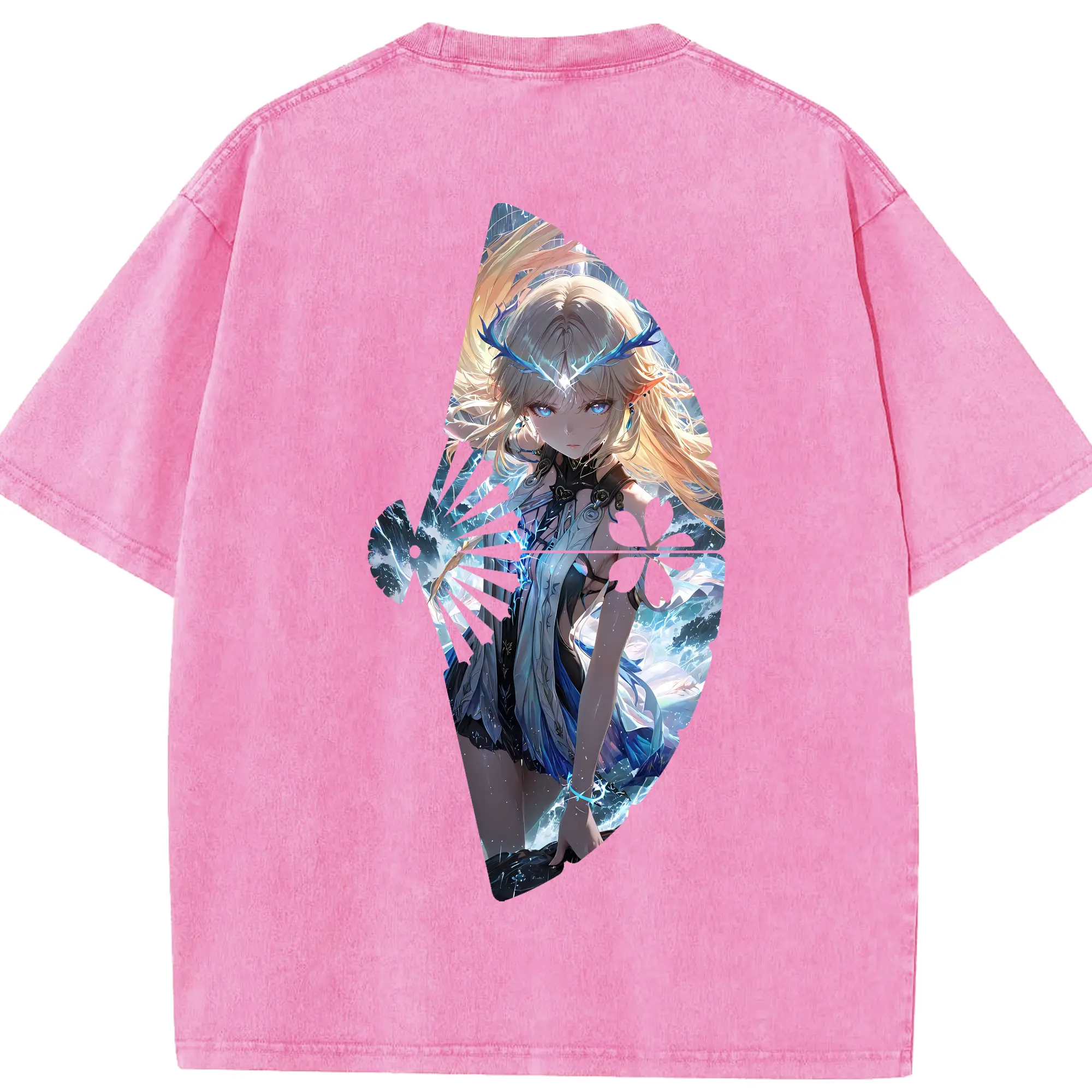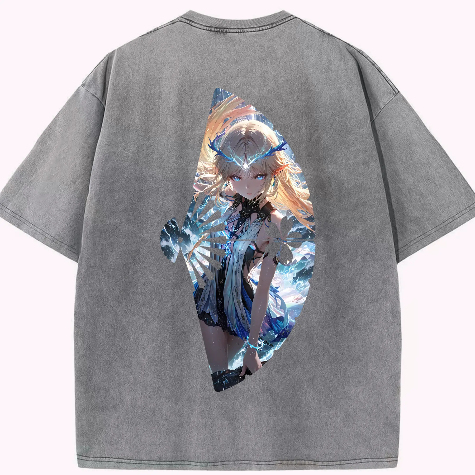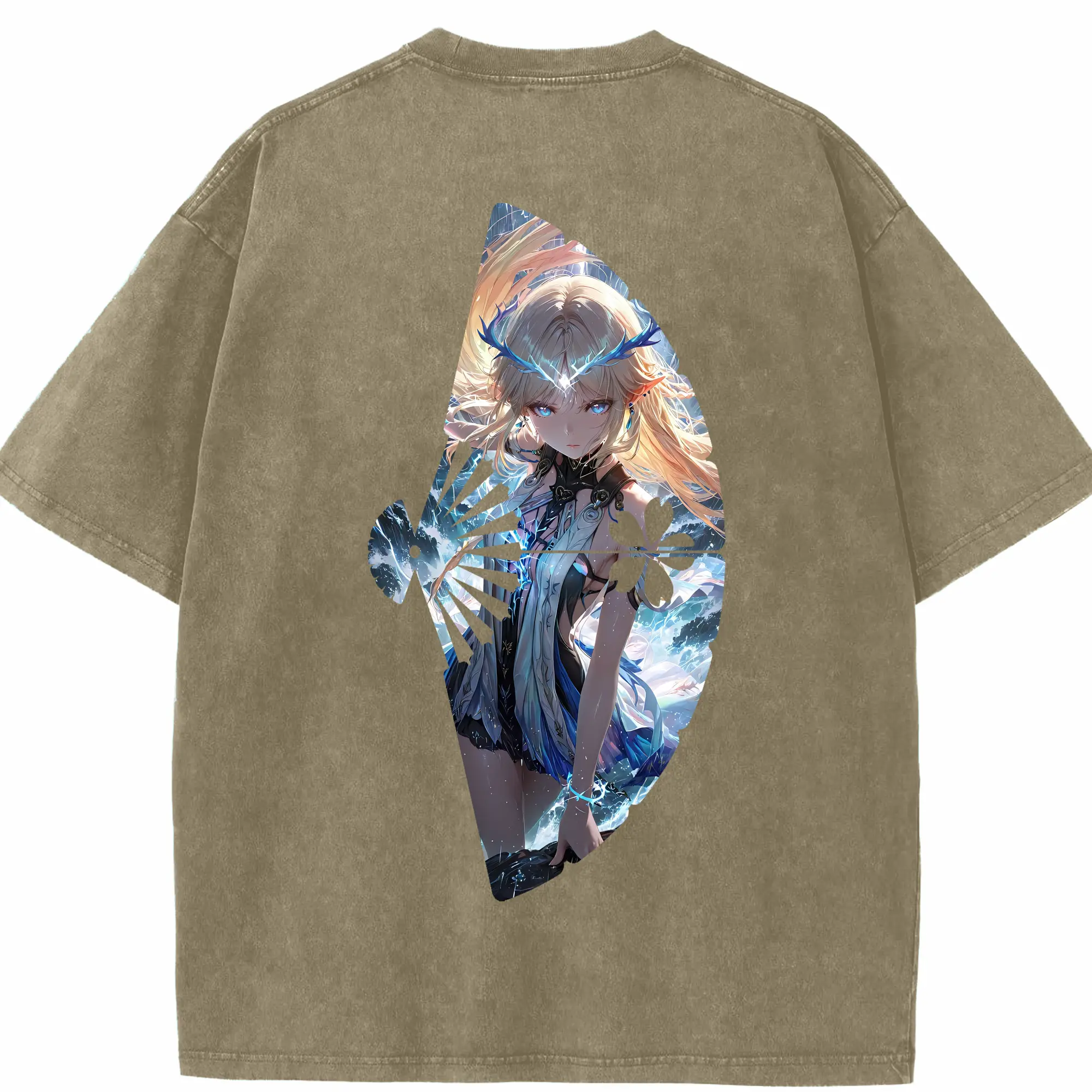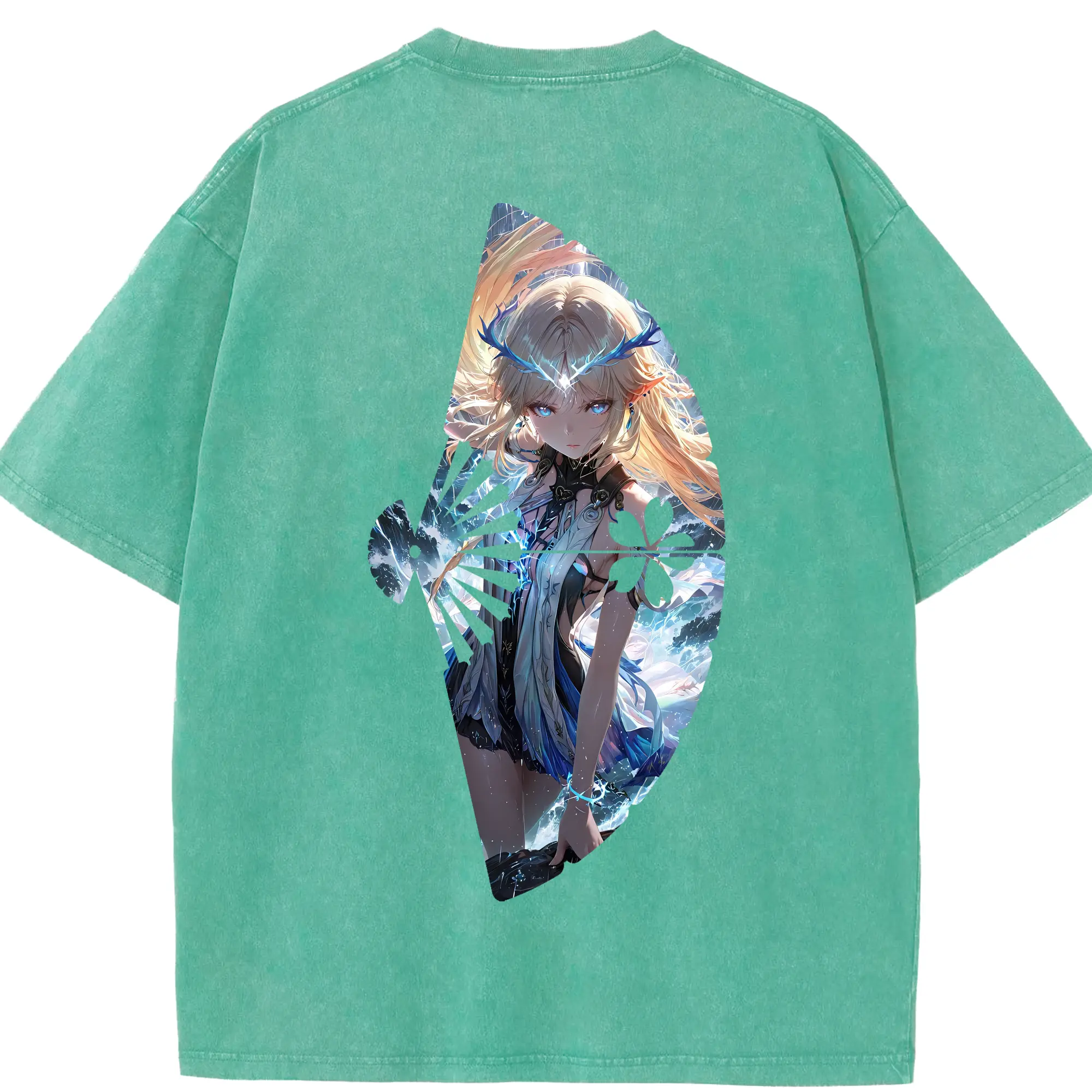 鳴潮 グッズ カルテジア - 綿100% ヴィンテージ風 半袖Tシャツ ・ フロントプリント ・ 柔らか肌触り ・ 通気性 快適 ・ スポーツ カジュアル 外出用