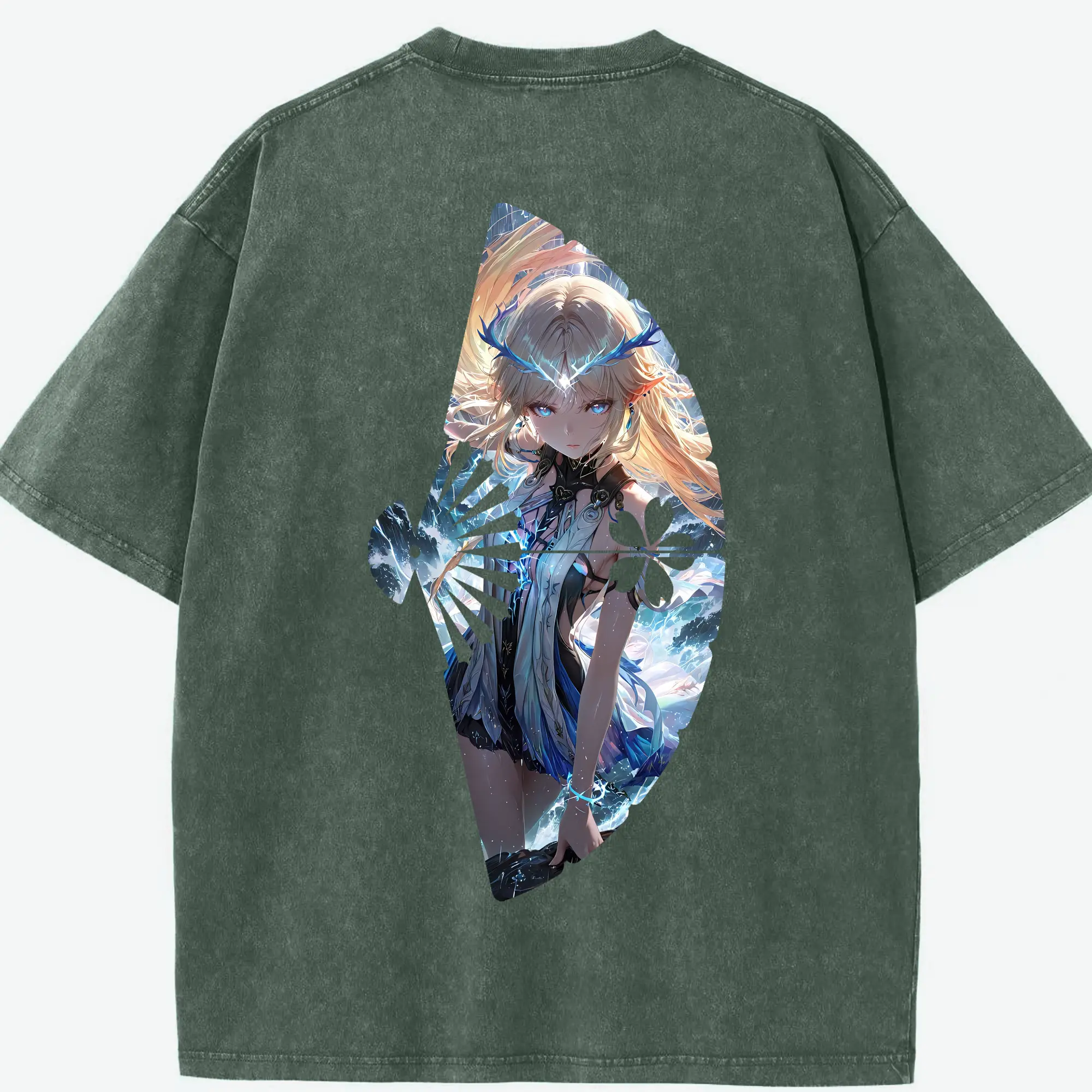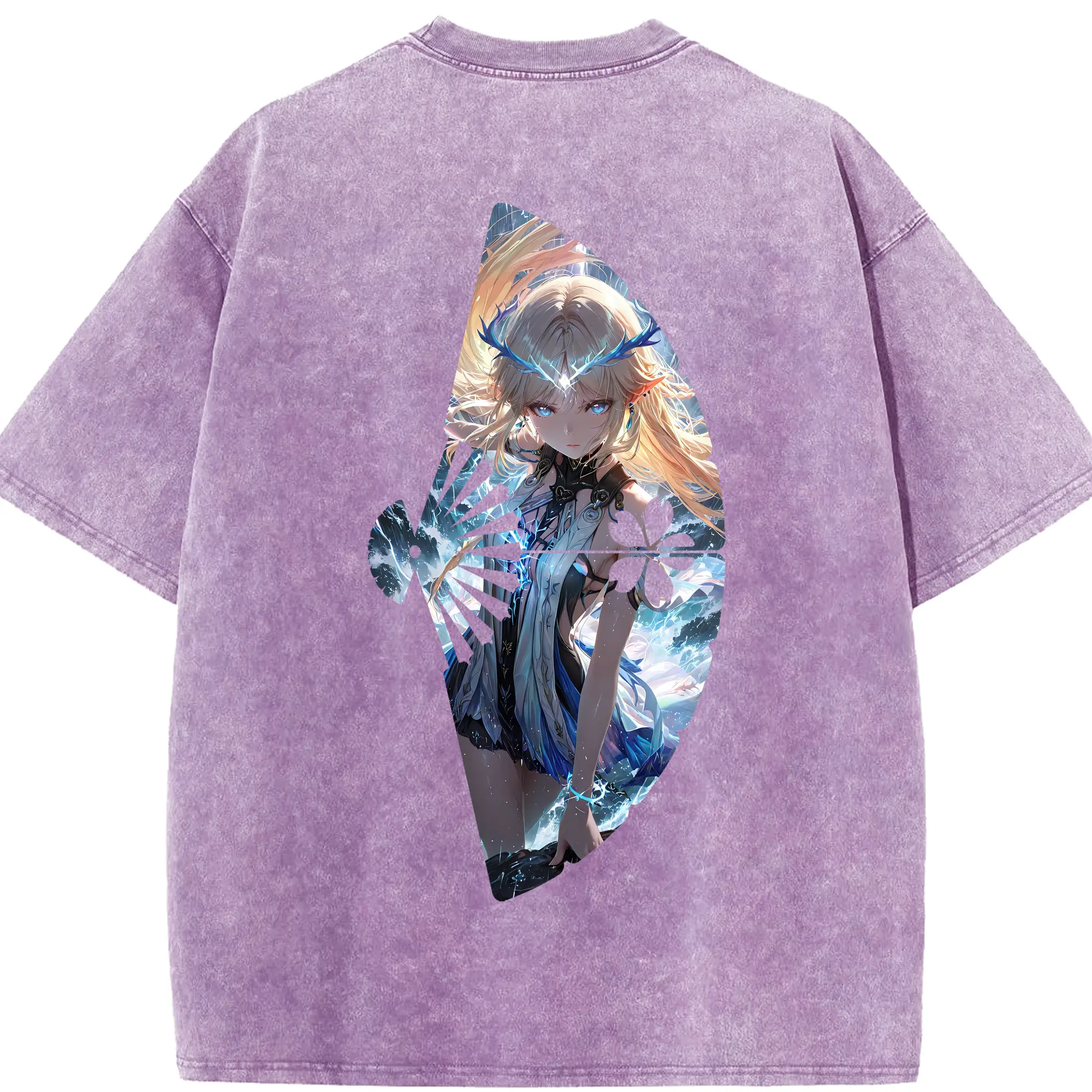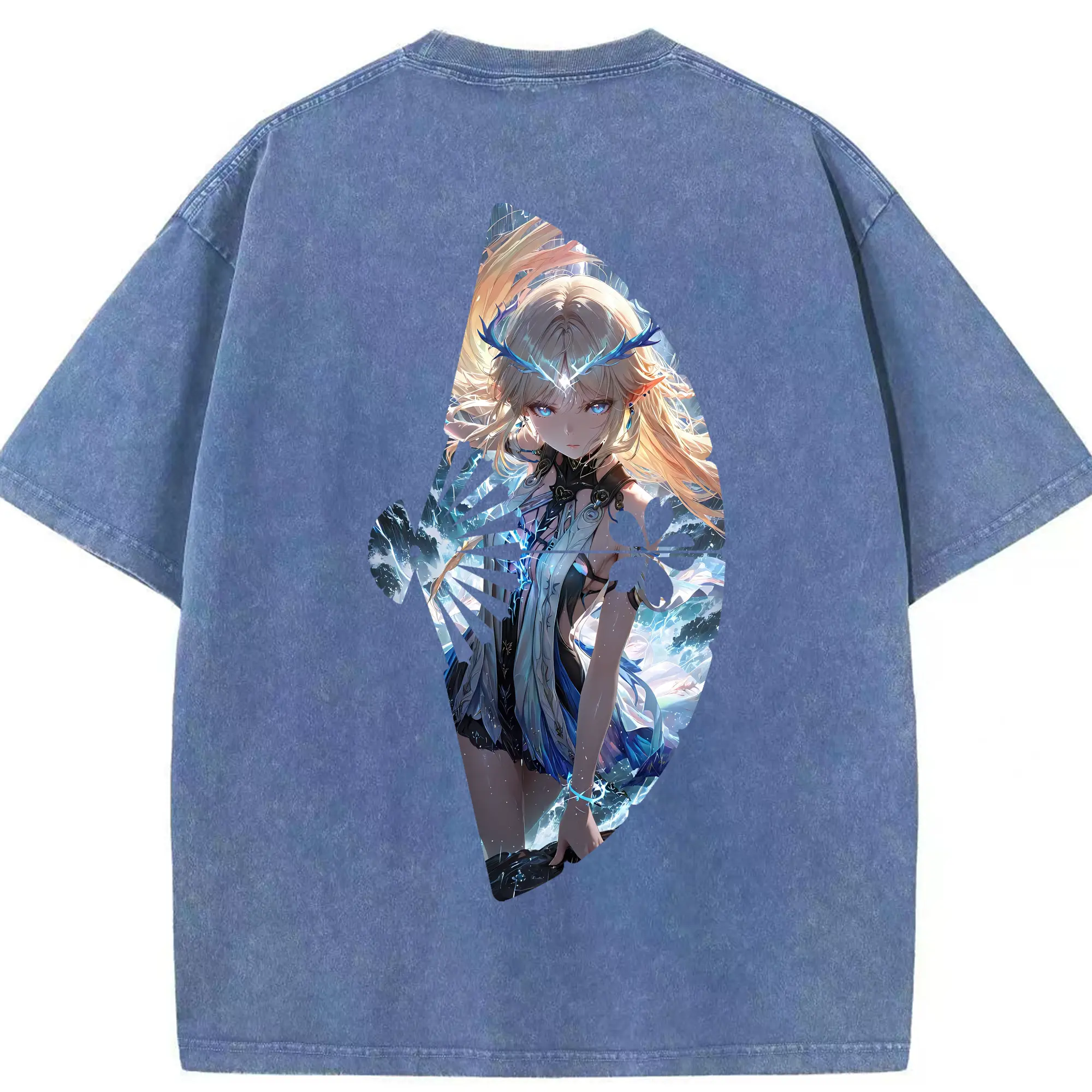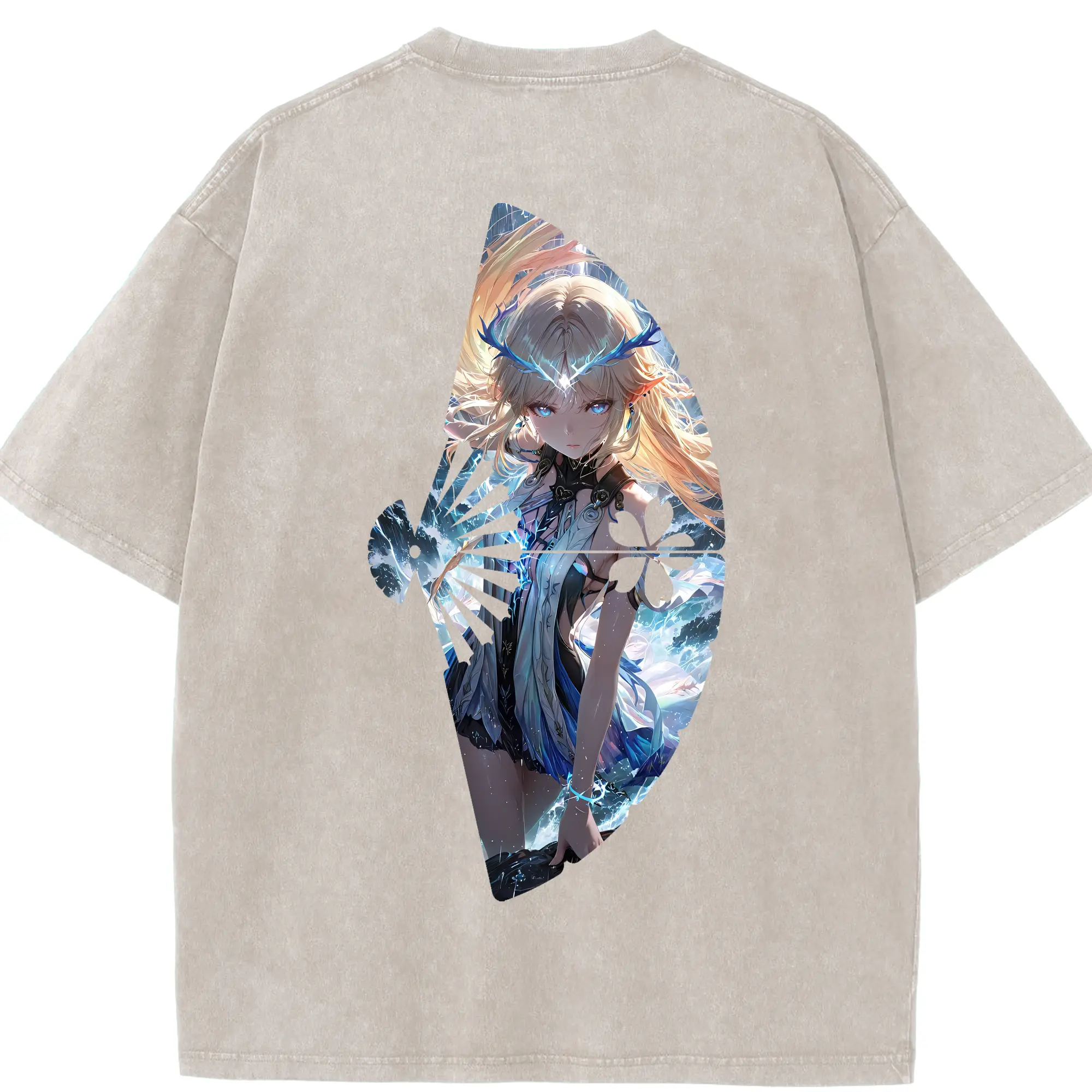 鳴潮 グッズ カルテジア - 綿100% ヴィンテージ風 半袖Tシャツ ・ フロントプリント ・ 柔らか肌触り ・ 通気性 快適 ・ スポーツ カジュアル 外出用
